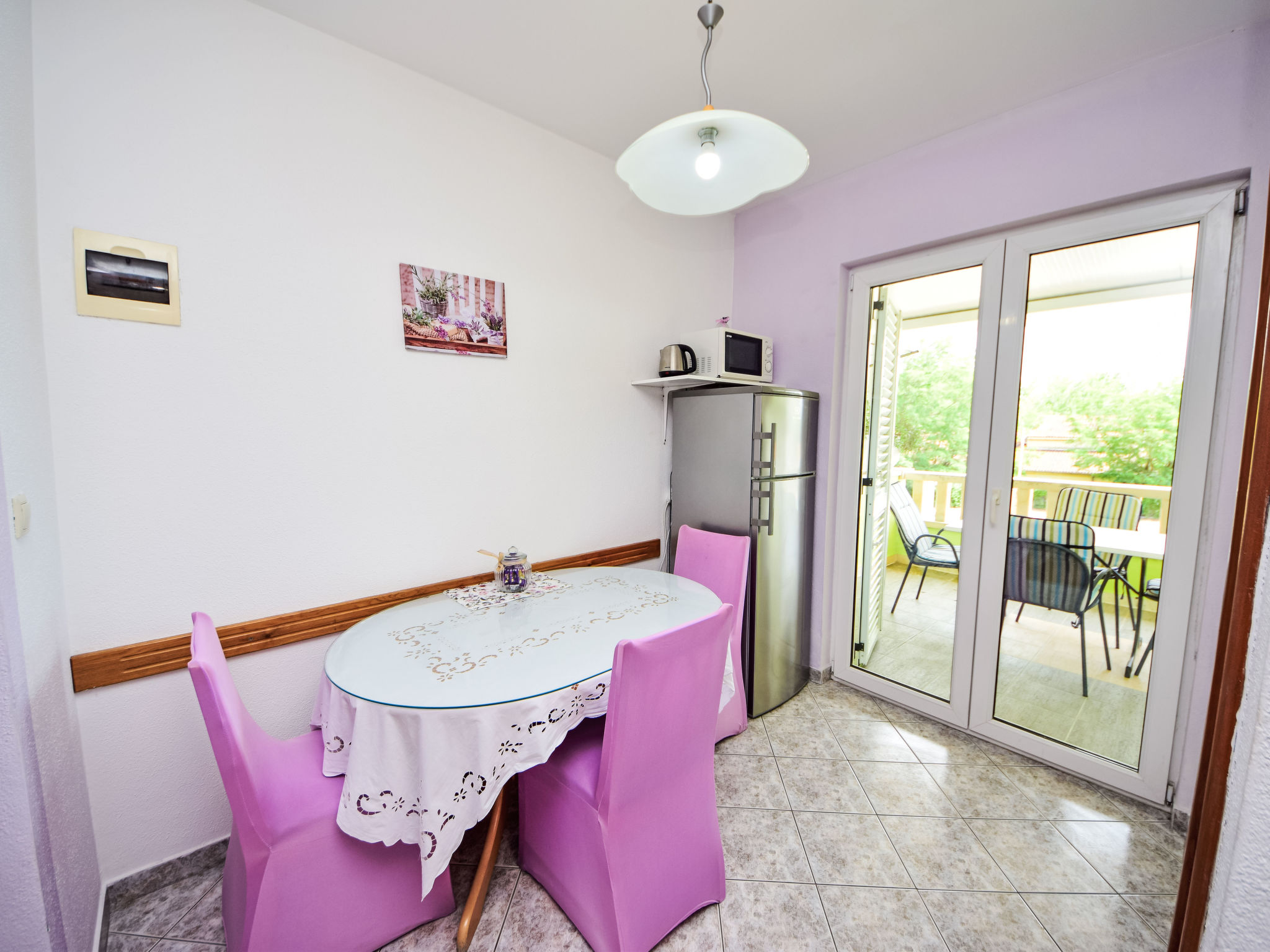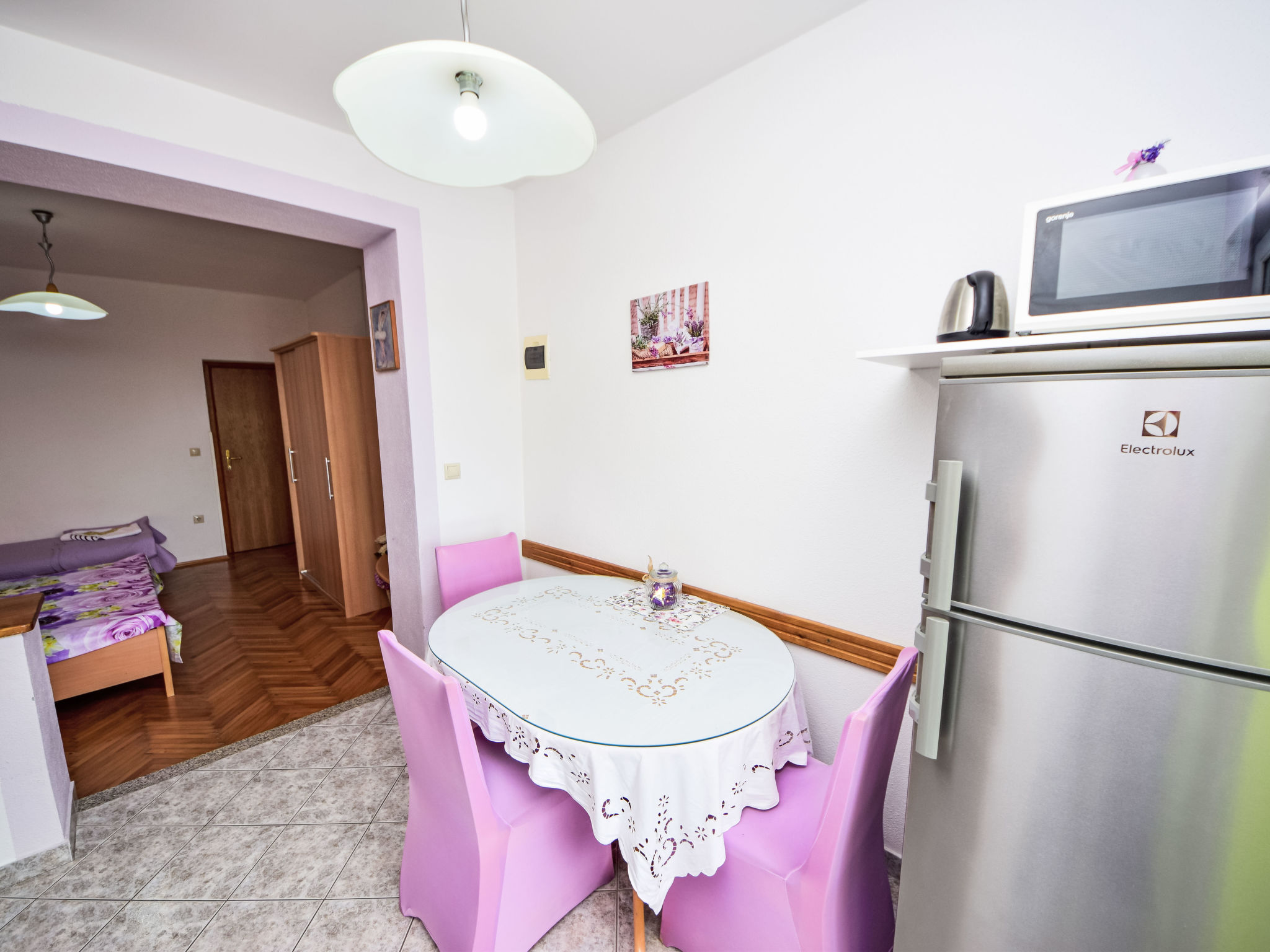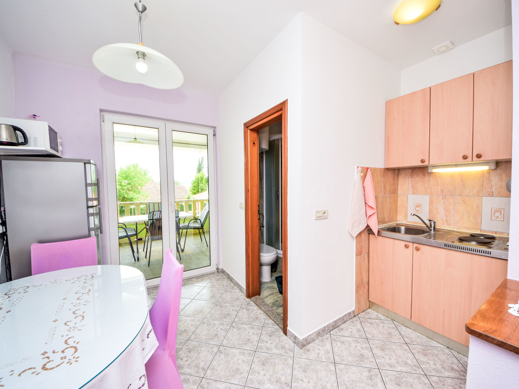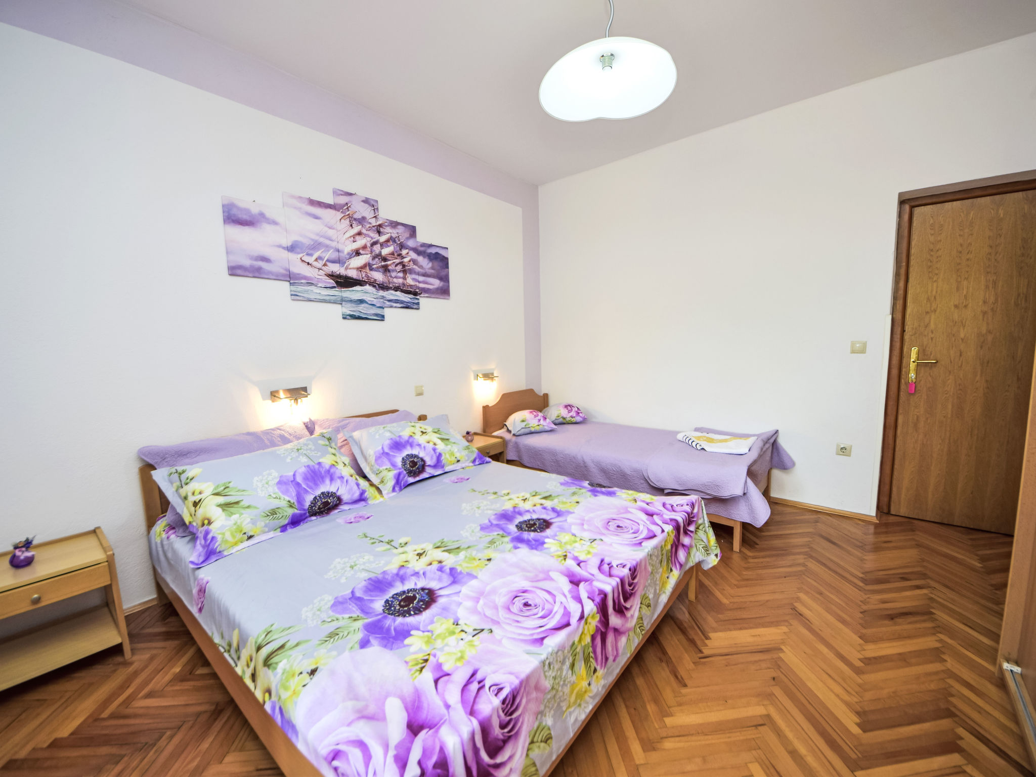 Flatgebouw "Dajak". 1.2 km van het centrum van Omiš, van zee, 300 m van het strand, aan een hoofdweg. Voor medegebruik: grill, parkeerplaats bij het huis op het terrein. Supermarkt 300 m, bushalte 55 m, zandstrand 300 m. Op aanvraag kan een transfer vanaf de luchthaven naar de vakantiewoning geregeld worden. De eigenaar woont in hetzelfde huis. Vliegveld 40 km van het huis.