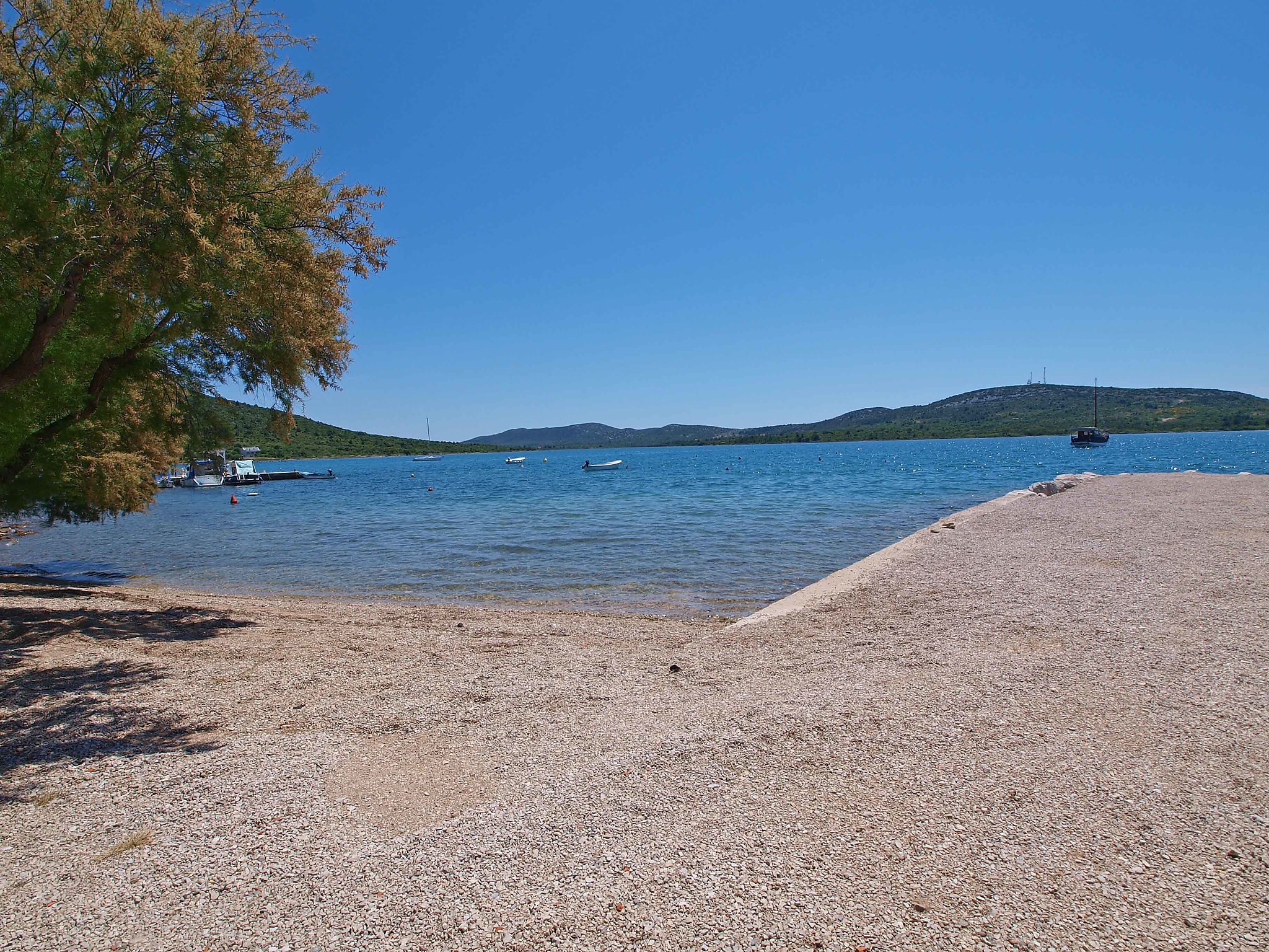 Divers stadsstrand in het dorpje Tribunj, in de buurt van Vodice. Voornamelijk betonnen pieren, maar ook rotsstranden. Er zijn snacks, toiletten en voldoende douches.