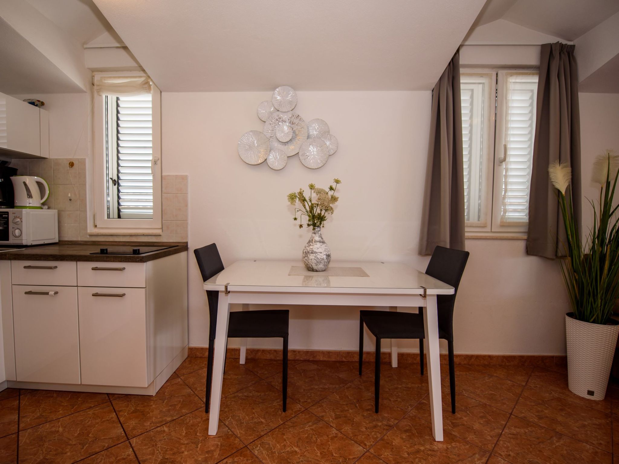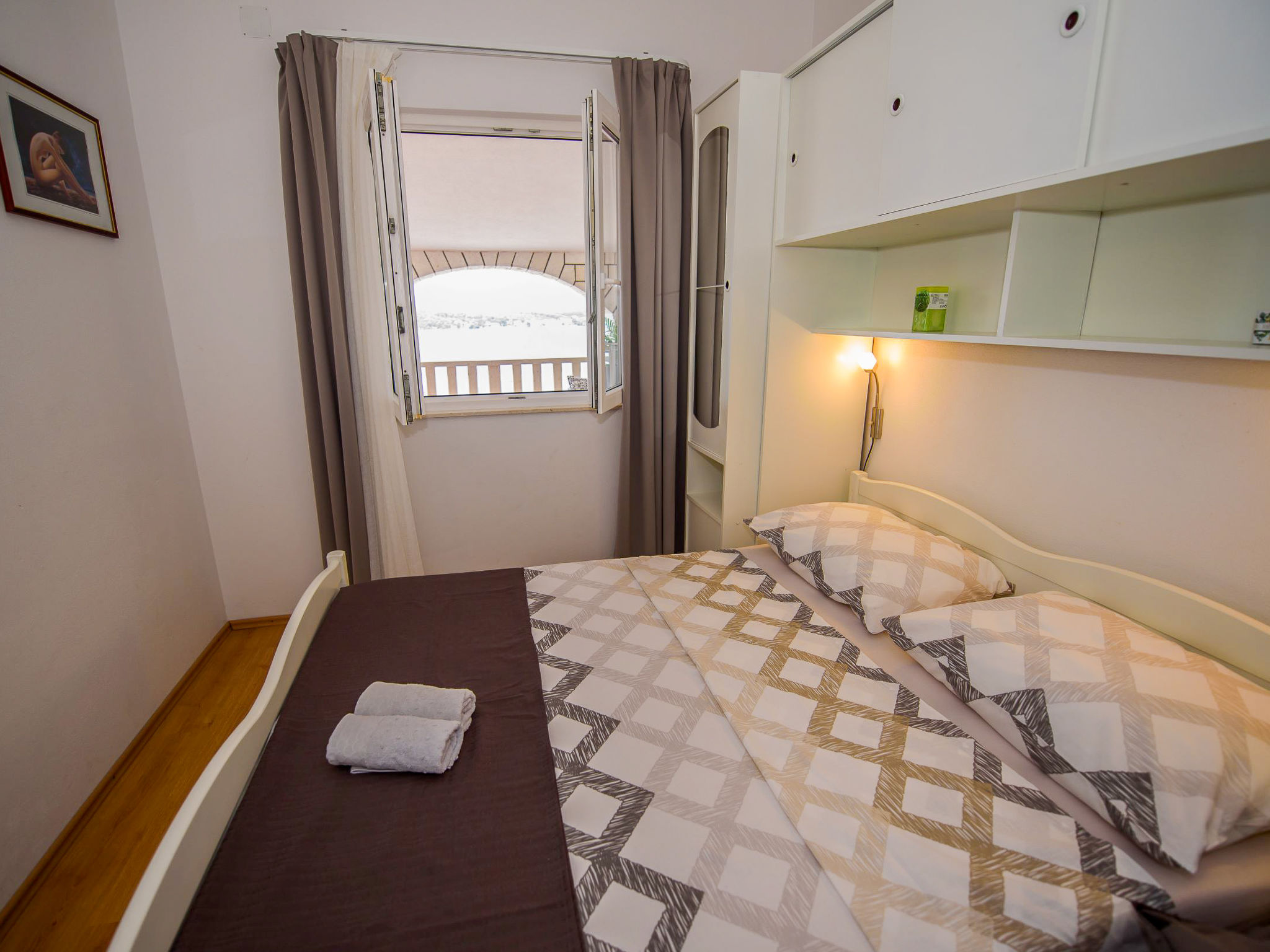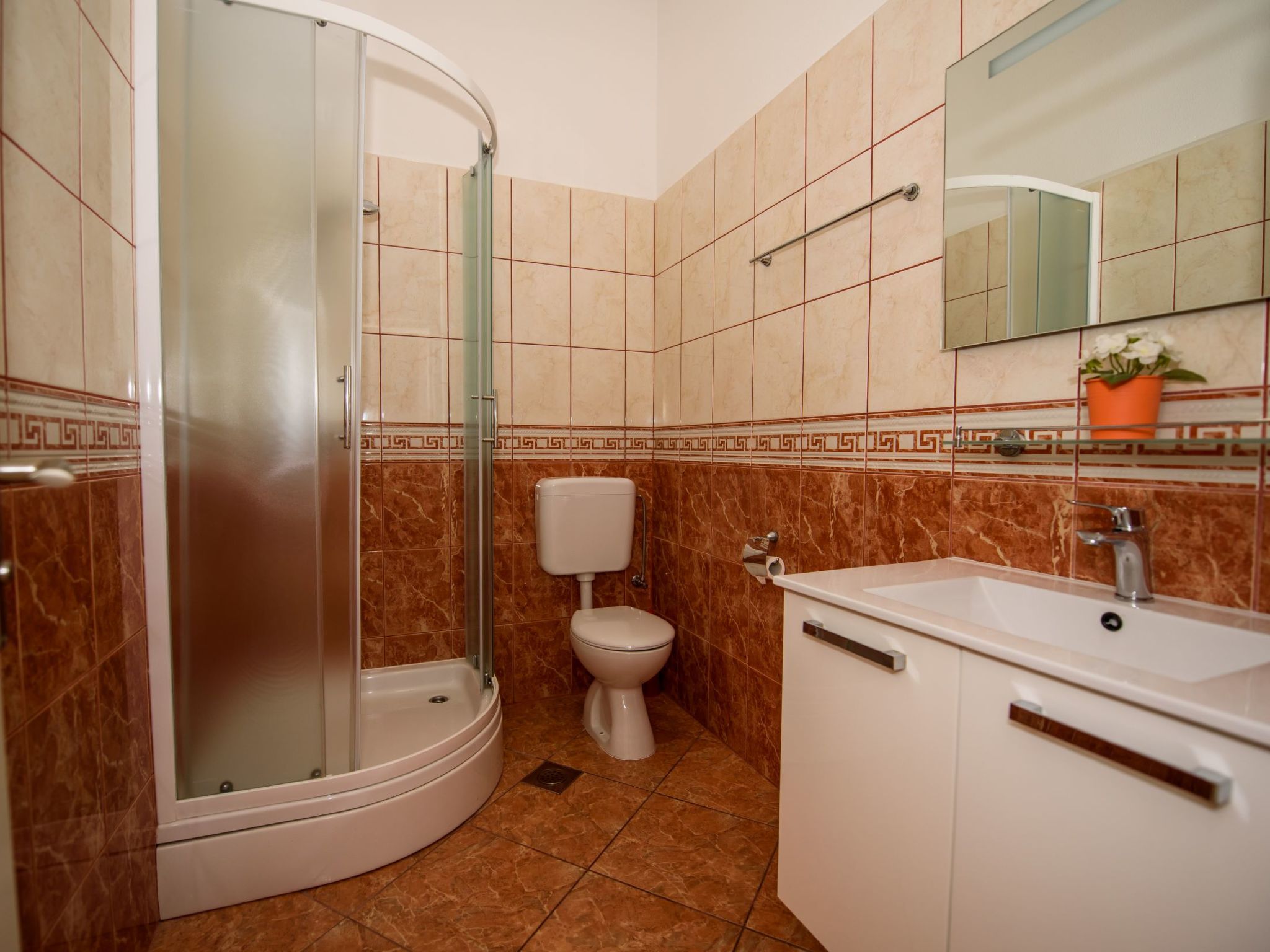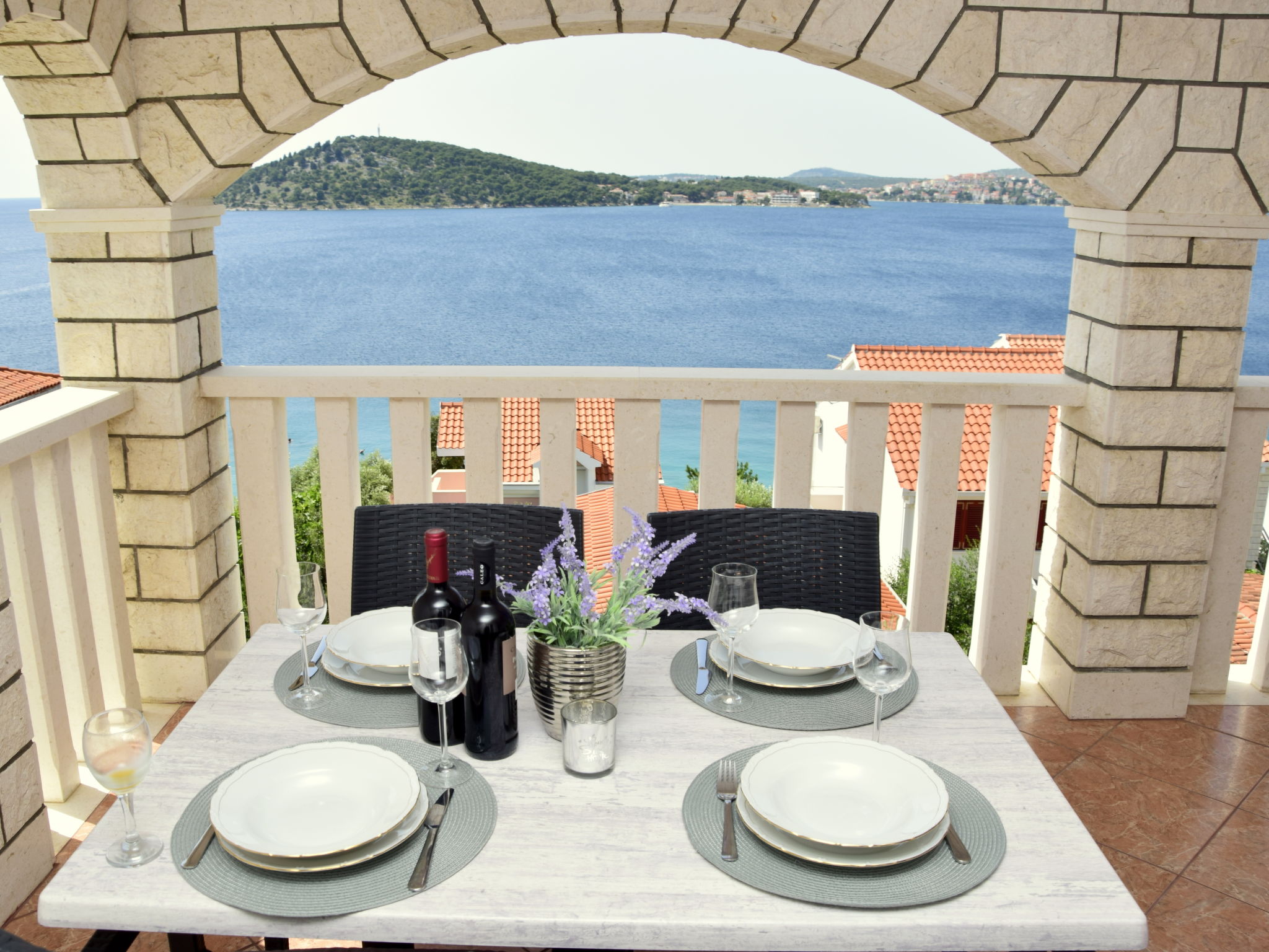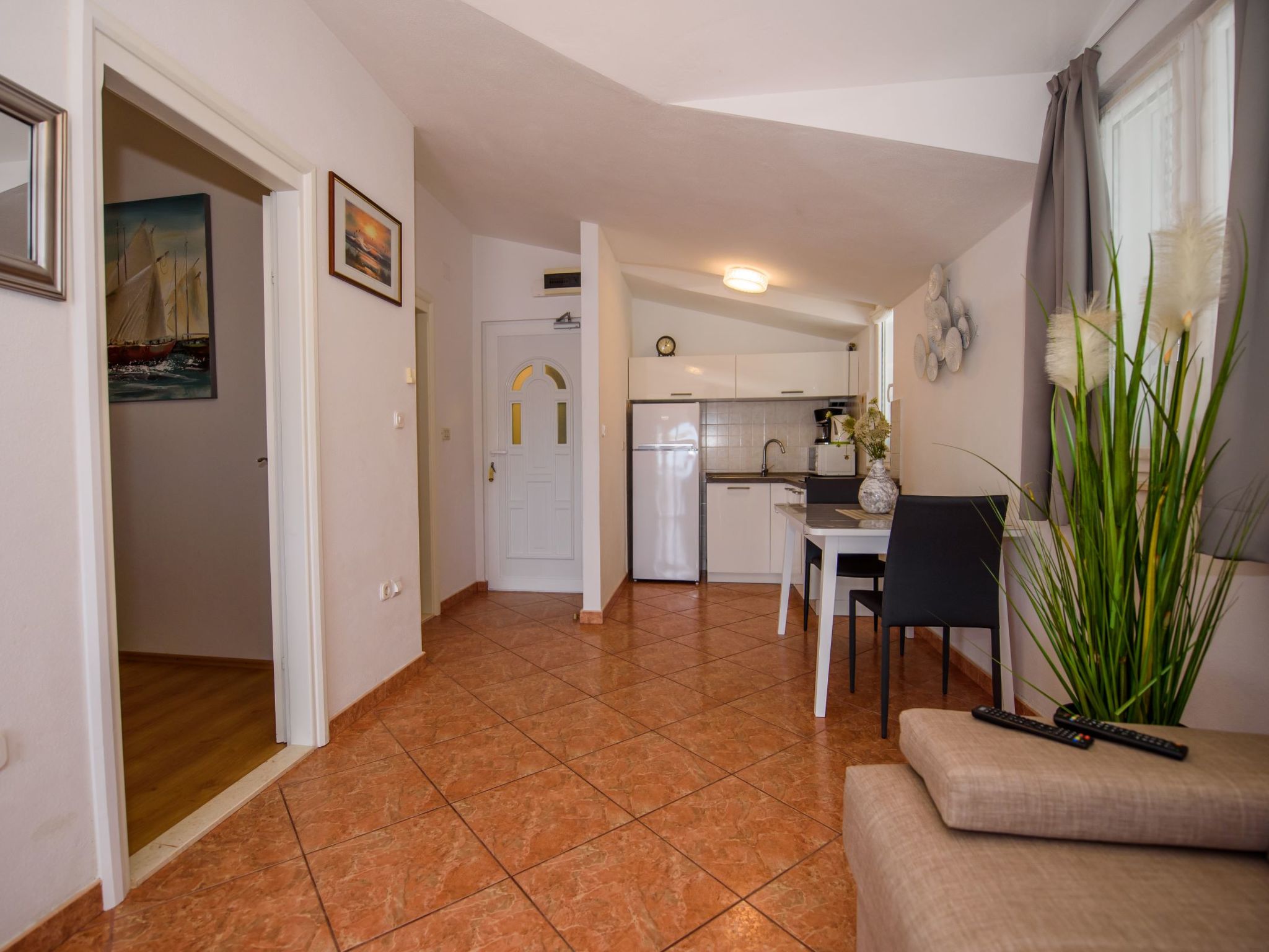 Razanj 10 km van Rogoznica: Mooi flatgebouw "Marina". In de wijk Ljoljinica, rustige, verhoogde ligging, 40 m van zee. Voor medegebruik: buitendouche, terras, tuinmeubelen, barbecue, overdekte parkeerplaats bij het huis op het terrein, gemeenschappelijke garage. Winkel, restaurant 200 m, bushalte 5.1 km, rotsstrand 40 m. Vergelijkbare accommodaties kunnen worden geboekt.