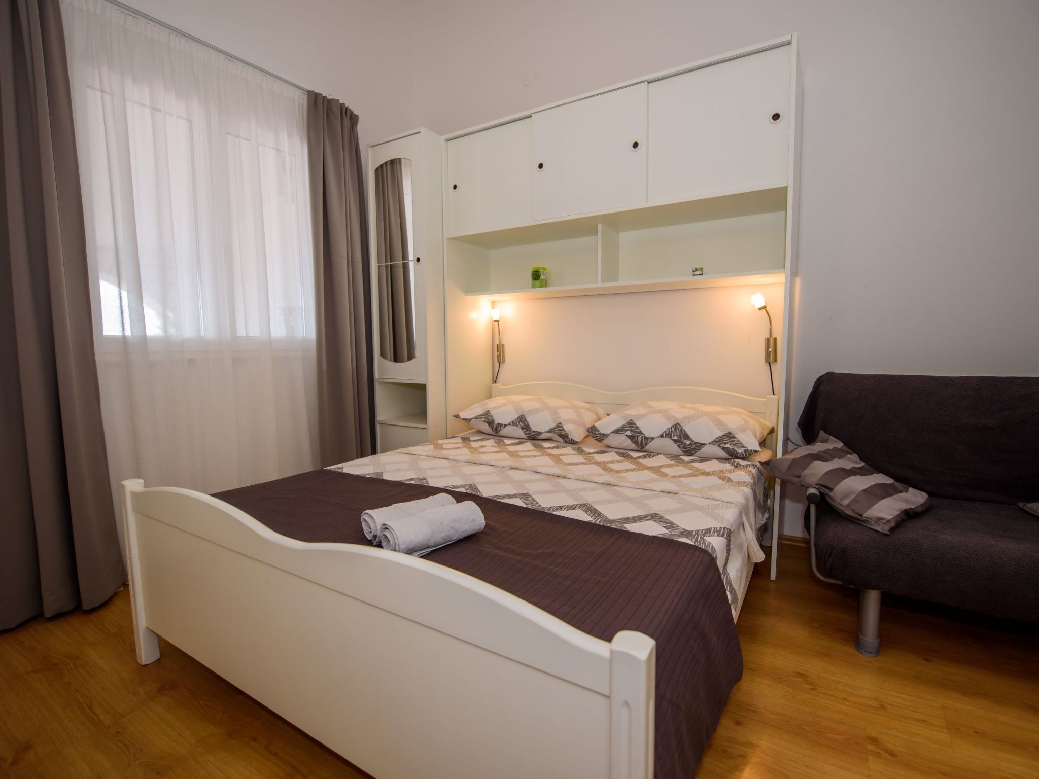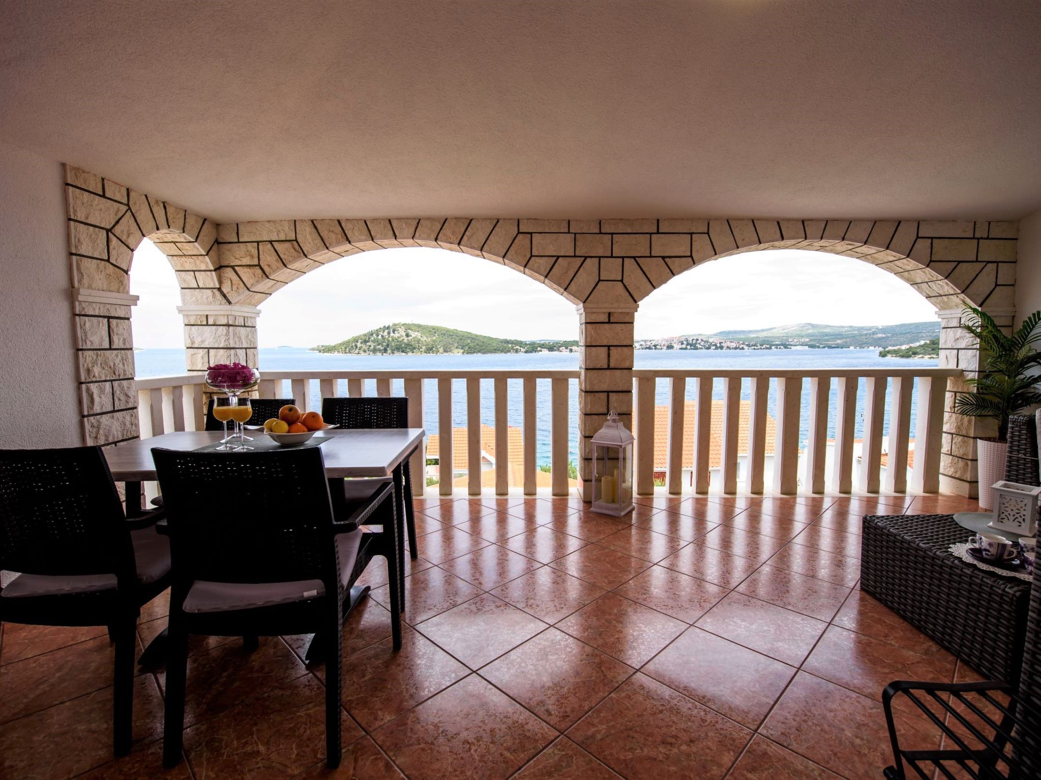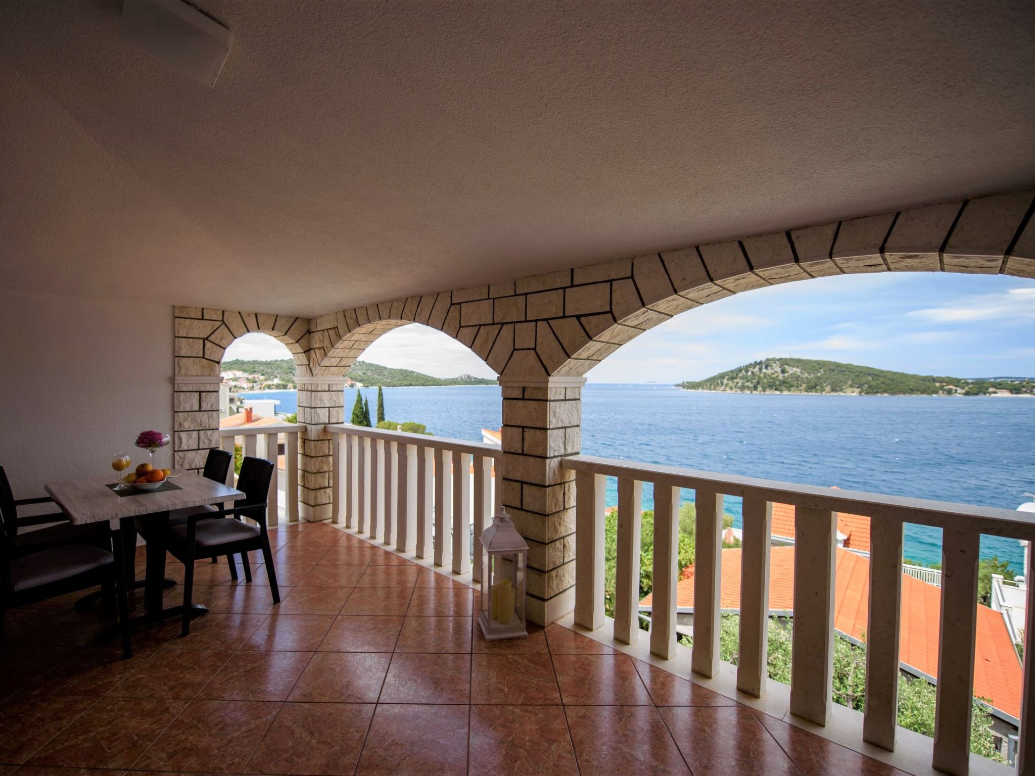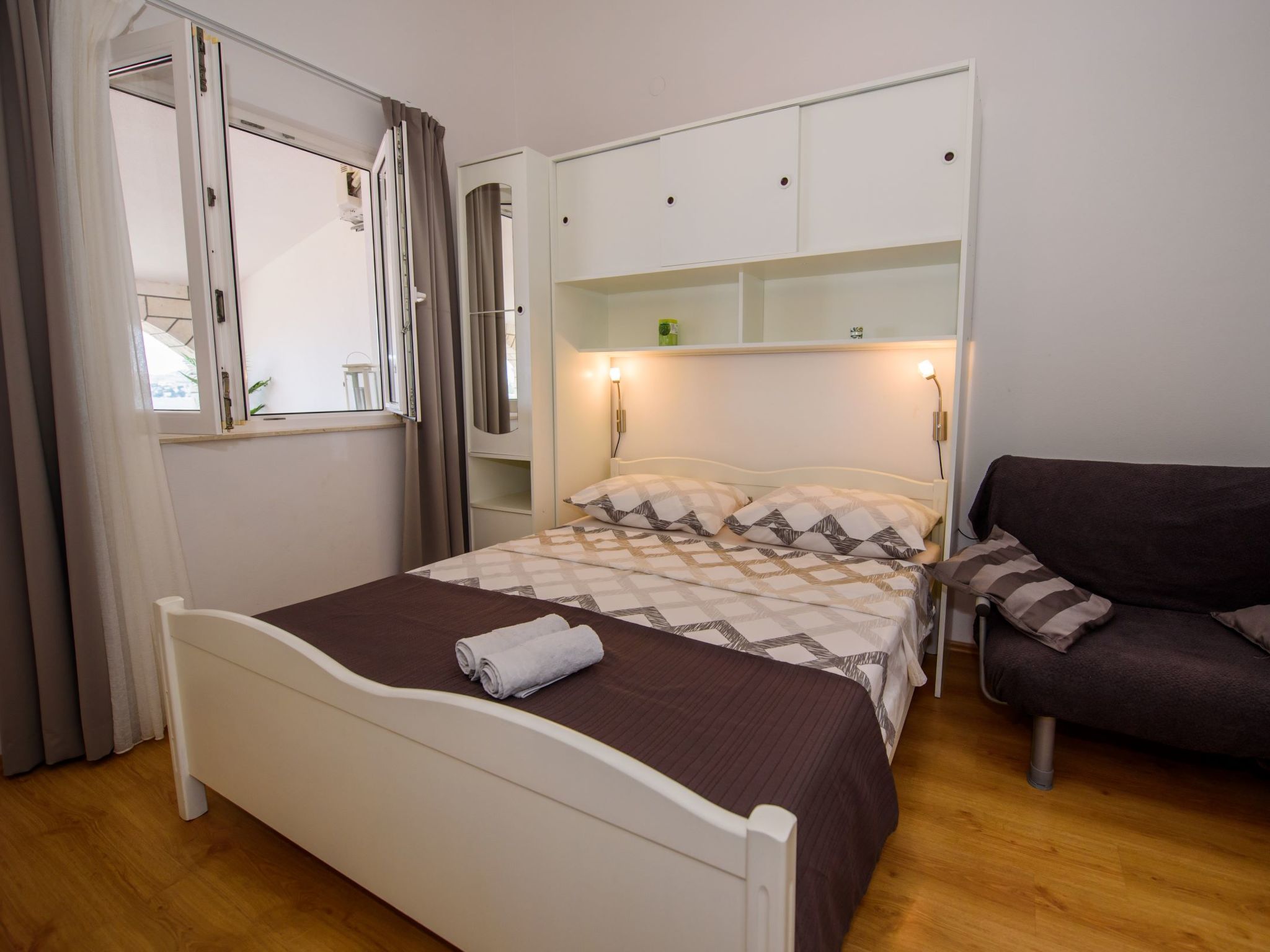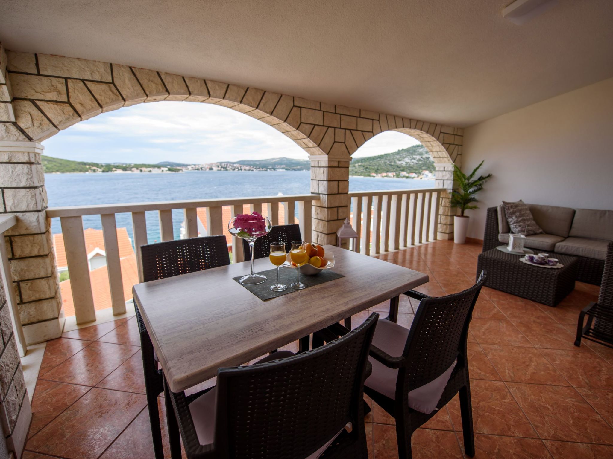 Razanj 10 km van Rogoznica: Mooi flatgebouw "Marina". In de wijk Ljoljinica, rustige, verhoogde ligging, 40 m van zee. Voor medegebruik: buitendouche, terras, tuinmeubelen, barbecue, overdekte parkeerplaats bij het huis op het terrein, gemeenschappelijke garage. Winkel, restaurant 200 m, bushalte 5.1 km, rotsstrand 40 m. Vergelijkbare accommodaties kunnen worden geboekt.
