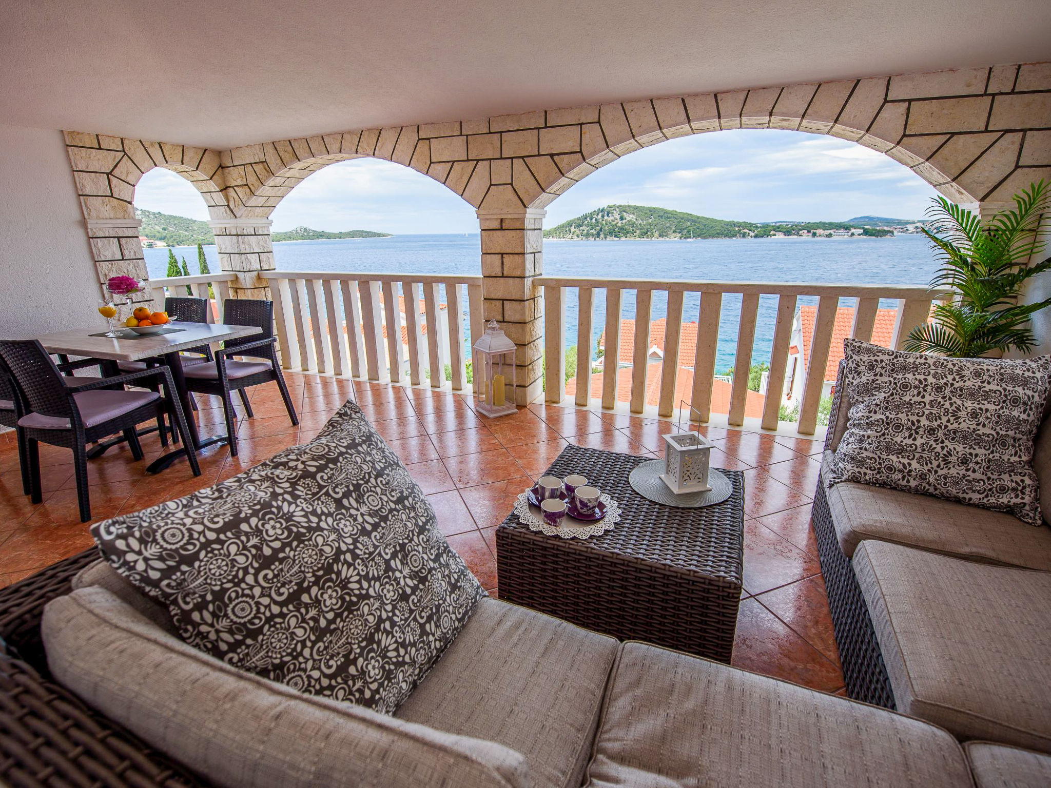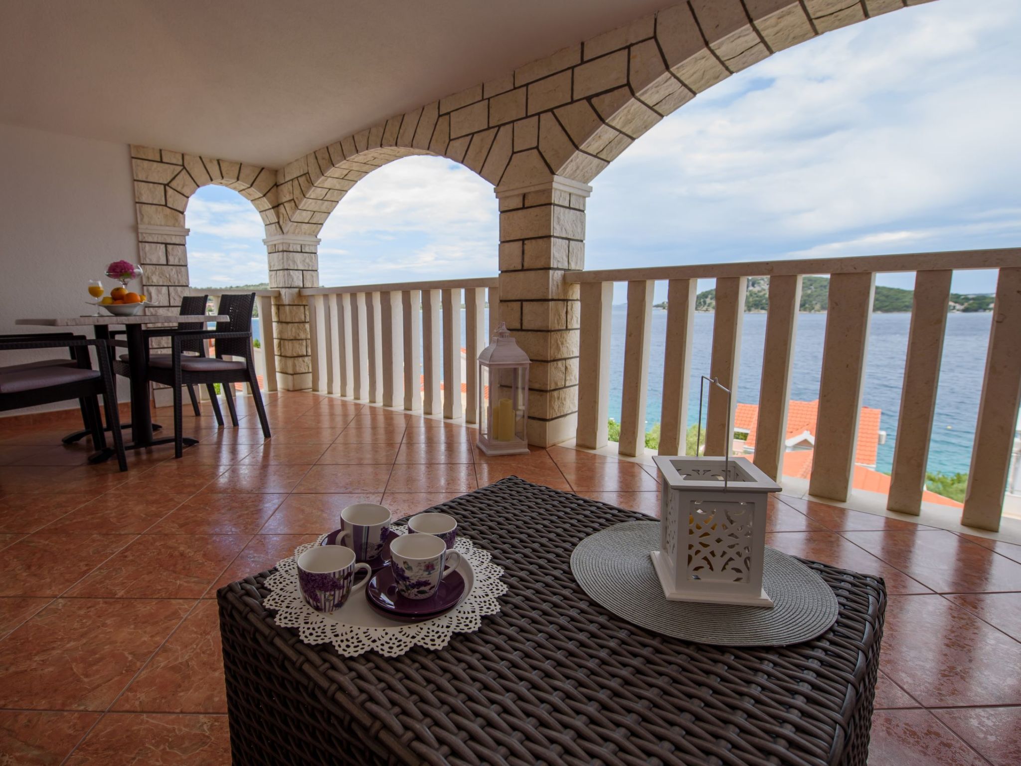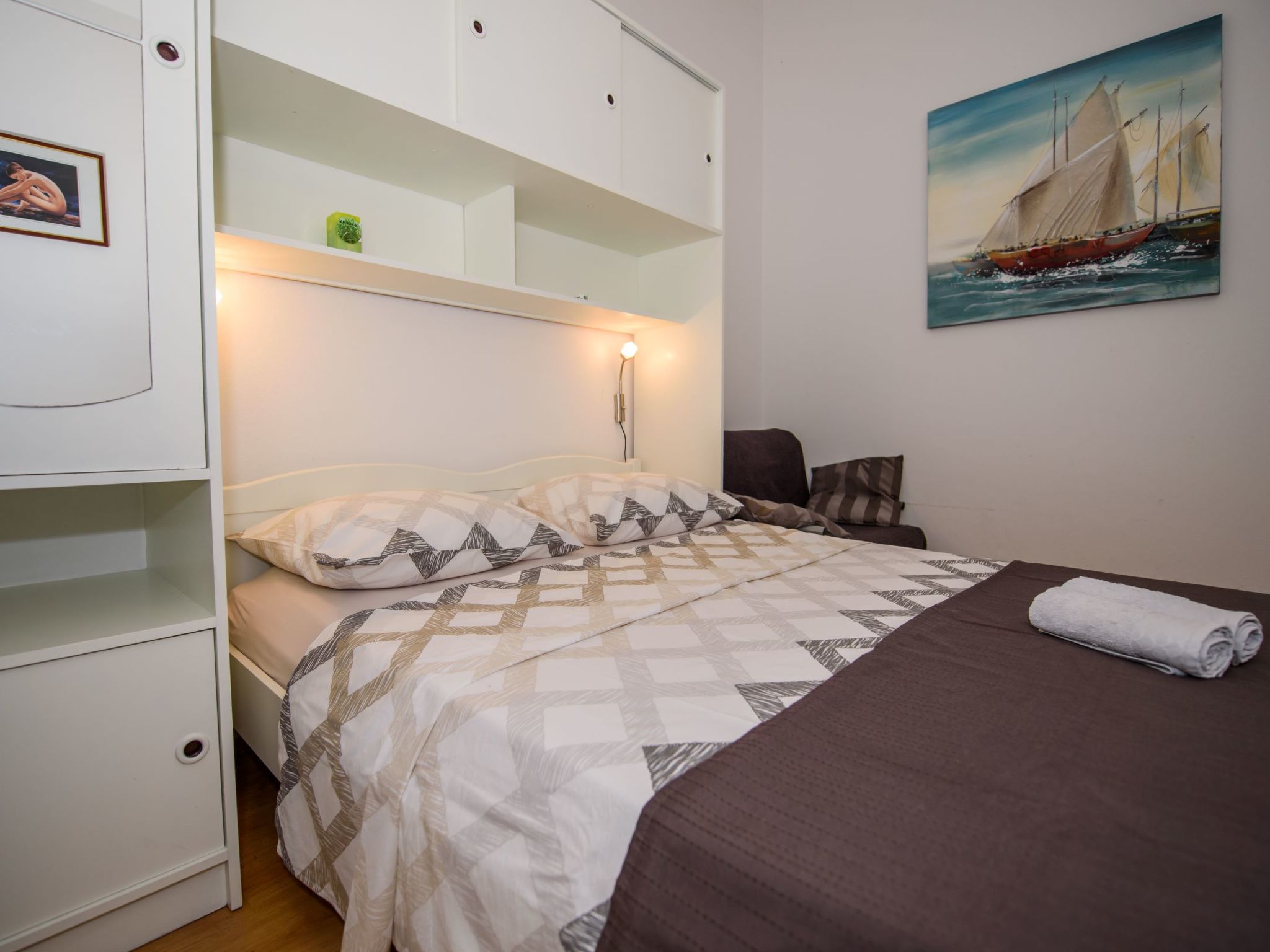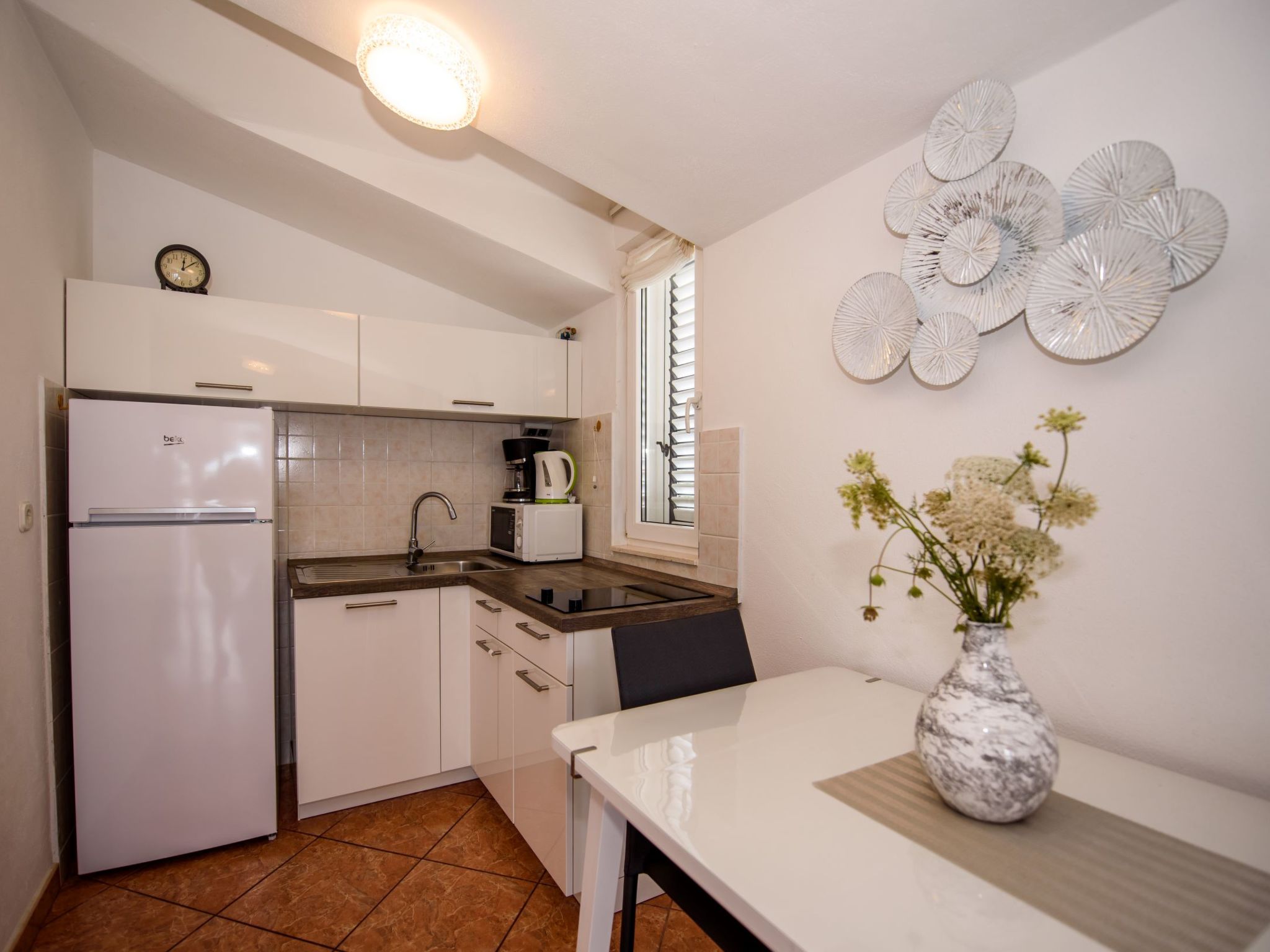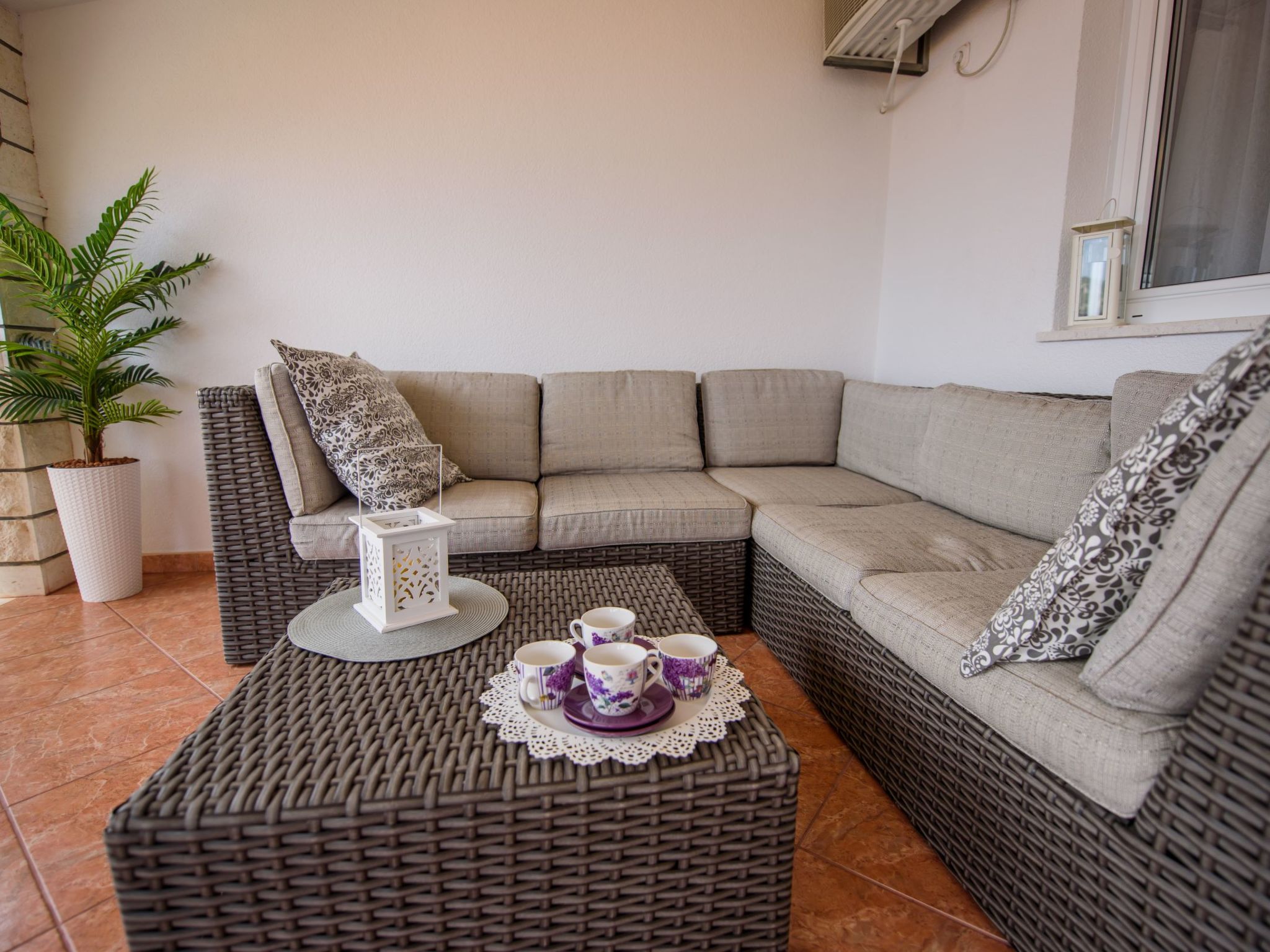 Razanj 10 km van Rogoznica: Mooi flatgebouw "Marina". In de wijk Ljoljinica, rustige, verhoogde ligging, 40 m van zee. Voor medegebruik: buitendouche, terras, tuinmeubelen, barbecue, overdekte parkeerplaats bij het huis op het terrein, gemeenschappelijke garage. Winkel, restaurant 200 m, bushalte 5.1 km, rotsstrand 40 m. Vergelijkbare accommodaties kunnen worden geboekt.