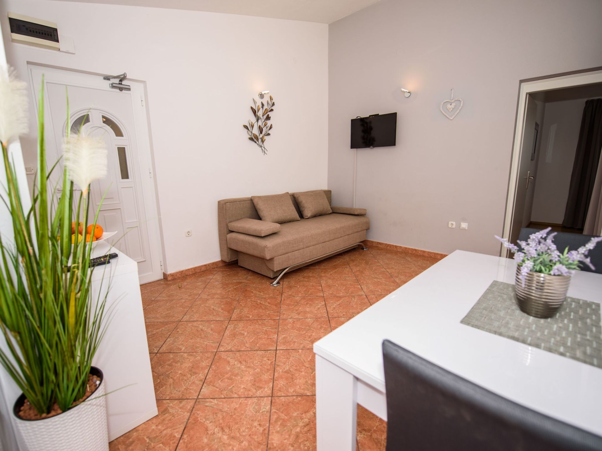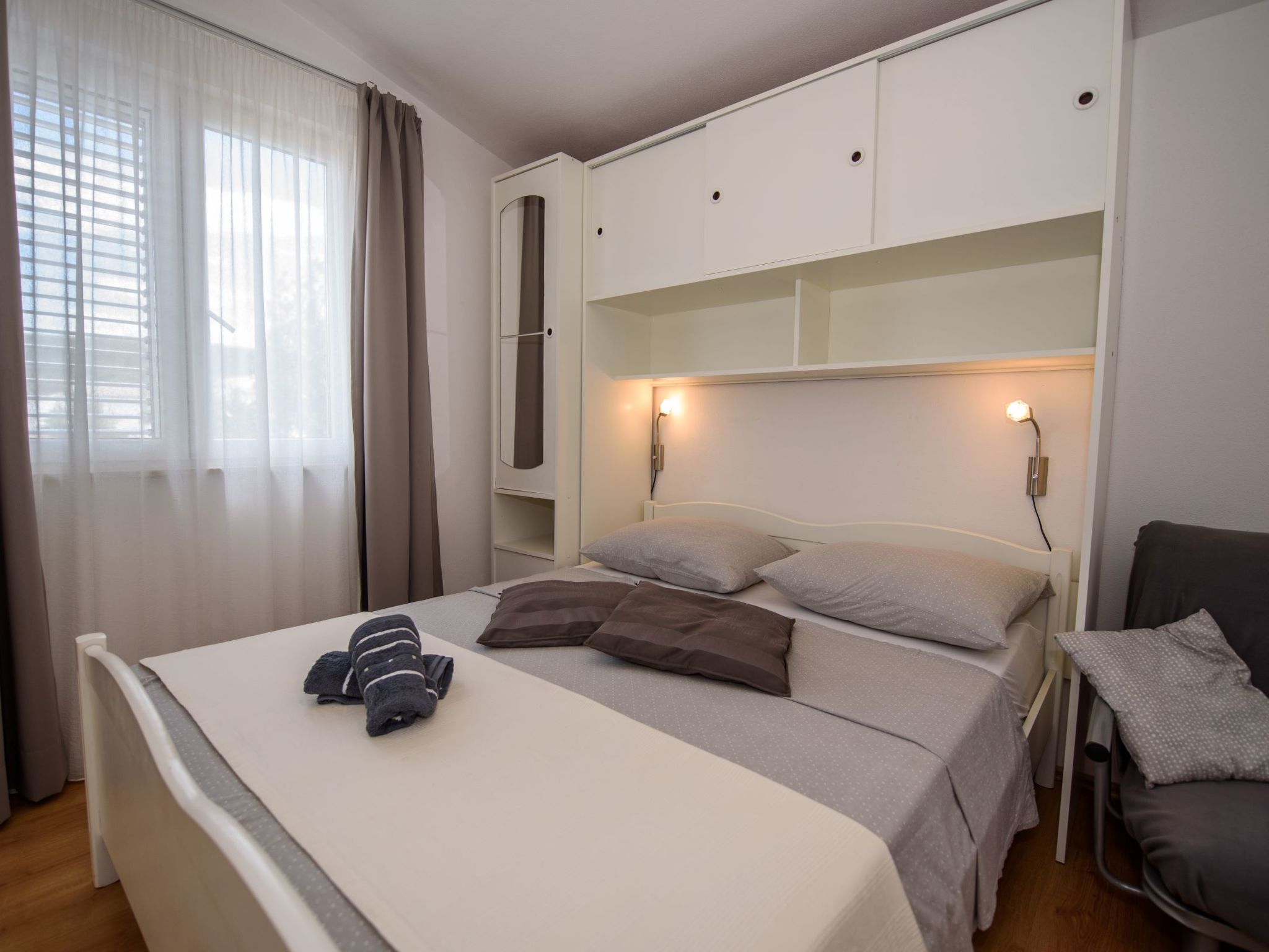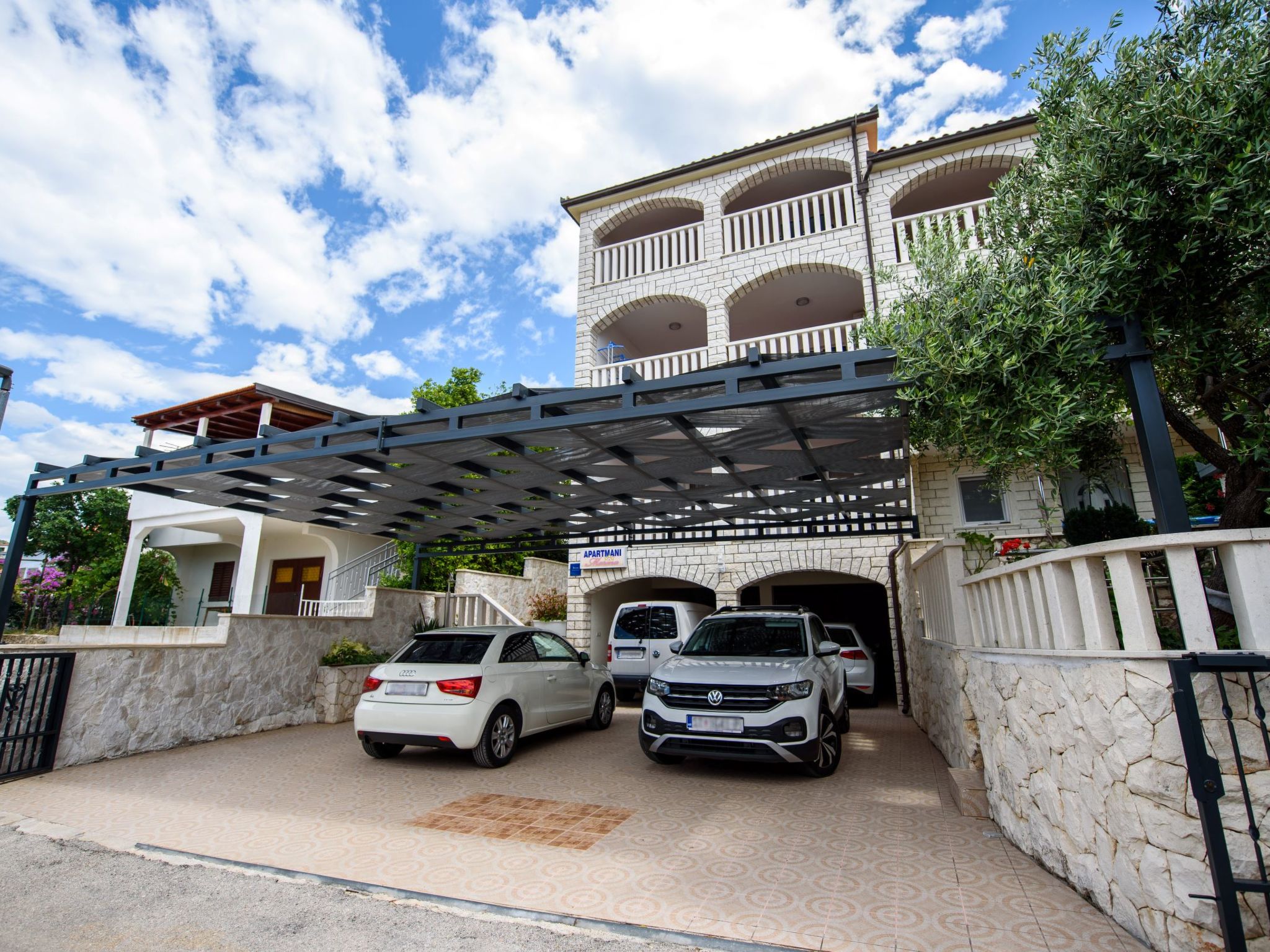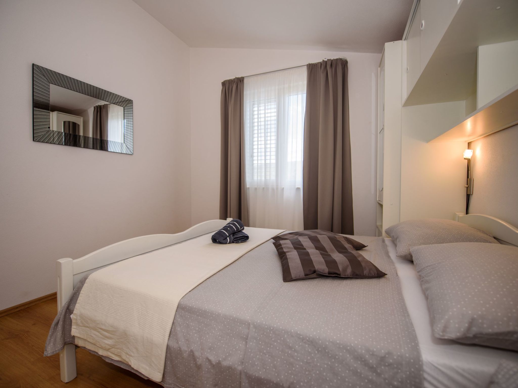 Razanj 10 km van Rogoznica: Mooi flatgebouw "Marina". In de wijk Ljoljinica, rustige, verhoogde ligging, 40 m van zee. Voor medegebruik: buitendouche, terras, tuinmeubelen, barbecue. In het huis: internetaansluiting. Overdekte parkeerplaats bij het huis op het terrein, gemeenschappelijke garage. Winkel, restaurant 200 m, bushalte 5.1 km, rotsstrand 40 m. Vergelijkbare accommodaties kunnen worden geboekt.