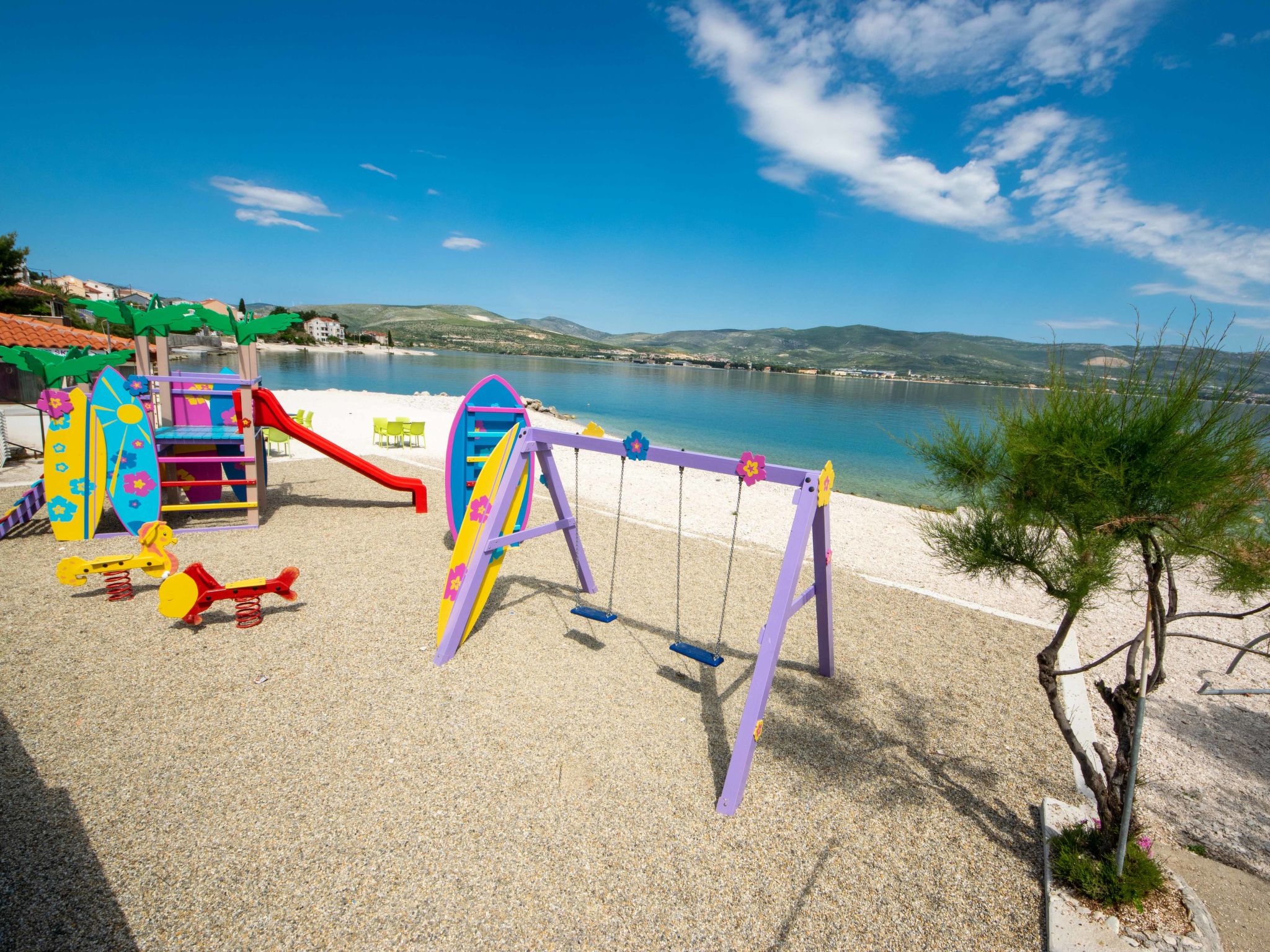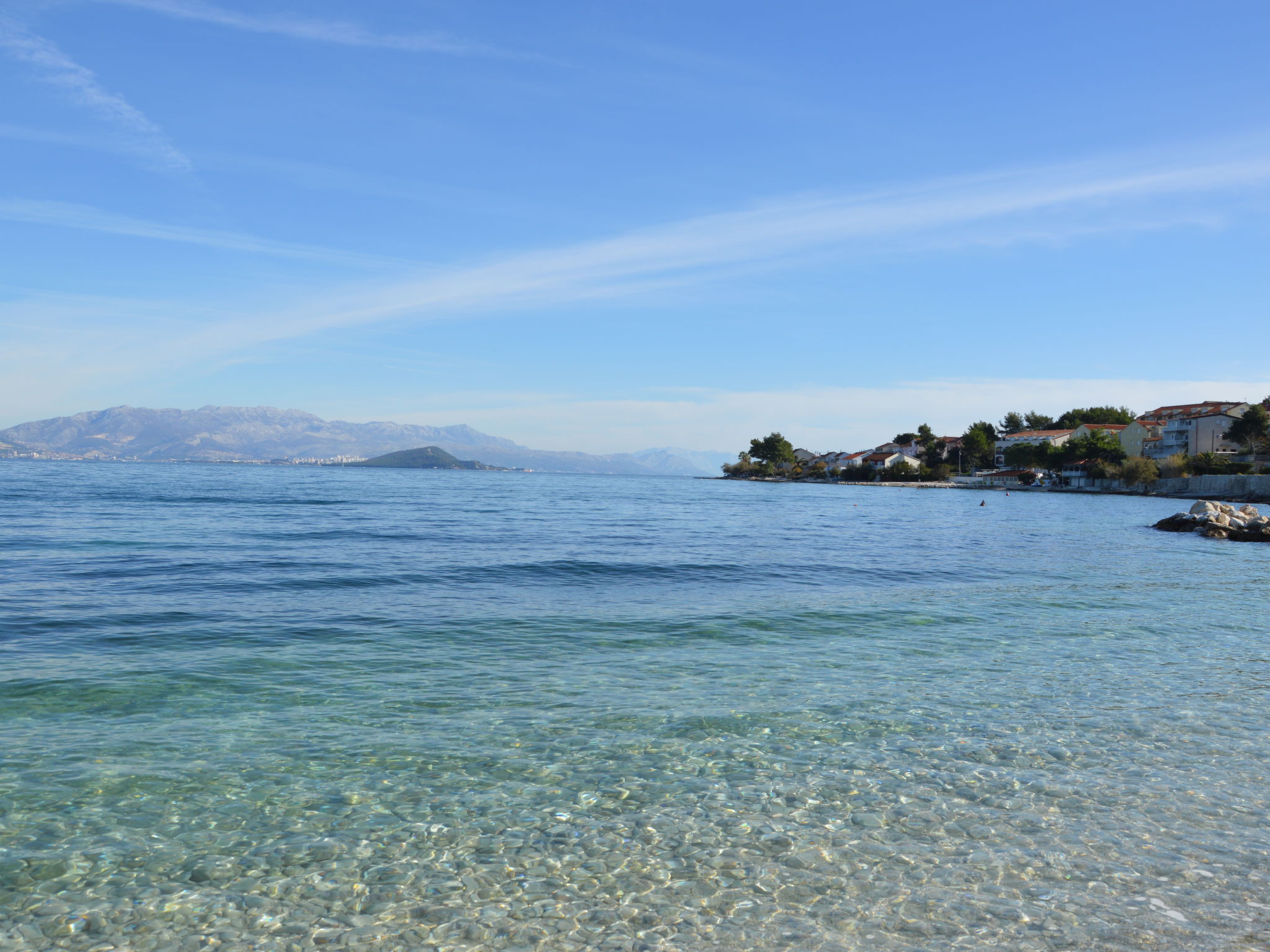 Dit is een praktisch gelegen strandje bij Trogir, ideaal voor kinderen. Het water wordt maar langzaam dieper, wat ruimte geeft voor kinderen in verschillende leeftijden.