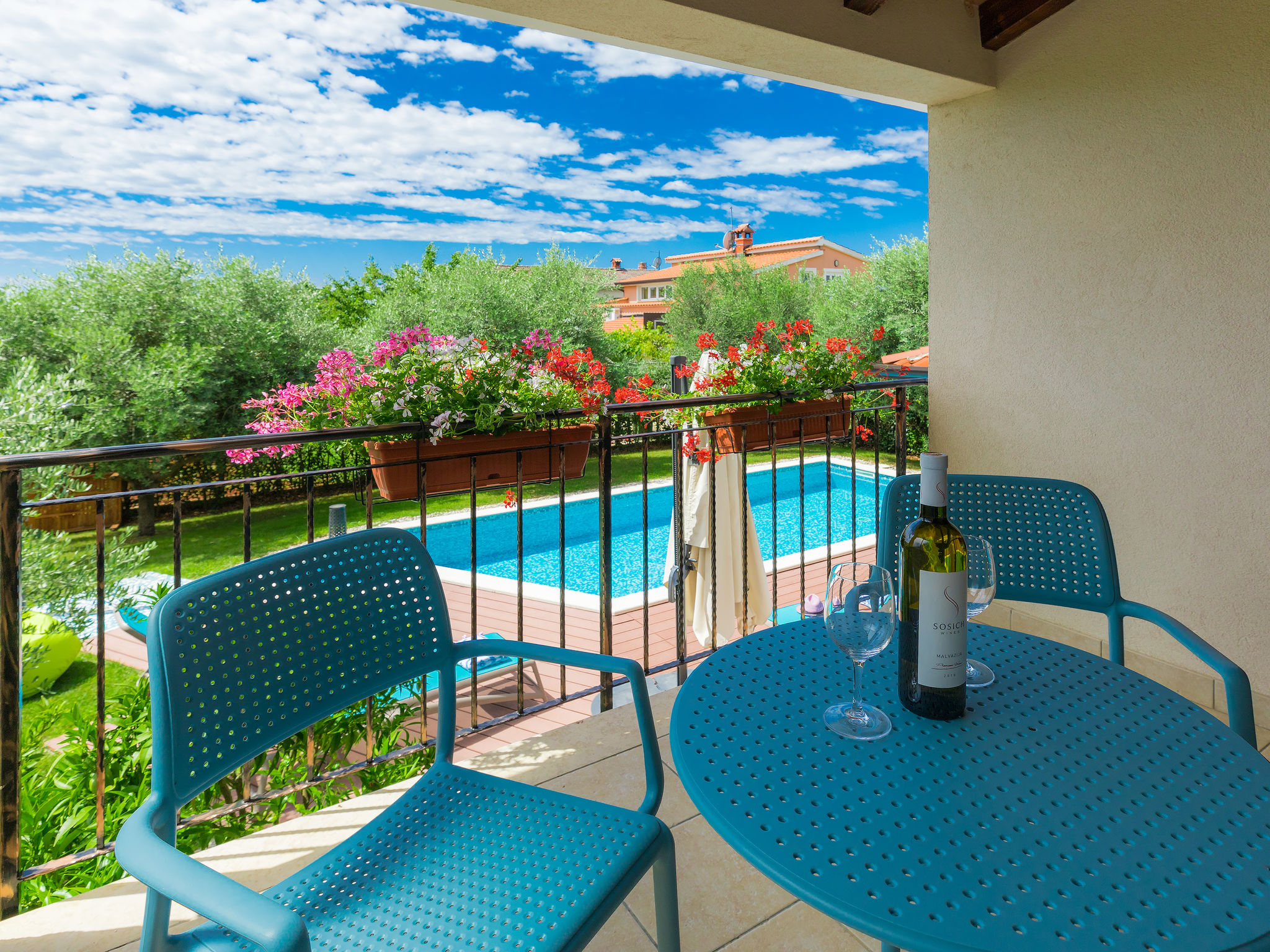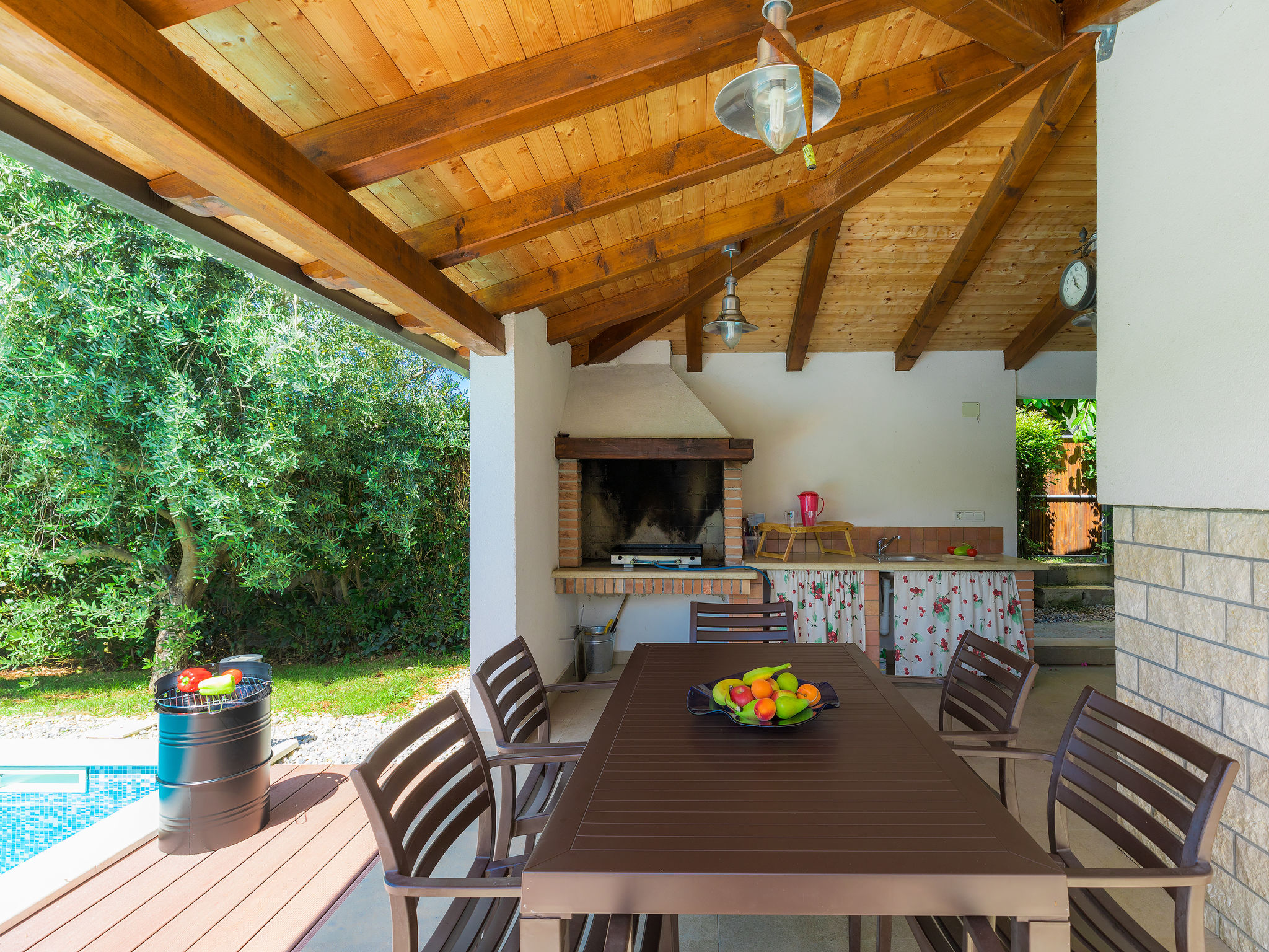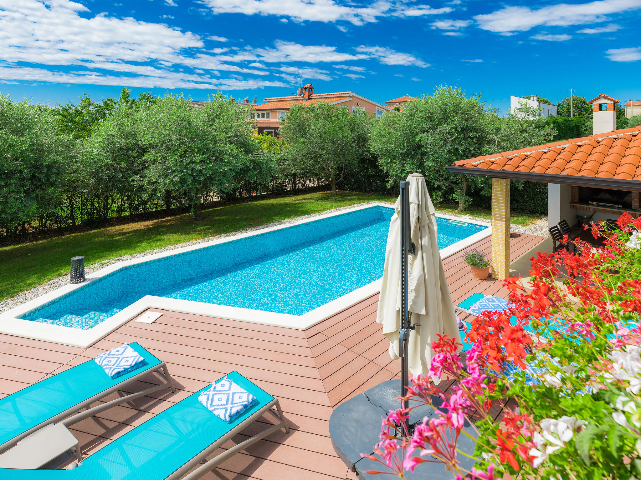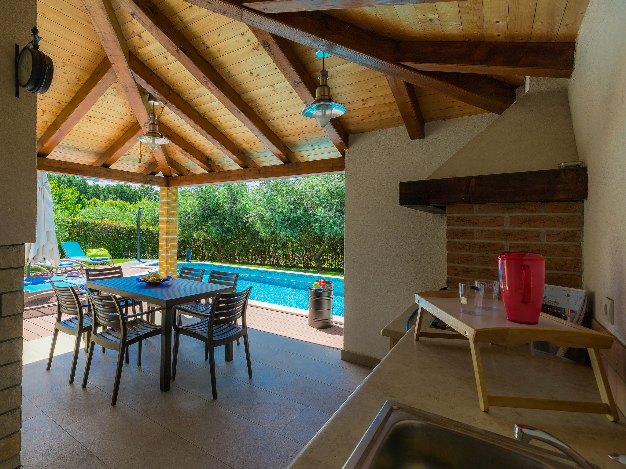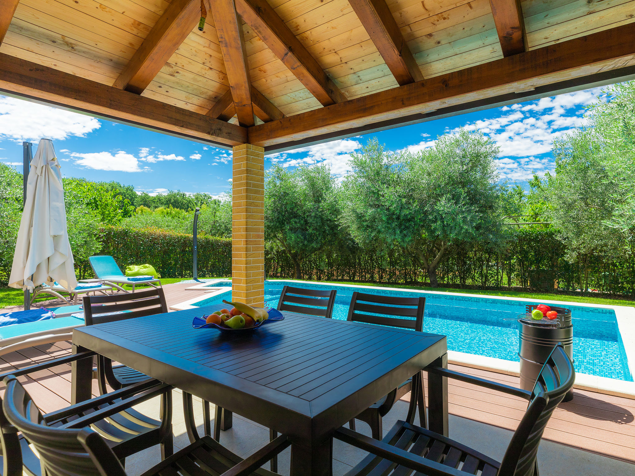 Mooi zwembad met zicht op zee in Novigrad. Er is een zwembad met zeewater en de bar biedt eten en drinken. Het eenvoudige podium biedt overdag diverse activiteiten en een programma, 's avonds optredens van diverse bands.