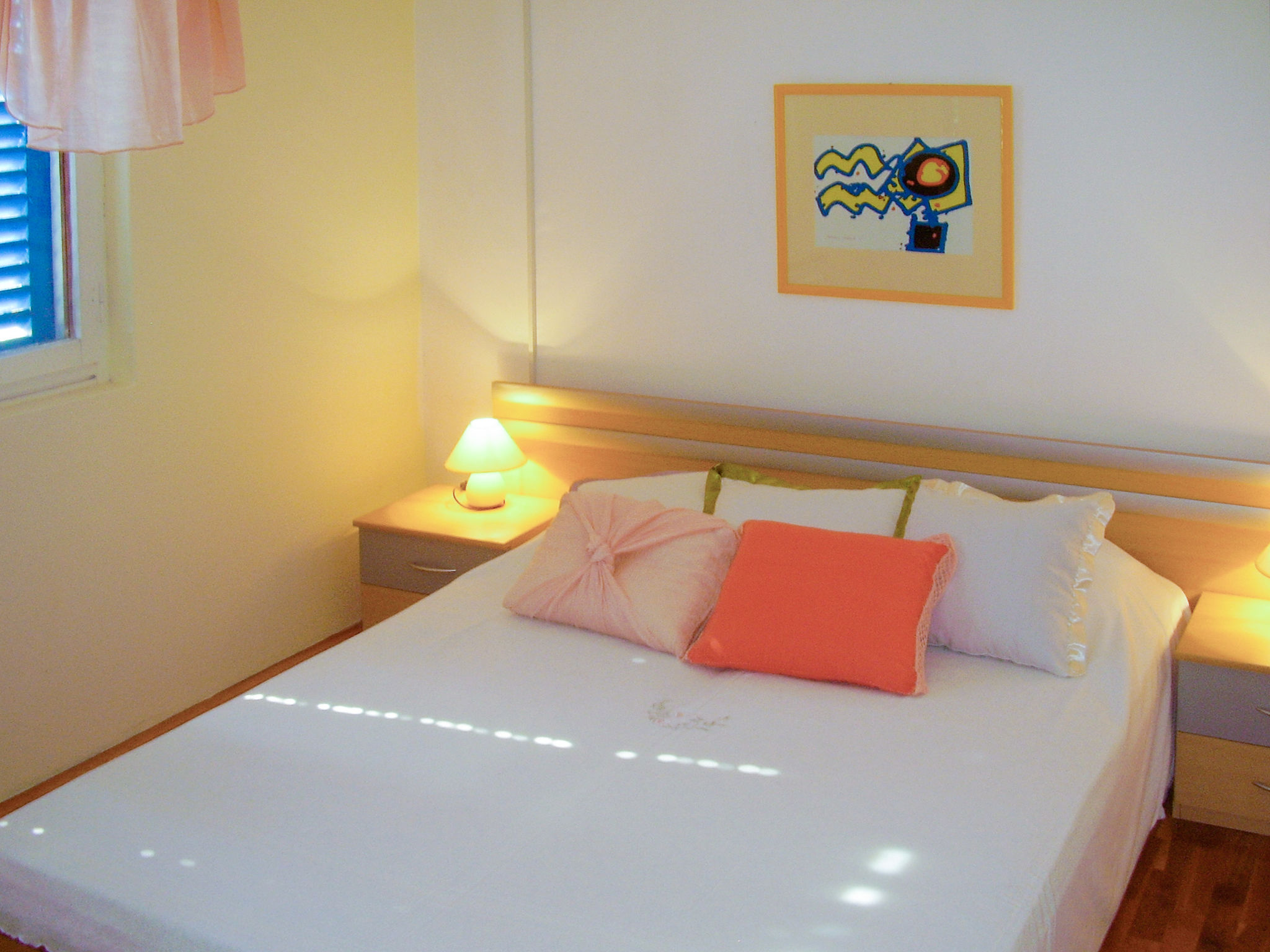 "Palma", appartement 2-kamers 40 m2, op de begane grond. Hal met air-conditioning. 1 kamer met 2 bedden. 1 kamer met 1 2-pers bed. Keuken (2-pits kookplaat, afwasmachine, broodrooster, waterkoker, magnetron, elektrische koffiemachine) met eettafel, Sat-TV. Uitgang naar het balkon. Bad/bidet/WC. Balkon 8 m2. Balkonmeubilair, barbecue (verrijdbaar). Uitzicht op zee. Ter beschikking: Internet (Internet (WiFi), gratis). Rookvrij huis.