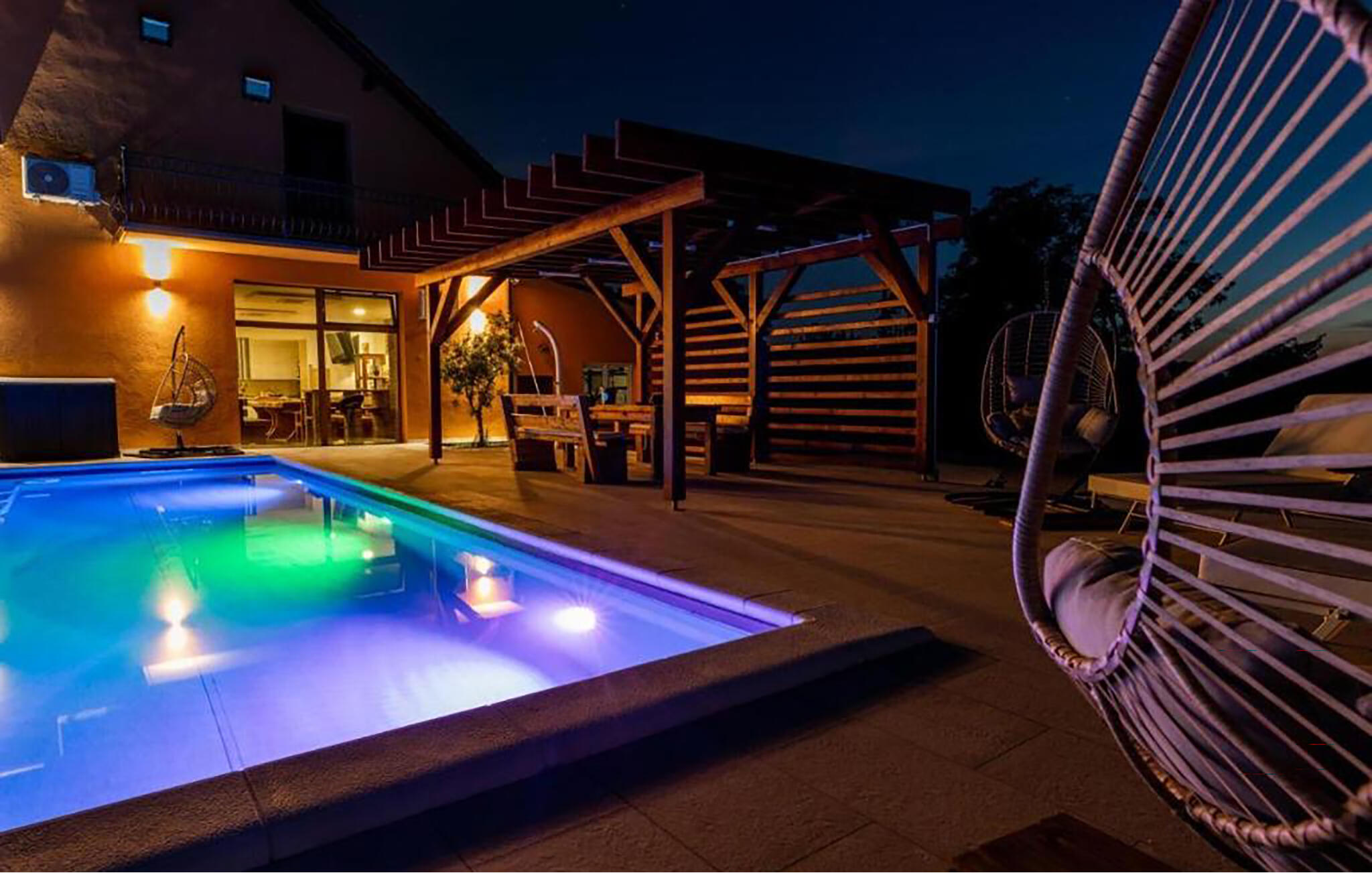De goed onderhouden buitenruimte heeft een heerlijk zwembad waar je een verfrissende duik kunt nemen. Doe nieuwe energie op in de comfortabele ligstoelen terwijl de kinderen het grote terrein verkennen en vier jullie tijd samen met sfeervolle barbecue-avonden.