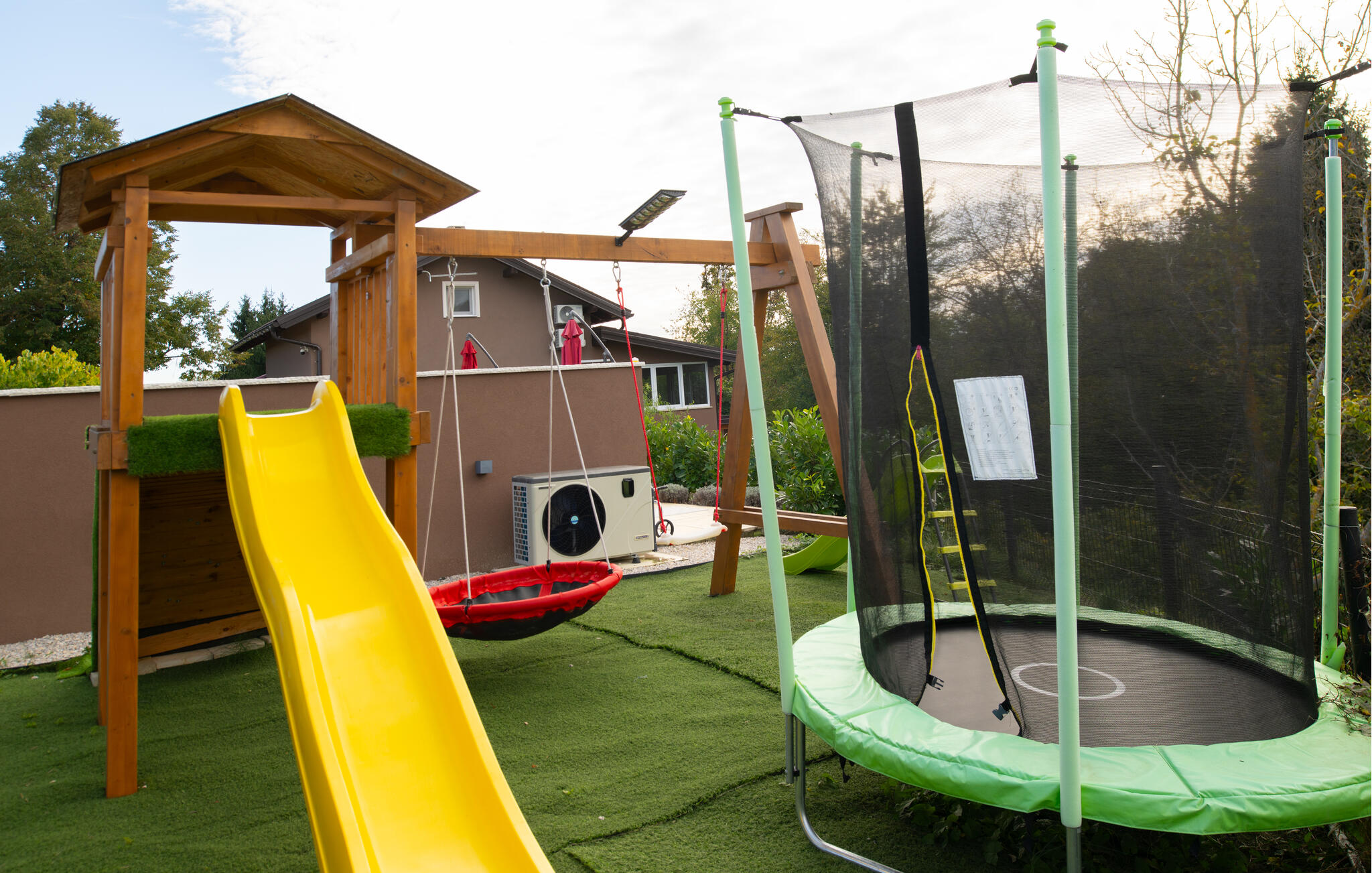 Ervaar puur comfort en ontspanning in dit gezinsvriendelijke vakantiehuis. Geniet van de moderne inrichting van hoge kwaliteit en voel je thuis op de twee verdiepingen. De open galerij van het huis creëert een luchtig gevoel van ruimte, terwijl het woongedeelte uitnodigend is ontworpen. Kinderen zullen genieten van de vele speeltoestellen binnen en buiten, terwijl je kunt ontspannen in het overdekte SPA-gedeelte met whirlpool of in het verwarmde buitenzwembad. De sociale ruimte met tafelvoetbal en darts zorgt voor gezellige avonden. Ontspan op de verschillende terrassen, waarvan een met een zomerkeuken, of kijk vanuit de hangmat naar je kinderen die in de speeltuin spelen.