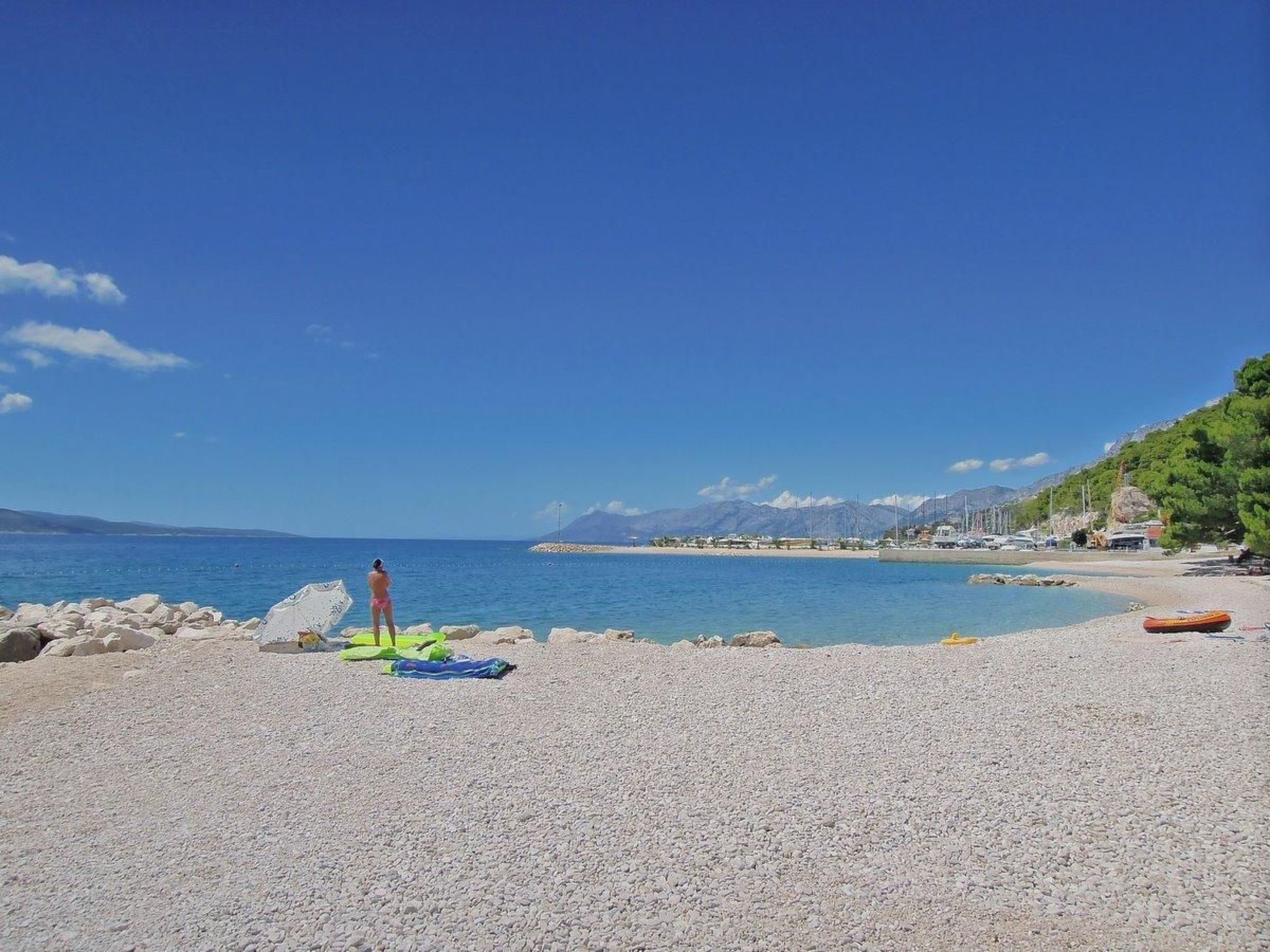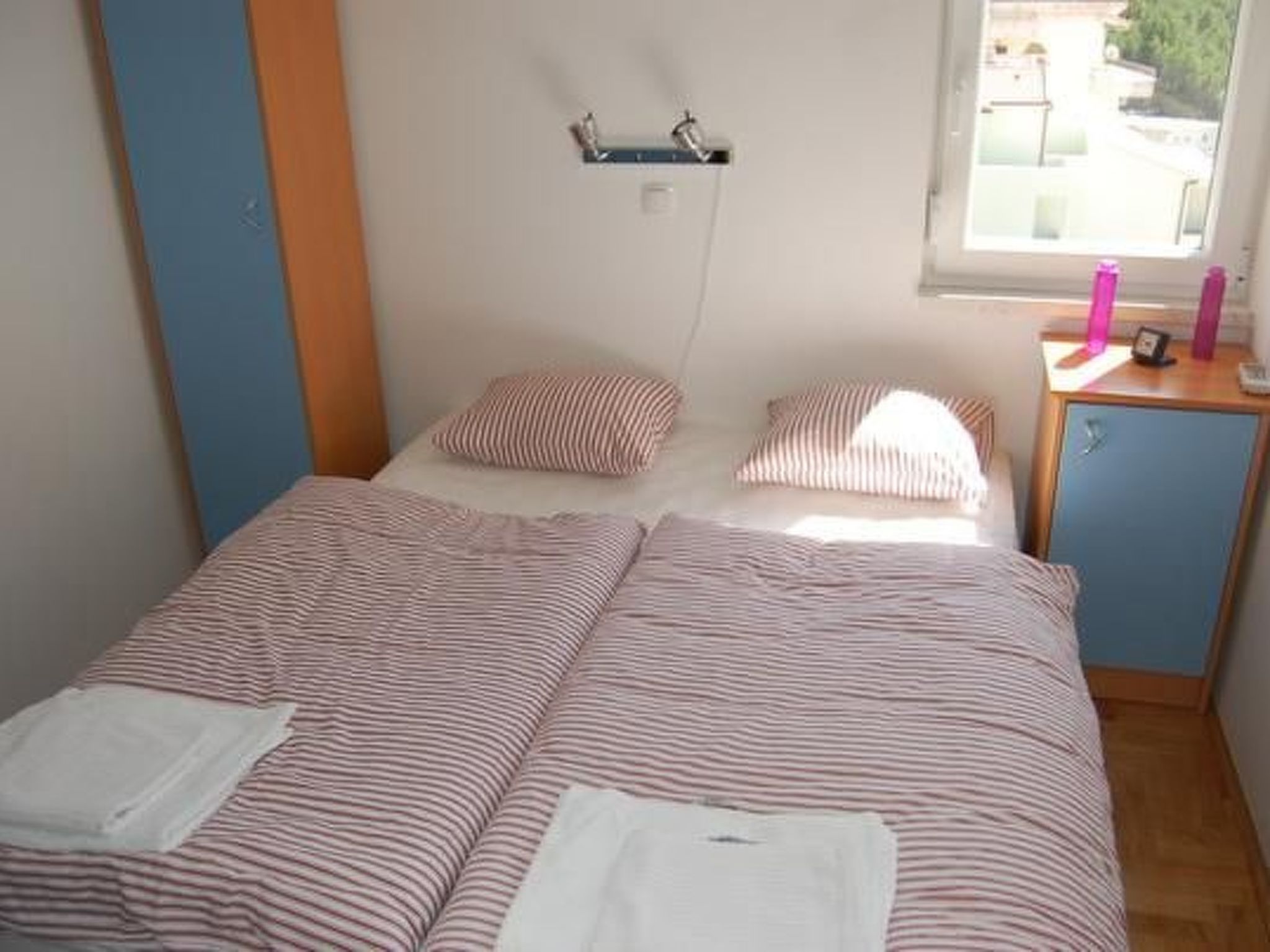 This is an apartment with a beautiful terrace with a breathtaking panoramic view over the Adriatic sea and islands of Brac and Hvar, ideal for a family vacation. Living room with kitchen, bathroom with bath tub and two bedrooms with double beds are on one floor, while on the split-level is another bedroom with two single beds and a bathroom. The apartment is tastefully furnished, well equipped, has got air conditions, and it is located on the top of a new building. A leisurely walking down the hill for about ten minutes you will arrive at the pebble beach. In the shade of pine trees you can easily spend the whole day, or at the nearby beach facilities you may have a drink, eat ice cream or snack. Parking is provided in the parking lot behind the building. Krvavica is placed 6 km south of Baška Voda, and 2 kilometers north from Makarska and only 55 kilometers south from Split, and is highly recognizable by Biokovo - beautiful nature park that rises above it as a faithful guardian. Today Krvavica offers modern apartments and rooms in private houses, small grocery store and restaurants, and with the beginning of the new millennium the place gets a marina/harbor. Besides the white pebble beach, the place is ideal to have a relaxed vacation enjoying in the shade of pines.