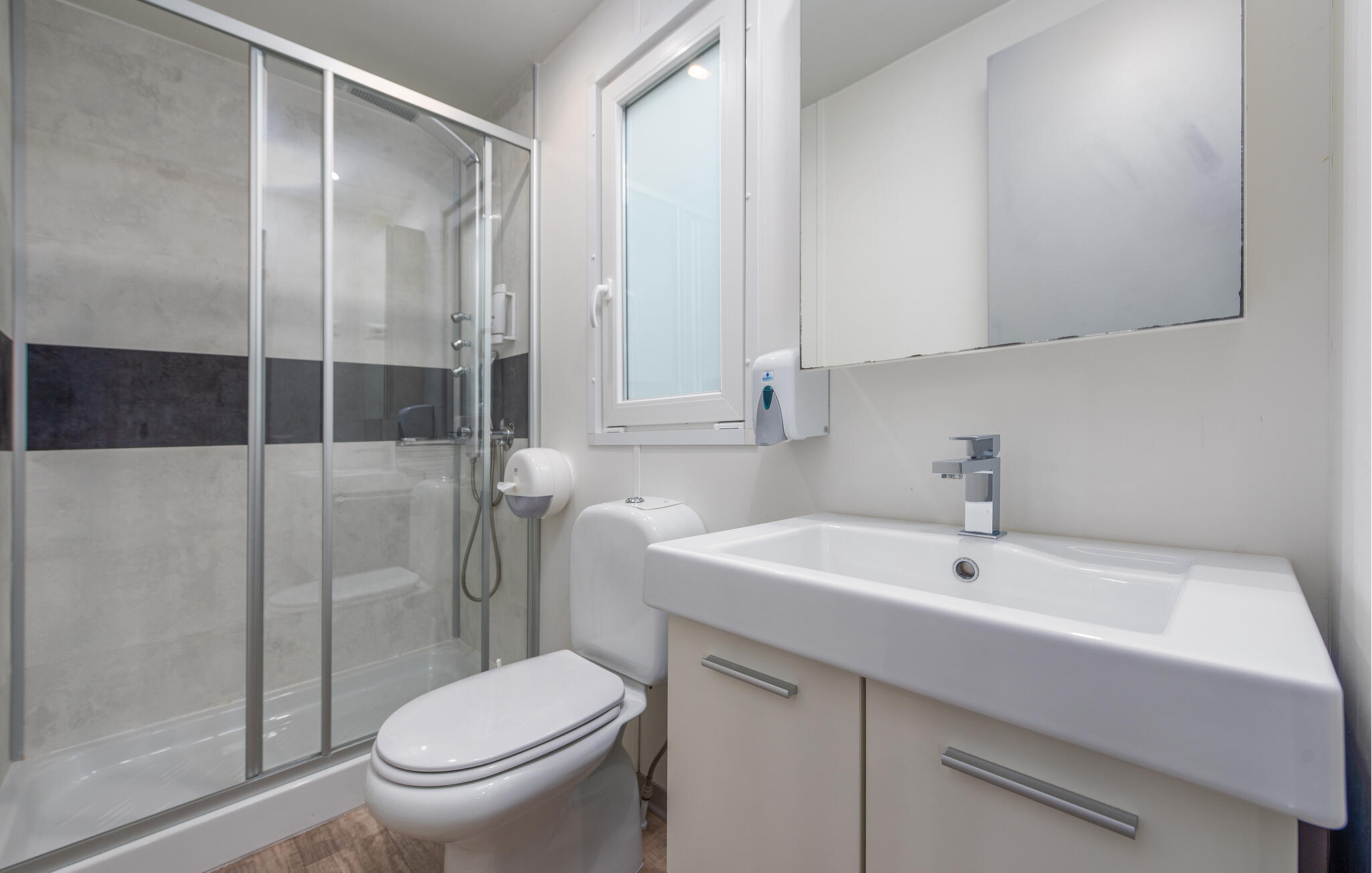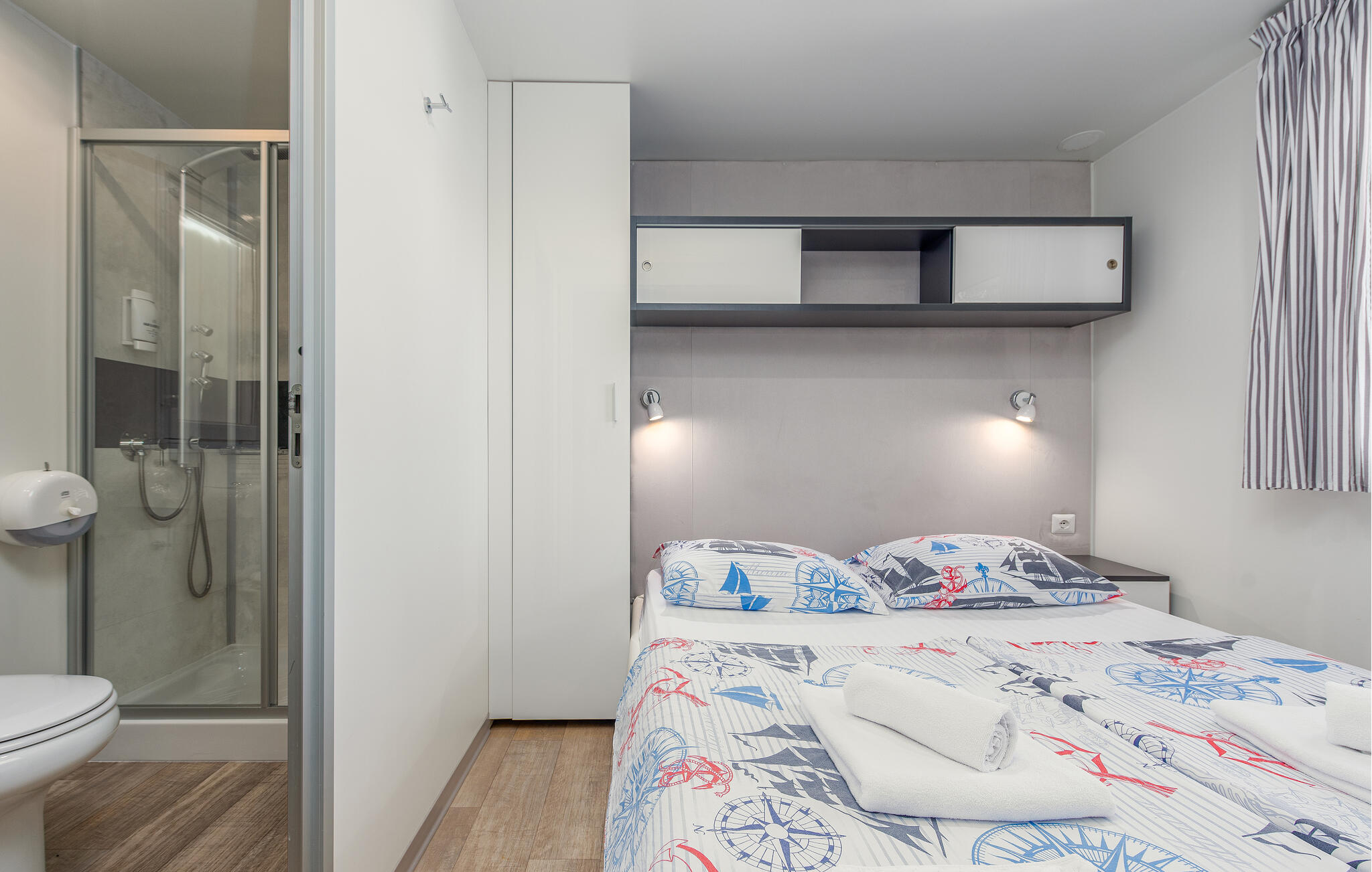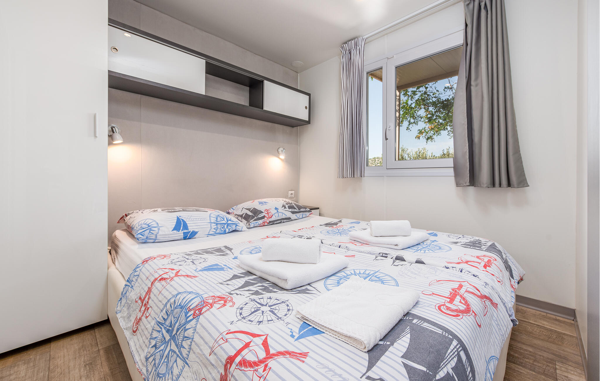 Indeling: Slaapkamer(1x 2-persoonsbed(den)), Slaapkamer(2x 1-persoonsbed(den)), Woonkamer met open keuken(2x Opklapbed(den) of matras(sen)), Badkamer(Toilet: warm en koud water, Douche), Badkamer(Toilet: warm en koud water, Douche), Terras of vergelijkbaar(Overdekt terras)