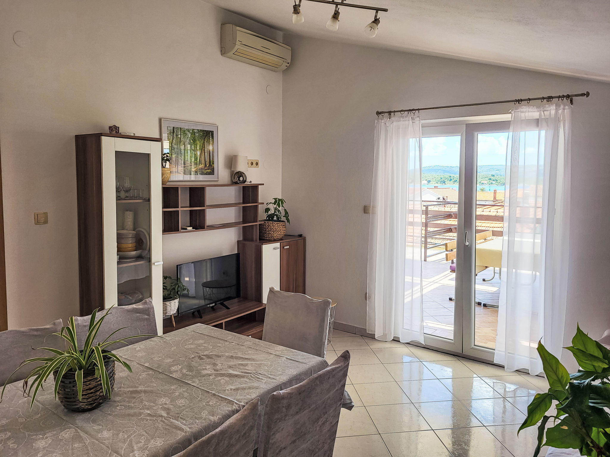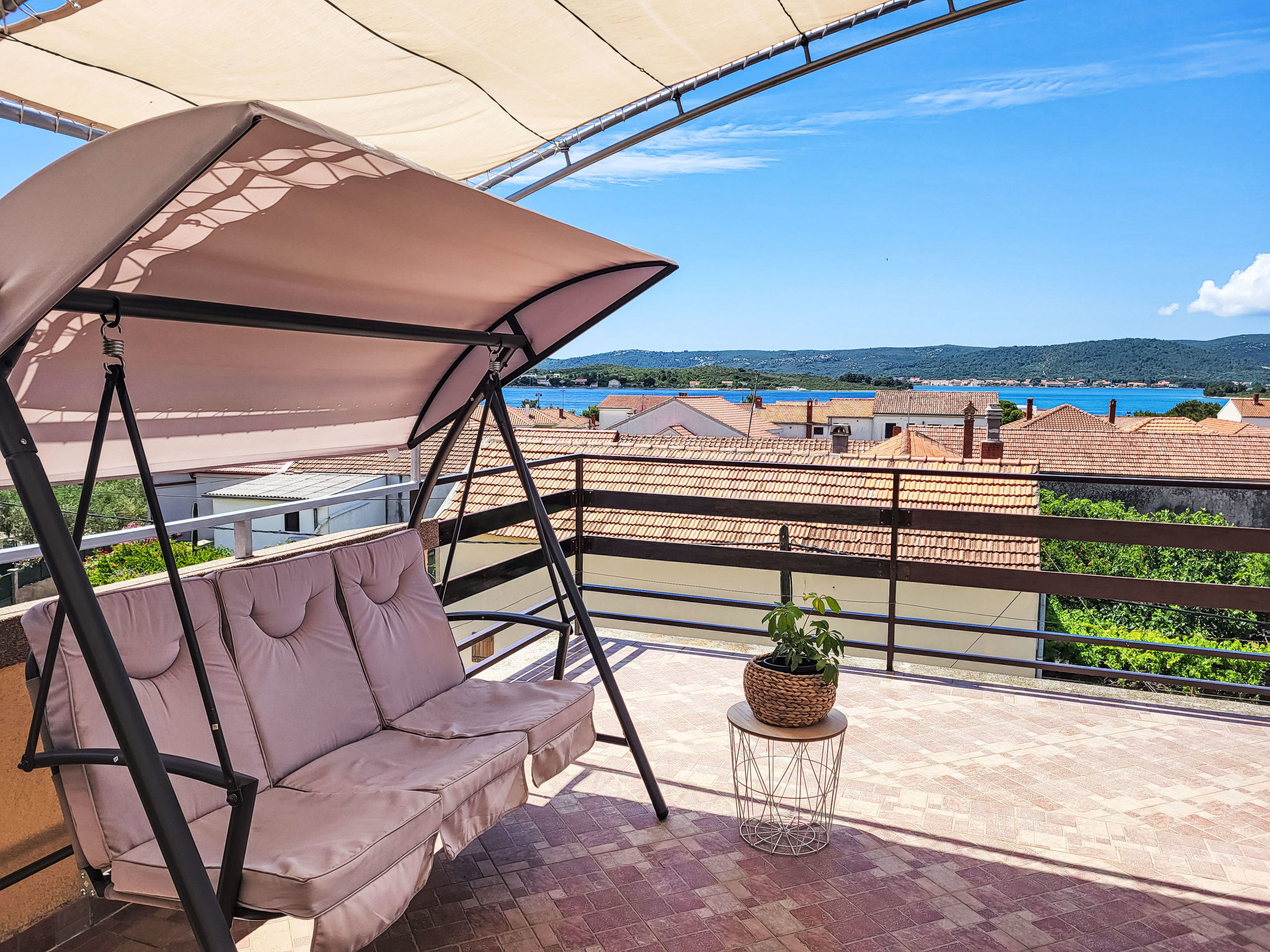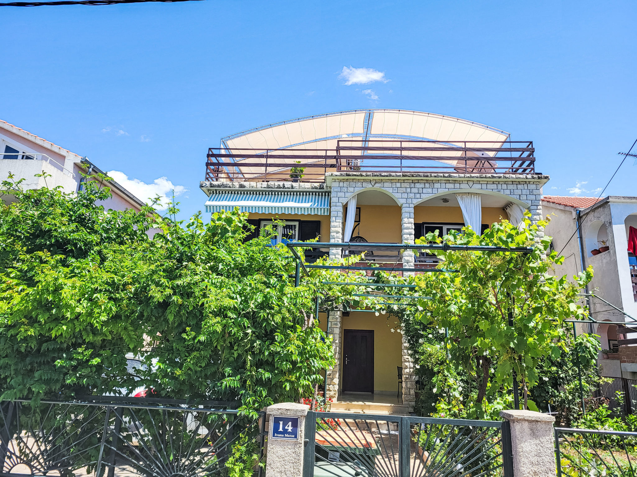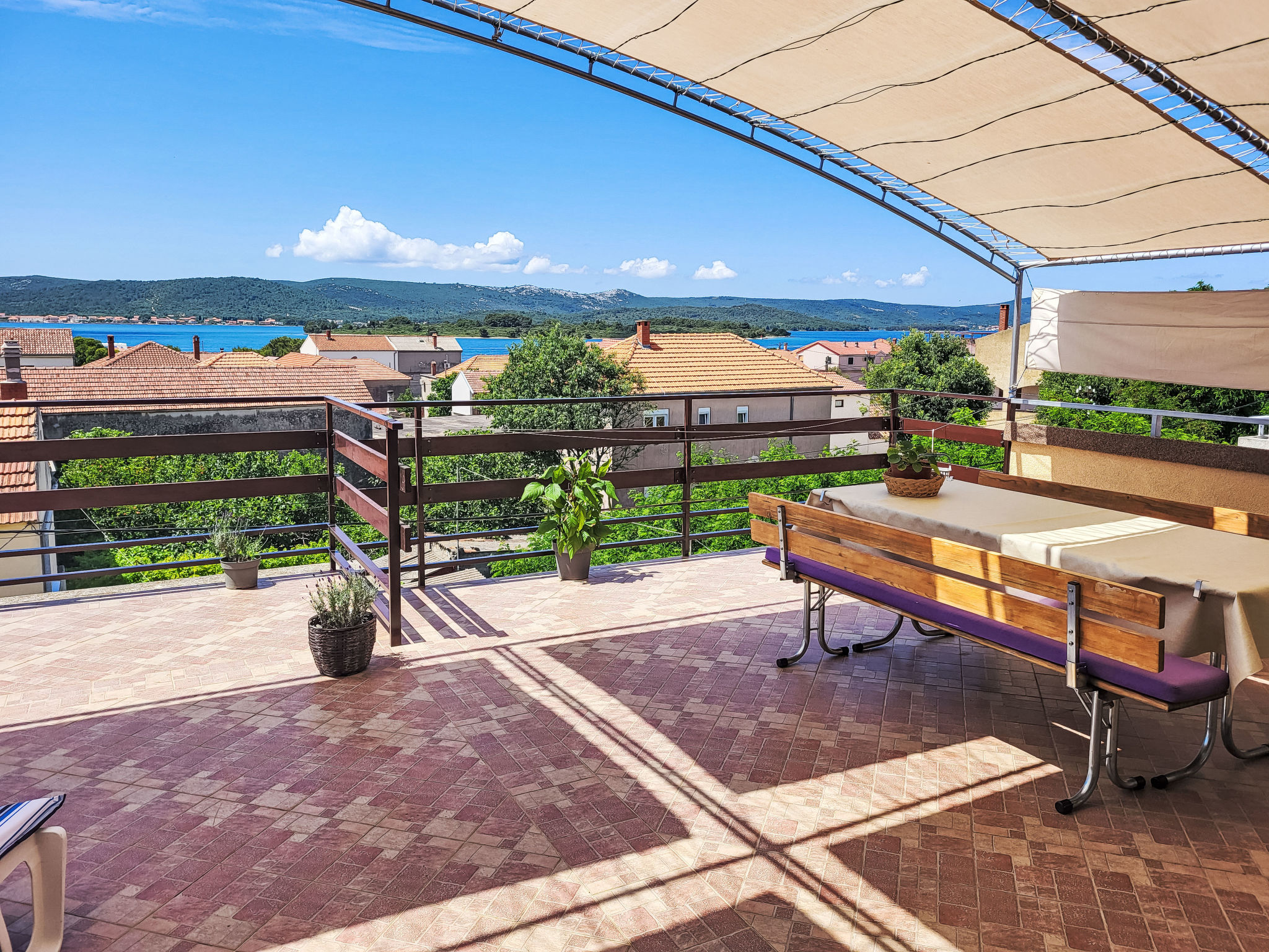 Turanj 1 km van Sv. Filip i Jakov: Huis met 3 woningen "Ana". 100 m van het centrum van Turanj, 5 km van het centrum van Biograd, 200 m van zee, 200 m van het strand. Voor medegebruik: terrein 400 m2 (omheind), tuin met planten. In het huis: internetaansluiting. Parkeerplaats op het terrein. Winkel 150 m, restaurant 200 m, bushalte 120 m, kiezelstrand 200 m.