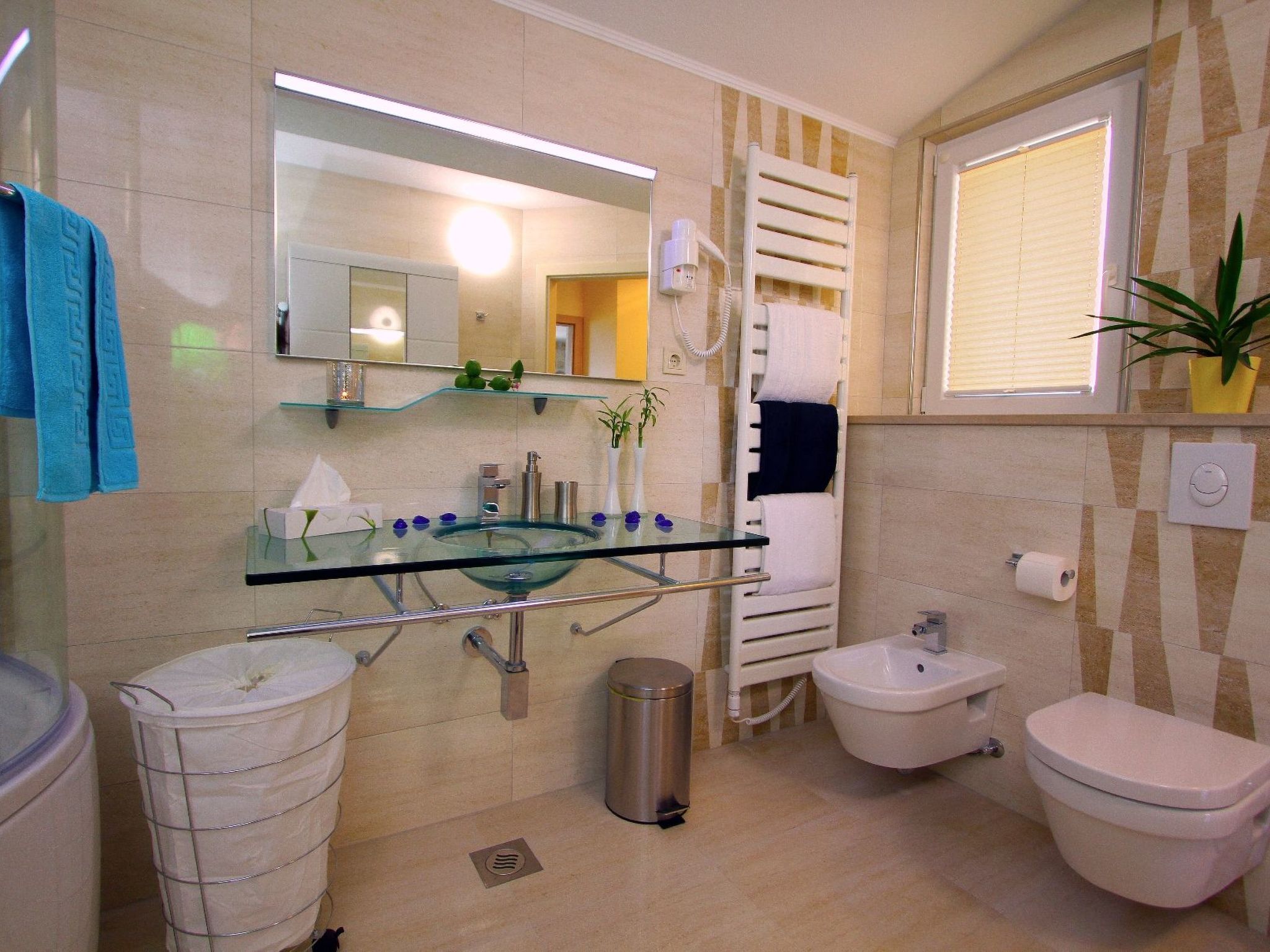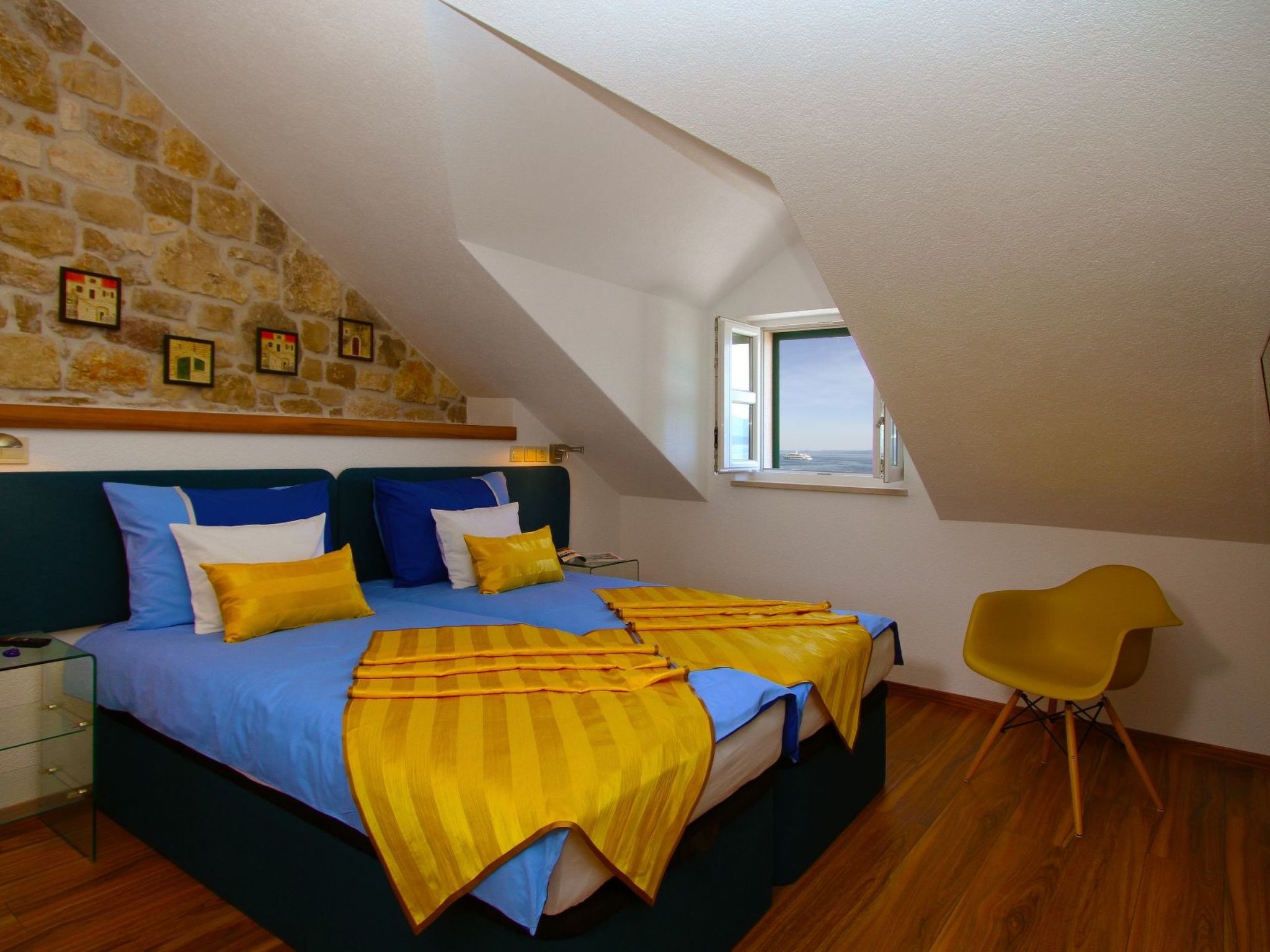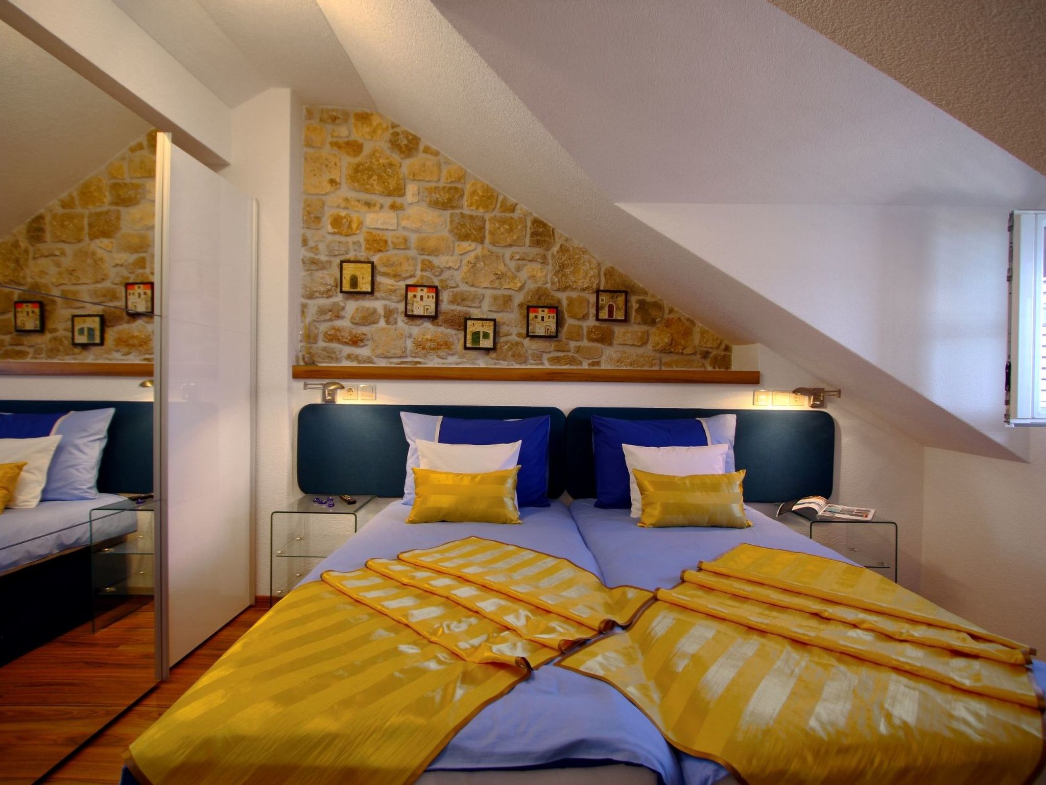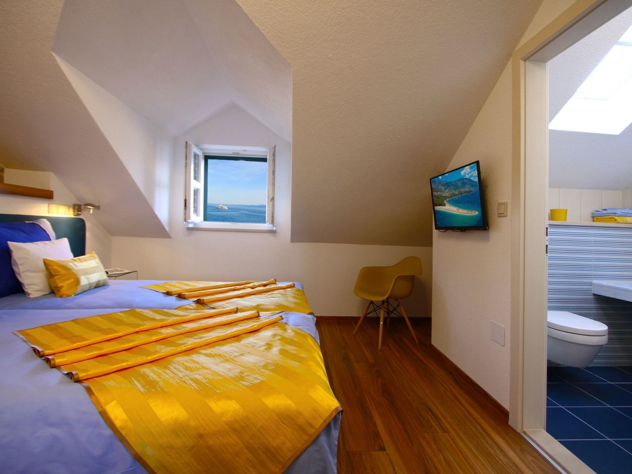For your unforgettable vacation we prepared a luxury apartment – the modern part of an attractive Dalmatian house with breathtaking sea view. It is situated in an amazing location, just a few steps from the sea on the sunny island of Brac.The following description is a first draft, which is still awaiting revision. Please contact our Customer Service if it contains any gaps.The luxury two-level apartment has a total space of 110 m2 which accommodates 4 persons and includes: 1st floor – spacious living area with kitchen, large bathroom and two balconies 2nd floor – two double bedrooms with bathrooms and also an exquisite sea view. Living room: Sofa, LCD SAT/TV, Wi-Fi, air conditioning Kitchen: Electric cooker with oven, refrigerator with freezer, microwave oven, dishwasher, coffee maker, toaster, kettle, dishes and cutlery. Bathroom: Bathtub, bidet, hair dryer, washing machine, towels Bedroom no.1: Double bed, satin sheets, safe, LCD SAT/TV, air conditioning, own bathroom Bedroom no. 2: Two single beds, satin sheets, safe, LCD SAT/TV, air conditioning, own bathroomGet ready to enjoy two incredible balconies overlooking the sea and Bol harbour. Two balconies with impressive sea view where you can spend unforgettable moments of your vacation.We are looking forward to welcome you next summer !!!!