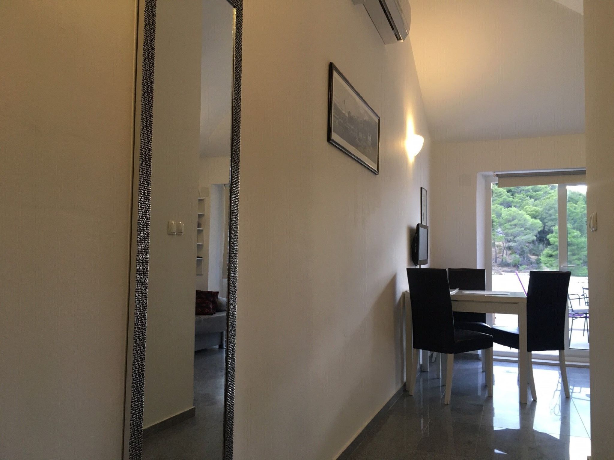 Discover the serene charm of Povlja, Dalmatien, with a delightful stay in our cozy apartment, perfectly designed for four guests seeking a tranquil getaway. Nestled in a picturesque setting, this apartment strikes the ideal balance between comfort and convenience, offering a unique retreat to relax, unwind, and create unforgettable memories.Inside, the apartment is fully equipped to ensure a comfortable stay. Central to its appeal is air conditioning available throughout, ensuring a cool retreat from the warm Dalmatian sun. A practical kitchen comes with a Ceran hob and a coffee machine for your morning brews, complemented by an electric kettle for your hot drink needs. The apartment also caters to practicalities, featuring a washing machine for communal use in the building, while a clothes dryer within the apartment promises convenience. The presence of a fireplace adds a cozy ambiance to evenings spent indoors.The outdoor attributes of this apartment are just as enticing. A balcony provides a private outdoor space to enjoy the fresh air, while the roof terrace, for your sole use, offers an exclusive spot to relax under the sky. A terrace further extends your outdoor living space, perfect for lazy mornings or tranquil evenings. Guests with a medium-sized dog (up to 60 cm) will appreciate the pet-friendly policy, ensuring no family member misses out on the holiday fun.Situated merely 200m from the beach, the apartment promises easy access to sun-drenched days by the sea. Water sports enthusiasts will be thrilled with facilities just 50m away, offering a variety of activities to fill your days with excitement and adventure. For essentials or a taste of local life, a grocery store and the nearest town center are both within a mere 45 meters, providing convenience at your doorstep.This apartment in Povlja, Dalmatien, serves as the perfect escape for those looking to immerse themselves in the beauty of the region while enjoying the comforts of home. Whether you're here for the beach, the atmosphere, or simply a peaceful retreat, this apartment offers all you need for a memorable stay.