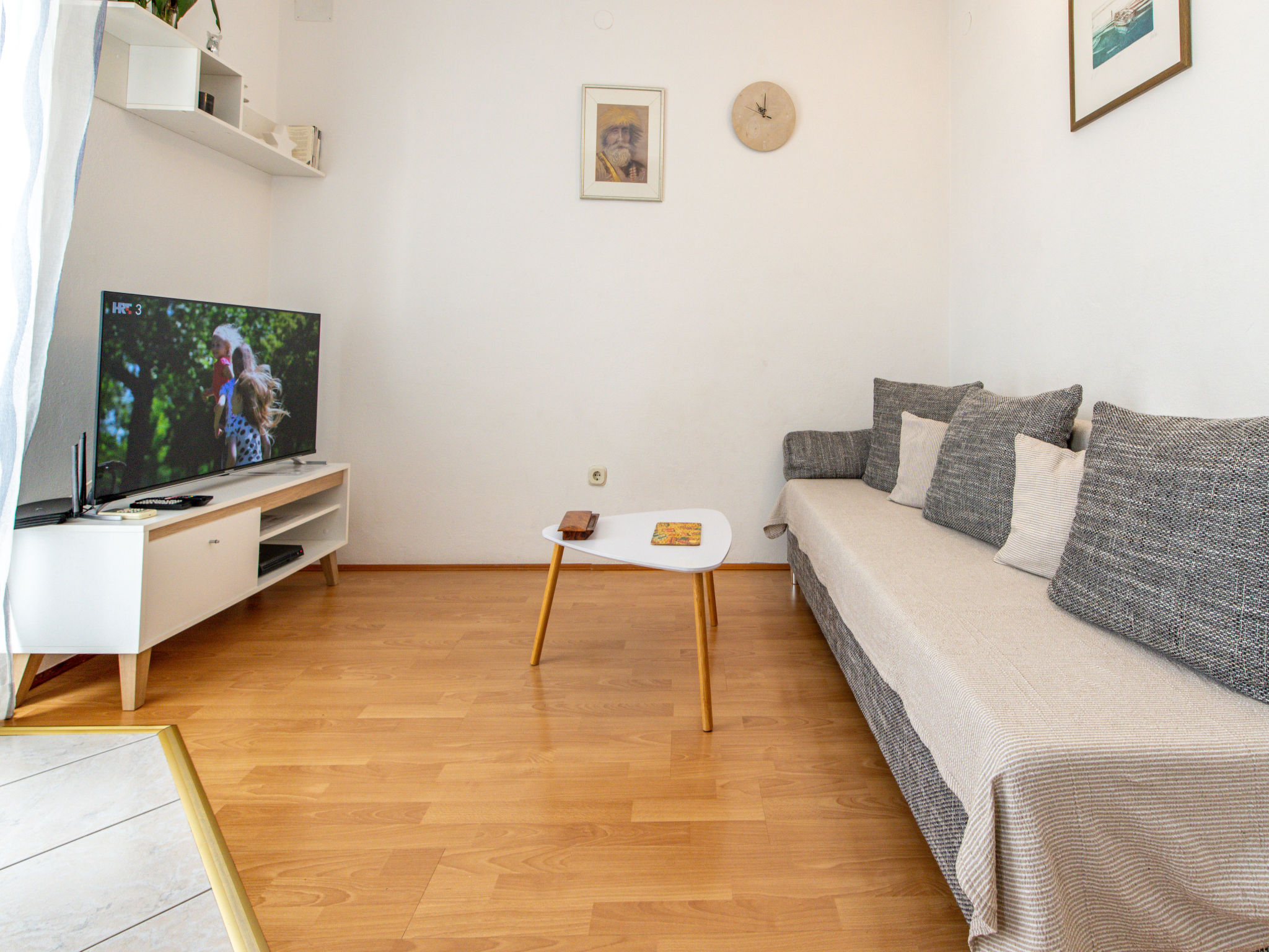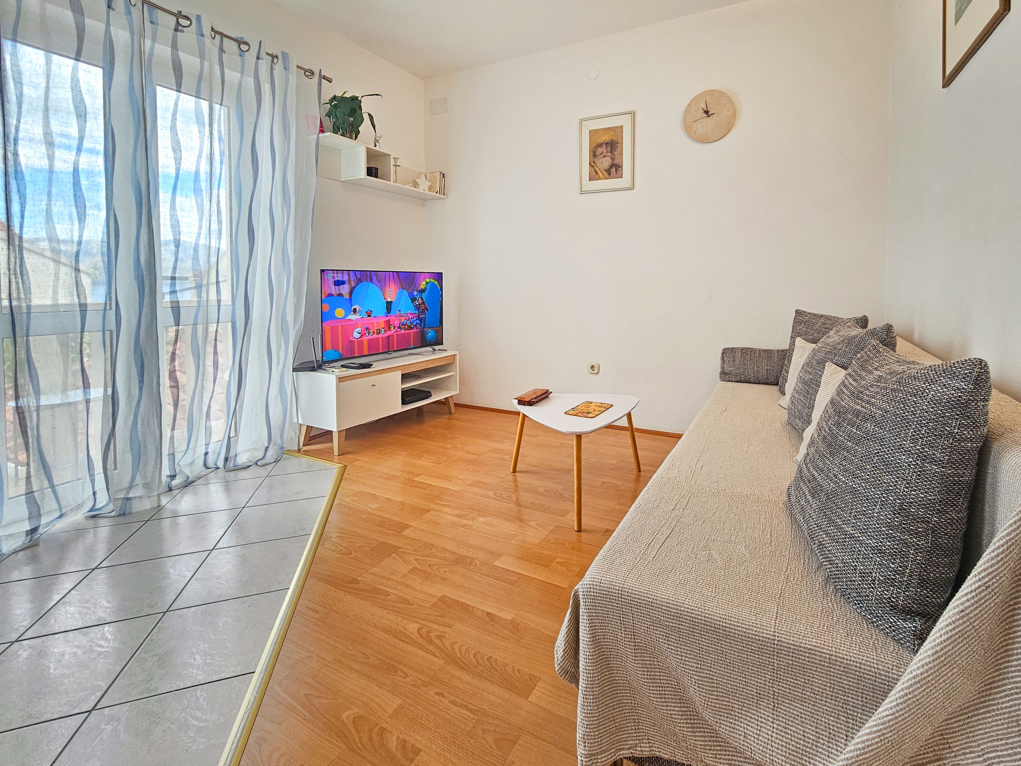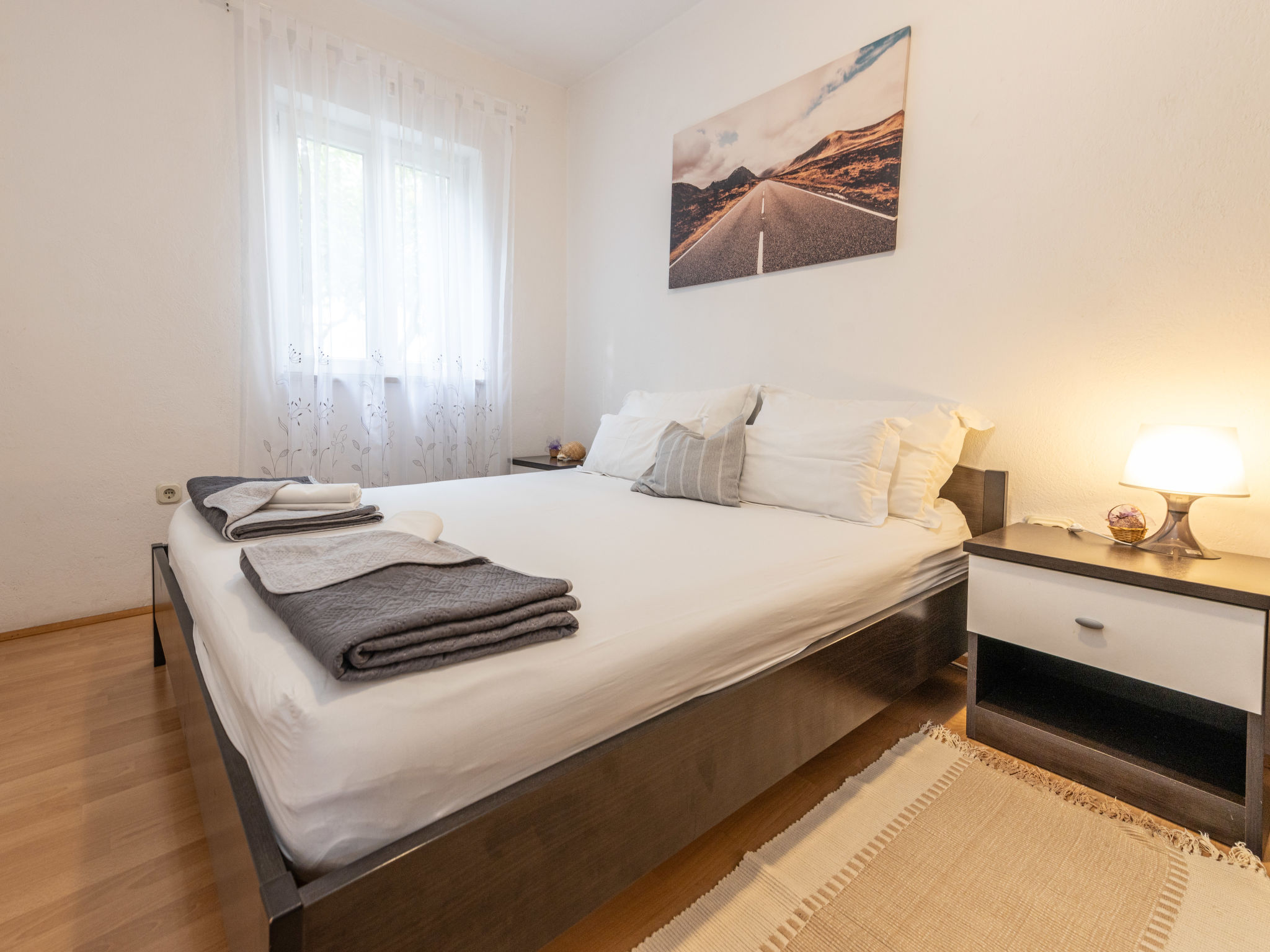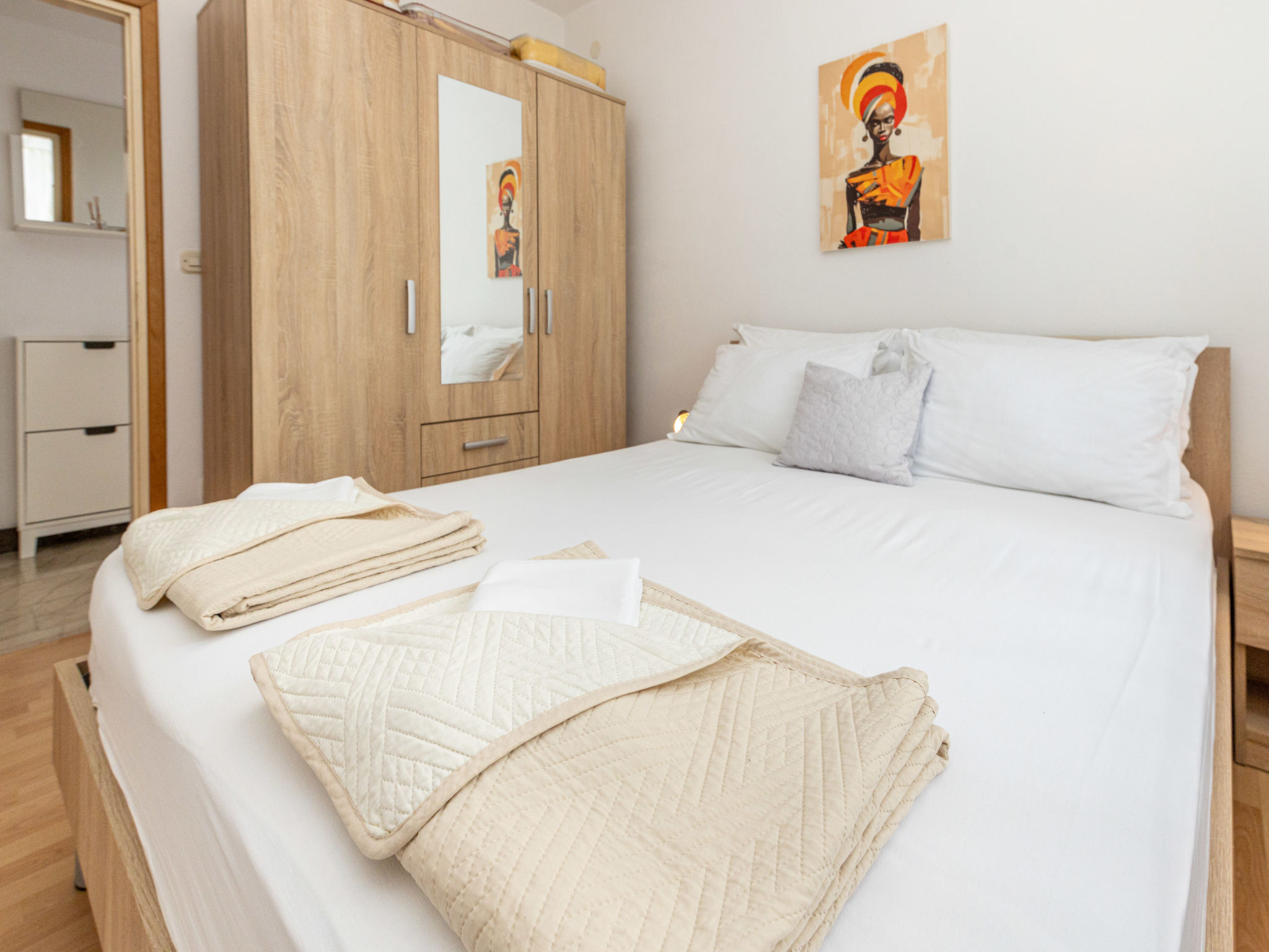 "Ana", halfvrijstaand huis 6-kamers 100 m2 op 2 verdiepingen. Woon-/eetkamer met 1 divanbed, Sat-TV en air-conditioning. 1 kamer met 1 2-pers bed. 1 kamer met 2 bedden. Open keuken (4-pits kookplaat, oven, afwasmachine, broodrooster, elektrische koffiemachine). Douche/WC. Bovenverdieping: (buitentrap) woon-/eetkamer met 1 divanbed, Sat-TV en air-conditioning. Uitgang naar het balkon. 1 kamer met 1 2-pers bed. 1 kamer met 2 bedden. Open keuken (4-pits kookplaat, oven, broodrooster, elektrische koffiemachine). Douche/WC. Geen verwarmingsmogelijkheid. 2 balkons, terras. Terrasmeubelen, balkonmeubilair. Uitzicht op zee. Ter beschikking: Internet (Internet (WiFi), gratis). Rookvrij huis. De accommodatie bestaat uit 2 appartementen die gehuurd worden als 1 geheel.