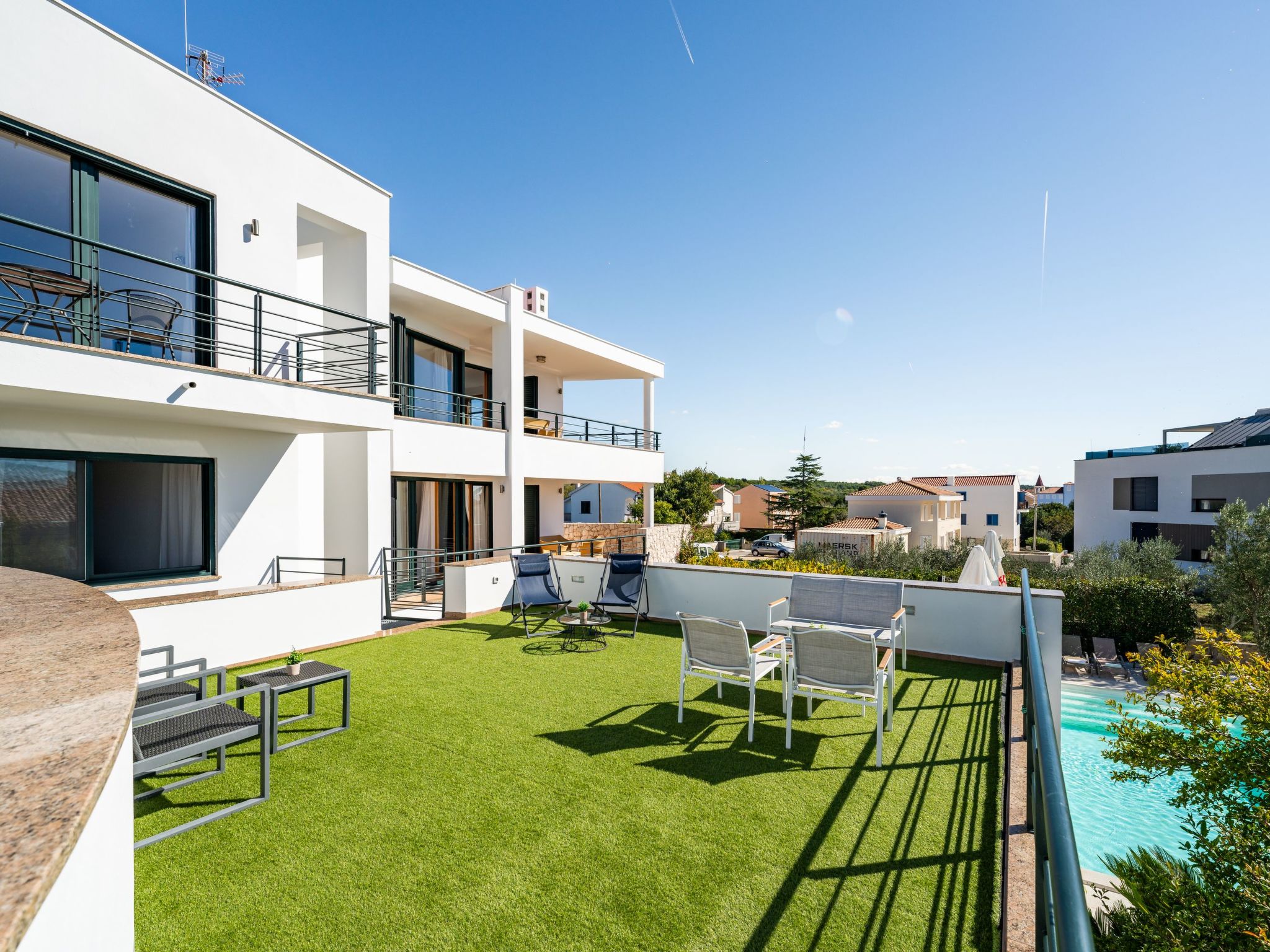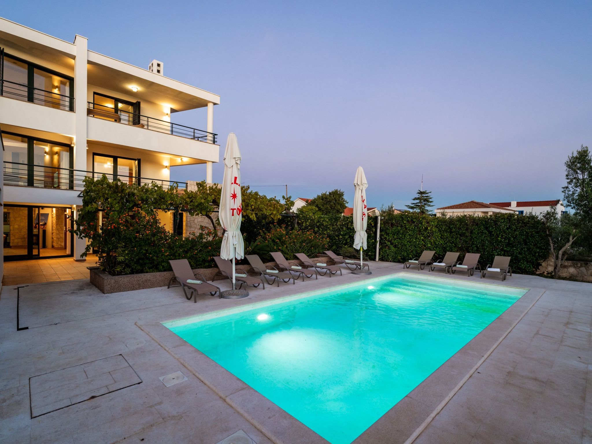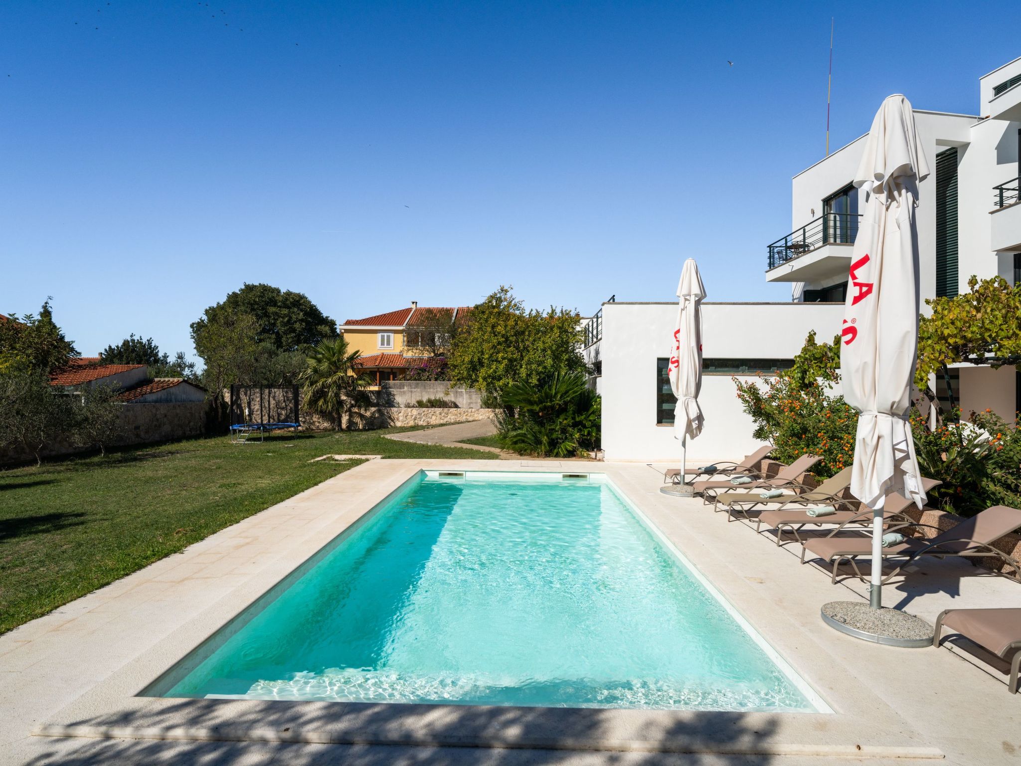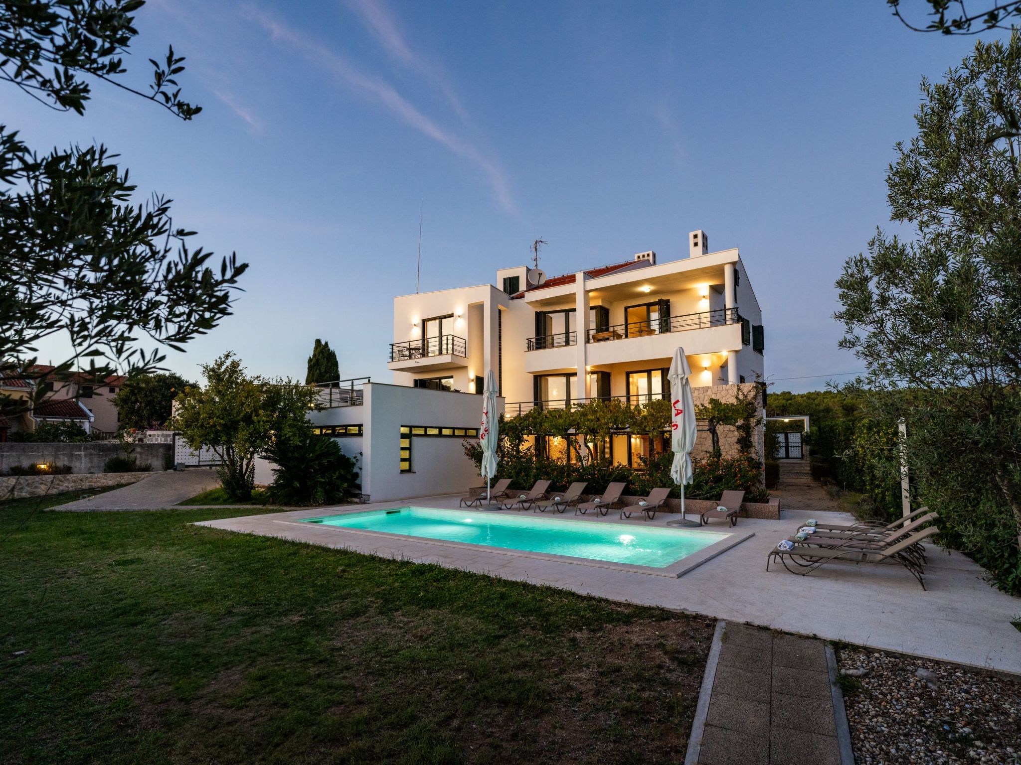 Located in a quiet area of the prestigious Zadar neighborhood Diklo, just 500 meters from the sea, Villa offers the perfect combination of luxury, comfort, and privacy. This modern and spacious villa can accommodate up to 12 guests, making it an ideal choice for large families or groups of friends looking to enjoy a relaxing Mediterranean holiday.In the basement, you will find a cozy lounge area with a traditional fireplace, a large dining table, a small kitchen, and a gaming room with a pool table and table tennis – perfect for socializing and entertainment.The villa features 6 elegant bedrooms and 8 bathrooms, spread over two floors. On the upper floor, there are four stylish rooms, each equipped with its own mini kitchen and living area, while the ground floor includes two bedrooms and a large main living room with a fully equipped kitchen and dining area for all guests to enjoy together.Outside, guests can enjoy a large 10x4 m swimming pool, surrounded by sun loungers, greenery, and a traditional outdoor BBQ area. Several terraces and a spacious lawn offer plenty of room for sunbathing, games, or dining outdoors.Villa combines luxury, comfort, and Mediterranean charm – the perfect choice for a relaxing and memorable stay in Zadar.
