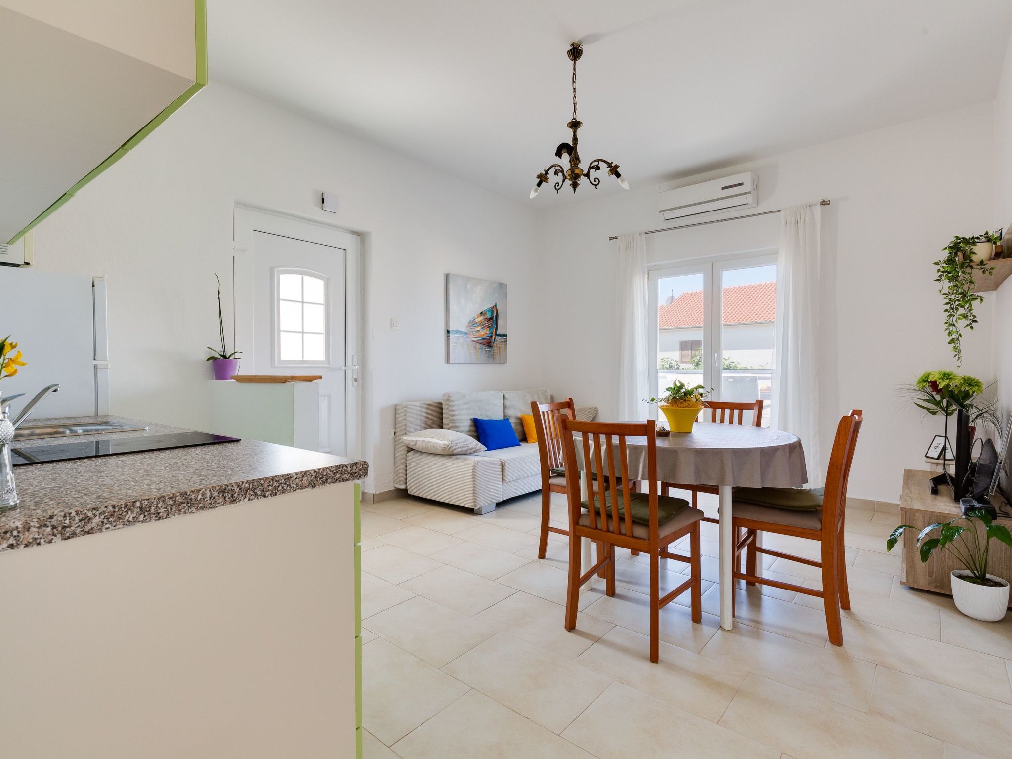 Near Kožino, about 5 kilometres away is beautiful small town Nin, oldest city in Croatia.The living room opens onto your private balcony with a table and chairs, where you can enjoy leisurely holiday breakfasts with a view over the sea.The 60m² holiday apartment on the ground floor consists of a light living and dining room with an integrated, open kitchen, two bedrooms and a spacious daylight bathroom. The air-conditioned (cool/warm) living room provides a comfortable sofa, a wide flatscreen TV and a round wooden dining table with five chairs. The built-in kitchen next to it is equipped with a two-zone electric stove, a fridge with a freezer compartment, a microwave, a kettle and plenty of crockery and cutlery. Of the two bedrooms, one is furnished with a double bed (180 x 200cm) and the other with two single beds (90 x 200cm) that can also be pushed together as a double bed. The sofa in the living room can be converted into an additional bed for one person. The bathroom with light tiles is fitted with a walk-in shower cubicle, a washbasin with a cupboard underneath and a wall mirror, a hairdryer and a toilet. Plenty of bed linen and towels are provided and the reliable wireless Internet connection can be used free of charge.There are few good restaurants and small grocery store 500 metres from the apartment. Big grocery store is about 4 kilometres from the Kožino. Shopping centre is about 8 kilometres from the Kožino, as well as Old Town Zadar, about 8 kilometres away.