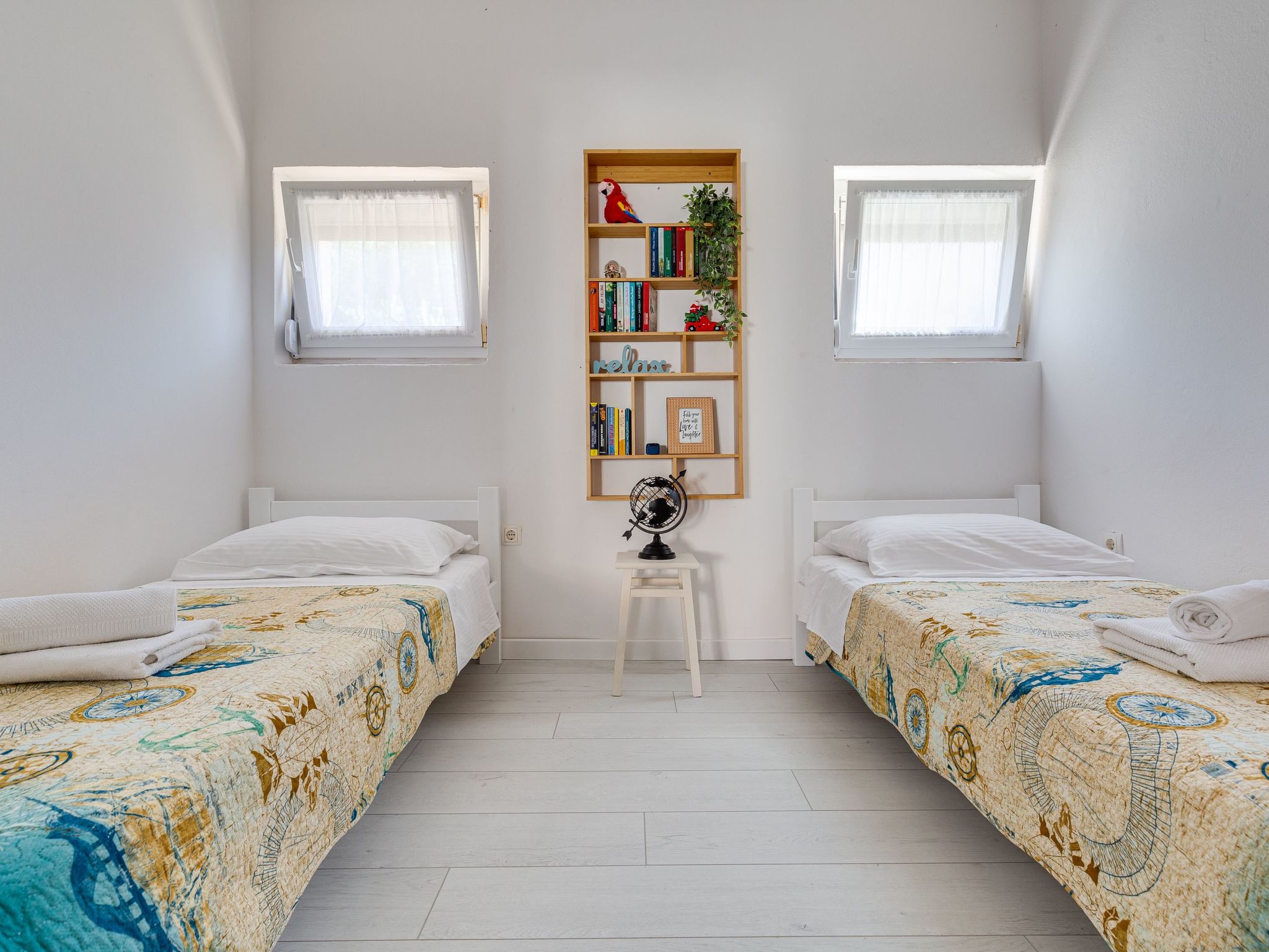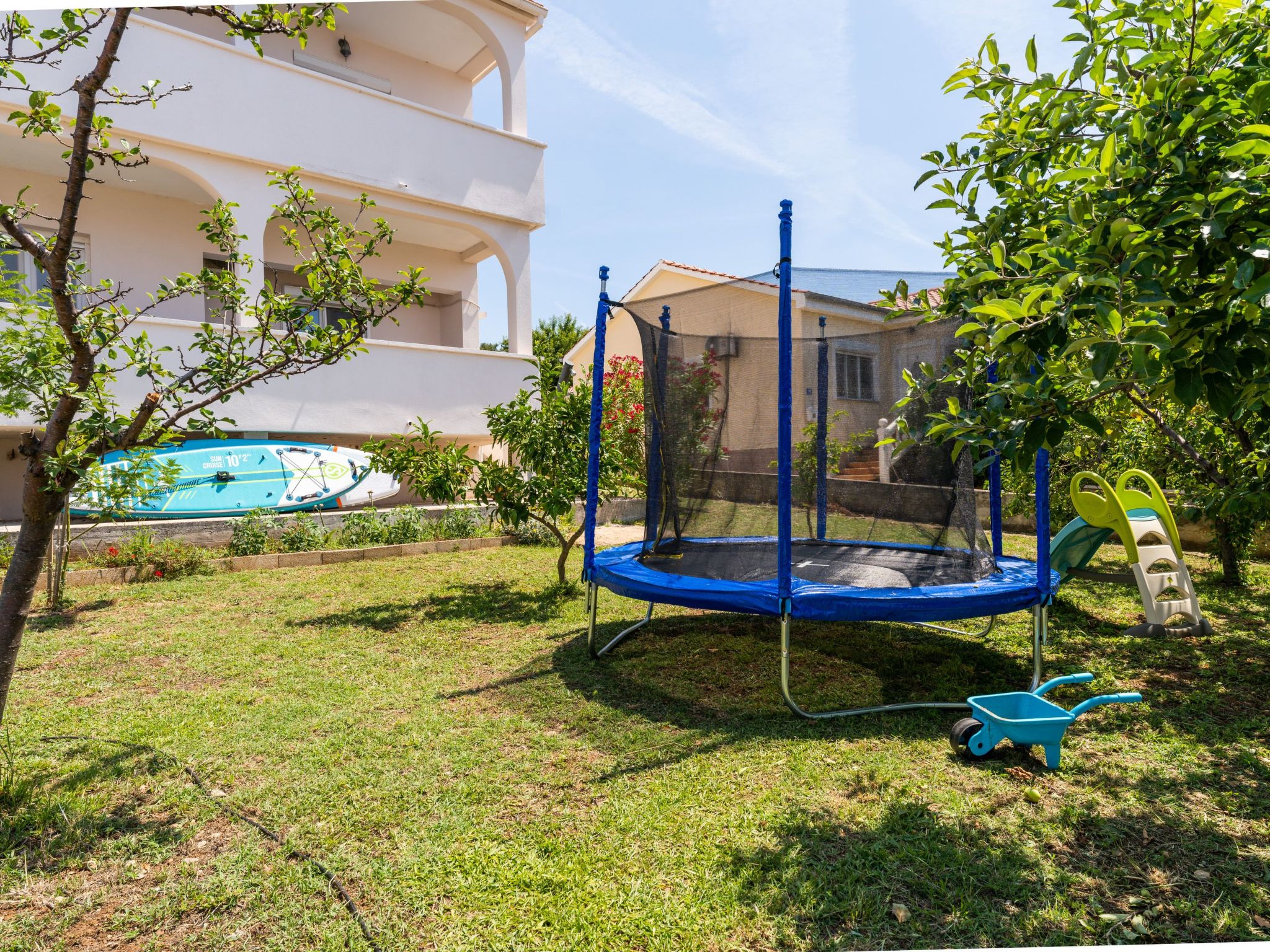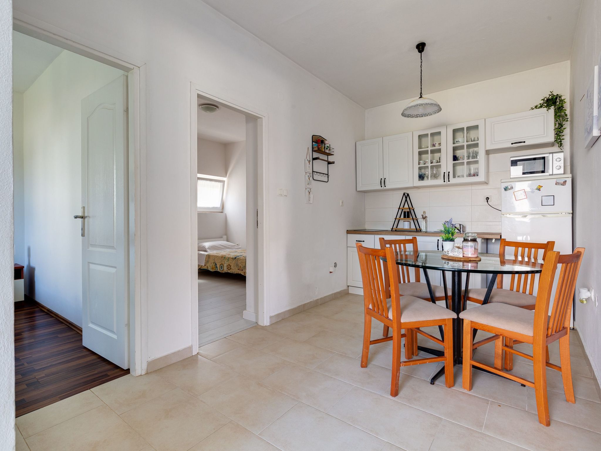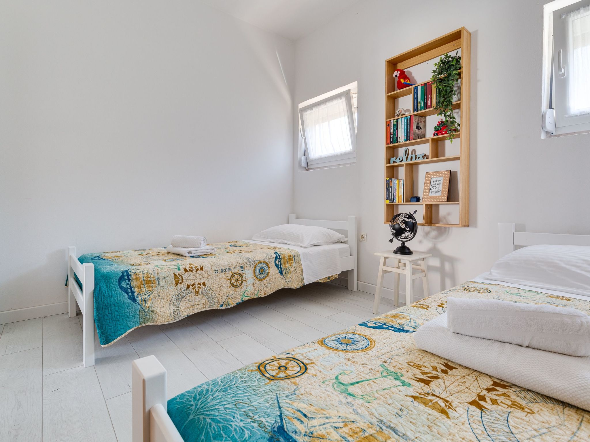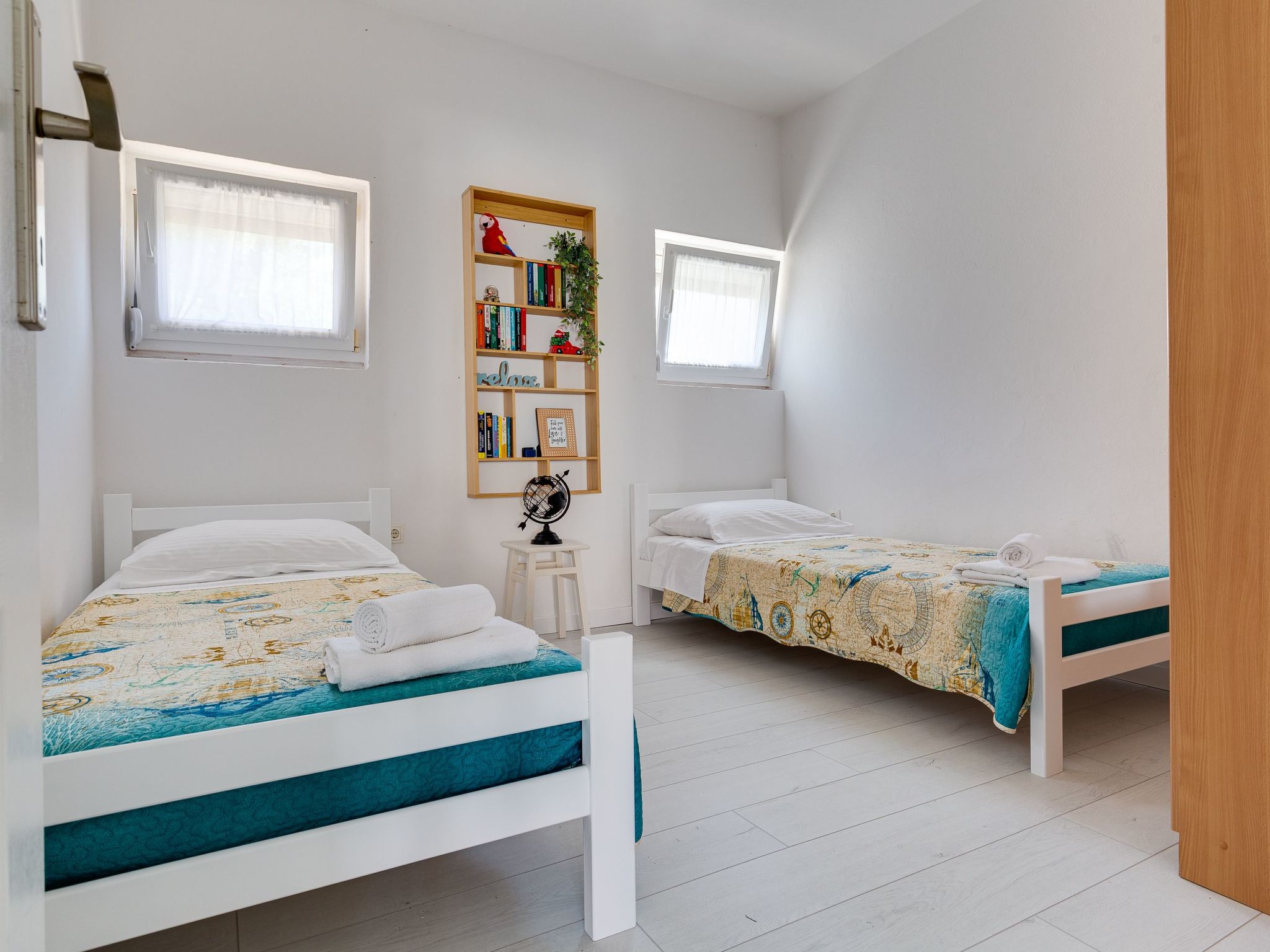Near Kožino, about 5 kilometres away is beautiful small town Nin, oldest city in Croatia.The private balcony in front of the living room with a table and chairs invites you to enjoy leisurely holiday breakfasts with a view over the sea.The 60m² holiday apartment on the ground floor consists of a light living and dining room with an integrated, open kitchen, two bedrooms and a spacious daylight bathroom. The air-conditioned (cool/warm) living room provides a comfortable sofa, a wide flatscreen TV and a round, wooden dining table with five chairs. The built-in kitchen next to it is equipped with a two-zone electric stove, a fridge with a freezer compartment, a microwave, a kettle and plenty of crockery and cutlery. The two bedrooms are furnished with a double bed (180 x 200cm) and two single beds (90 x 200cm) that can be pushed together as a double bed. The sofa in the living room can be converted into an additional bed for one person. The bathroom with light tiles is fitted with a walk-in shower cubicle, a washbasin with a cupboard underneath and a wall mirror, a hairdryer and a toilet. Plenty of bed linen and towels are provided and the reliable wireless Internet connection can be used free of charge.Apartments are 50 metres from the sea, and nearest beach is about 70 metres.There are few good restaurants and small grocery store 500 metres from the apartment. Big grocery store is about 4 kilometres from the Kožino. Shopping centre is about 8 kilometres from the Kožino, as well as Old Town Zadar, about 8 kilometres away.