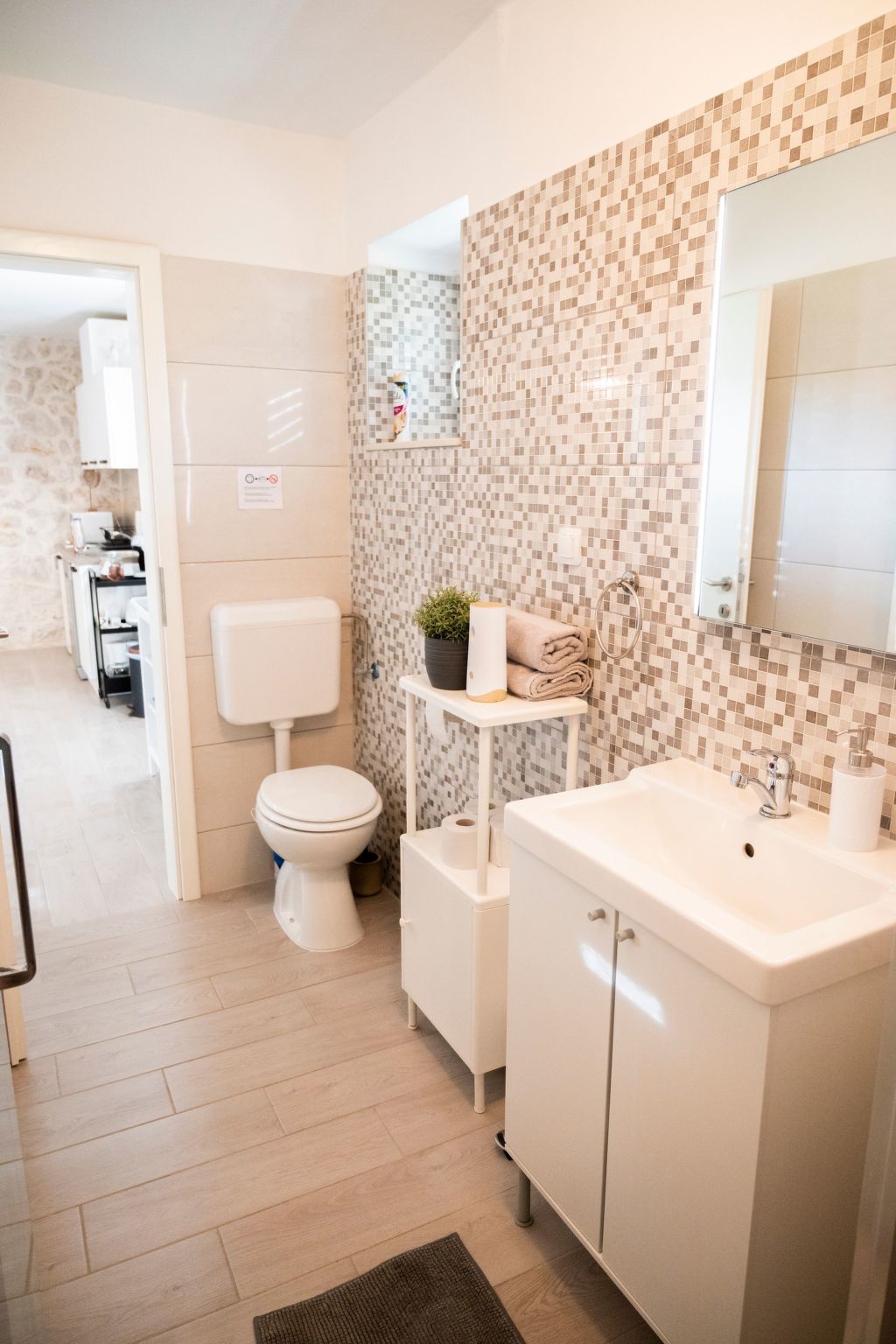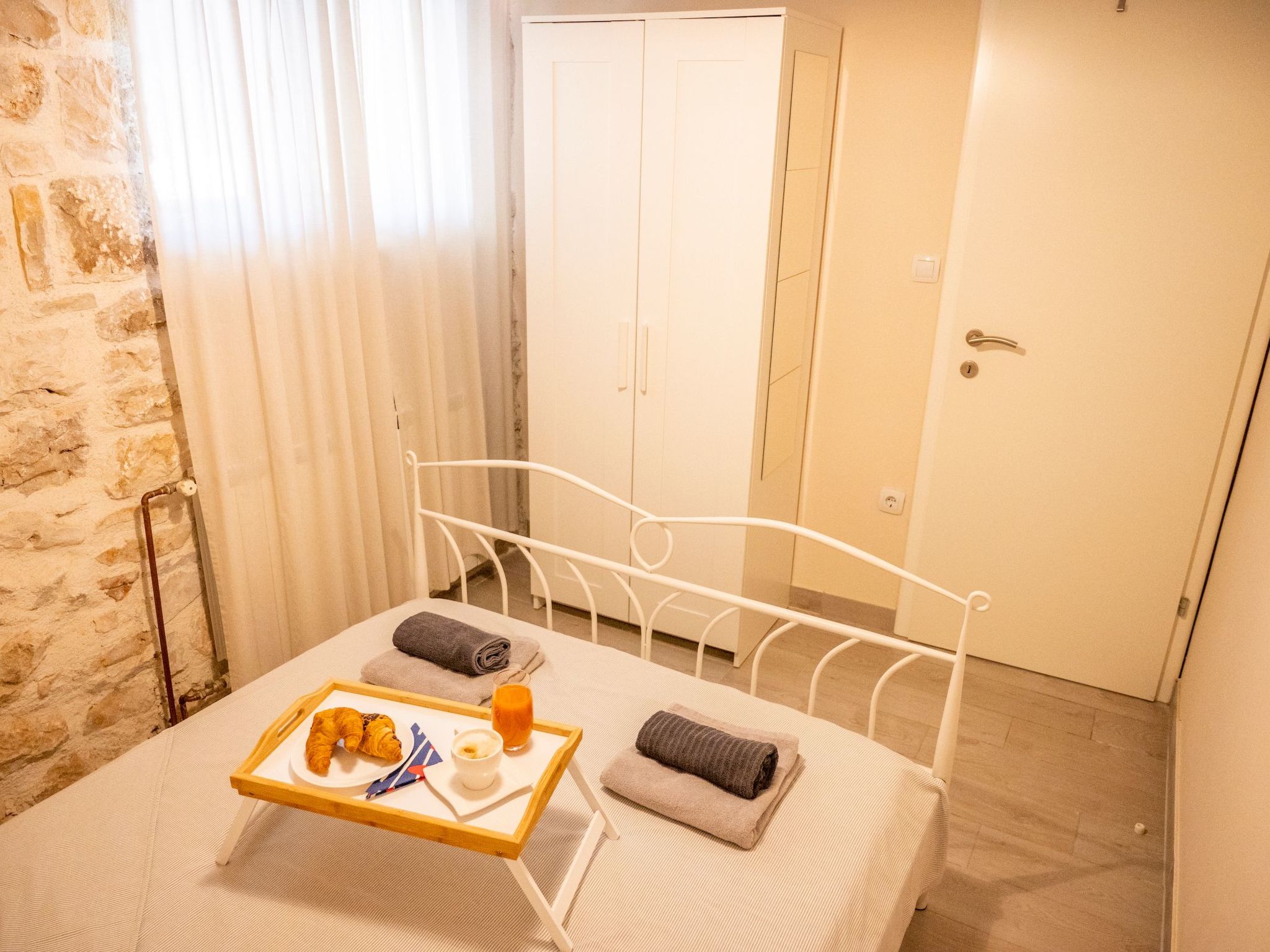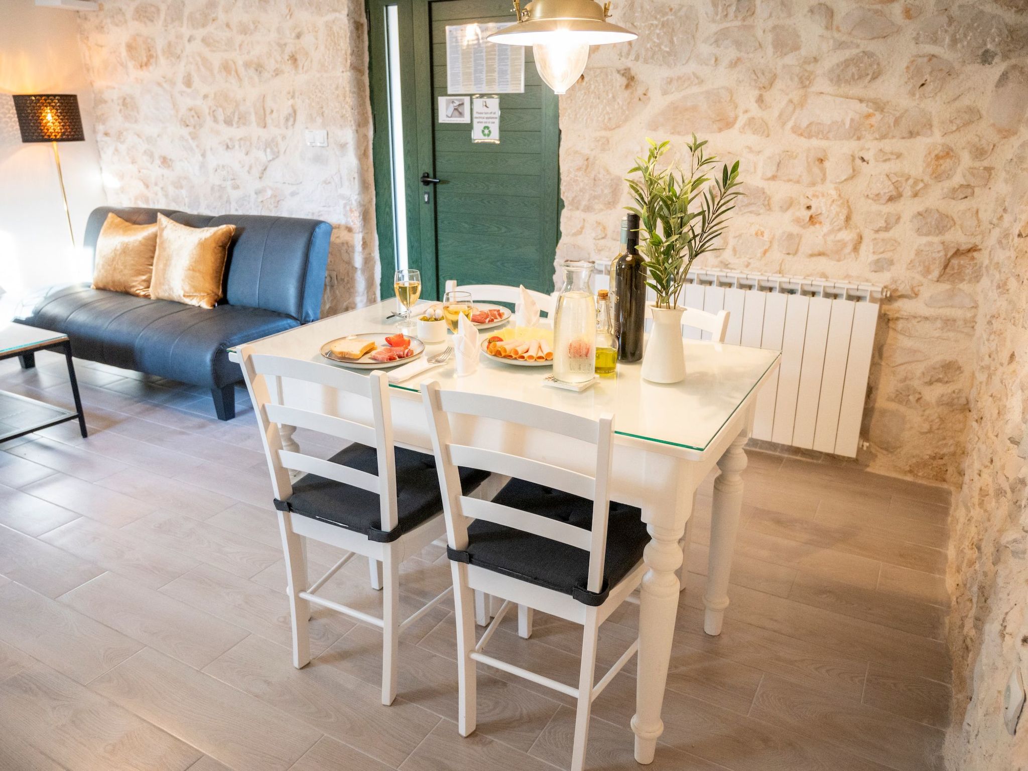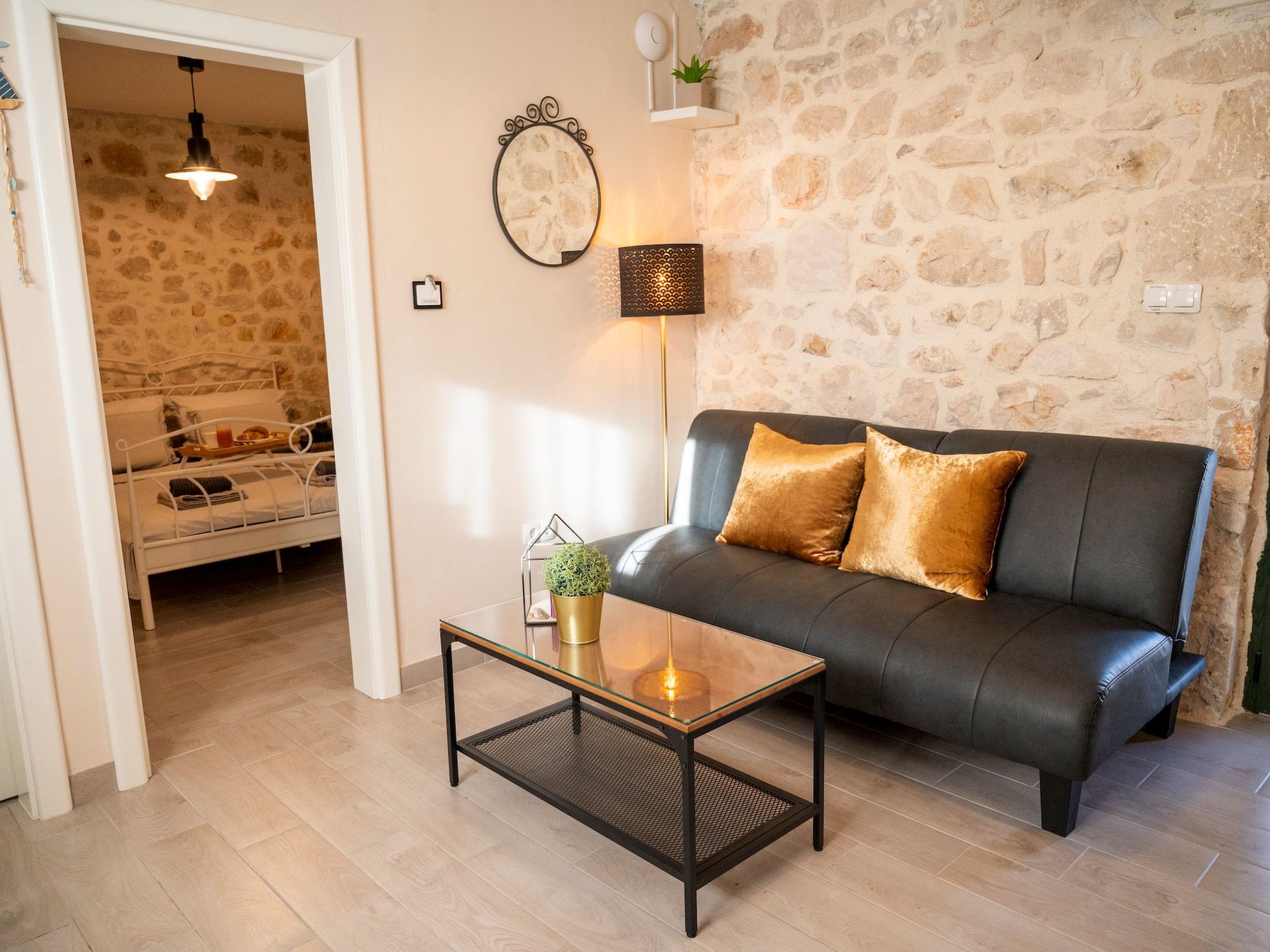 Apartment is located in Turanj. The apartment is located at 3 minutes walk from the beach and center of the town. Turanj is a tourist place connected with the centre of Sv. Filip i Jakov by the promenade “Lungo mare”. The shear vicinity of larger centres makes it an attractive place which is close enough, but also far away from the crowd and commotion. Spreading along 4 km of shore, it is located in Pašman Channel and surrounded by a small archipelago of 16 islets.The terrace is equipped with garden furniture. The property is fenced and is therefore suitable for children and people who wants privacy.The ground floor has stone walls and details that emphasize the authenticity of the apartment. The ground floor is about 33 m² in size and comprises of the following rooms: A living room, a flatscreen TV and a sofa bed. There is also a bedroom next to it, which includes a double bed. Plus there is a fully-equipped kitchen with microwave, electric kettle and a dining area, as well as an bathroom with a toilet and shower.The beach is about 200 metres away. The town centre with its restaurants and supermarkets is approximately 200 metres away. First shop is just 50 m away (approximately) from apartment.