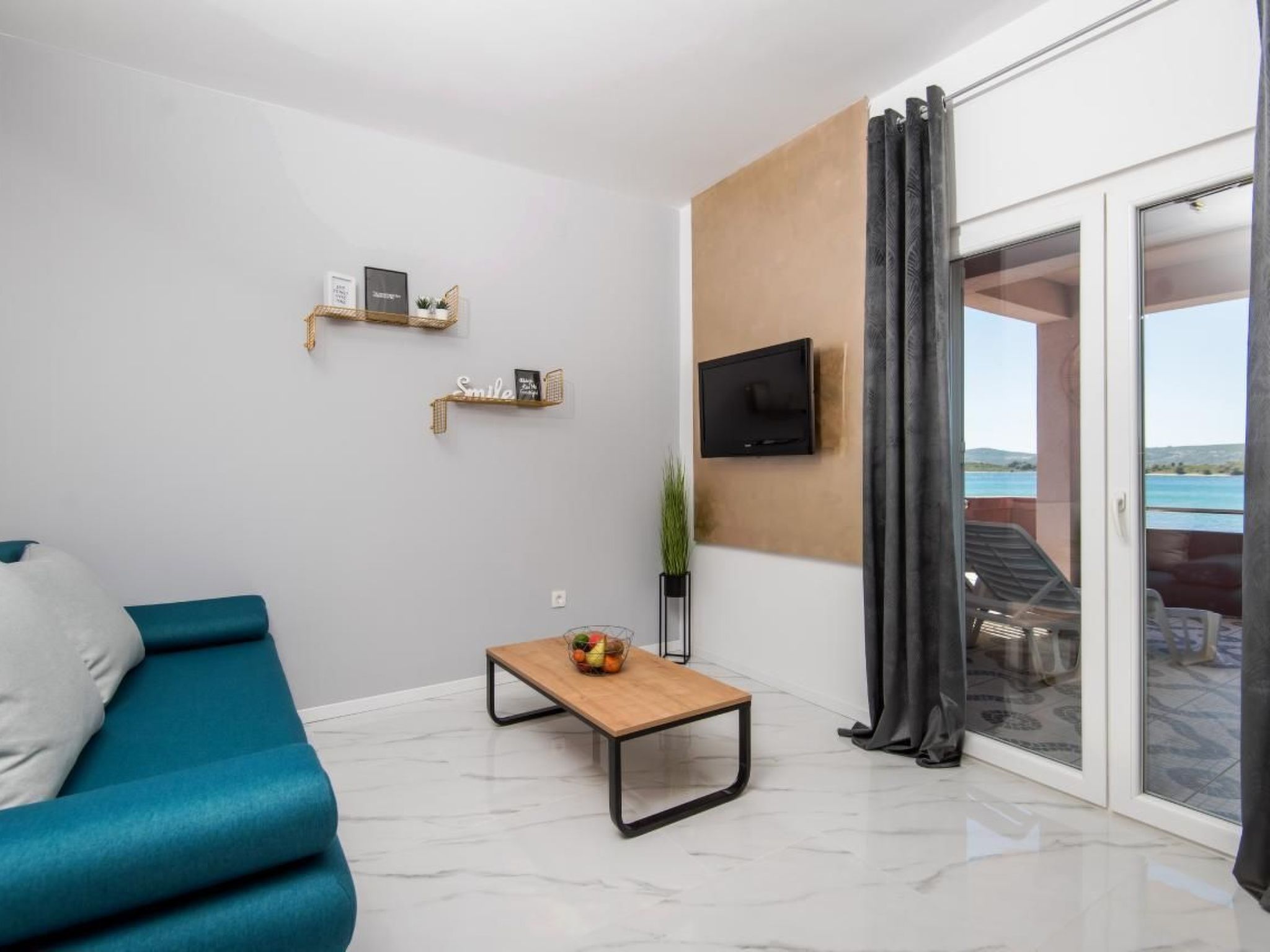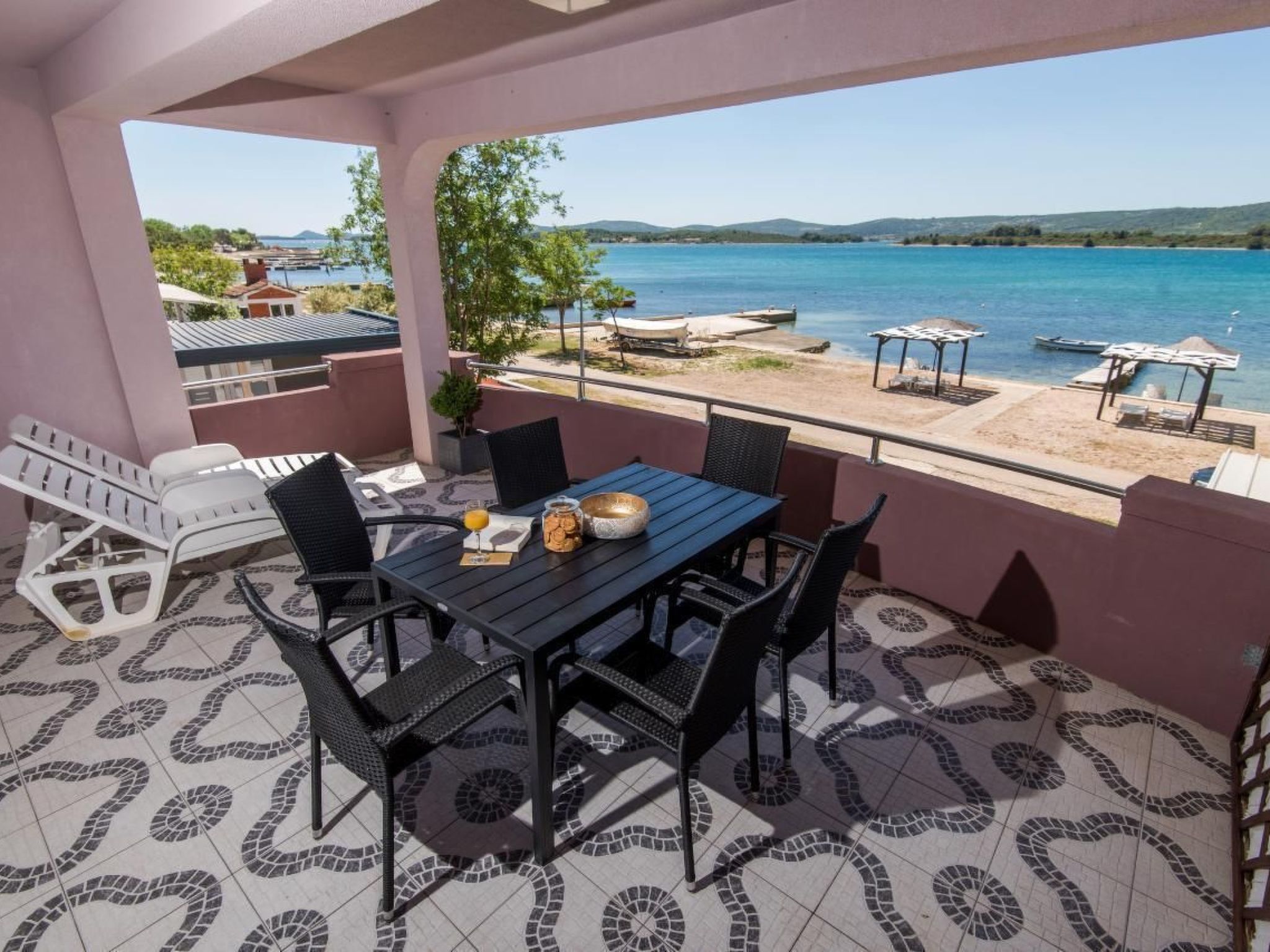 House Joško has 3 beautiful apartments located only 15 m from the beach. All apartments have been renovated this year. They are equipped with air conditioning, dishwasher, smart TV and are ready for a family holiday.The beach in front of the house is suitable for small children and is very shallow. On the beach there are sun decks and parasols for your family.All 3 apartments have a balcony with sea view. The house has free WLAN, secure parking and a grill for all guests.In the morning you can use free bicycles to go to the market. On the beach there are kayaks and small swimming pools for children to play in. We also rent out boats and buoys for your own boats. If you don't know how to drive a boat, we offer boat trips, fishing trips or trips to national parks.The house is located in a quiet part of Turanj, only 5 minutes walk from the center, where you can find restaurants, cafes, fast food, playgrounds, markets.Short descriptionOther : Non-smoking houseShort description 1Number of kitchens : 1Bedroom 1Other bedroom furniture : Couch for 2 peopleSurroundingNearby sports facilities : Basketball, Bike tours, Canoeing, Diving, Fishing, Football area, Mountainbiking, Sailing, Toboggen, Water skiingRental Facilities : Bicycle rental service, Boat rental serviceSurrounding 1Excursion possibilities : We can organise excursions to close national parks or fishing tours. Also you can rent a boat with skipper and explore beautiful bays.Garden and outdoorGarden facilities : Grill, Playground equipmentService benefitsService facilities (may incur additional costs) : Breakfast, Cleaning service during your stay, Transfer service (airport etc)Service benefits 1Other : - Rent a boat- Rent a boat with skipper-Rent a buoy for own boat- Excursions- Fishing Tours