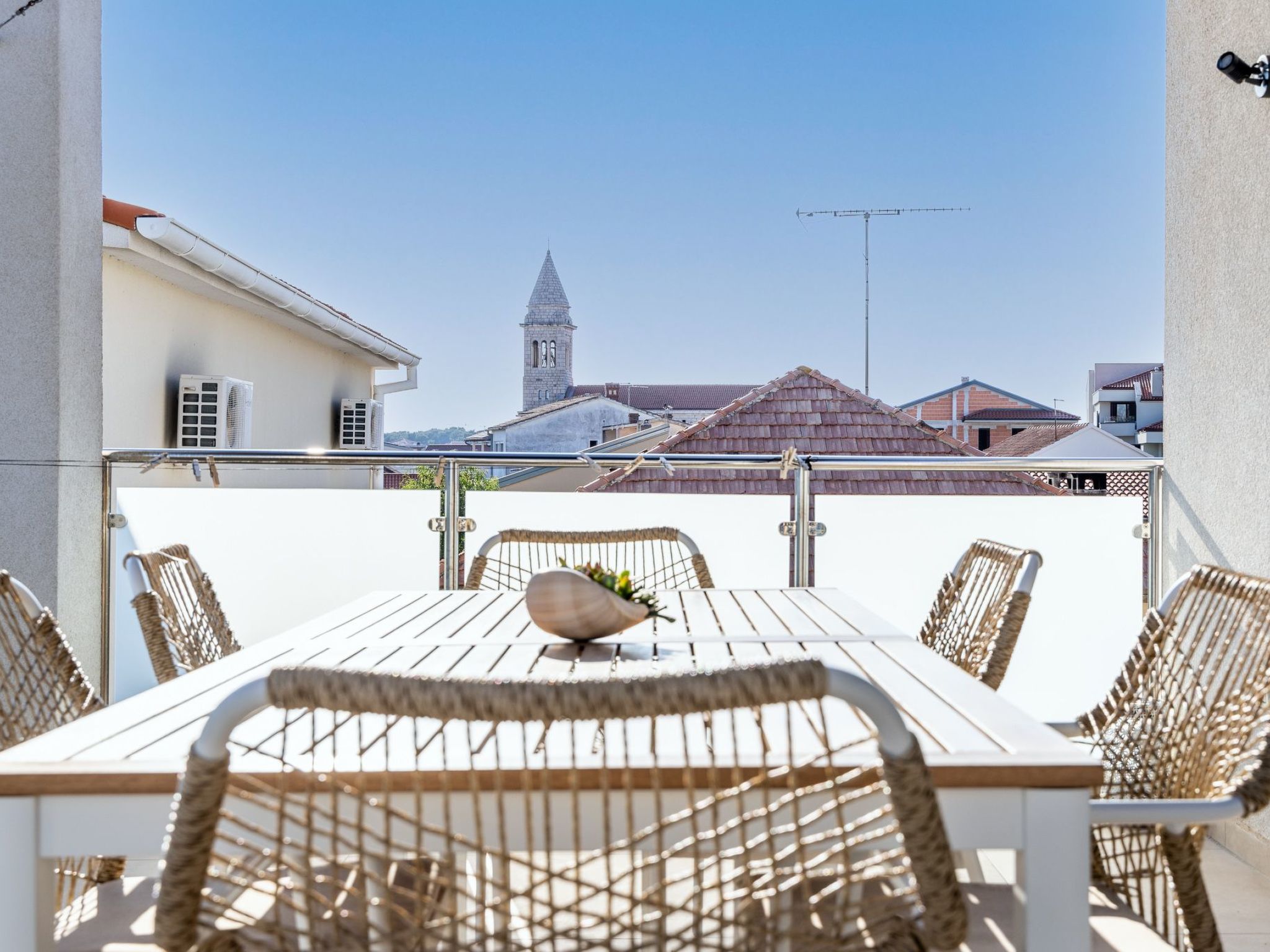 Discover the perfect holiday destination in Pakoštane, Dalmatia: an inviting holiday flat that can accommodate up to 6 people. Ideally located, this flat allows for both relaxation and adventure in close proximity to crystal clear sea and picturesque landscapes. Whether you're looking for a quiet retreat or crave the thrill of water sports activities, you'll find everything you need for an unforgettable stay.Inside, the second-floor flat has everything you need for a comfortable stay. It is equipped with air conditioning, which provides cooling in certain areas on hot days. The underfloor heating ensures cosy warmth in all rooms on cooler evenings. Entertainment is well catered for with a Smart TV and a games console. Practical amenities such as a washing machine for your sole use, an induction hob, a filter coffee machine and a dishwasher are also available to make your stay as pleasant as possible.The outdoor area leaves nothing to be desired. A balcony invites you to enjoy the fresh air and peaceful atmosphere. It is the perfect place to start the day with a cup of coffee or to reflect on the day with a glass of wine in the evening.The surroundings of the holiday flat are simply breathtaking. With the beach just 50 metres away, you can spend sunny days by the sea or enjoy water sports without having to walk far. For dog owners, the dog beach 400 metres away is a great destination for outings together. A lake, just one kilometre away, offers further opportunities for water fun or relaxing walks. The town centre is just 200 metres away, where you will find local shops and a grocery store 250 metres away to provide you with everything you need.This holiday flat in Pakoštane is the ideal place for families and friends who want to create precious memories together. Enjoy the combination of comfort and the best location in one of the most beautiful regions of Dalmatia. Here, every day can be a new adventure or just pure relaxation. Get ready for an unforgettable holiday that leaves nothing to be desired. 5177