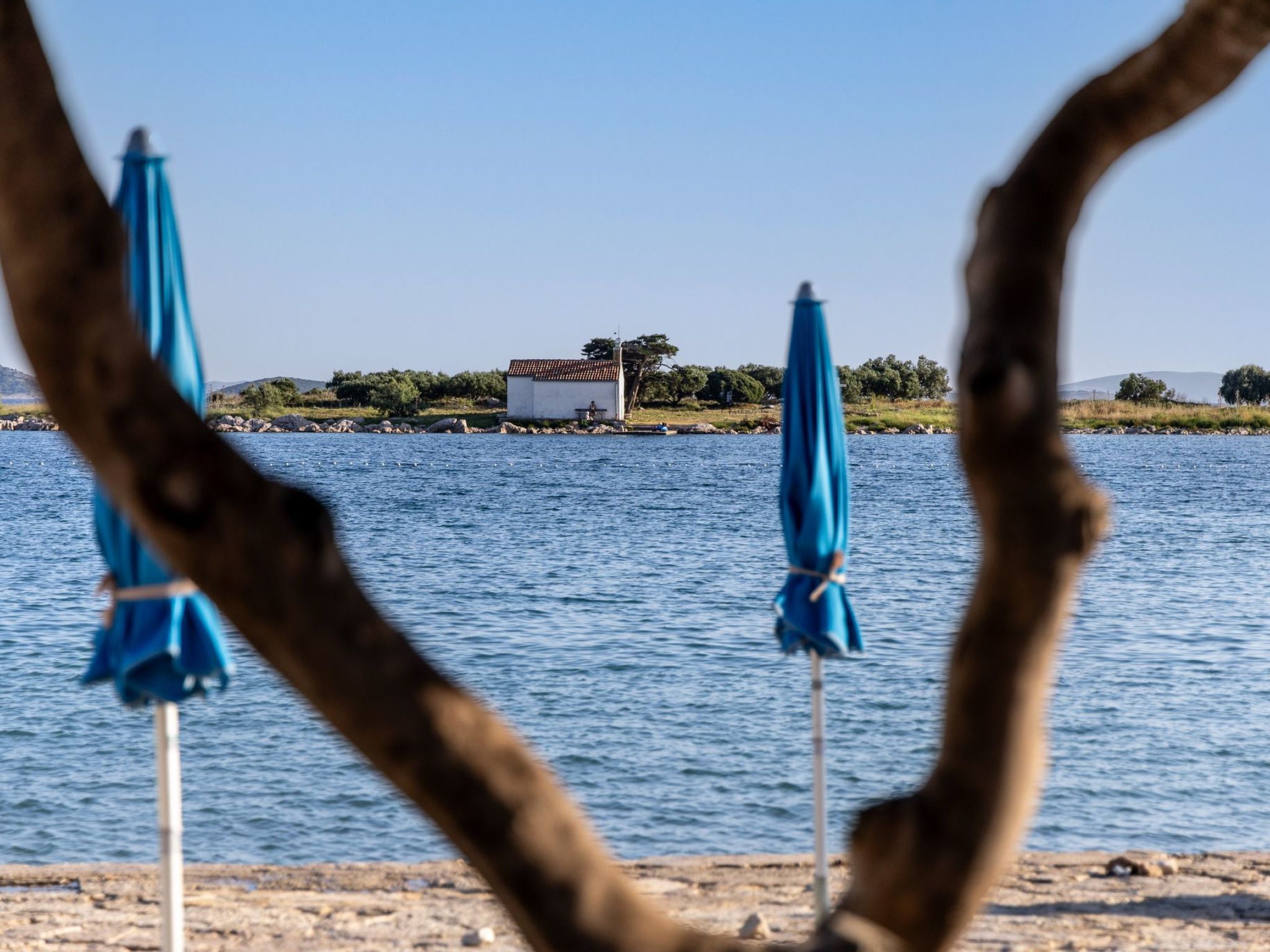 Zeer mooi strand met zand en kiezels. Moeilijke toegang op de weg met grotere en kleinere stenen. Je hebt hier nog echt de ruimte. Rustig en aangenaam strand bij Biograd na Moru.