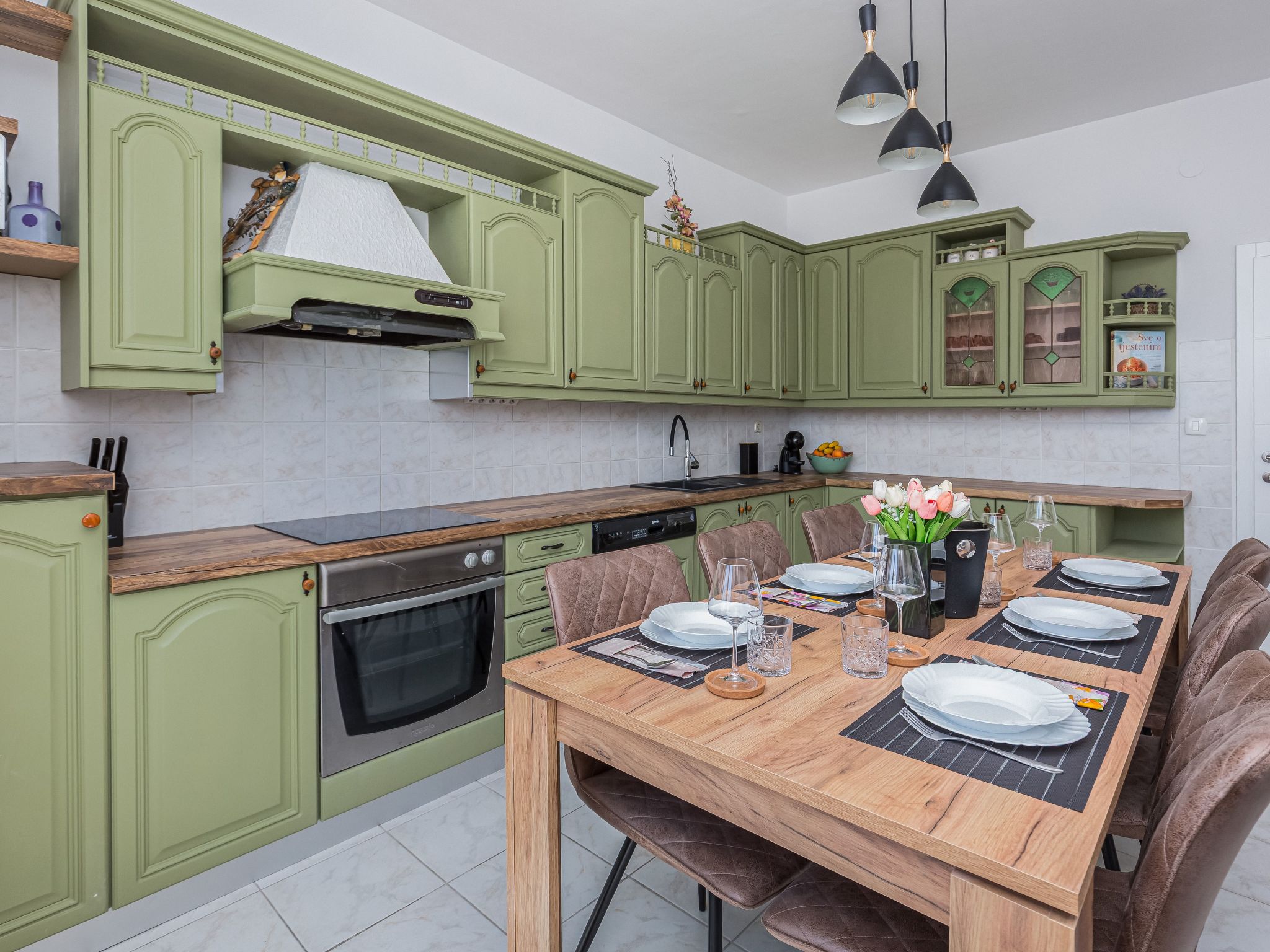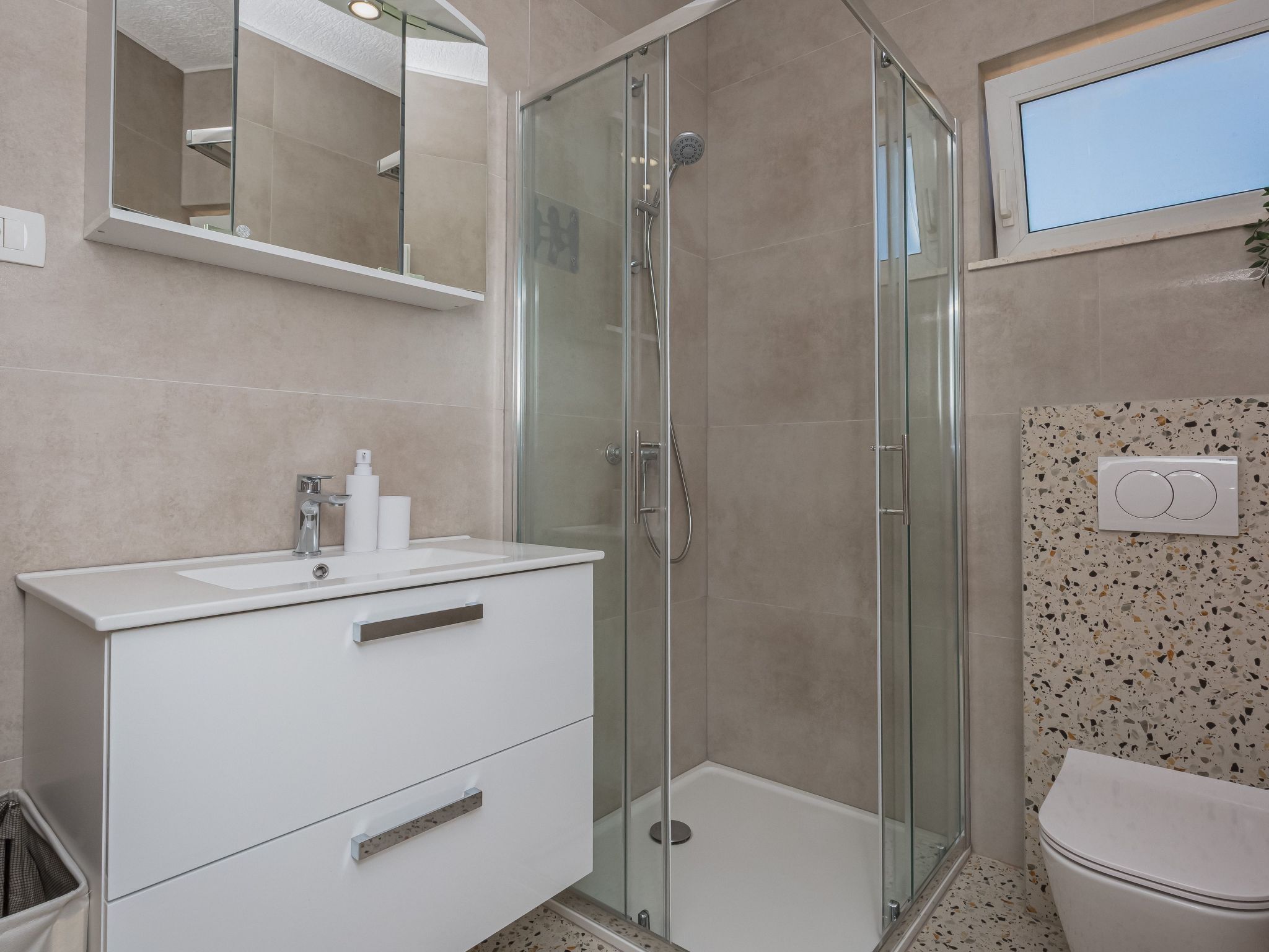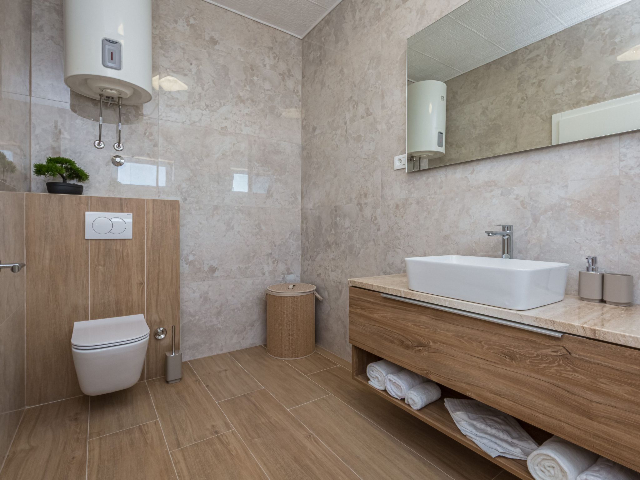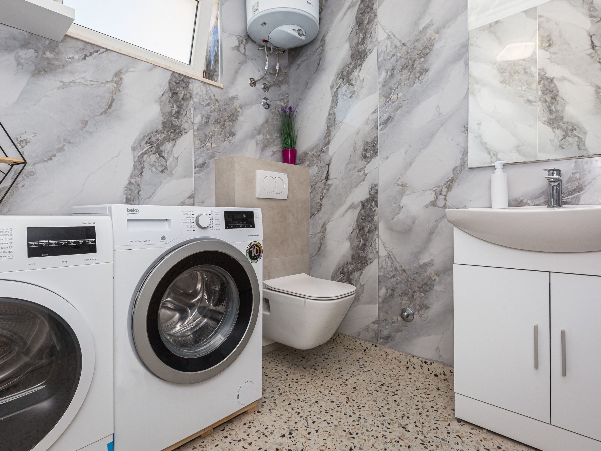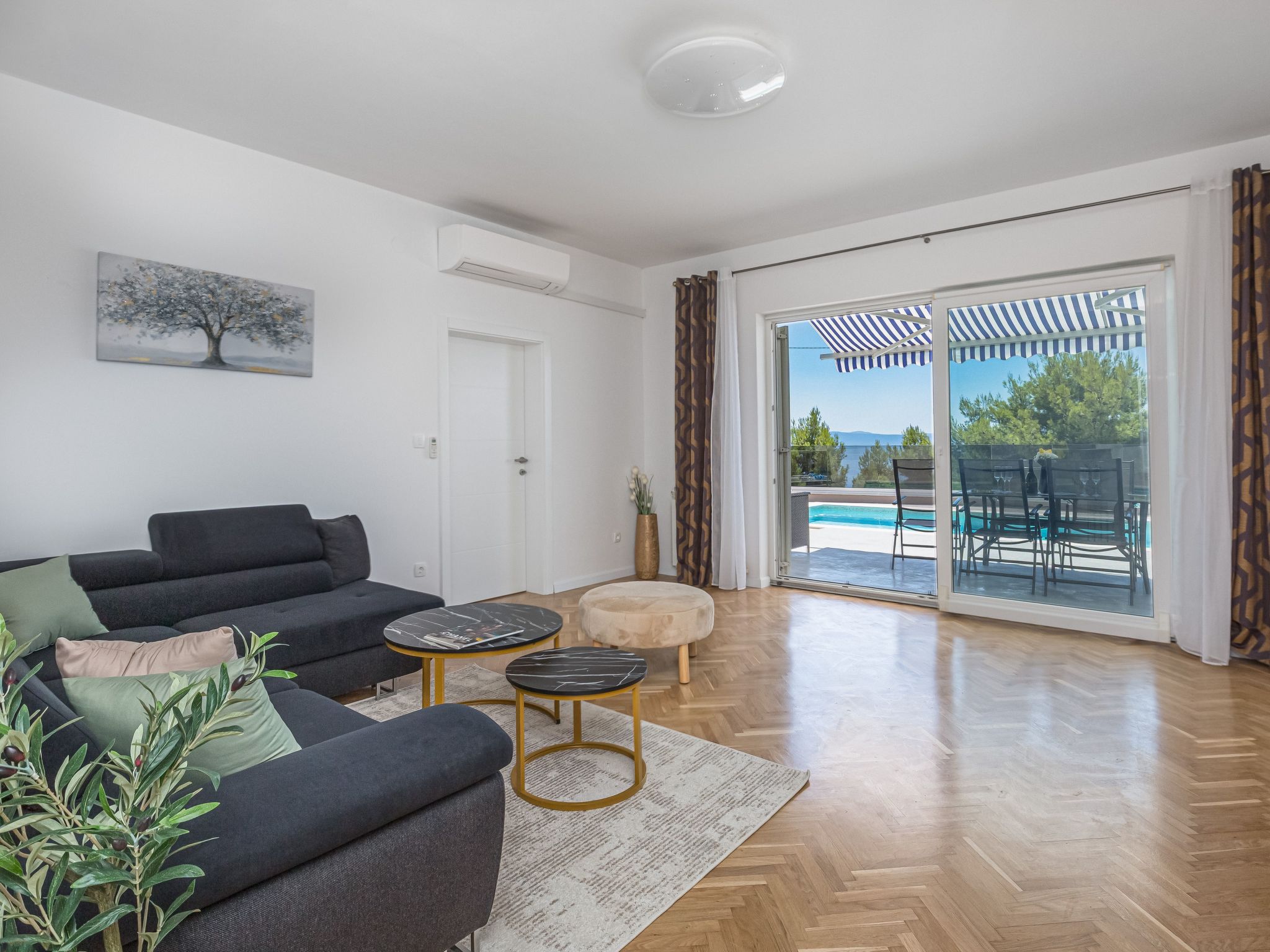 The holiday home is settled in a peaceful neighborhood and sits in the front row to the sea.Inside, you’ll find three bedrooms: two with comfortable double beds and one with two single beds, ideal for families or friends traveling together. One of the bedrooms comes with air conditioning and its own private bathroom. There is a fully equipped kitchen and living room with a comfy sofa, air conditioning, and TV – perfect for evenings together.You can enjoy your evenings by private saltwater pool, complete with a massage system for pure relaxation. Lounge in the sun, take a refreshing dip, or enjoy an outdoor shower under the blue sky. Prepare traditional dinner within outdoor BBQ area and watch kids playing safely in the private playground. With parking for up to four cars, sea views, and complete privacy, you can truly unwind in peace.Whether you’re here to explore the historic streets of Split, soak up the sun on nearby beaches, or simply enjoy lazy days by the pool, this home is the perfect place to make lasting holiday memories.The maximum capacity of adults is 6.