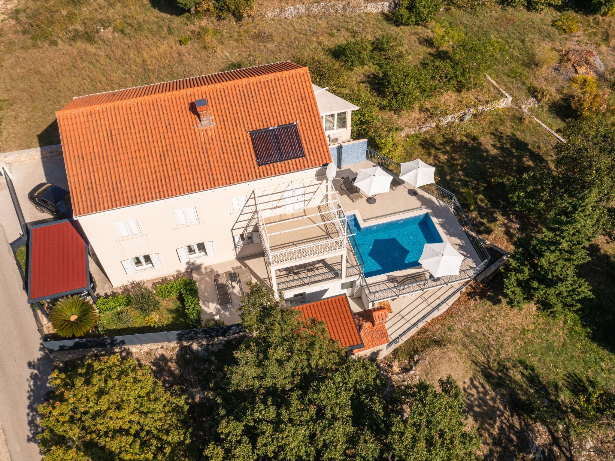 Villa Mambo is a serene retreat located in a tranquil area, perfect for families and friends looking to enjoy a peaceful vacation surrounded by nature. While only one floor of the villa is rented, the upper floor remains empty and is used exclusively during the winter months, ensuring guests have complete privacy throughout their stay.The villa is conveniently close to the center of Mlini/Srebreno, offering easy access to everything you need. The property features three spacious bedrooms, each with a private bathroom, ensuring comfort and privacy for all guests.Relax by the outdoor swimming pool or host a memorable barbecue in the dedicated outdoor area. The villa is nestled in a peaceful natural environment where you’ll be gently awakened by the song of birds in the morning. Whether you're enjoying the calm surroundings or exploring the nearby attractions, Villa Mambo provides the perfect balance of comfort, convenience, and tranquility for your getaway.Guests can enjoy various amenities, including access to an oven, stove, dishwasher, microwave, refrigerator with freezer, kettle, coffee maker, toaster, and dishes. There's also a washing machine, air conditioning, and complimentary private parking. Additional comforts include an iron and ironing board, hairdryers, and a barbecue area.The place Petraca is located 1.5 km from the center of Mlini, 1.3 kilometers from the Sub City shopping center in Srebreno, and 700 meters from a Studenac mini market and bus station. Mlini and Srebreno offer a perfect blend of seaside relaxation and adventure, with beautiful beaches and a variety of water activities. They boast stunning, crystal-clear waters, making them ideal spots for swimming and sunbathing. The coastal promenade that connects the two villages provides a scenic route for a leisurely walk along the water, offering stunning views of the Adriatic and the surrounding greenery. Along the way, you can stop to enjoy a variety of outdoor activities, such as kayaking, jet skiing, or even a boat trip to nearby islands like Lokrum. After a day of exploration, indulge in fresh seafood and traditional Dalmatian dishes at one of the charming seaside restaurants, where you can enjoy delicious meals with a view of the sea. Whether you're seeking relaxation on the beach, adventure on the water, or savoring the local cuisine, Mlini and Srebreno offer a perfect coastal experience.