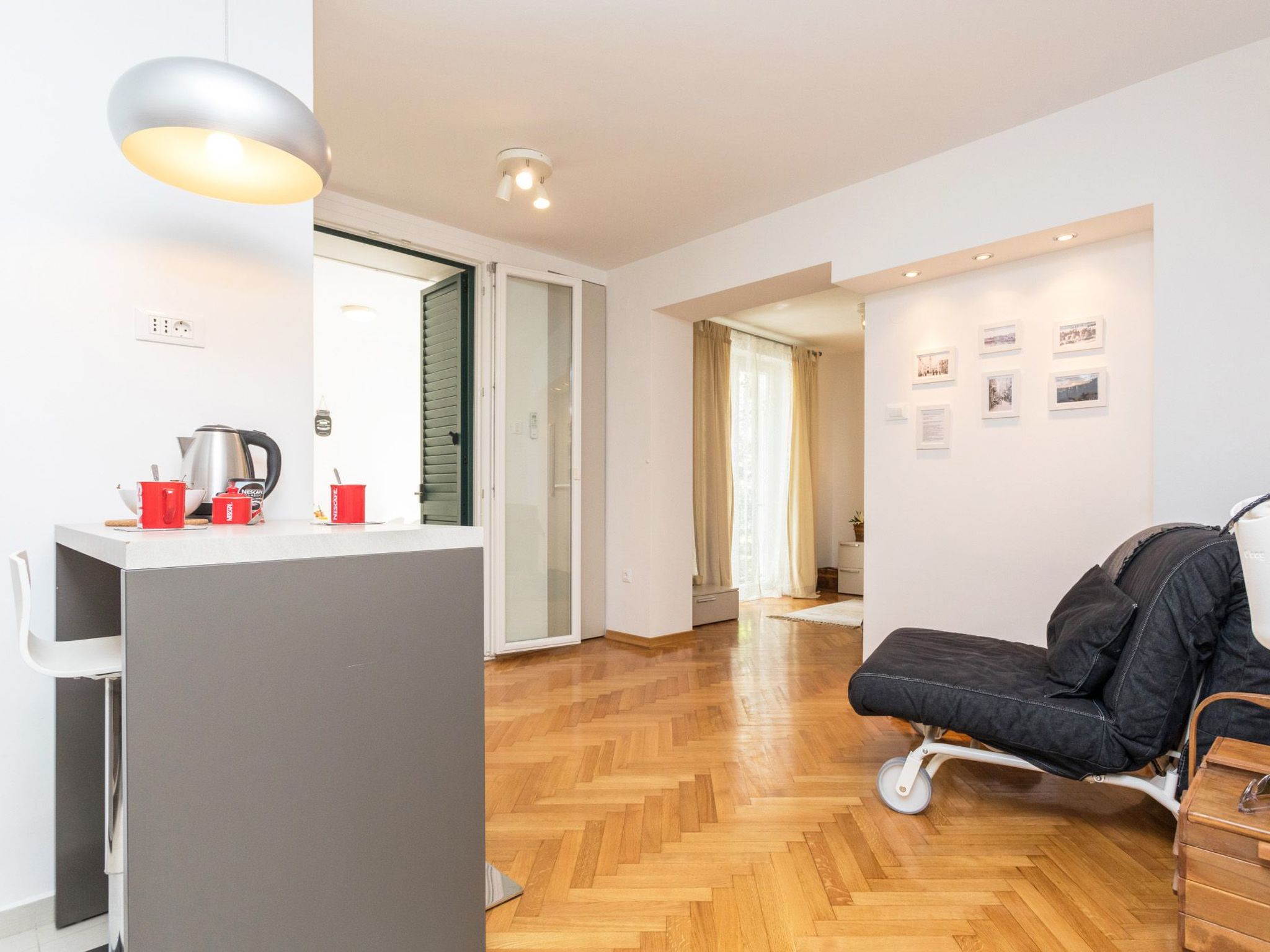Beautiful new trendy & modern apartment 100m from the beach and sea and with partial a view of the beach from the large terrace.This property at Suncana street offers the amazing combination of being 1 min far from city centar with all the facilities and attractions on hand -and also just a minute's walk from the sea and a pebbles beach.Air-conditioned, bright, fully restored apartment with modern bathroom, kitchen, and all comfort equipped with everything you need. The apartment is very quiet and relaxing. Ideal for two people, or couple with child.Energy Certificate: Class AP_880_2015_411_sz2The apartment has 43m2Is intended for 2 peopleConsist of1 bed room with double bedLiving areaKitchen with table and stool chairsBathroom with showerLarge balcony with table and chairsAir-conditionWasherSmart TVWireless internetPets not allowedBrochures/city mapsirport transfer serviceThis apartment will be the perfect home for your stay in Dubrovnik!They are not numerous stairs to arrive to BonBon but it’s not suitable for very old persons or people with disabilities.