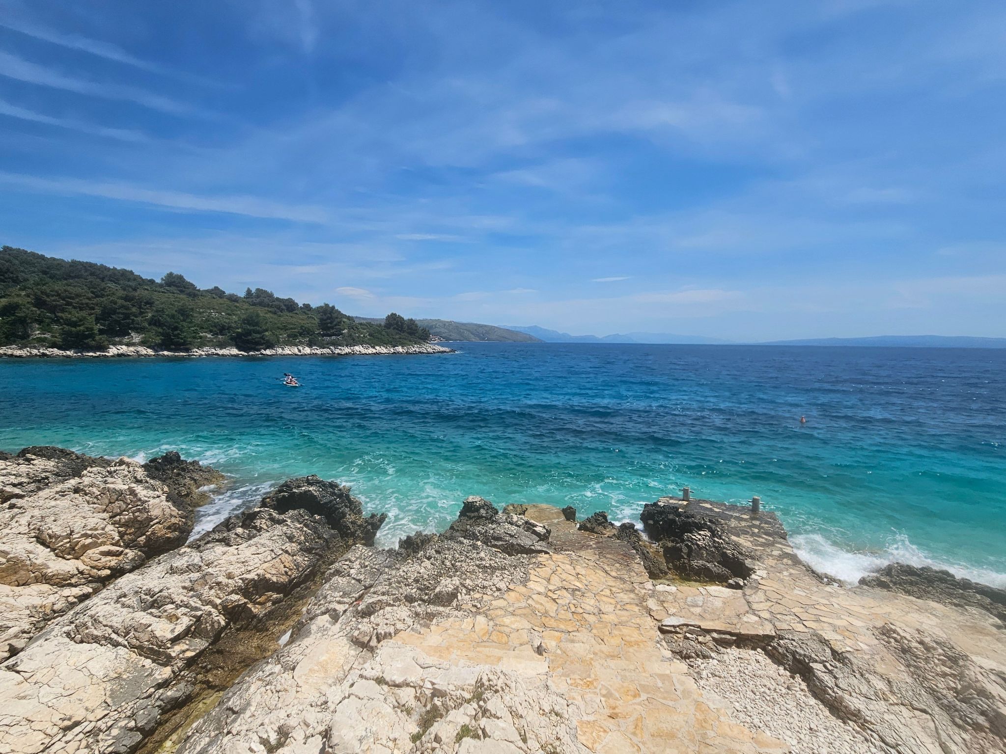Mooi strand op het eiland Ciovo bij Trogir met een zachte afdaling. Niet te druk en schoon water.