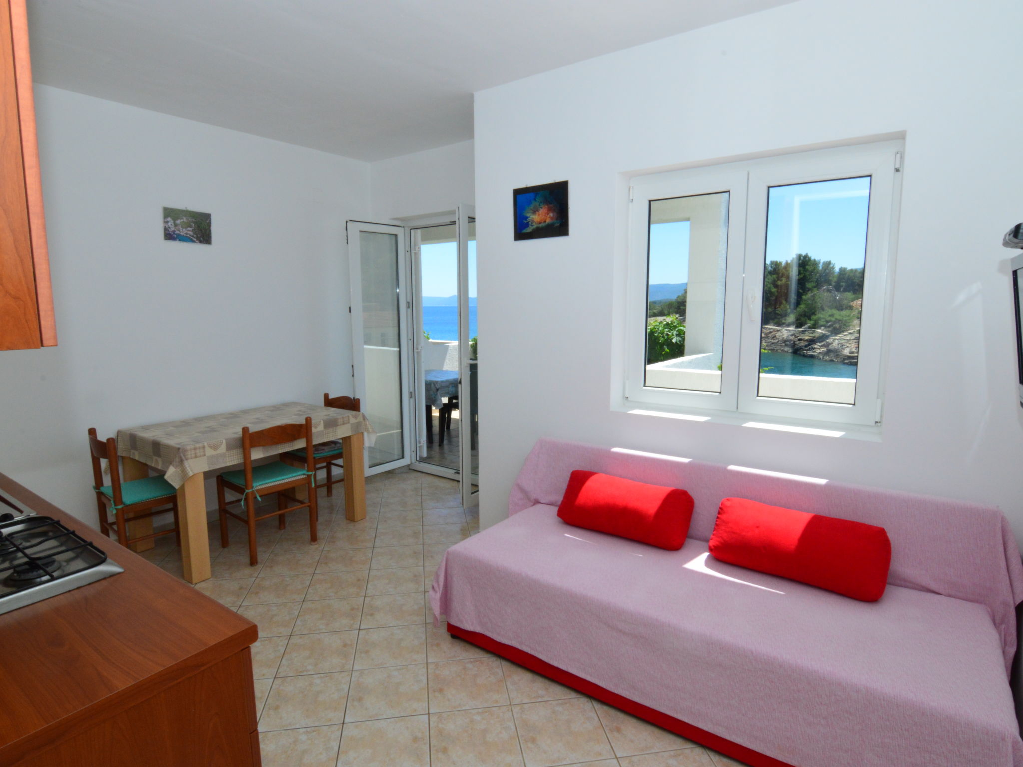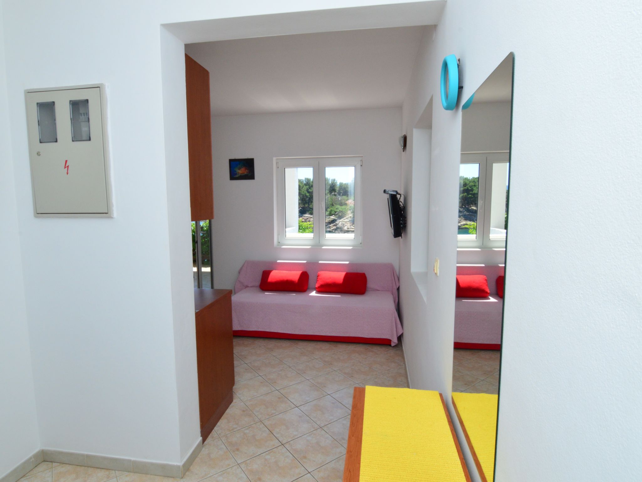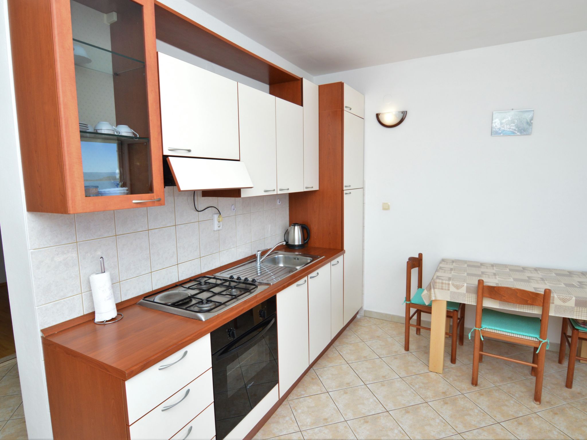 "Buda", appartement 2-kamers 35 m2, op verhoogde begane grond. Woon-/eetkamer met 1 2-pers divanbed, Sat-TV en ventilator. Uitgang naar het balkon. 1 kamer met 1 2-pers bed. Open keuken (4-pits kookplaat, oven, elektrische koffiemachine). Douche/WC. Geen verwarmingsmogelijkheid. Balkon 12 m2. Balkonmeubilair, loggia. Mooi uitzicht op zee. Ter beschikking: Internet (Internet (WiFi), gratis). Parkeerplaats (1 Auto). Maximaal 1 huisdier/hond toegestaan. Maximum bezetting: 3 volwassenen, 1 kind tot 12 jaar.