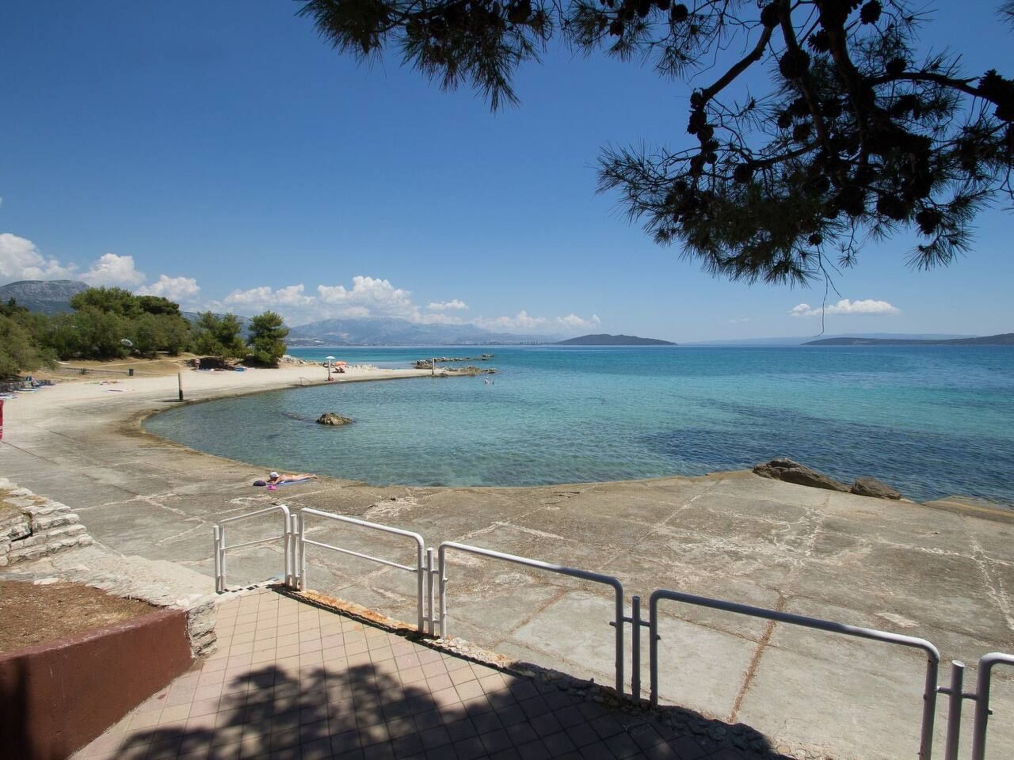 Groot en ruim strand met lange kust, redelijk schone zee en voorzieningen langs de kust. Stranden met kleine kiezels en een geleidelijke toegang tot het water. Prachtig helder water. Niet ver van de historische stad Trogir. Goede faciliteiten in de vorm van restaurants, bars, etc.