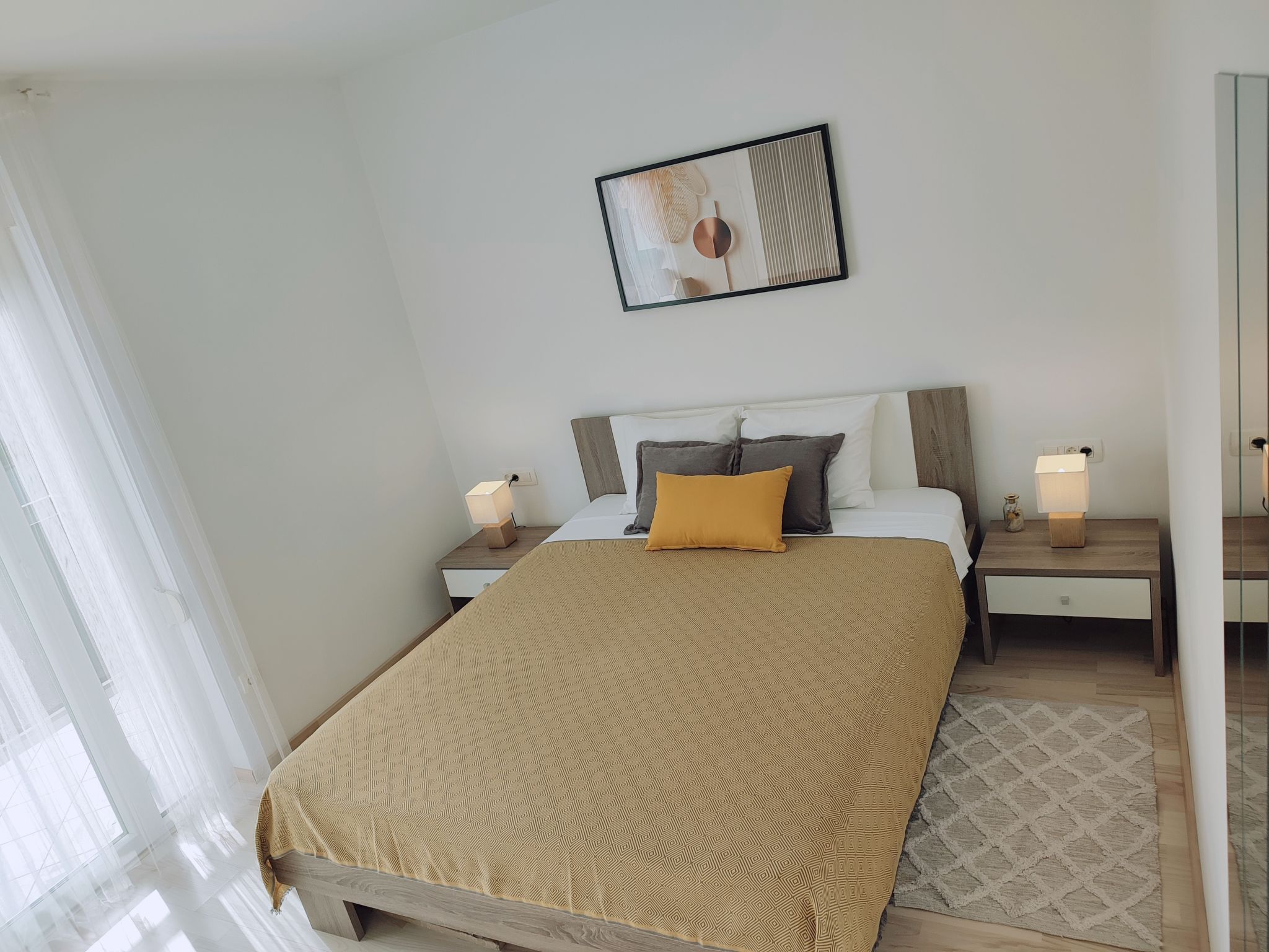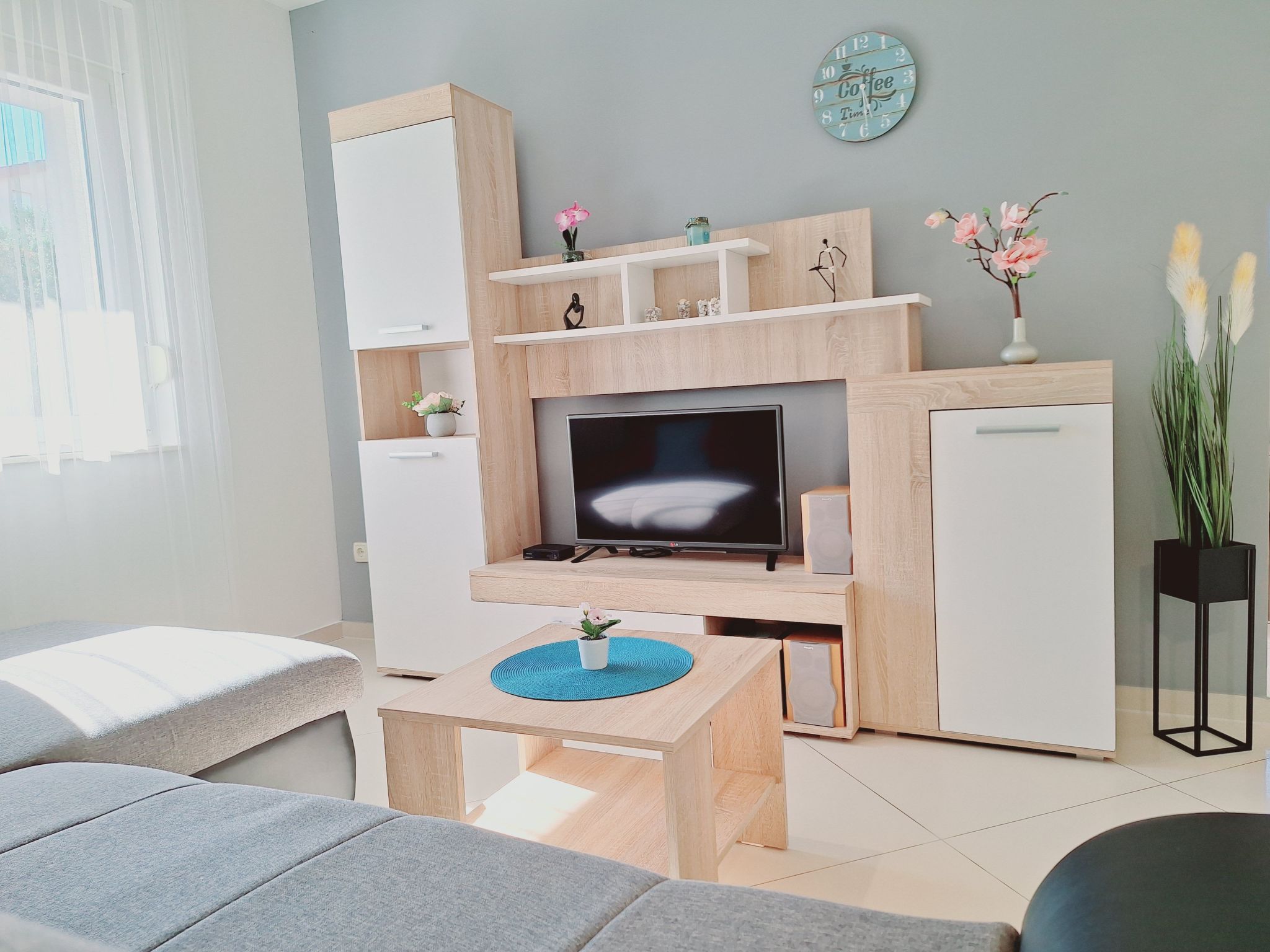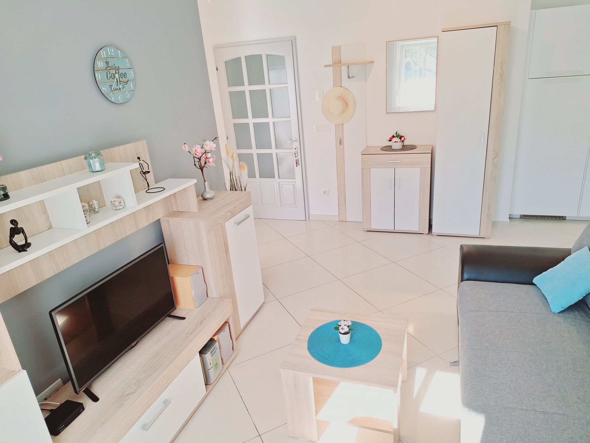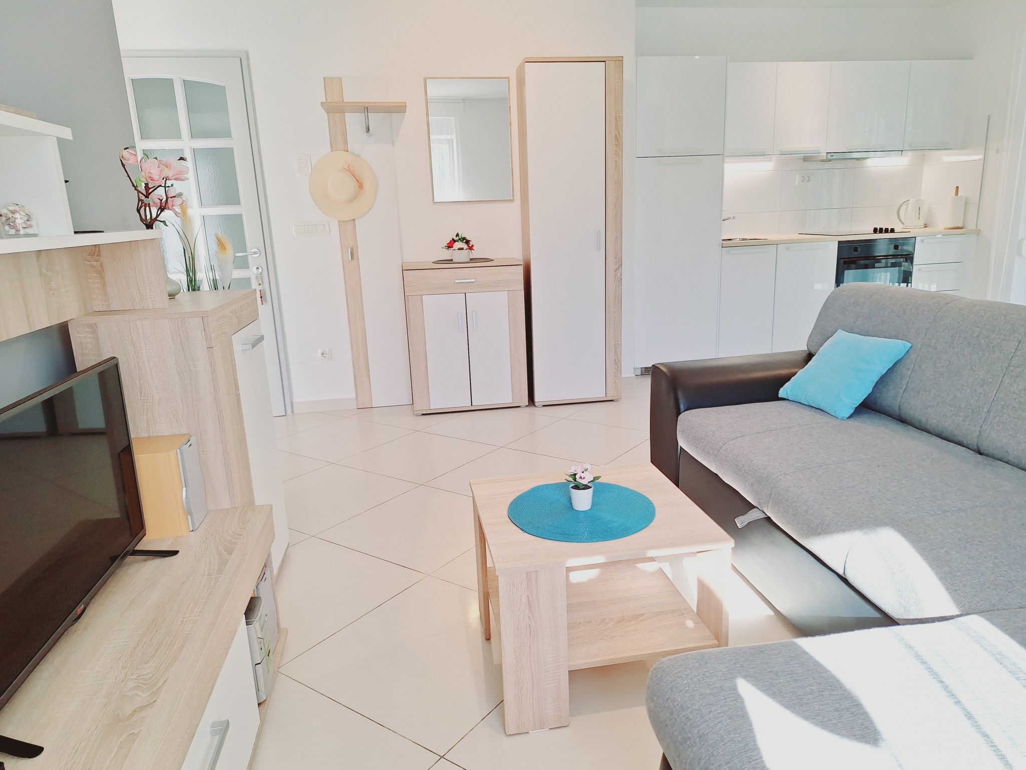 Het appartement van 48 m² is geschikt voor vier personen. Het middelpunt van het appartement is de ruime woonkamer. Het heeft een comfortabele zithoek met een tv en een bank, die kan worden omgebouwd tot een slaapbank (140 x 190cm) voor twee volwassenen of twee kinderen. Direct achter de bank is een eethoek met vier stoelen. Er tegenover ligt de open keuken, uitgerust met een fornuis, oven, koelkast, vaatwasser, broodrooster en waterkoker. De betegelde badkamer met daglicht biedt een douche, wc, wastafel met kastje eronder, wasmachine en een verlichte spiegel. De comfortabele slaapkamer heeft een tweepersoonsbed (160 x 200 cm) met twee nachtkastjes en leeslampjes, evenals een grote kledingkast. Grote tuin met Grill en eettafel voor 8 personen om te ontspannen en te genieten. Er zijn tal van sportieve activiteiten in de tuin voor kinderen en volwassenen. Fitnessruimte buiten, tafeltennis, tafelvoetbal, basketbal, voetbal, schommels en nog veel meer. Opklapbaar kinderbed en babyvoeder is beschikbaar op aanvraag. Het strand ligt op 3 minuten loopafstand van het pand. Basisinformatie - Huisdieren toegestaan: geen - type gebouw: rijtjeshuis - verdieping waarop het object zich bevindt: begane grond - totaal aantal verdiepingen in het gebouw boven de begane grond: 1 - perceeloppervlakte: 3500 m² - bouwjaar: 2015 - huiseigenaar woont op het perceel - aantal slaapkamers: 1 - aantal badkamers: 1 Top eigenschappen - wifi - airconditioning: deels - verwarming: deels - vloerverwarming: deels - terras - tuin: voor gemeenschappelijk gebruik - hond-proof door een hek (geheel omheind) - privéparkeerplaatsen in totaal: 2 - ? daarvan parkeerplaatsen in garage: geen - ? daarvan parkeerplaatsen in carport: geen - ? daarvan privéparkeerplaatsen buiten: 2 Slapen slaapkamer 7 - tweepersoonsbed (van 1,51 m tot 1,79 m breed) - tweepersoonsslaapbank - kinder-/babybed Badkamer badkamer 7 - douche - wastafel - toilet - föhn - daglicht Koken/Wonen - koelkast/vriezer: diepvriesvak, diepvrieskast, koelkast - kookplaat: elektrische kookplaat, kookplaat - oven - broodrooster - waterkoker - vaatwasser - theedoeken - aantal eettafels: 2 - maximaal aantal zitplaatsen: 4 - aantal woonkamers: 1 - kachel Entertainment - televisie: kabel-tv - muziekinstallatie - radio - cd-speler - fitnessapparatuur Voor kinderen - kinderstoel - speeltoestellen Huishouden - wasmachine: voor alleengebruik in het object - strijkijzer - aparte kachels / ventilatorkachel / radiatoren Duurzame accommodaties - Recycling van afval - waterbesparende apparaten - Hernieuwbare energie - Zonne-energie Buitenbereik - veranda - outdoor meubilair - barbecue: barbecue - buitendouche Omgeving - levensmiddelenzaak: 400,0 km - uitgaansgelegenheid: 5,0 km - restaurant: 500 m - station: 4,0 km - vliegveld: 2,0 km - afstand openbaar vervoer: 300 m - strand: 200 m - kiezelstrand: 200 m - grasstrand: 500 m - zandstrand: 500 m - zee: 200 m - watersport: 1,0 km - golfplaats: 23,0 km