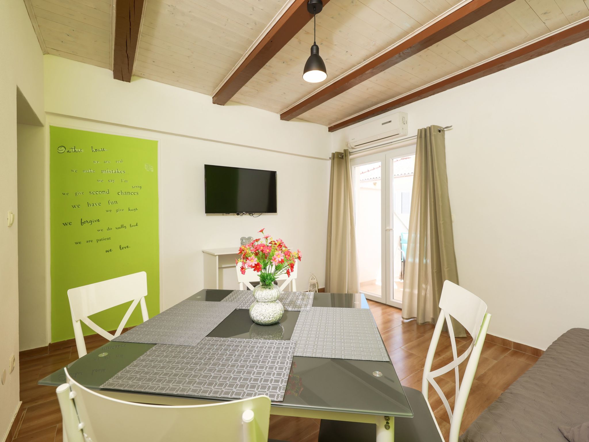 Maximaal 3 huisdieren/honden toegestaan. Welcome to our newly renovated holiday apartments, available since 2017, nestled in a serene location merely 50m away from the beach. Enclosed within a detached and fenced property in the picturesque town of Ljubac, near the vibrant city of Zadar, these apartments promise an idyllic escape right next to the pebble and sandy shores. Enjoy the tranquility along a seldom-used town road, offering a peaceful retreat from the hustle and bustle.Inside, the apartment on the first floor features a contemporary open plan living-/dining area, complete with a fully equipped kitchen, ensuring all the comforts of home. It accommodates guests in a cozy bedroom with a double bed and offers the convenience of a modern bathroom with a shower. For extra guests, the living area includes a sofa bed, and a baby cot is available upon request, ensuring a comfortable stay for couples, small families, or friends, complemented by amenities like air conditioning, TV, free WiFi, and picturesque views from the private balcony and/or terrace.The property's exterior offers ample amenities to enhance your stay. Each apartment has access to a private balcony, while the shared terrace downstairs invites relaxation with garden furniture, sunshade, and a grill/barbecue for delightful outdoor meals. A free parking area and an outdoor shower add to the convenience, ensuring a seamless beachside living experience.The location couldn't be more advantageous, positioned close to a market, a restaurant, and the historical city of Zadar, only 16 km away, known for its rich cultural heritage, attractions, and local delicacies. The house's proximity to natural wonders like Kornati, Paklenica, Krka, Plitvice Lakes, and Northern Velebit National Park makes it a perfect base for exploring the breathtaking surroundings. Additionally, Zadar Airport is just 19 km away, facilitating easy travel arrangements.Offering a blend of comfort, convenience, and natural beauty, these holiday apartments present an unparalleled opportunity for a memorable getaway. Whether you're looking to unwind near the beach, explore the local culture, or indulge in outdoor activities, our location serves as the perfect backdrop for a delightful vacation. The owner's presence next door means assistance is always at hand, ensuring a stress-free and enjoyable stay. Pets are welcome, and private mooring is available, making it ideal for every member of the family and boating enthusiasts alike.