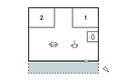 Indeling: Slaapkamer(1x 2-persoonsbed(den)), Slaapkamer(1x 2-persoonsbed(den)), Woonkamer met open keuken(1x Opklapbed(den) of matras(sen)), Badkamer(Toilet: warm en koud water, Douche), Terras of vergelijkbaar(Balkon)