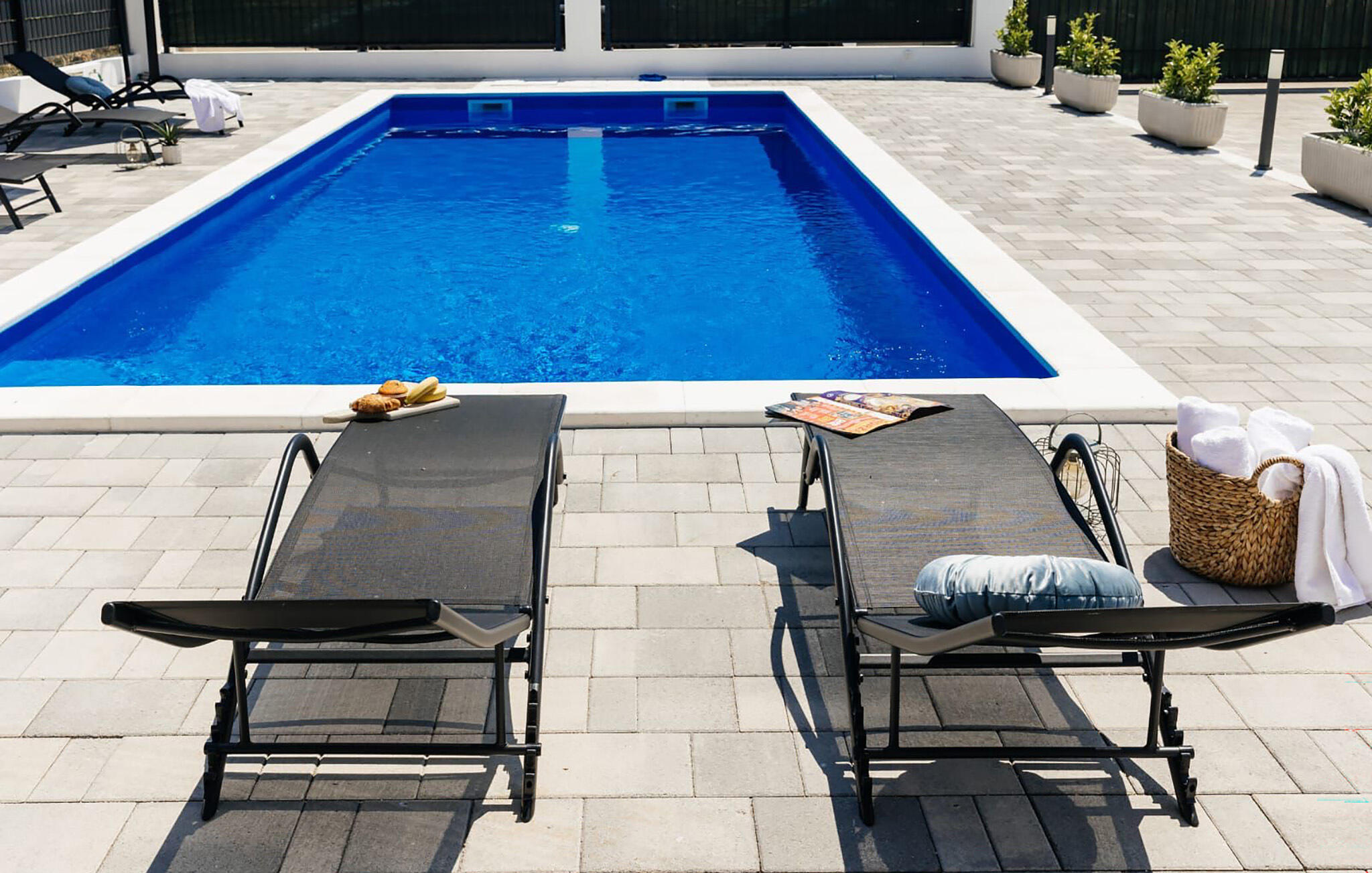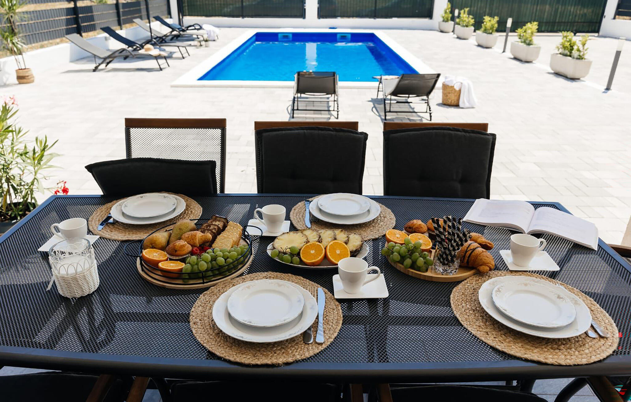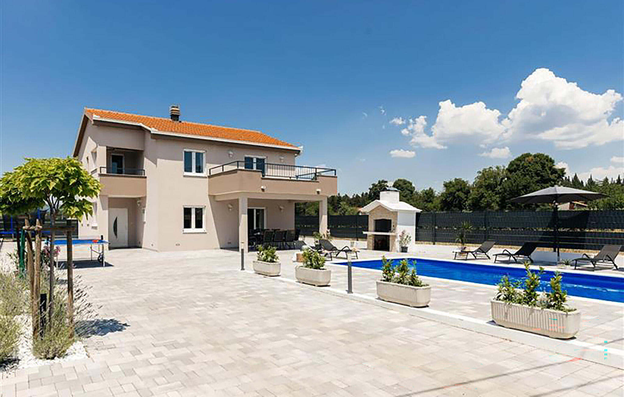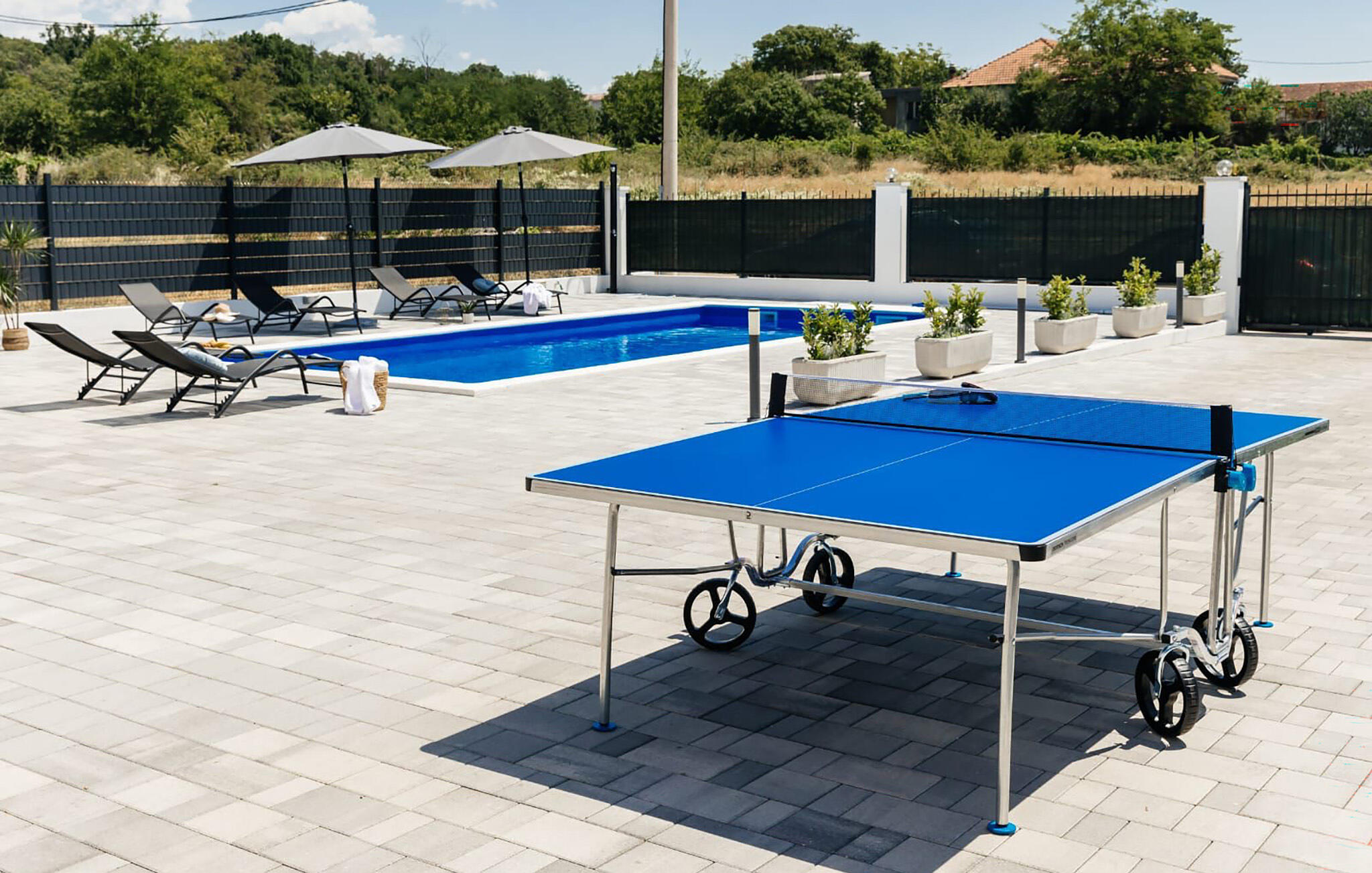 Wandel op blote voeten naar je ruime terras, neem een duik in het sprankelende zwembad en serveer een heerlijk ontbijt op het terras. Laad je batterijen op op de ligstoel, speel een spelletje tafeltennis en klets bij onder het genot van een glas wijn tot in de zwoele zomeravonden.