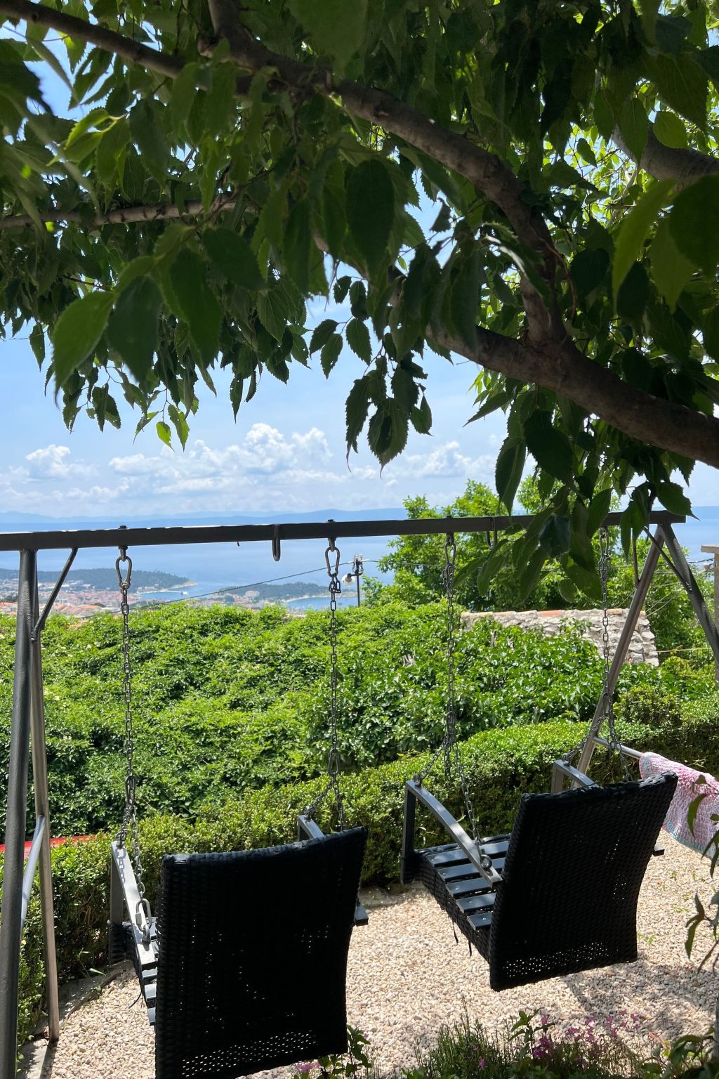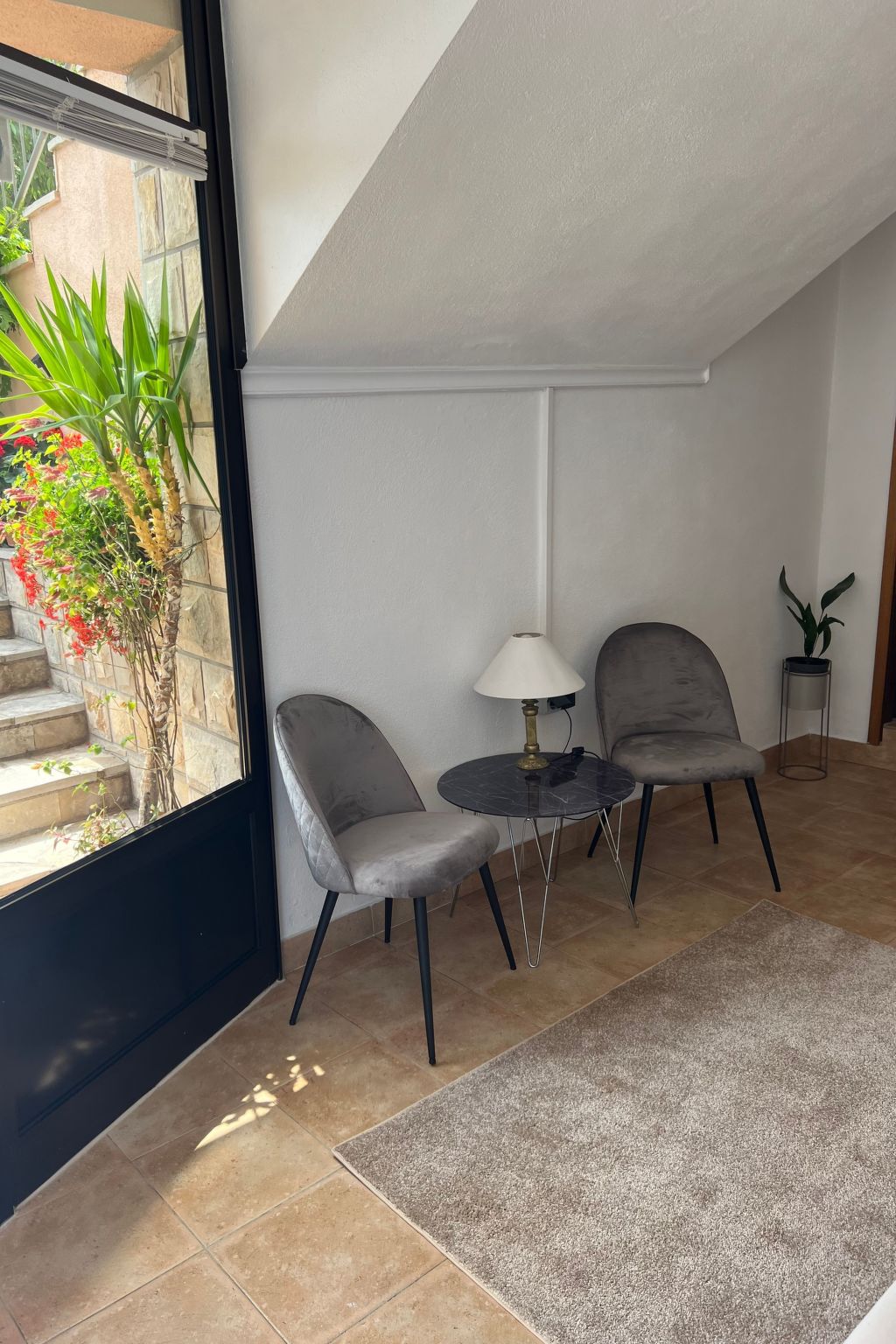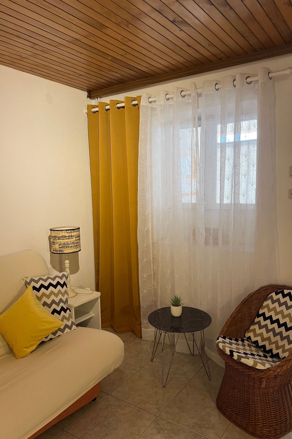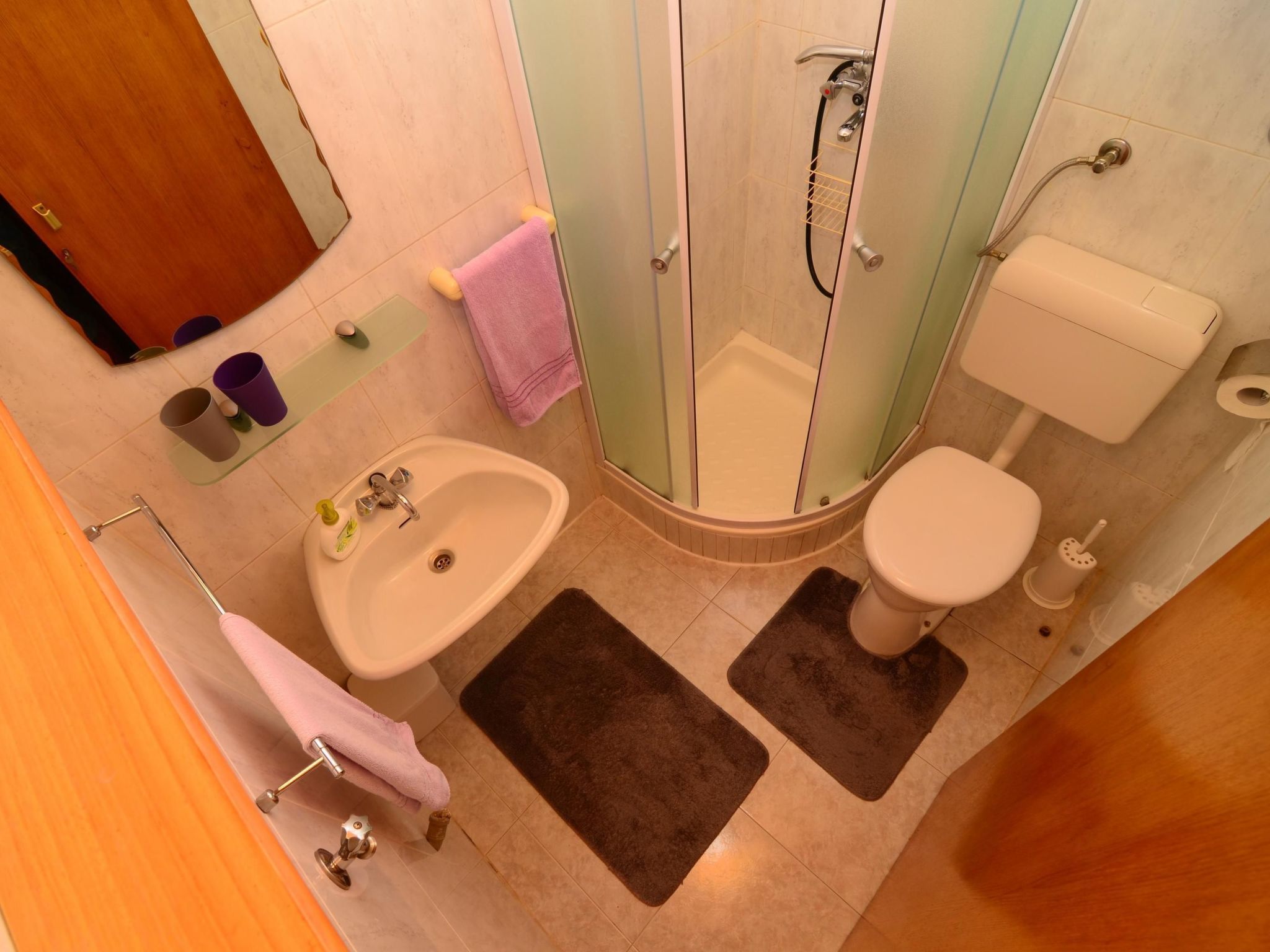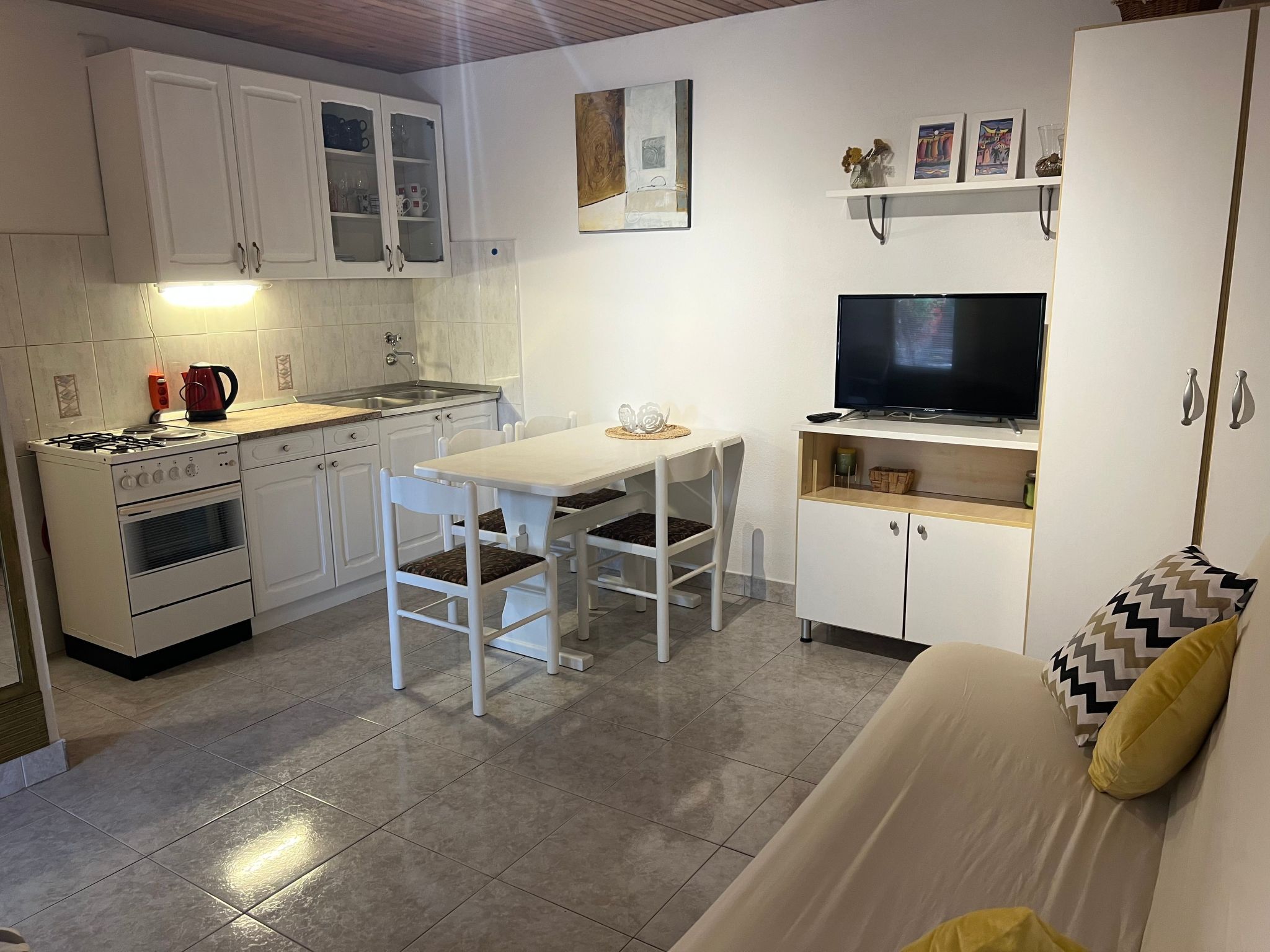 New, modern, beautiful flat house, above Makarska, in the district of Veliko brdo, 2.5 km from the centre of Makarska, in a quiet, sunny position on a slope, 2 km from the sea, 2 km from the beach, in the countryside, south facing position. For shared use: property 1300 m2 (fenced), outdoor shower. Garden furniture, barbecue. Car park at the house on the premises. Shop 1.0 km, restaurant 200 m, pebbly beach 2 km. The house is situated on the edge of an olive grove. Marvellous view of the town, island and sea. A warm welcome ! Accommodation: 3-room flat 43 m2, very comfortable, on the ground floor, south-west facing position, beautiful furnishings: Living/dining room 16 m2 with 1 sofa bed 140x200, SaTV , 1 bedroom with French-size bed 160xc200 cm; veranda to the south, exit to the garden (barbecue) with its own table, playground, , the kitchen: 2 hotplates, electric coffee machine), shower/WC. Beautiful panoramic view of the sea and mountains. A large Mediterranean garden. Ideal for families with 2 children. Ideal for those who want a relaxing holiday, away from the noise and mass tourism.