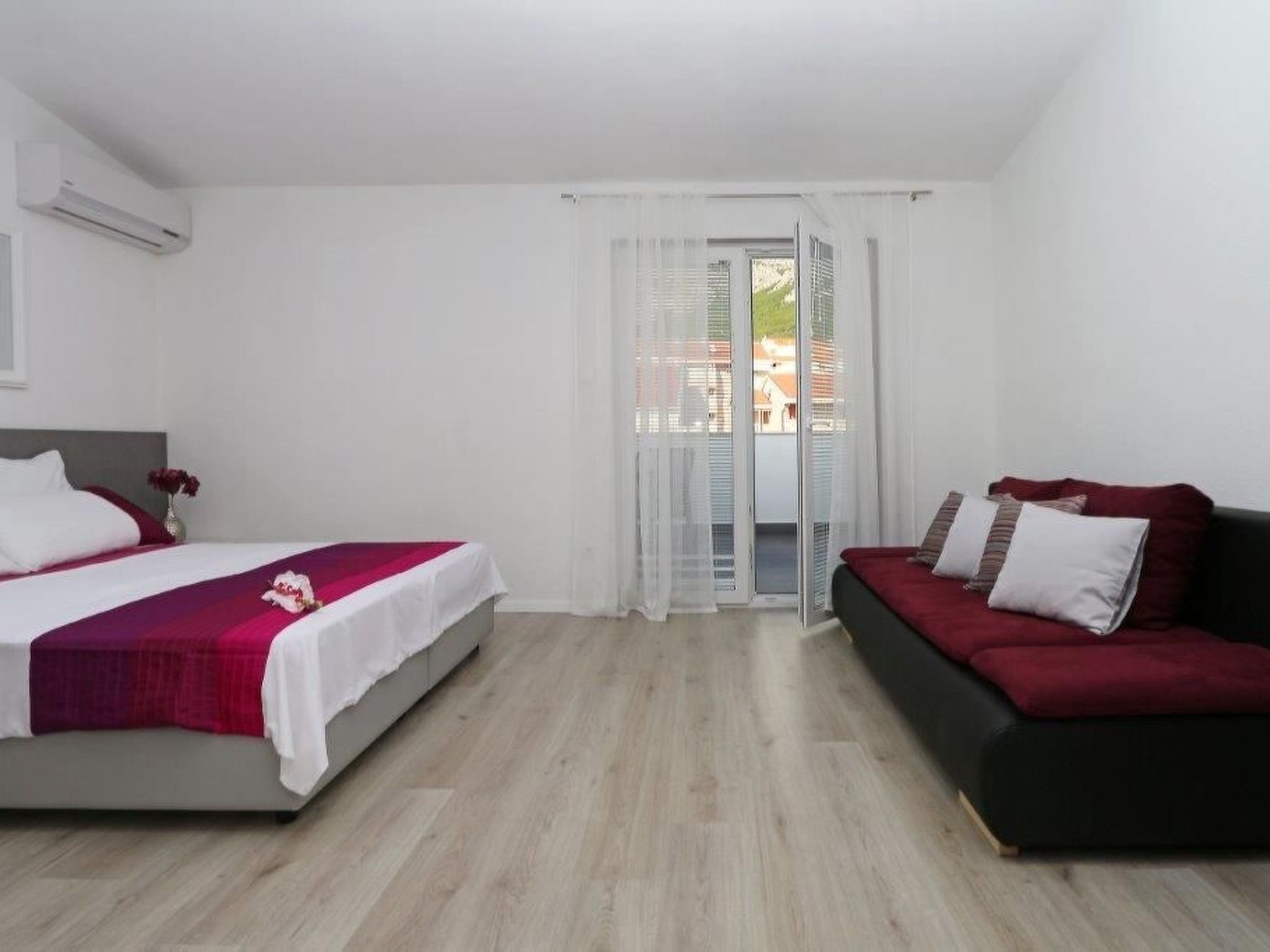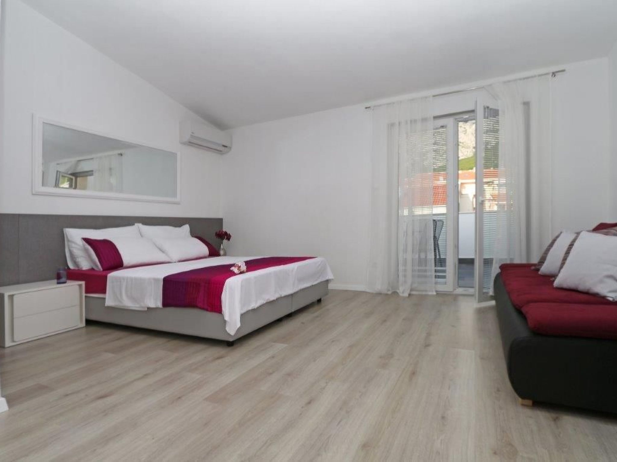 Discover the charm and comfort of our cozy studio apartment nestled in the heart of Makarska, Dalmatia. Perfectly designed to accommodate a small family or a couple, this serene haven offers a unique blend of convenience and scenic beauty, making it an ideal getaway spot. The apartment boasts a spacious terrace that commands an inspiring view of the majestic Biokovo Mountain, providing the perfect backdrop for your morning coffee or evening relaxation.Inside, the apartment is well-equipped with all the essentials for a comfortable stay. It features a convenient layout that includes a sleeping area with a double bed and an extendable sofa, suitable for a family with a child. The presence of an electric kettle adds an extra layer of convenience for preparing light meals or a warm cup of tea. The design focuses on creating a homely atmosphere where guests can unwind after a day of exploration or beach activities.The outdoor area of the apartment is equally inviting with its large terrace and balcony, offering guests a private space to enjoy the outdoors and the peaceful surroundings. Whether you're indulging in a leisurely breakfast or simply soaking in the views of the surrounding landscape, these outdoor spaces are designed to enhance your stay and create lasting memories.Located on the 3rd floor, this apartment puts you within a short walking distance from the beach (400m) and the sea (500m), making it convenient for guests eager to dive into the crystal-clear waters of Dalmatia. For those interested in water sports, opportunities are just 400m away, ensuring you have plenty of options for adventure and fun. The neighborhood also boasts a variety of amenities, including a wine bar, cafe bar, pizzeria, bakery, supermarket, pharmacy, and tennis center, ensuring you have everything you need close by.Our studio apartment in Makarska is more than just a place to stay; it's a gateway to creating unforgettable experiences in one of Dalmatia's most beloved destinations. With its prime location, comfortable interiors, and stunning views, it promises a holiday filled with relaxation, convenience, and enjoyment. Welcome to your home away from home!