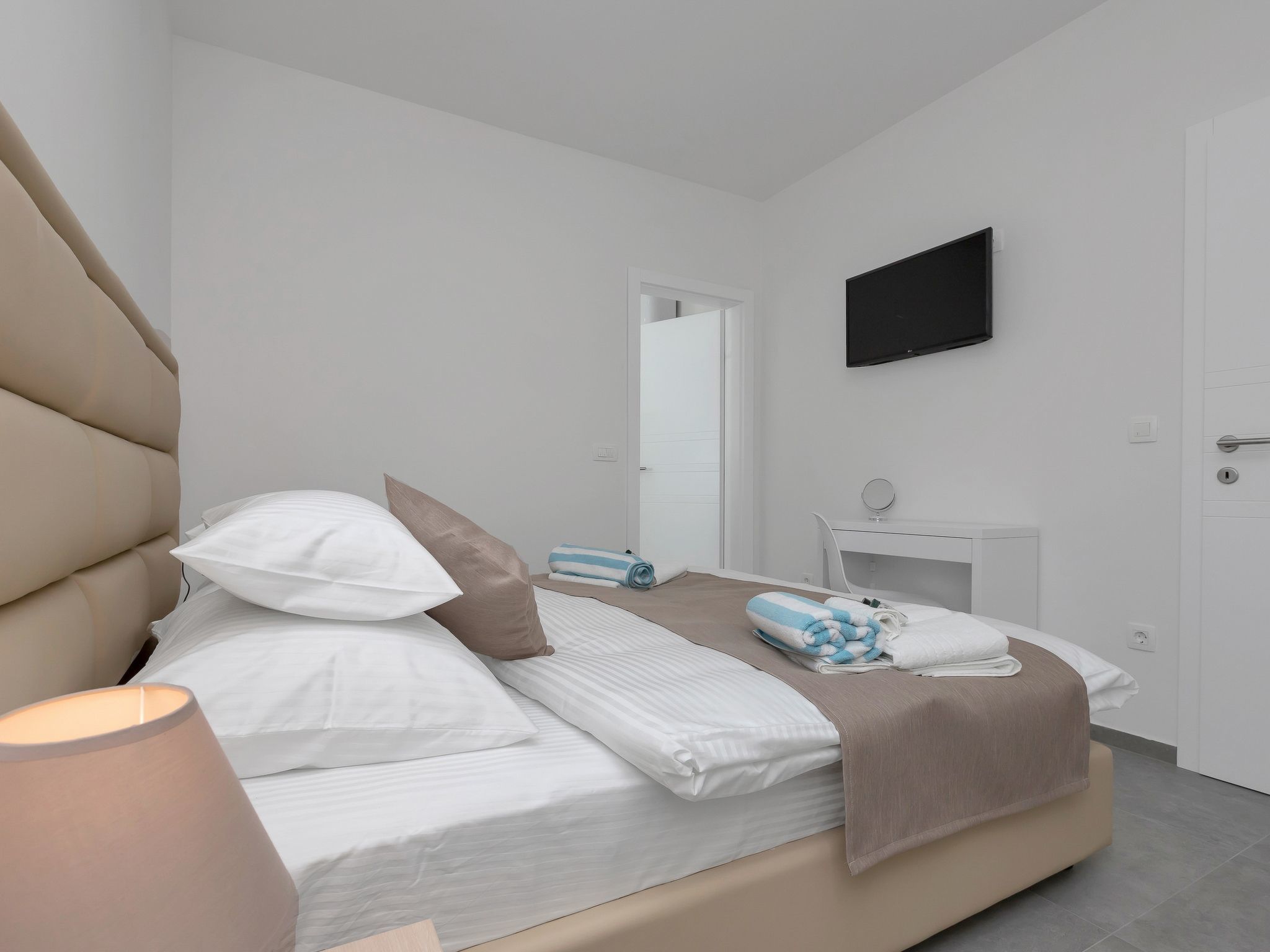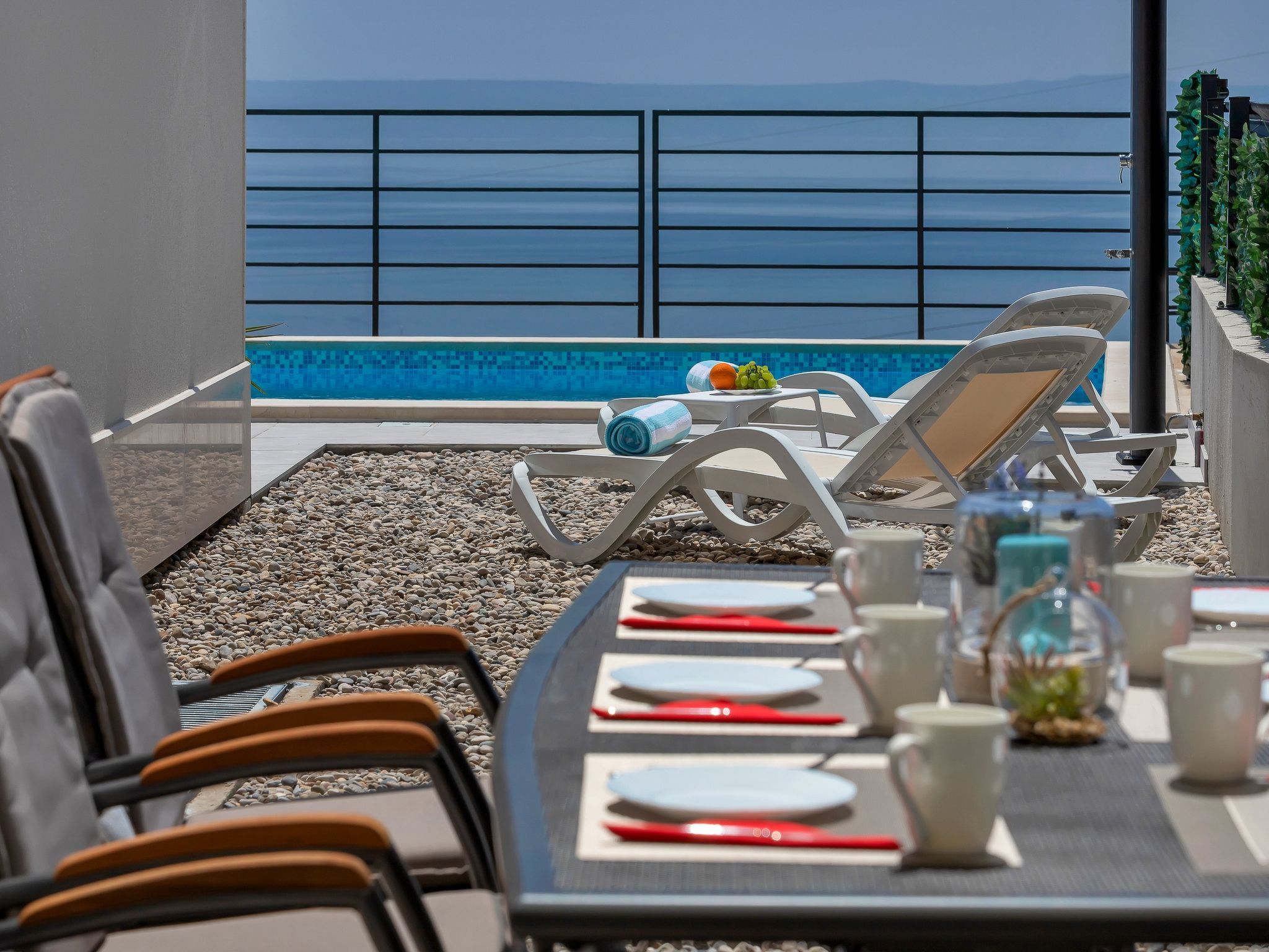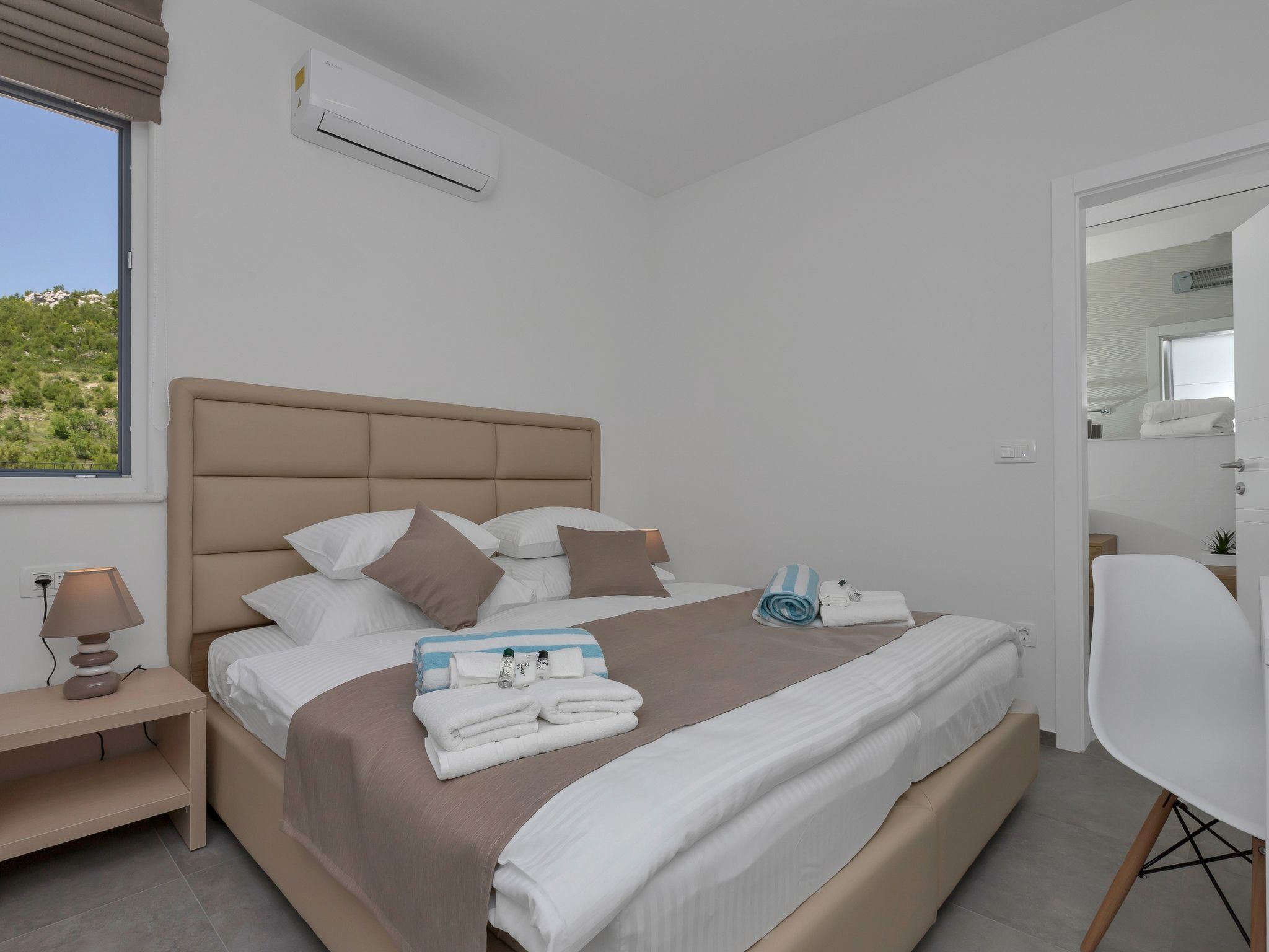 Nestled in the serene landscapes of Veliko Brdo, Dalmatia, Villa Violet presents itself as an idyllic retreat for those seeking tranquility with a view. This holiday house, designed to comfortably accommodate up to 6 guests, stands as the epitome of relaxation with its breathtaking views of the sea and nearby islands. Whether you're a couple looking for a romantic getaway or a family needing a peaceful holiday destination, Villa Violet ensures a memorable stay with its safe surroundings and ample amenities.Inside, guests will find a realm of comfort and entertainment equipped to meet every need. The villa boasts a spacious living area complete with a TV for leisurely evenings, alongside an entertainment room and a home theater for movie nights. For families, a children's playroom and a PlayStation 4 keep the younger guests entertained. The heart of the home, a large kitchen with a dining area, is perfect for preparing and enjoying meals together. Further enhancing indoor comfort, each of the two bedrooms is accessorized with a cozy double bed, supplemented by a sofa bed in the living room and two bathrooms equipped with showers, ensuring convenience for all guests.The outdoor area of Villa Violet is nothing short of spectacular, featuring a striking saltwater pool as its centerpiece. Guests can bask in the sun on deck chairs or enjoy meals outdoors on the terrace, equipped with a table and chairs. The property also offers a free parking spot, adding to the worry-free experience of this vacation haven.The villa's location in Veliko Brdo rewards guests with not only stunning sea views but also convenient access to the beach, just a 1300m walk away. For those bringing furry friends, a dog beach is located within 2000m. Essential amenities are well within reach, with the nearest grocery store only 500m away and the town center 2000m from the villa, making it easy to immerse oneself in the local culture and cuisine.Villa Violet is a promise of a serene holiday experience in Dalmatia. With its delightful combination of comfort, convenience, and stunning surroundings, it offers the perfect setting for an unforgettable holiday. From the allure of the saltwater pool to the spacious living areas and the promise of relaxation, this holiday house invites guests to leave their worries behind and indulge in the beauty of Veliko Brdo.