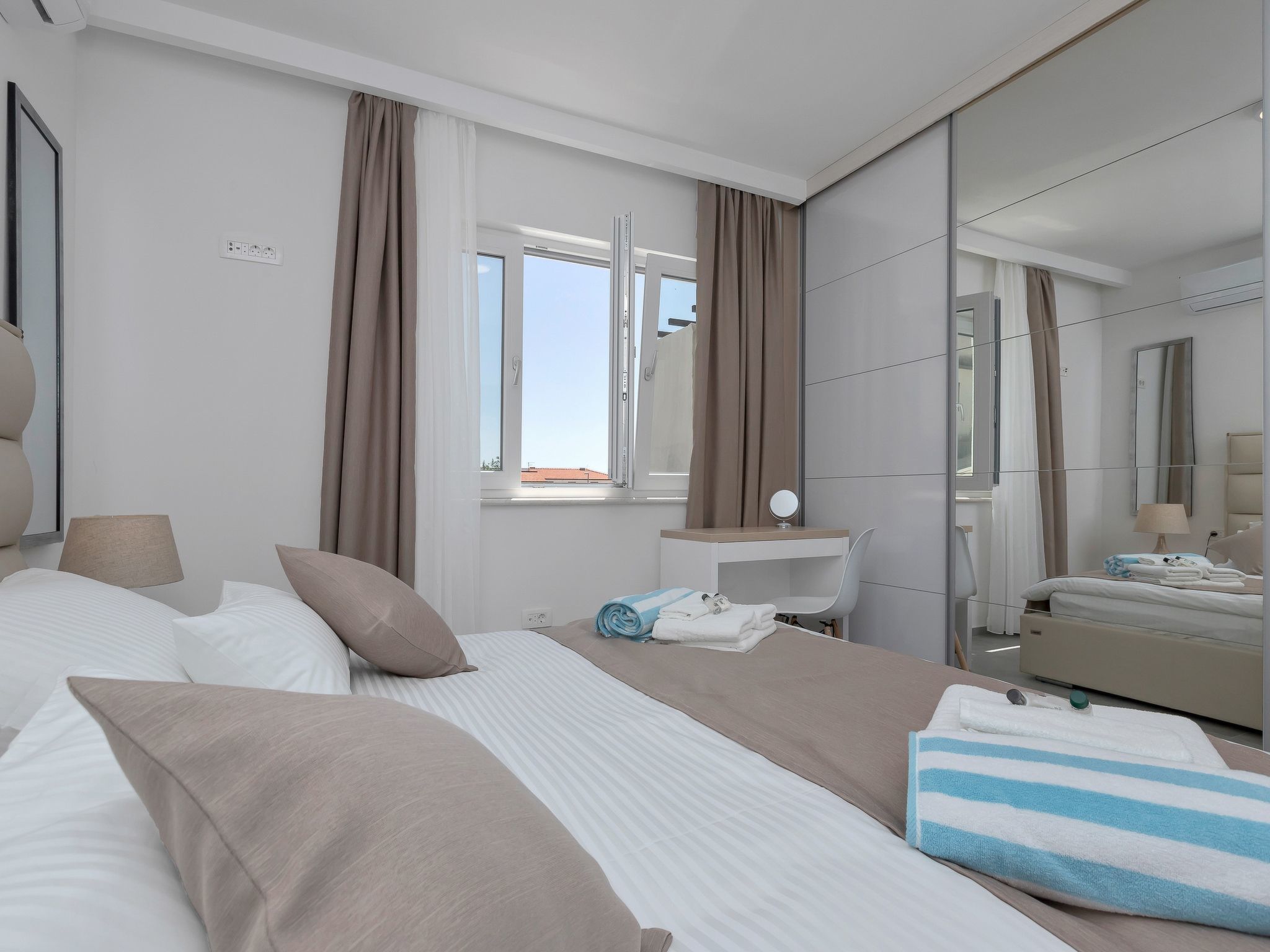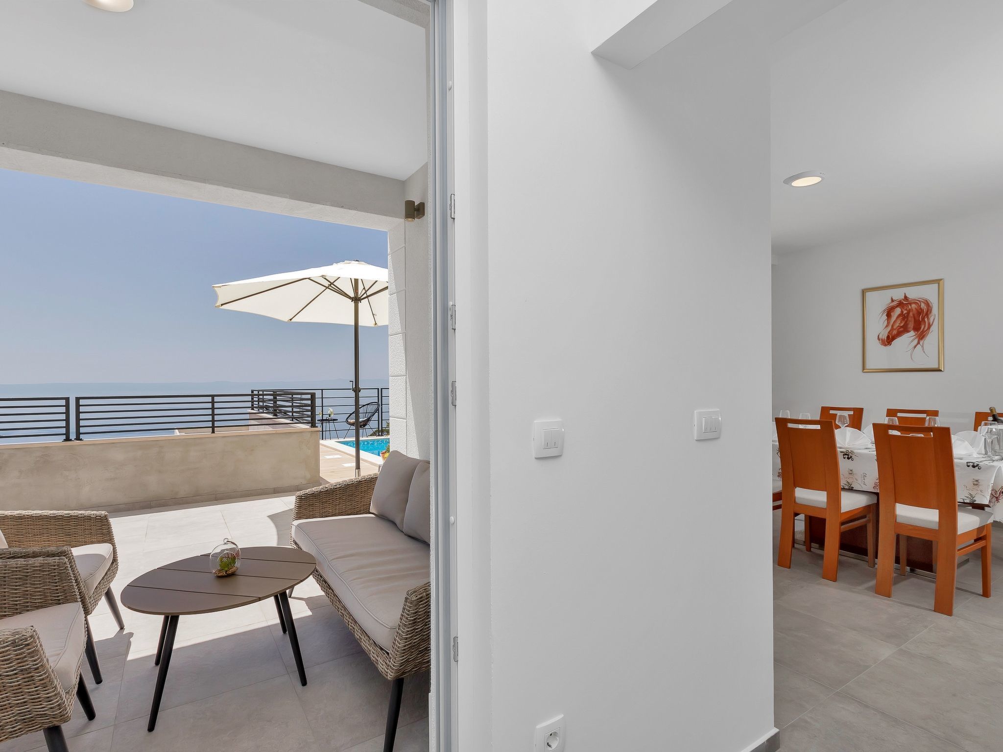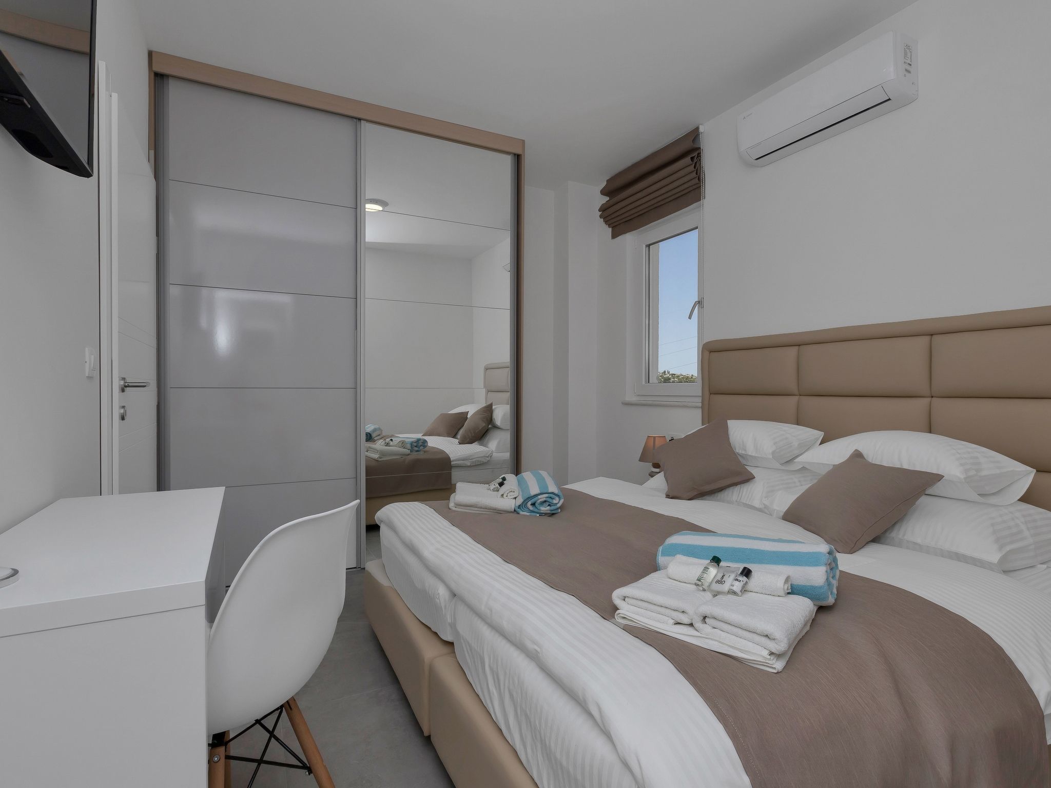 Nestled in the serene landscapes of Veliko Brdo, Dalmatia, Villa Violet presents itself as an idyllic retreat for those seeking tranquility with a view. This holiday house, designed to comfortably accommodate up to 6 guests, stands as the epitome of relaxation with its breathtaking views of the sea and nearby islands. Whether you're a couple looking for a romantic getaway or a family needing a peaceful holiday destination, Villa Violet ensures a memorable stay with its safe surroundings and ample amenities.Inside, guests will find a realm of comfort and entertainment equipped to meet every need. The villa boasts a spacious living area complete with a TV for leisurely evenings, alongside an entertainment room and a home theater for movie nights. For families, a children's playroom and a PlayStation 4 keep the younger guests entertained. The heart of the home, a large kitchen with a dining area, is perfect for preparing and enjoying meals together. Further enhancing indoor comfort, each of the two bedrooms is accessorized with a cozy double bed, supplemented by a sofa bed in the living room and two bathrooms equipped with showers, ensuring convenience for all guests.The outdoor area of Villa Violet is nothing short of spectacular, featuring a striking saltwater pool as its centerpiece. Guests can bask in the sun on deck chairs or enjoy meals outdoors on the terrace, equipped with a table and chairs. The property also offers a free parking spot, adding to the worry-free experience of this vacation haven.The villa's location in Veliko Brdo rewards guests with not only stunning sea views but also convenient access to the beach, just a 1300m walk away. For those bringing furry friends, a dog beach is located within 2000m. Essential amenities are well within reach, with the nearest grocery store only 500m away and the town center 2000m from the villa, making it easy to immerse oneself in the local culture and cuisine.Villa Violet is a promise of a serene holiday experience in Dalmatia. With its delightful combination of comfort, convenience, and stunning surroundings, it offers the perfect setting for an unforgettable holiday. From the allure of the saltwater pool to the spacious living areas and the promise of relaxation, this holiday house invites guests to leave their worries behind and indulge in the beauty of Veliko Brdo.