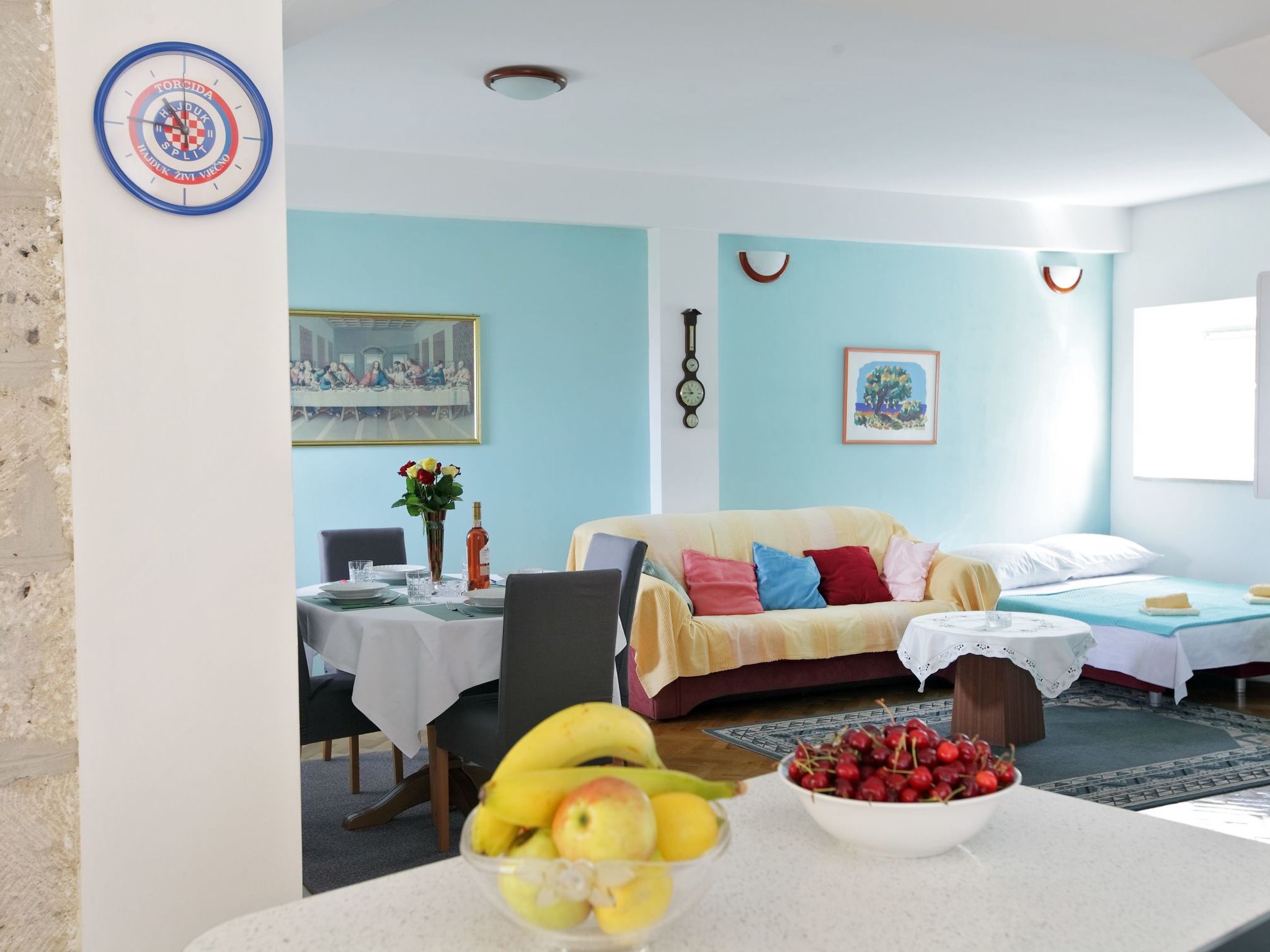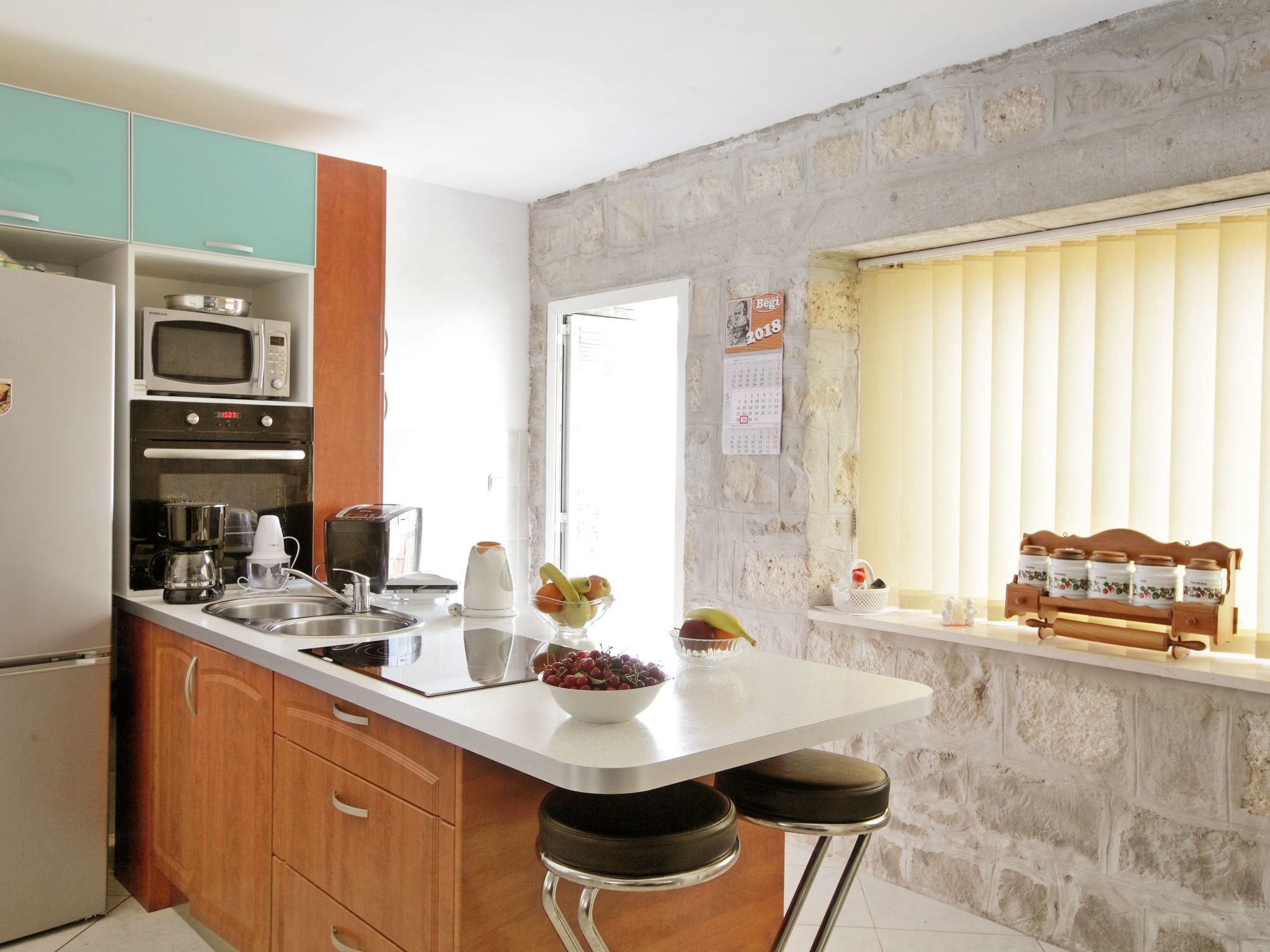 This holiday house is located in the center of Mravince, Solin, 4 kilometers from Split, 7 km from center (Diocletian's Palace).The house features a balcony and a beautiful roof terrace - both offer stunning panoramic views across the sea and to Split,Trogir, Kastela bay and the islands of Brac and Solta. To the other side they overlook the mountains of Kozjak and Mosor. Downstairs in the garden area are barbecue facilities.The traditional stone house was built in 1930 and has only recently been extensively renovated in period October 2017 - April 2018. It features 210 m² of living space, spread over three floors. There are three bedrooms, two bathrooms, a modern fully equipped kitchen and a generous living-/dining area. WLAN, Sat TV and plenty of bedsheets are included in the rental fee.The landlord lives next door and is always available and happy to help. Upon request, he can take you on guided tours through the city, organise bbqs for you, drive you to places etc. (24 hours).