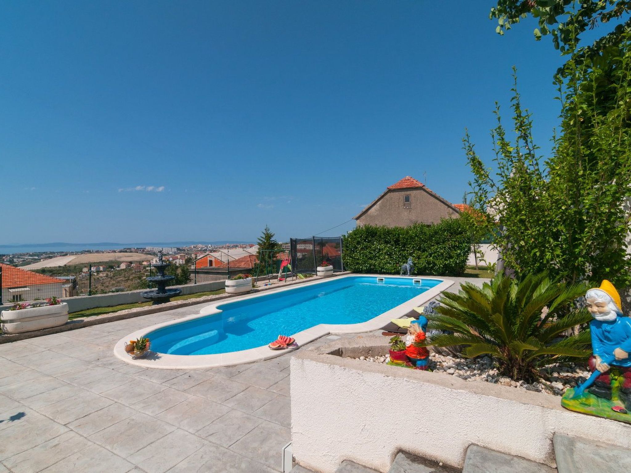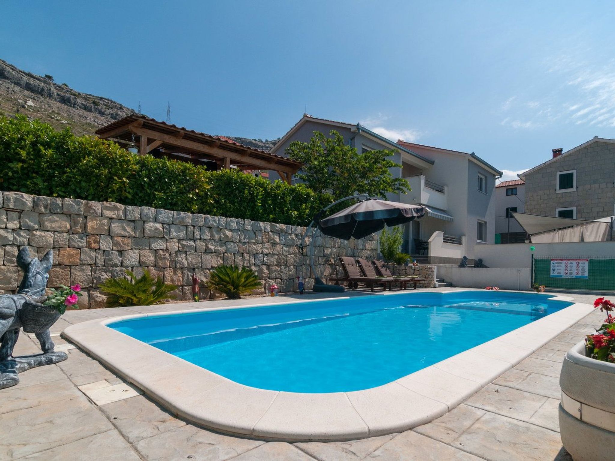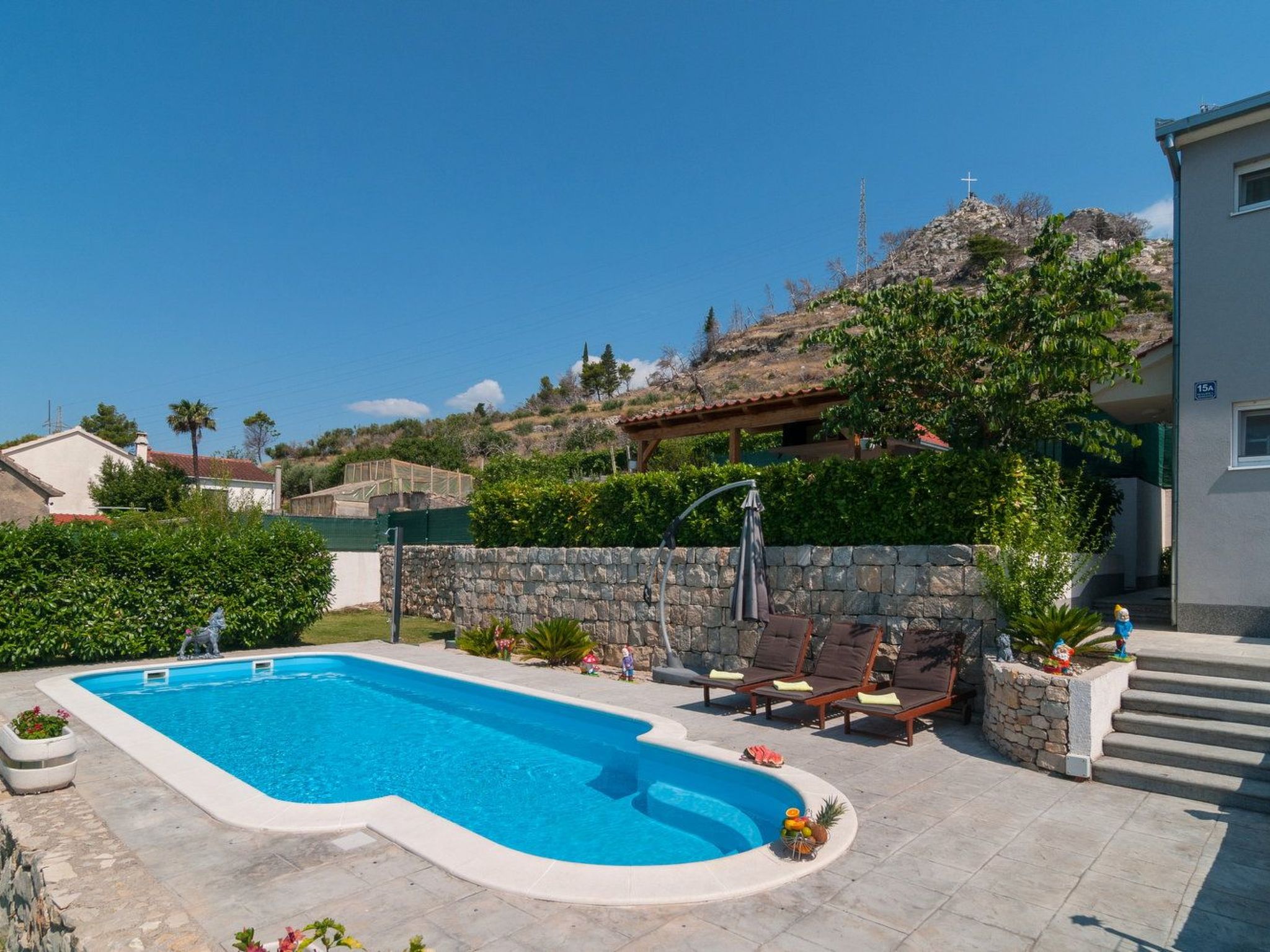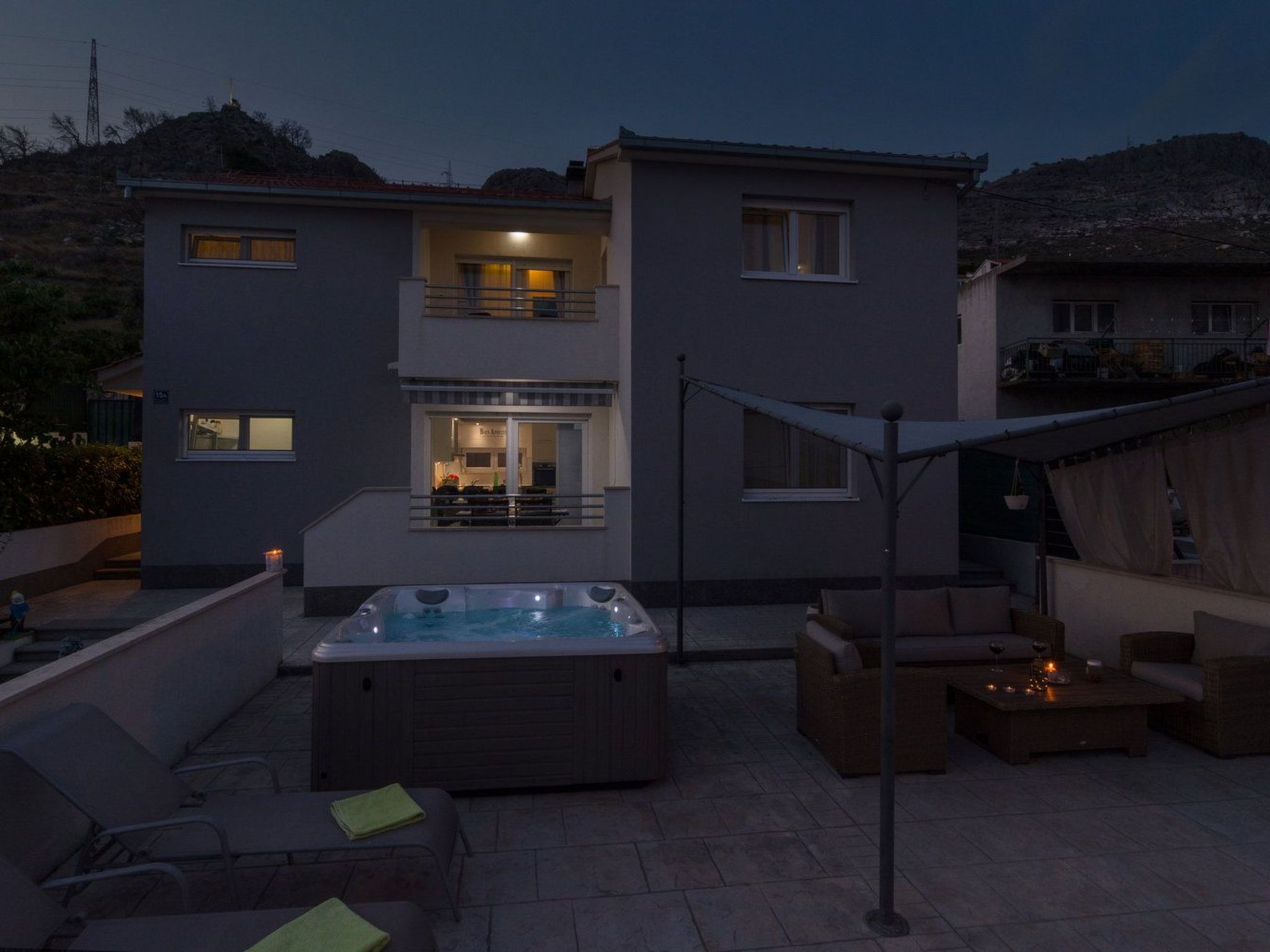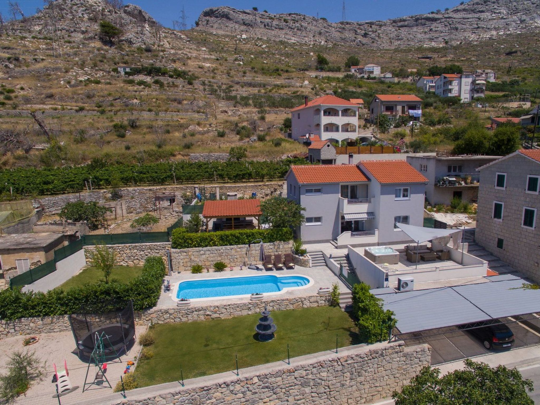 Immerse yourself in the comfort and tranquility of this spacious holiday house in Split-Kucine, set against the stunning backdrop of Dalmatia. This property promises an unforgettable stay for up to 8 guests, featuring a heated outdoor swimming pool and an outside whirlpool for 7 people, both designed to offer panoramic views of the Adriatic Sea and its islands. Just 7 km away from the vibrant city of Split and a mere 3 km from the crystal-clear Adriatic Sea, it's the perfect getaway for those who cherish both relaxation and adventure.Inside, guests will find a welcoming atmosphere equipped with all the necessities for a comfortable stay. The house boasts three cozy bedrooms and two bathrooms, ensuring ample space and privacy for all guests. Convenience is key, with the inclusion of a washing machine and a clothes dryer for sole use. The kitchen is fully fitted with an induction hob, filter coffee machine, coffee capsules/pods machine, dishwasher, and an electric kettle, ready to cater to all your dining needs.The allure of this holiday home extends to its exterior, where leisure and entertainment options abound. The covered fireplace with a large table invites alfresco dining and evenings of warmth and camaraderie. Younger guests, and the young at heart, will delight in the garden's offerings, including a trampoline, toboggan, swing, mini-football, and badminton set-up. With the addition of a roof terrace for the exclusive use of guests, every day promises a new vantage point from which to enjoy the breathtaking surroundings.Conveniently located, the house is just a short distance from an array of activities and necessities. A grocery store is accessible within 200m, offering ease for all your day-to-day needs. For those interested in exploring further, the beach and the sea are just 3 km away, inviting guests to indulge in water sports or simply enjoy the tranquility of the waters. Moreover, for the adventure seekers, there is the option to rent 4 ATV Quad 500 ccm with guide directly at the house, promising an exciting exploration of the terrain. Additionally, a mountain rail located just 1 km away provides a unique opportunity to witness the scenic beauty of the area.This holiday house in Split-Kucine is more than just a place to stay; it's a destination that offers a mix of relaxation, adventure, and unforgettable memories. With its comprehensive amenities, stunning location, and the promise of comfort, it stands out as a perfect retreat for families, friends, and anyone looking to soak in the beauty of Dalmatia.