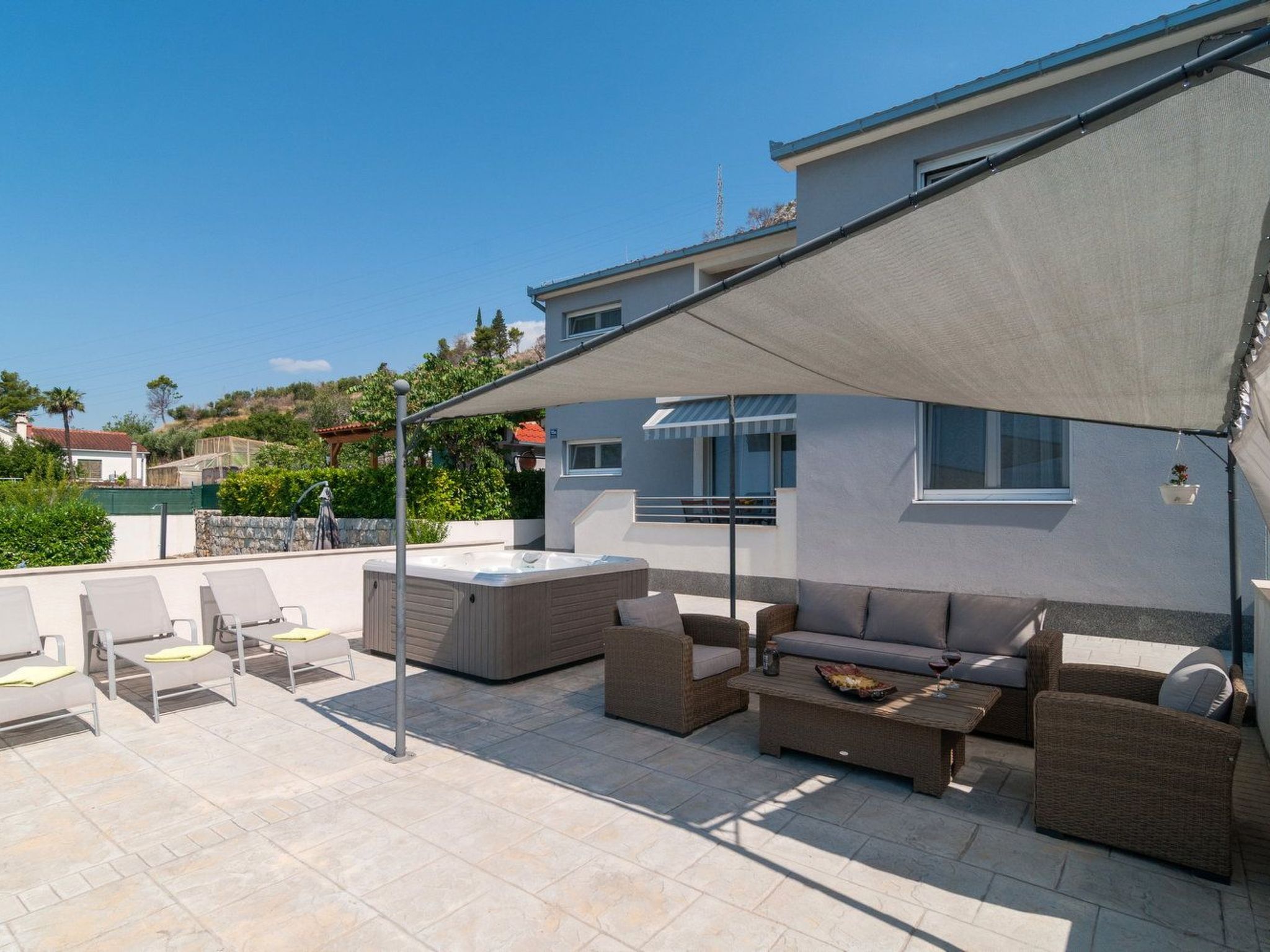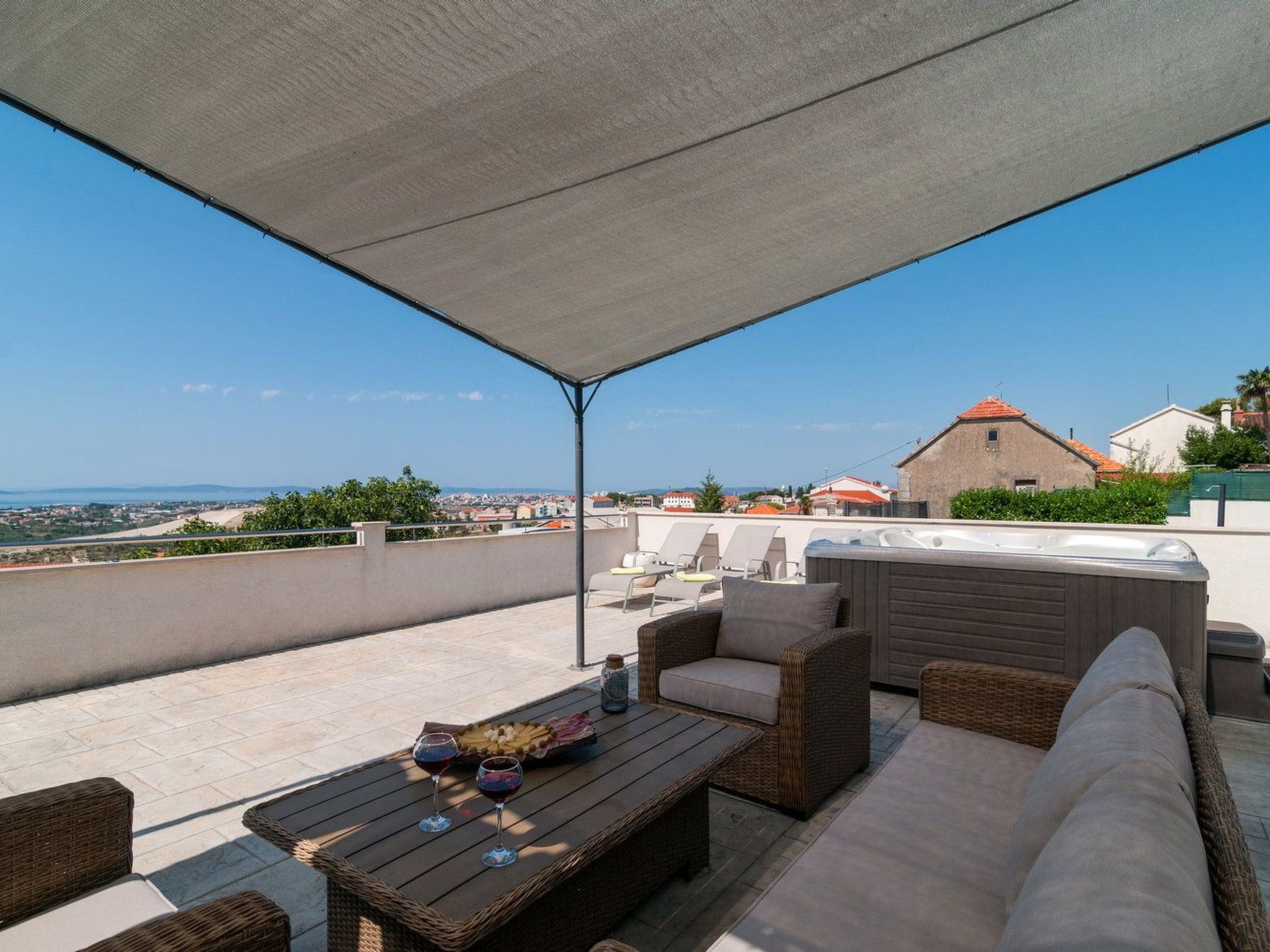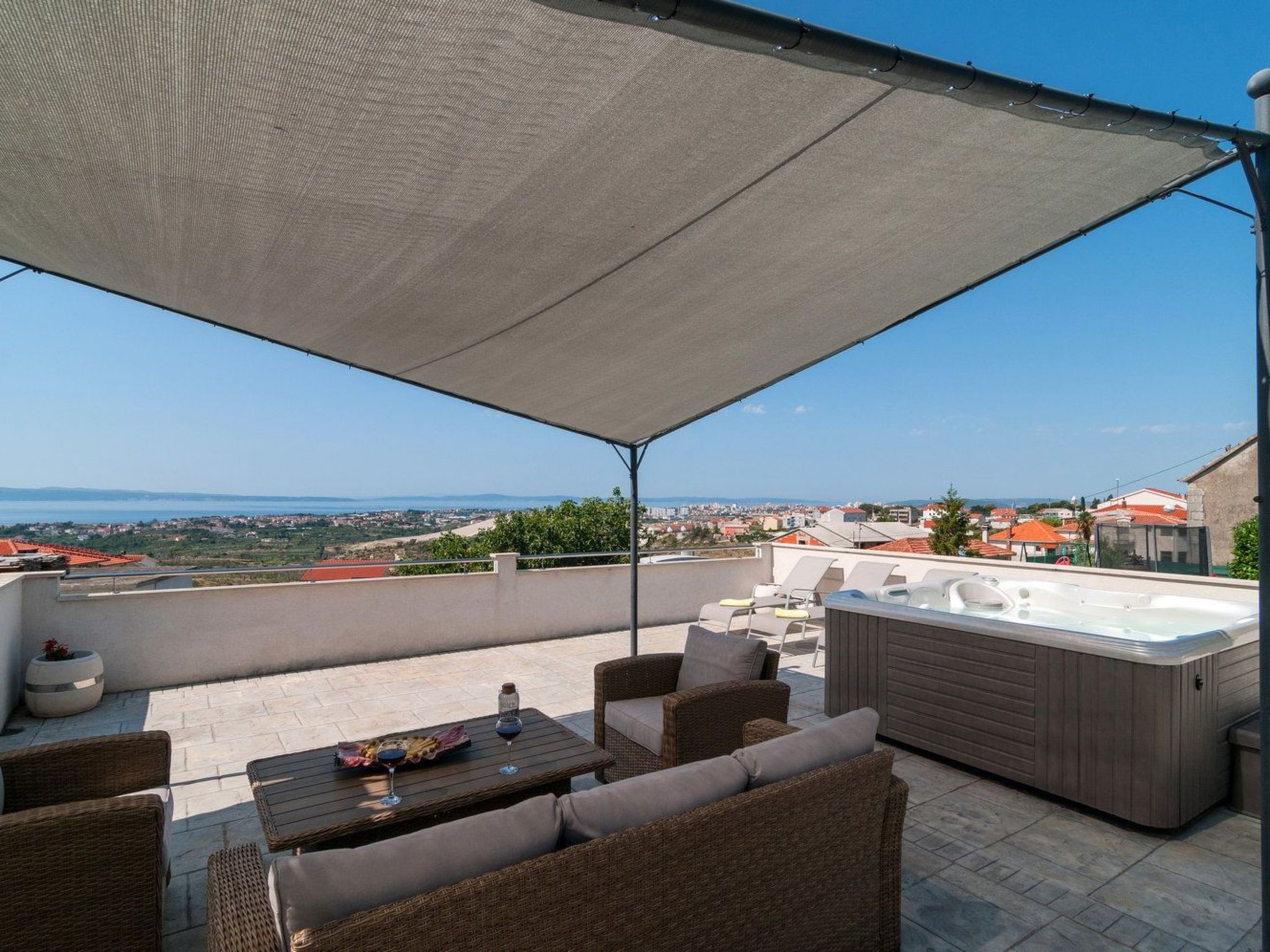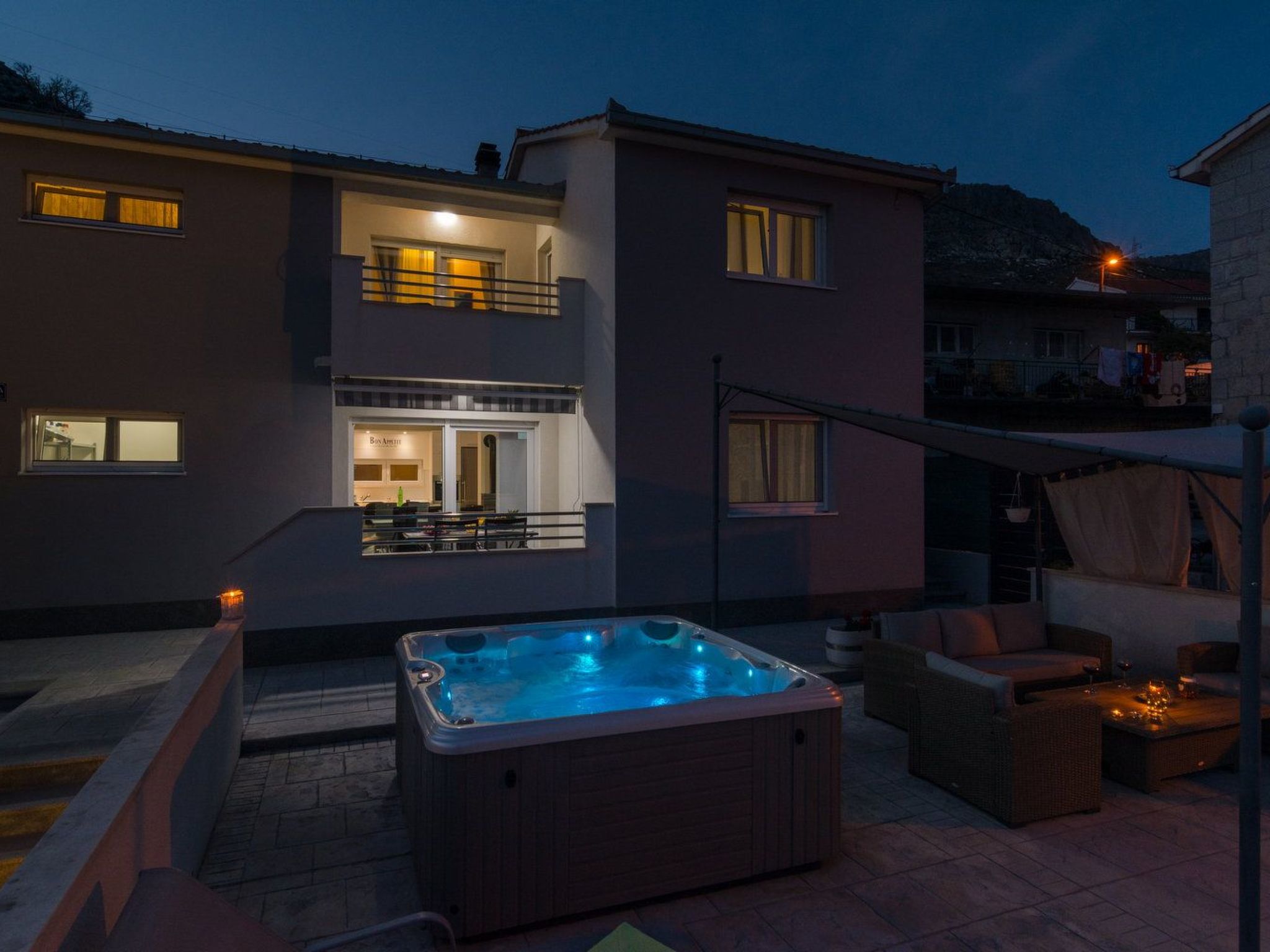 Immerse yourself in the comfort and tranquility of this spacious holiday house in Split-Kucine, set against the stunning backdrop of Dalmatia. This property promises an unforgettable stay for up to 8 guests, featuring a heated outdoor swimming pool and an outside whirlpool for 7 people, both designed to offer panoramic views of the Adriatic Sea and its islands. Just 7 km away from the vibrant city of Split and a mere 3 km from the crystal-clear Adriatic Sea, it's the perfect getaway for those who cherish both relaxation and adventure.Inside, guests will find a welcoming atmosphere equipped with all the necessities for a comfortable stay. The house boasts three cozy bedrooms and two bathrooms, ensuring ample space and privacy for all guests. Convenience is key, with the inclusion of a washing machine and a clothes dryer for sole use. The kitchen is fully fitted with an induction hob, filter coffee machine, coffee capsules/pods machine, dishwasher, and an electric kettle, ready to cater to all your dining needs.The allure of this holiday home extends to its exterior, where leisure and entertainment options abound. The covered fireplace with a large table invites alfresco dining and evenings of warmth and camaraderie. Younger guests, and the young at heart, will delight in the garden's offerings, including a trampoline, toboggan, swing, mini-football, and badminton set-up. With the addition of a roof terrace for the exclusive use of guests, every day promises a new vantage point from which to enjoy the breathtaking surroundings.Conveniently located, the house is just a short distance from an array of activities and necessities. A grocery store is accessible within 200m, offering ease for all your day-to-day needs. For those interested in exploring further, the beach and the sea are just 3 km away, inviting guests to indulge in water sports or simply enjoy the tranquility of the waters. Moreover, for the adventure seekers, there is the option to rent 4 ATV Quad 500 ccm with guide directly at the house, promising an exciting exploration of the terrain. Additionally, a mountain rail located just 1 km away provides a unique opportunity to witness the scenic beauty of the area.This holiday house in Split-Kucine is more than just a place to stay; it's a destination that offers a mix of relaxation, adventure, and unforgettable memories. With its comprehensive amenities, stunning location, and the promise of comfort, it stands out as a perfect retreat for families, friends, and anyone looking to soak in the beauty of Dalmatia.