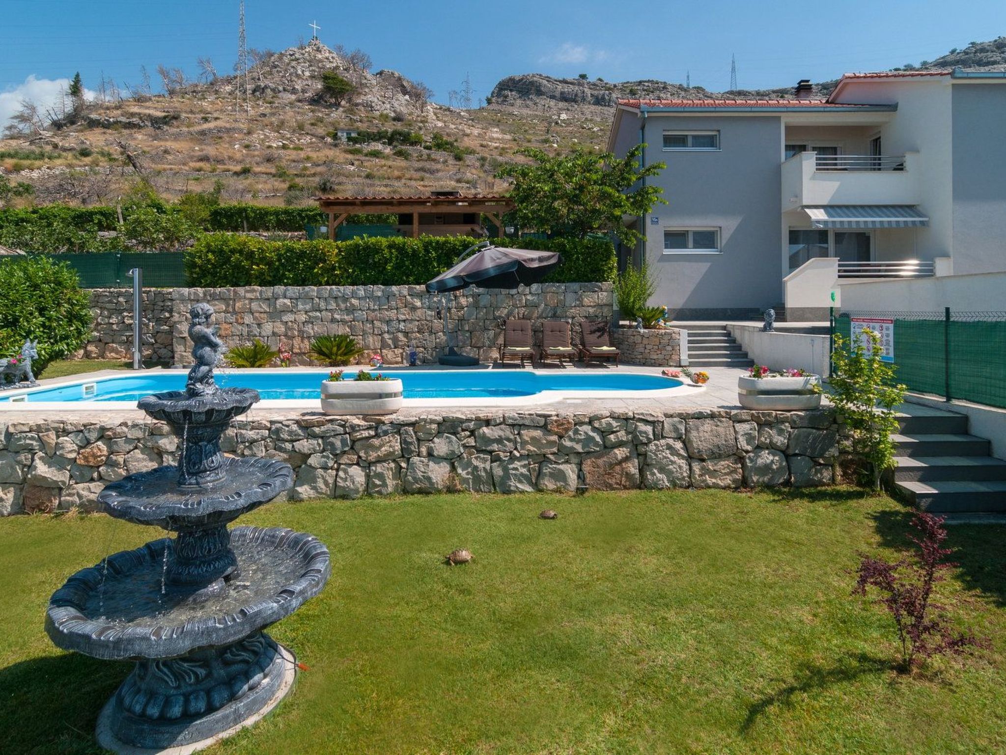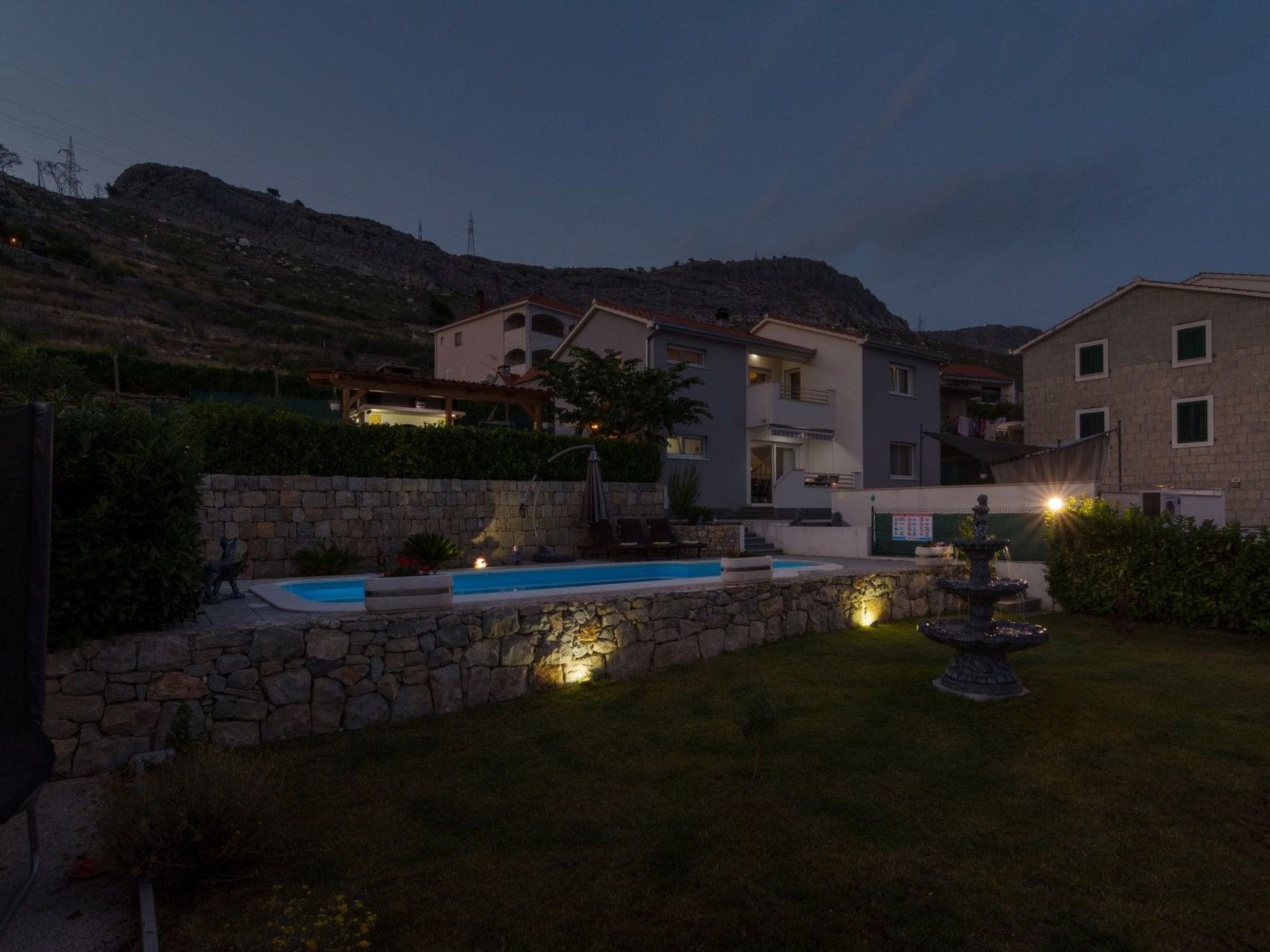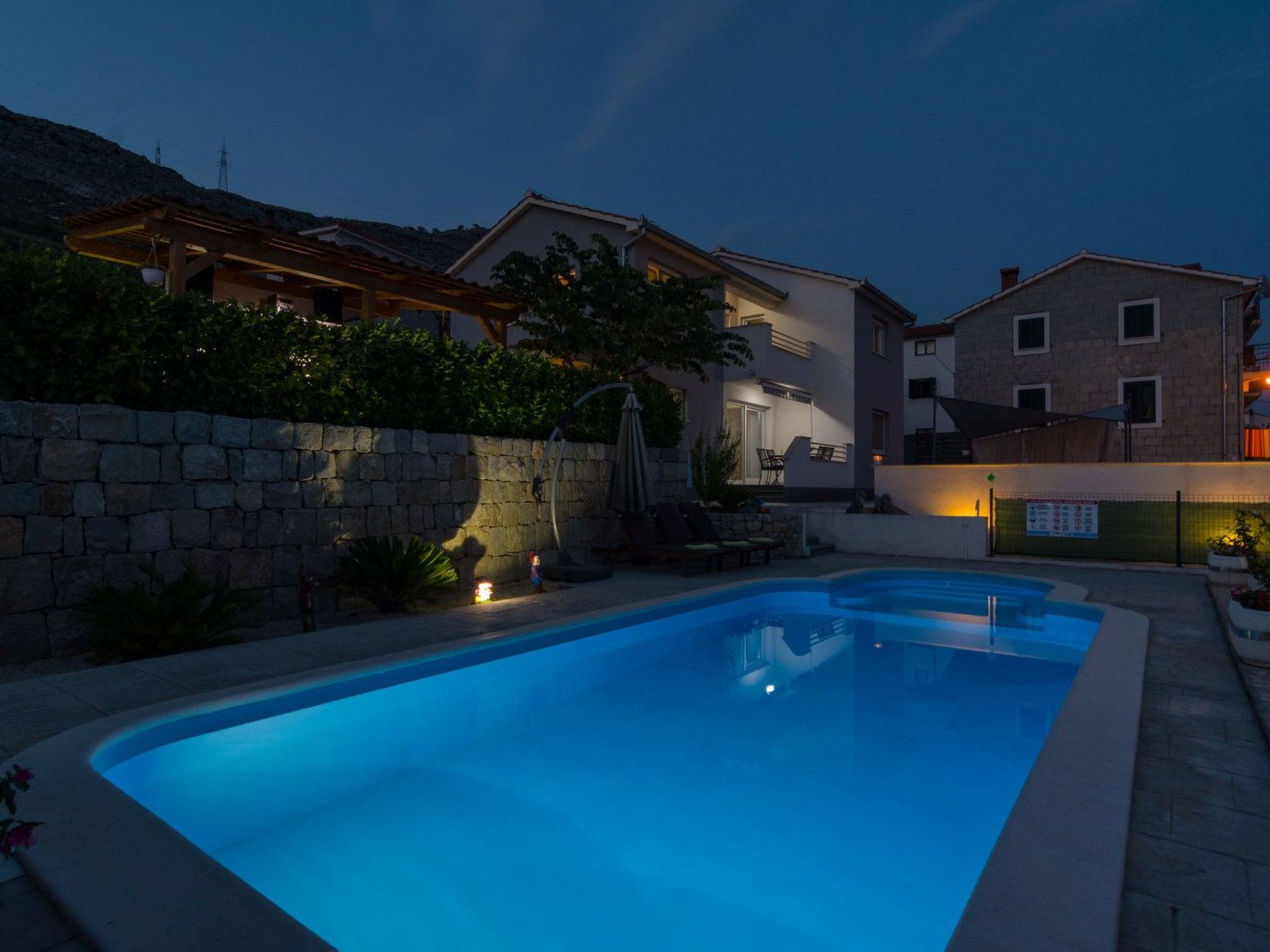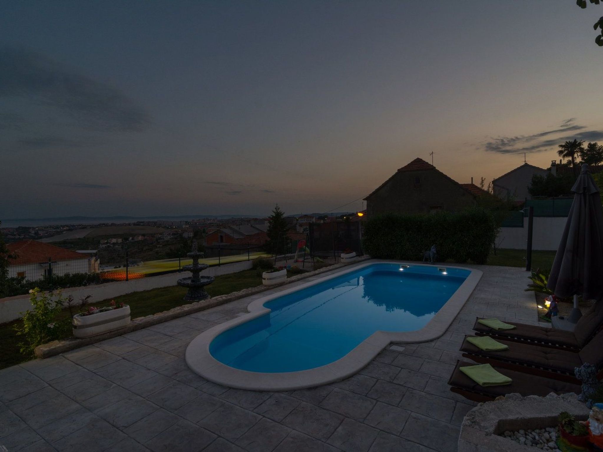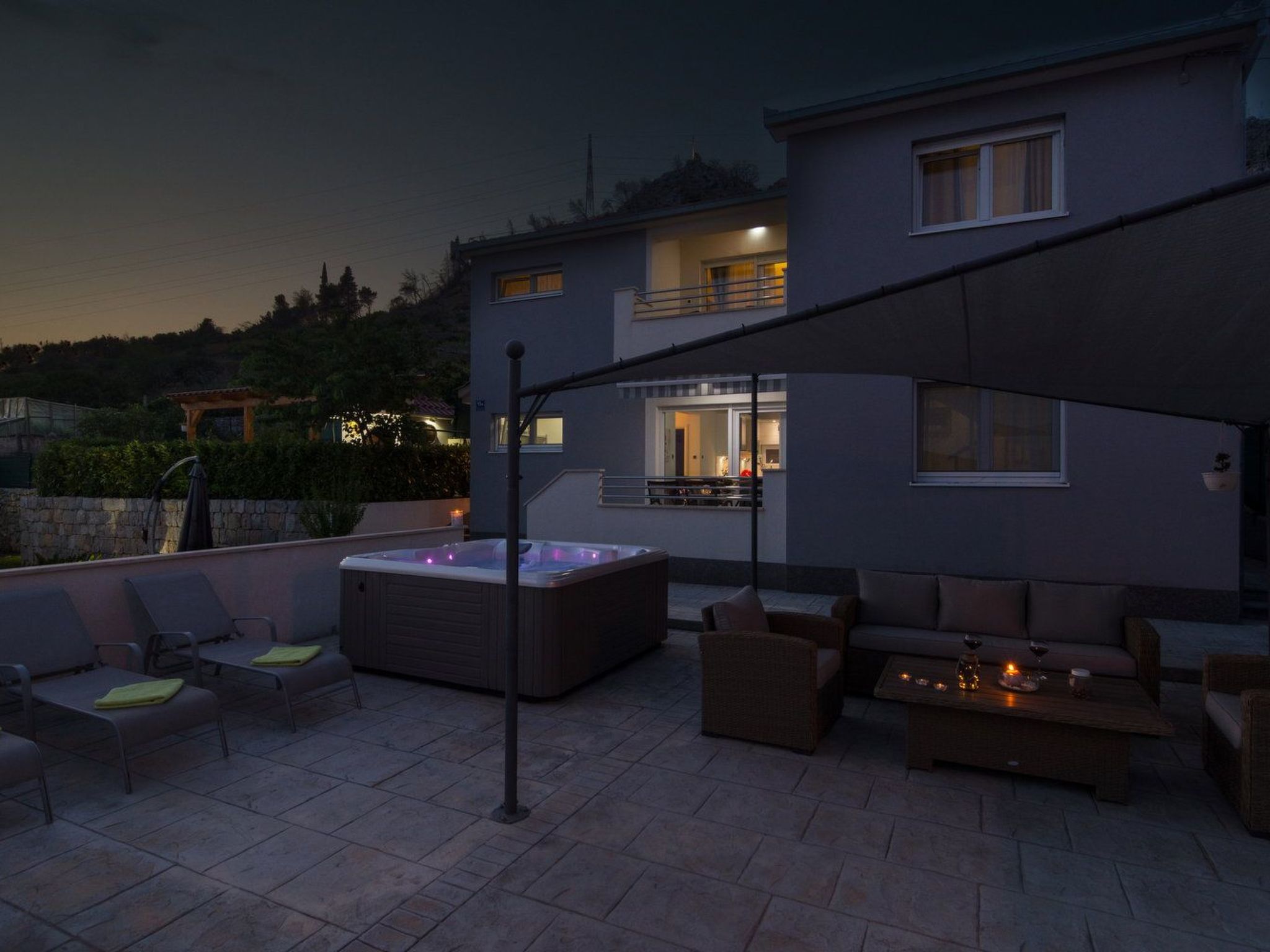 Immerse yourself in the comfort and tranquility of this spacious holiday house in Split-Kucine, set against the stunning backdrop of Dalmatia. This property promises an unforgettable stay for up to 8 guests, featuring a heated outdoor swimming pool and an outside whirlpool for 7 people, both designed to offer panoramic views of the Adriatic Sea and its islands. Just 7 km away from the vibrant city of Split and a mere 3 km from the crystal-clear Adriatic Sea, it's the perfect getaway for those who cherish both relaxation and adventure.Inside, guests will find a welcoming atmosphere equipped with all the necessities for a comfortable stay. The house boasts three cozy bedrooms and two bathrooms, ensuring ample space and privacy for all guests. Convenience is key, with the inclusion of a washing machine and a clothes dryer for sole use. The kitchen is fully fitted with an induction hob, filter coffee machine, coffee capsules/pods machine, dishwasher, and an electric kettle, ready to cater to all your dining needs.The allure of this holiday home extends to its exterior, where leisure and entertainment options abound. The covered fireplace with a large table invites alfresco dining and evenings of warmth and camaraderie. Younger guests, and the young at heart, will delight in the garden's offerings, including a trampoline, toboggan, swing, mini-football, and badminton set-up. With the addition of a roof terrace for the exclusive use of guests, every day promises a new vantage point from which to enjoy the breathtaking surroundings.Conveniently located, the house is just a short distance from an array of activities and necessities. A grocery store is accessible within 200m, offering ease for all your day-to-day needs. For those interested in exploring further, the beach and the sea are just 3 km away, inviting guests to indulge in water sports or simply enjoy the tranquility of the waters. Moreover, for the adventure seekers, there is the option to rent 4 ATV Quad 500 ccm with guide directly at the house, promising an exciting exploration of the terrain. Additionally, a mountain rail located just 1 km away provides a unique opportunity to witness the scenic beauty of the area.This holiday house in Split-Kucine is more than just a place to stay; it's a destination that offers a mix of relaxation, adventure, and unforgettable memories. With its comprehensive amenities, stunning location, and the promise of comfort, it stands out as a perfect retreat for families, friends, and anyone looking to soak in the beauty of Dalmatia.