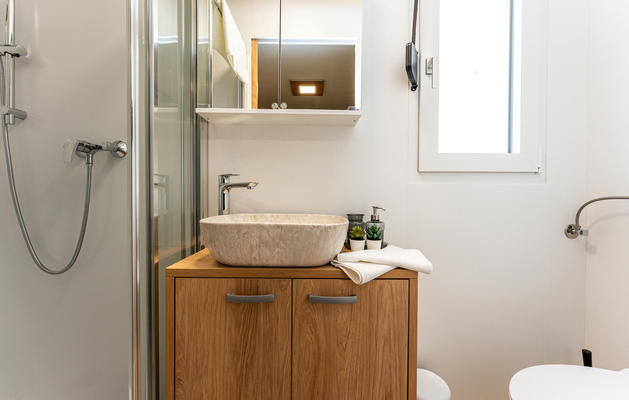 Indeling: Slaapkamer(1x 2-persoonsbed(den)), Slaapkamer(2x 1-persoonsbed(den)), Woonkamer met open keuken(1x Opklapbed(den) of matras(sen)), Badkamer(Toilet: warm en koud water, Douche), Badkamer(Toilet: warm en koud water, Douche), Terras of vergelijkbaar(Overdekt terras)