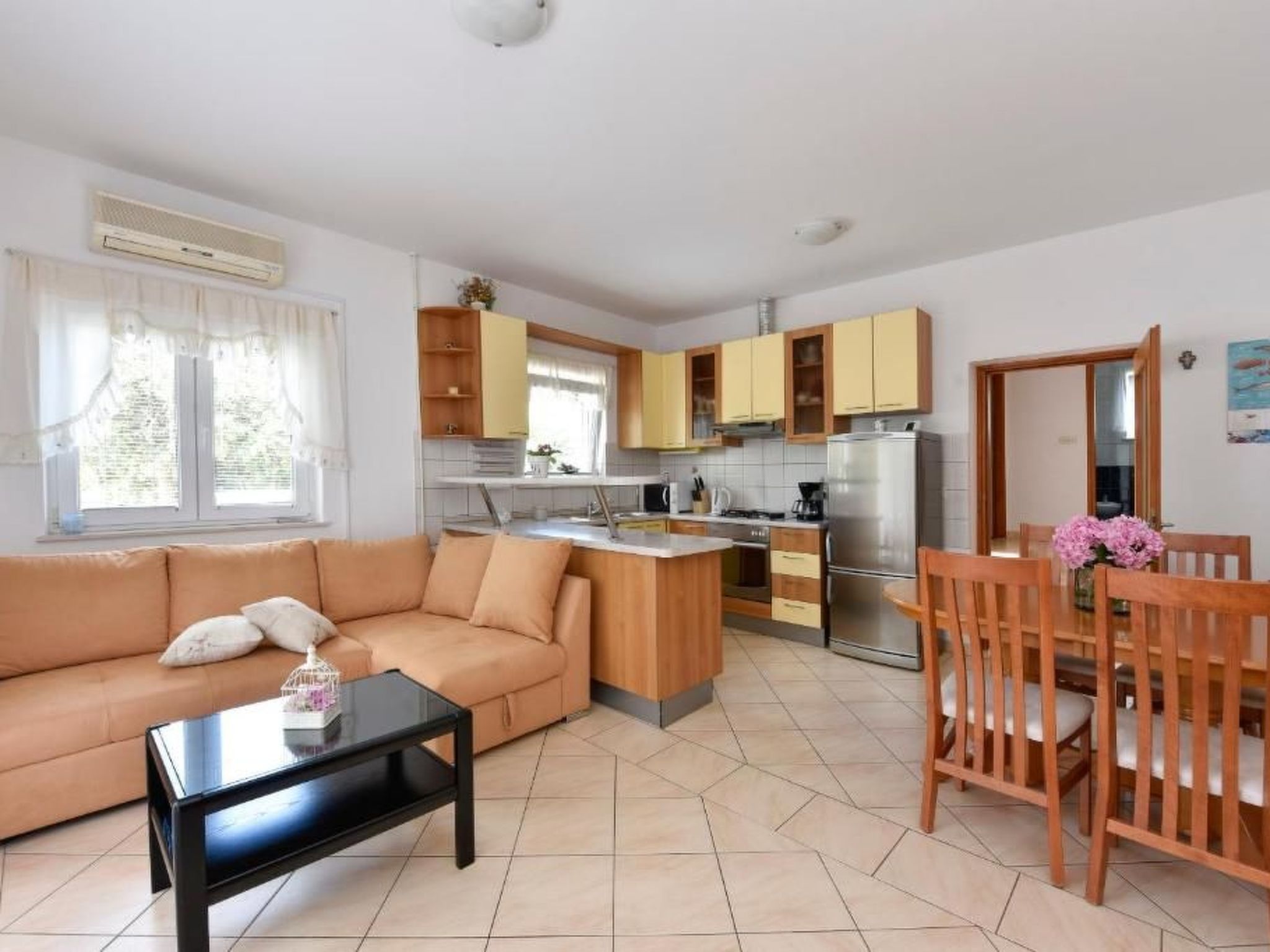 In a beautiful bay, surrounded by vineyards and olive fields, lies the 900-year-old picturesque town of Petrcane. On the exemplary clean sand, stone and pebble beaches you can relax body and soul in the shade of pine trees. Its geographical location is suitable for trips to the Kornati Islands, Krka Waterfalls, Paklenica and Plitvica Lakes. Near the beach you will find cafes, bars and restaurants. Zadar is a historic city with museums, farmers' market, good shopping.If you want to swim, hike, cycle, walk or just read a book, you can do all of it in Gornje Petrcane. It's a place to relax in a peaceful surrounding or immerse yourself in the Croatian history and culture, with top tourist attractions in Zadar.The house was built on a 2000 m² plot (surrounded by pool, olive, cherry and mandarine trees, figs, pomegranates ...), lovingly furnished and about 900 m from the sea, in the quiet upper part of the village. The apartment has 65 m², with two bedrooms, a bathroom, and a living room. The apartment is comfortable, air-conditioned and completely equipped (wifi, satellite TV, washing machine and a dishwasher). There is large sunny terrace, sunny pool, private entrance with a driveway, parking is ensured in front of the house.For all its historic buildings, ruins, and eccentric attractions, Zadar is a lively city that rises far above the trappings of your typical Dalmatian tourist destination. Here are the attractions that'll lure you away from its beaches: Church of St. Donatus, Ošljak, Sea Organ, Krka National Park, Archeological Museum, Zadar Cathedral...Zadar is a city monument, surrounded by historical ramparts, a treasury of the archaeological and monumental riches of ancient and medieval times, Renaissance and many contemporary architectural achievements such as the first Sea Organ in the world.The coast is particularly indented, the islands and the untouched nature allures many boaters to this regions.