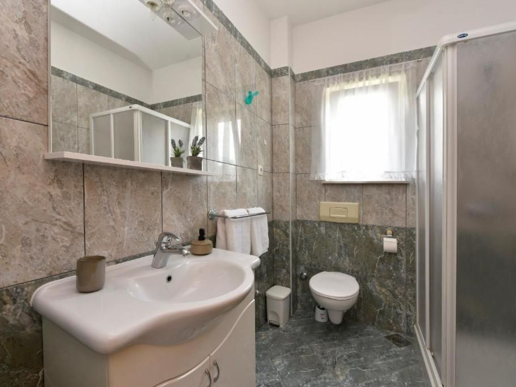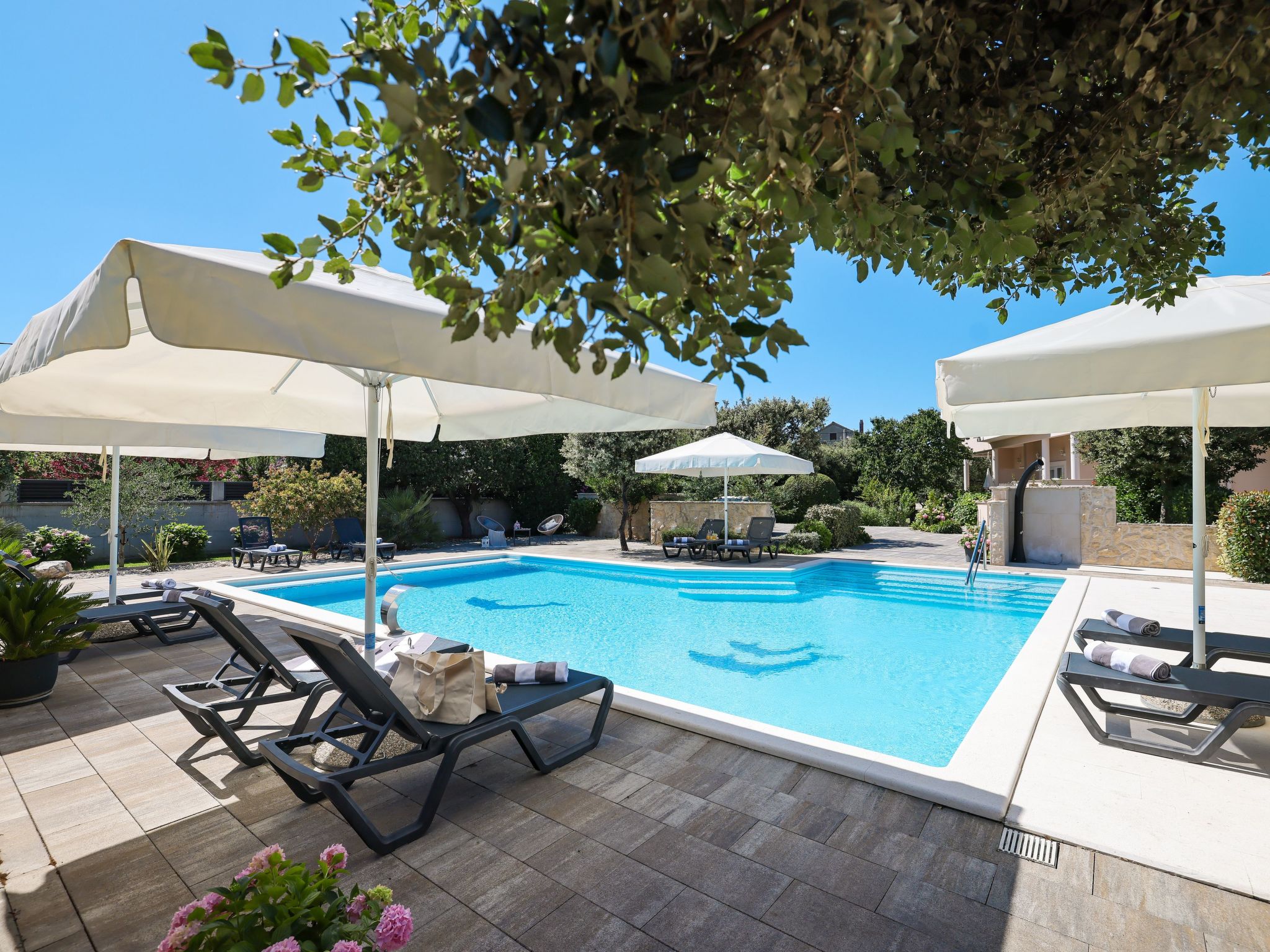 The 900-year-old picturesque town of Petrcane is located in a beautiful bay, surrounded by vineyards and olive groves. On extremely clean sandy, stone and pebble beaches you can rest your body and soul in the shade of pine trees. Its geographical location is suitable for trips to Kornati, Krka waterfalls, Paklenica and Plitvice Lakes. Near the beach you will find cafes, bars and restaurants. Zadar is a historical city with museums, a market, good shopping.If you want to swim, hike, cycle, walk or just read a book, you can do all of it in Gornje Petrcane. It's a place to relax in a peaceful surrounding or immerse yourself in the Croatian history and culture, with top tourist attractions in Zadar.The house was built on a 2000 m² plot (surrounded by pool, olive, cherry and mandarine trees, figs, pomegranates ...), lovingly furnished and about 900 m from the sea, in the quiet upper part of the village. The apartment has 65 m², with two bedrooms, a bathroom, and a living room. The apartment is comfortable, air-conditioned and completely equipped (wifi, satellite TV, washing machine and a dishwasher). There is large sunny terrace, sunny pool, private entrance with a driveway, parking is ensured in front of the house.Zadar is a city monument, surrounded by historical ramparts, a treasury of the archaeological and monumental riches of ancient and medieval times, Renaissance and many contemporary architectural achievements such as the first Sea Organ in the world.The coast is particularly indented, the islands and the untouched nature allures many boaters to this regions.For all its historic buildings, ruins, and eccentric attractions, Zadar is a lively city that rises far above the trappings of your typical Dalmatian tourist destination. Here are the attractions that'll lure you away from its beaches: Church of St. Donatus, Ošljak, Sea Organ, Krka National Park, Archeological Museum, Zadar Cathedral...