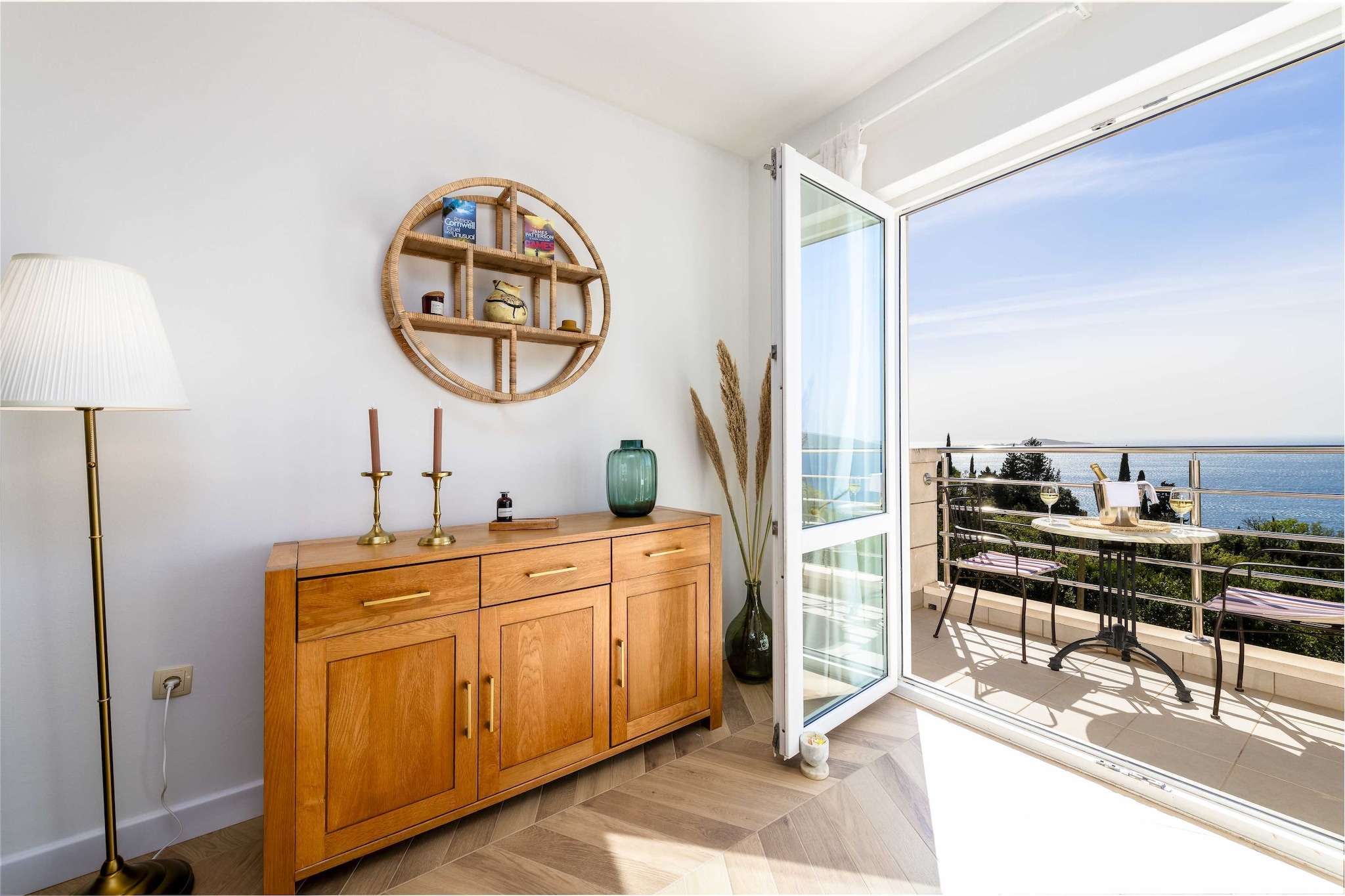 Het uitzicht vanaf het terras,\nEen uitstekende woonkamer, groot en goed verdeeld met directe toegang tot het terras,\nZeer goed gelegen om Dubrovnik te leren kennen en tegelijkertijd te kunnen genieten van de nabijheid van het strand,\nOverdekt parkeerplaats,\ nAls ik terugkom, is het zonder twijfel hier