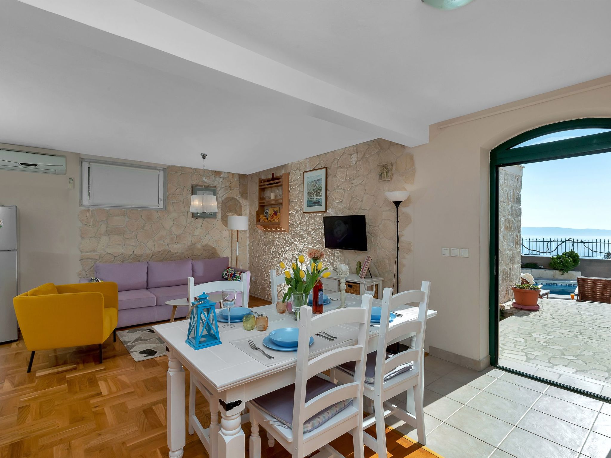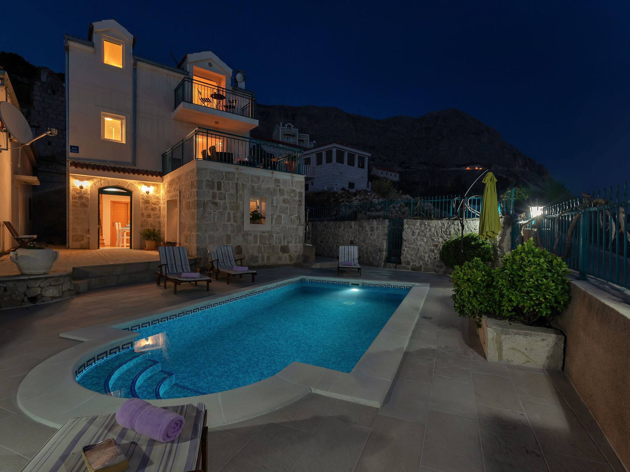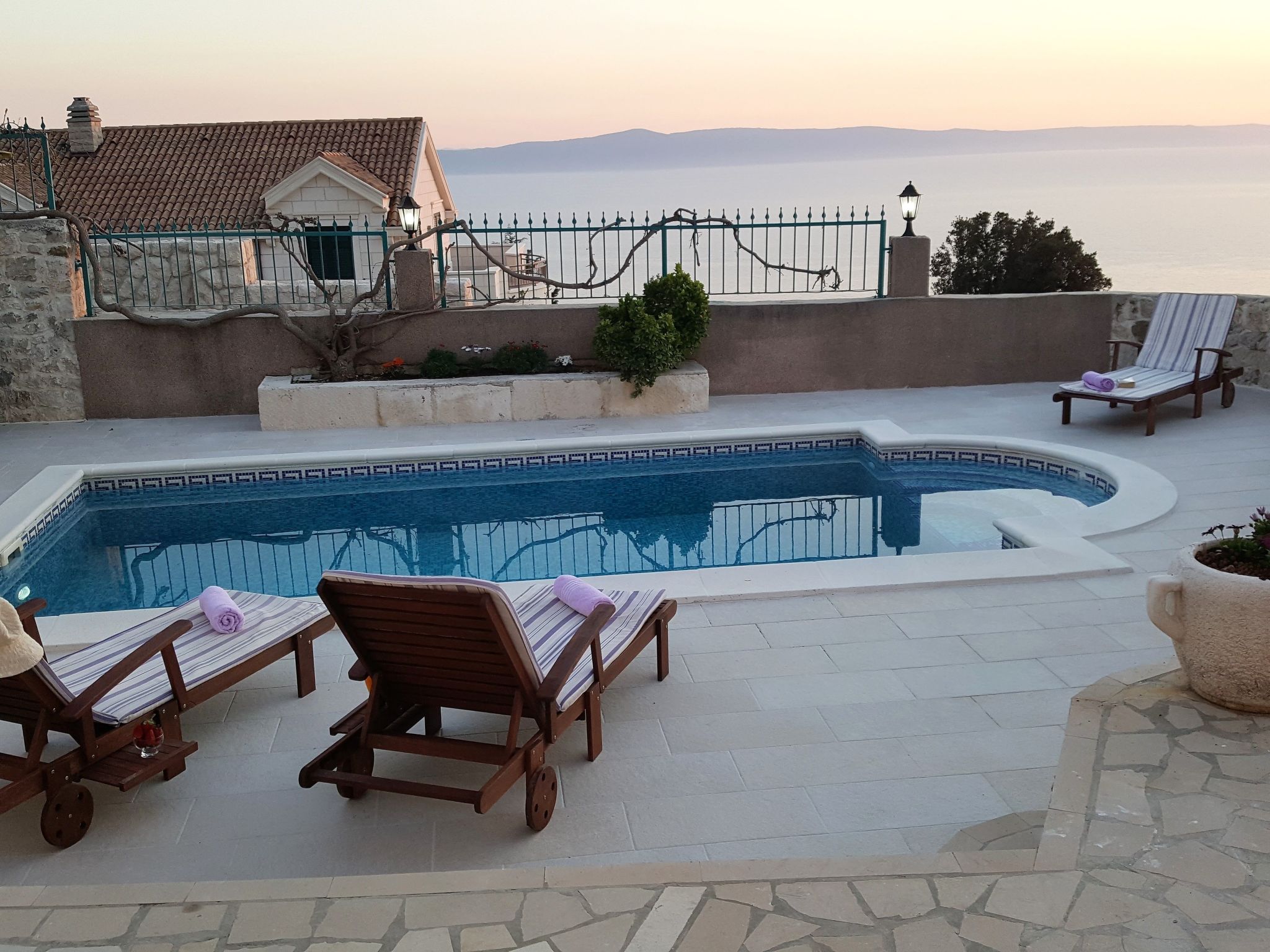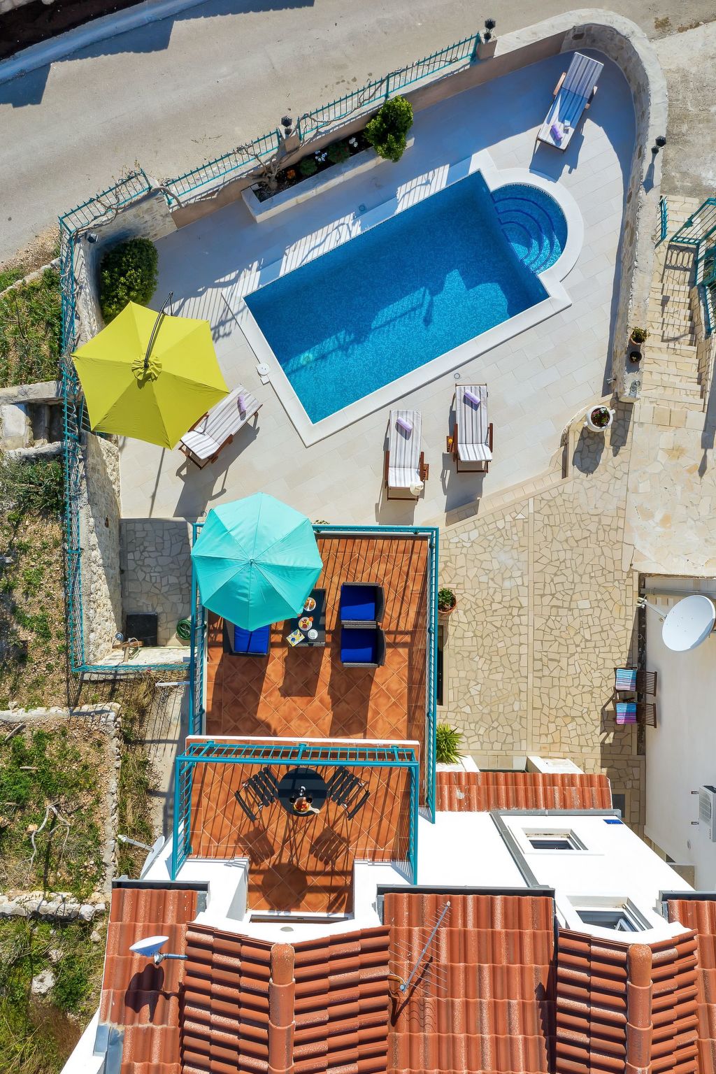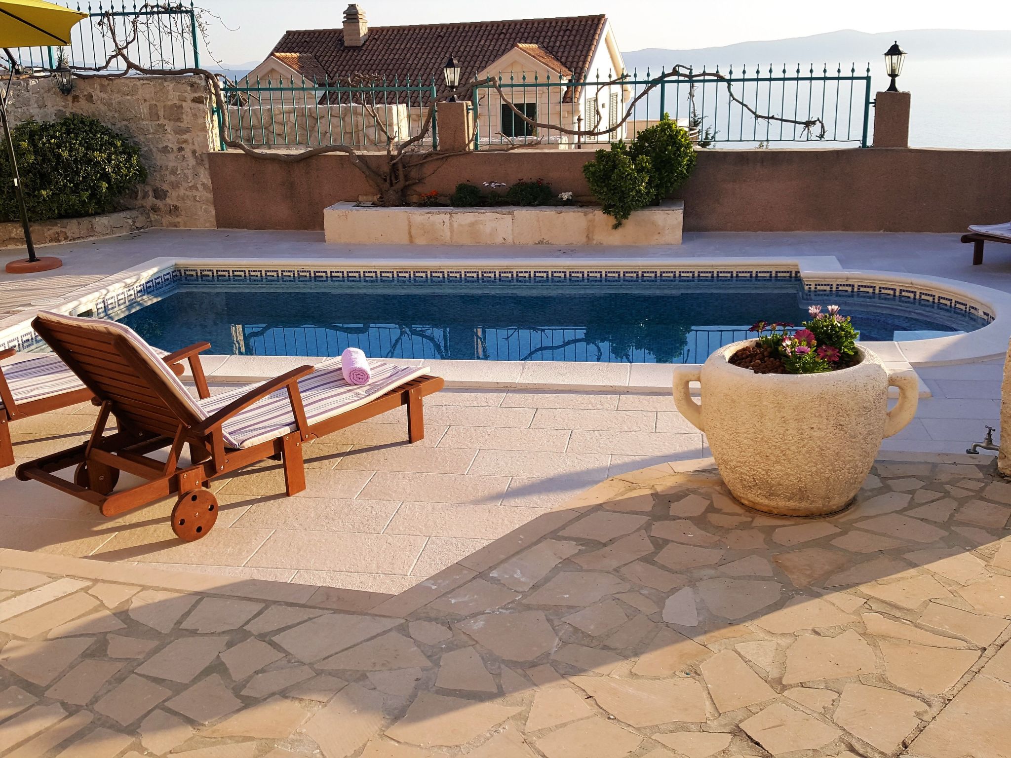 The beaches are only about two kilometres away. Restaurants, shops, bars, a pharmacy and other amenities are all within a four-minute drive. The islands of Hvar and Brac are just a short boat ride away. It is two hours by boat to Dubrovnik and just an hour by boat to Split.Outside there is a big terrace with a table and chairs for four people, a summer kitchen with a gas grill, a sink and, as a highlight, a 20m² pool. Six sun loungers are provided. Three private car parking spaces are available.