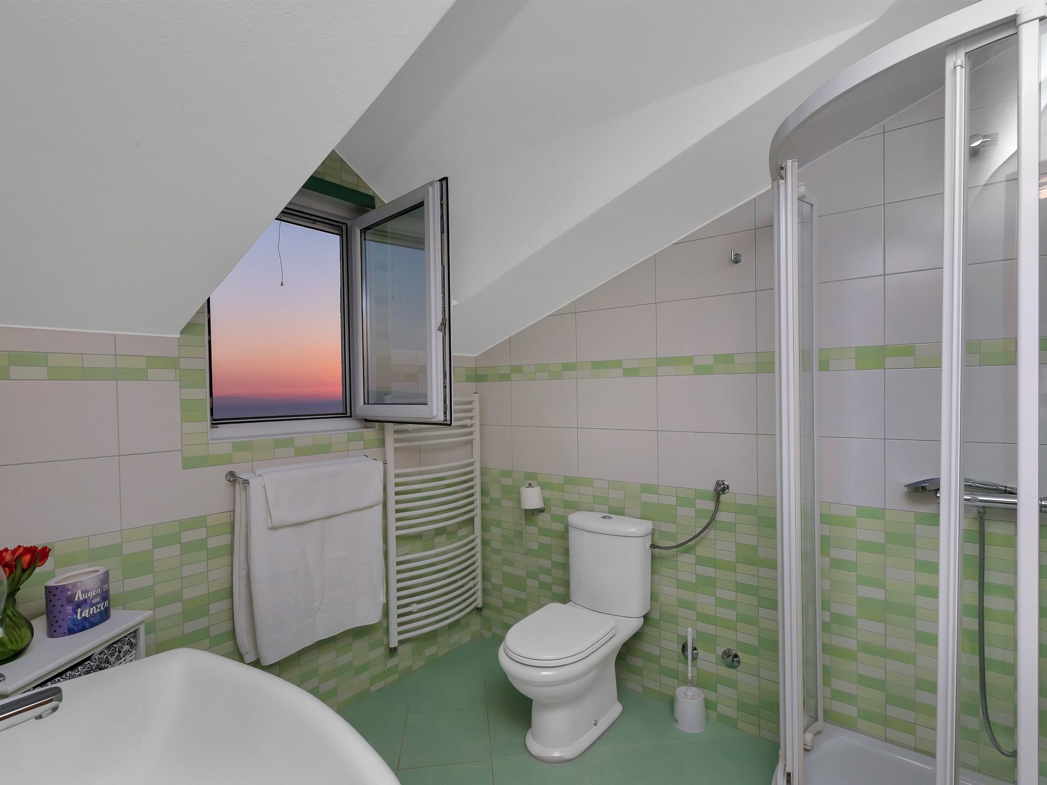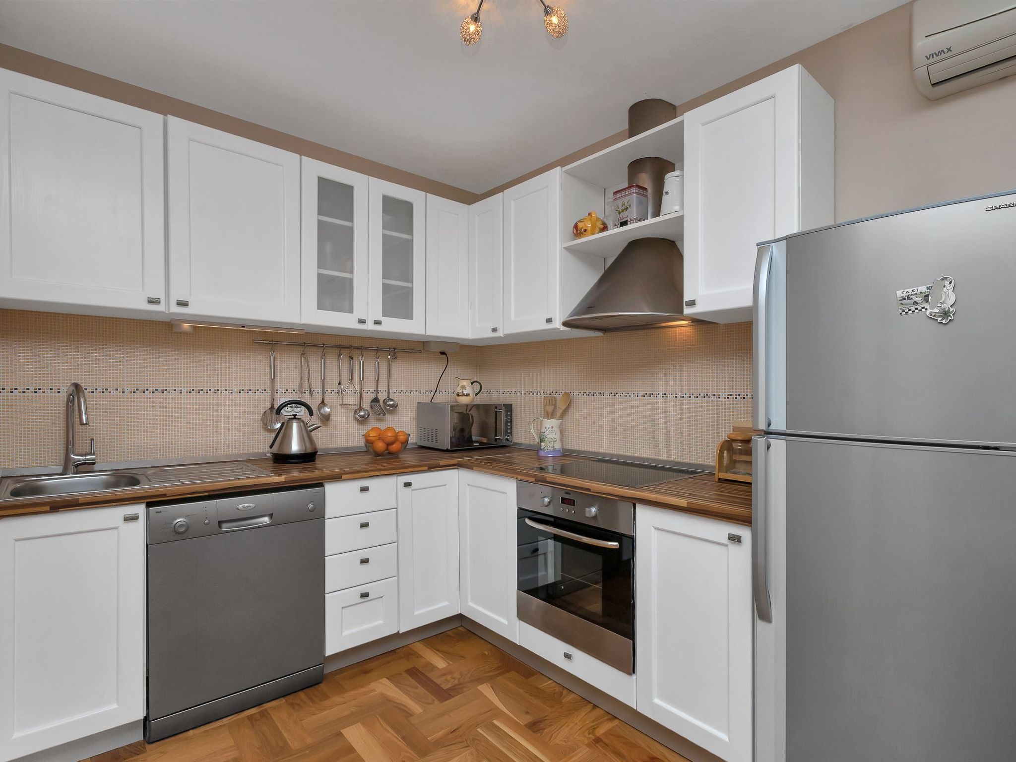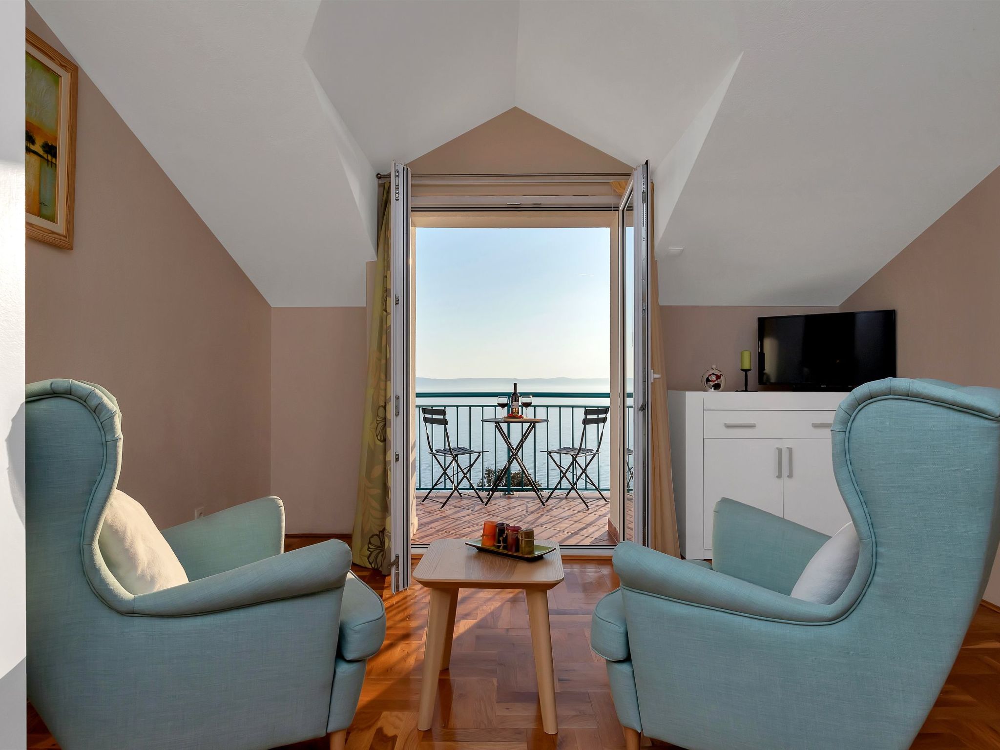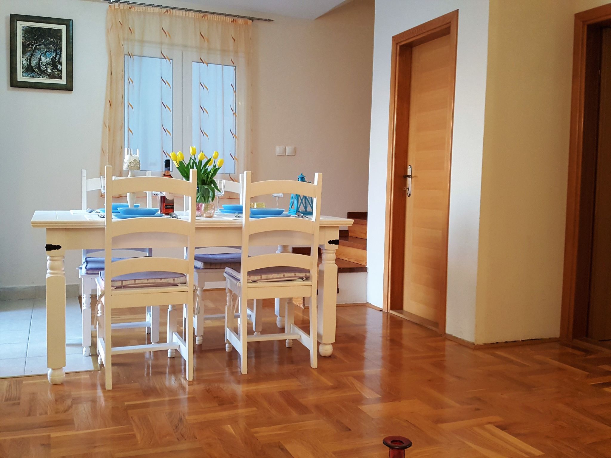 This beautiful villa is in an old village called Podgora and is surrounded by olive groves, vineyards and old stone ruins.The second building provides 40m² of living space and its ground floor has a similar layout to that of the first building. It also has a modern living and dining room, a fully-equipped kitchen and a laundry room with a toilet and a washing machine. The first floor has a bedroom with a double bed, its own bathroom and a balcony with a sea view. The second floor has another bedroom with the same specification, with a balcony with a sea view.The villa has a total living space of 130 square metres and is therefore very spacious. The building consists of a ground floor, first floor and second floor. The ground floor has a living room with a sofa, a dining room with a dining table for four people, a fully-equipped kitchen and a laundry room with a WC. The first floor has a large double bedroom with a double bed with ensuite, and a large balcony with a sea view. The second floor is a large double bedroom with ensuite, and balcony with seaview.The villa is brand new, air-conditioned and has all modern furniture. The stairs are made of Croatian oak. The villa is especially suitable for families and couples who would like to enjoy a beautiful holiday in a little village and near beaches and tourist amenities. Here you can really enjoy peace and quiet. The view of the Adriatic Sea is simply fabulous.
