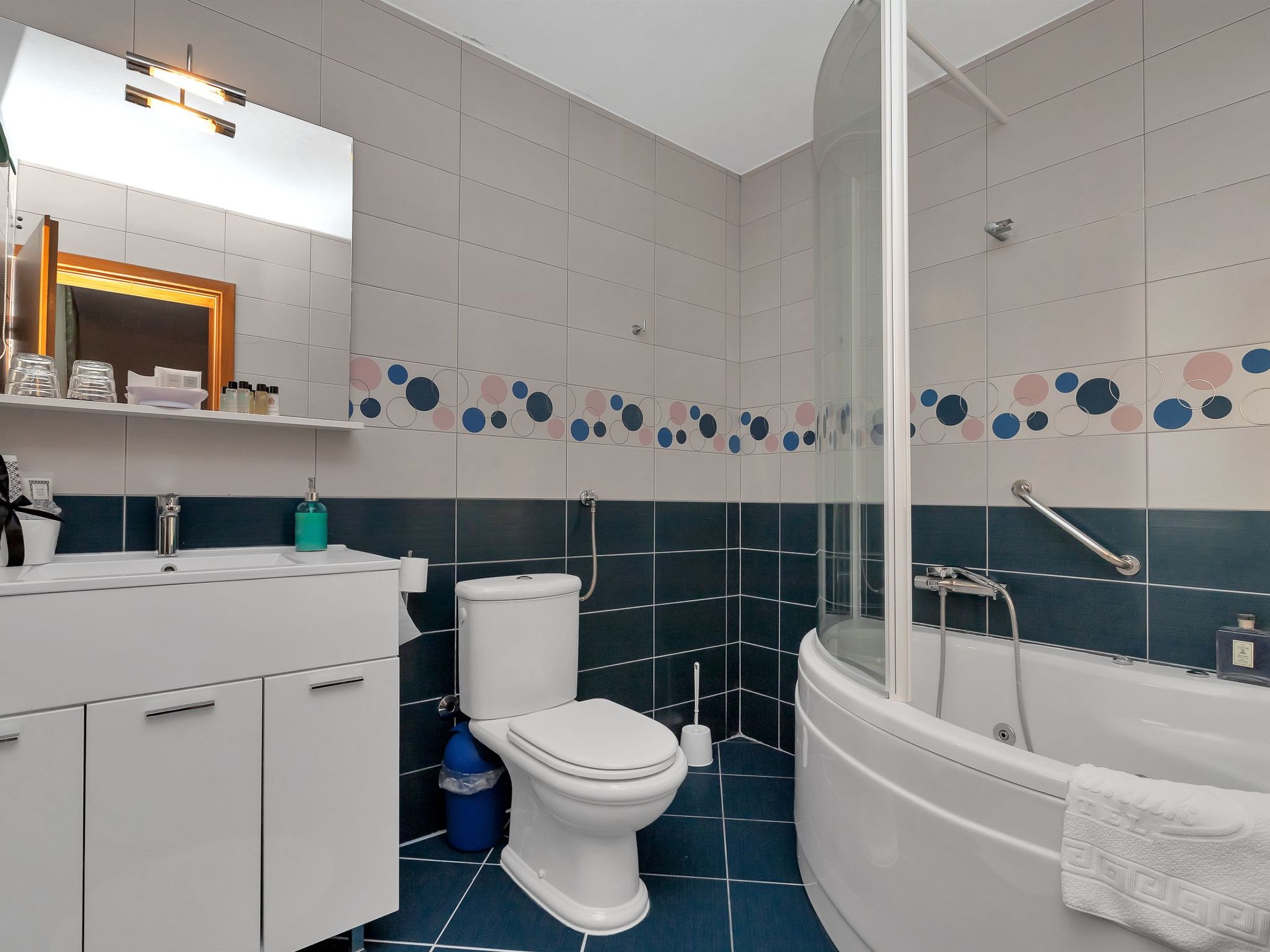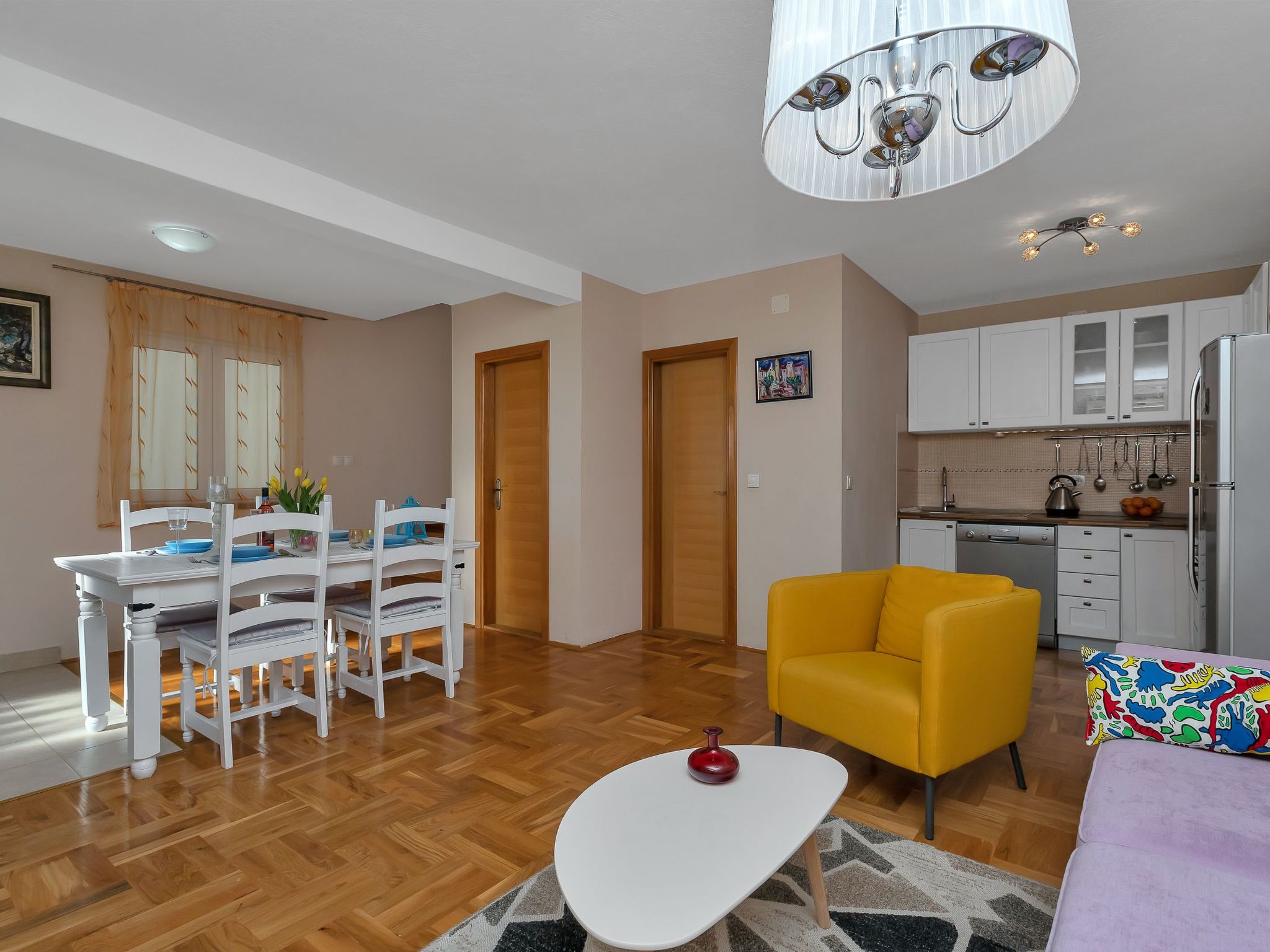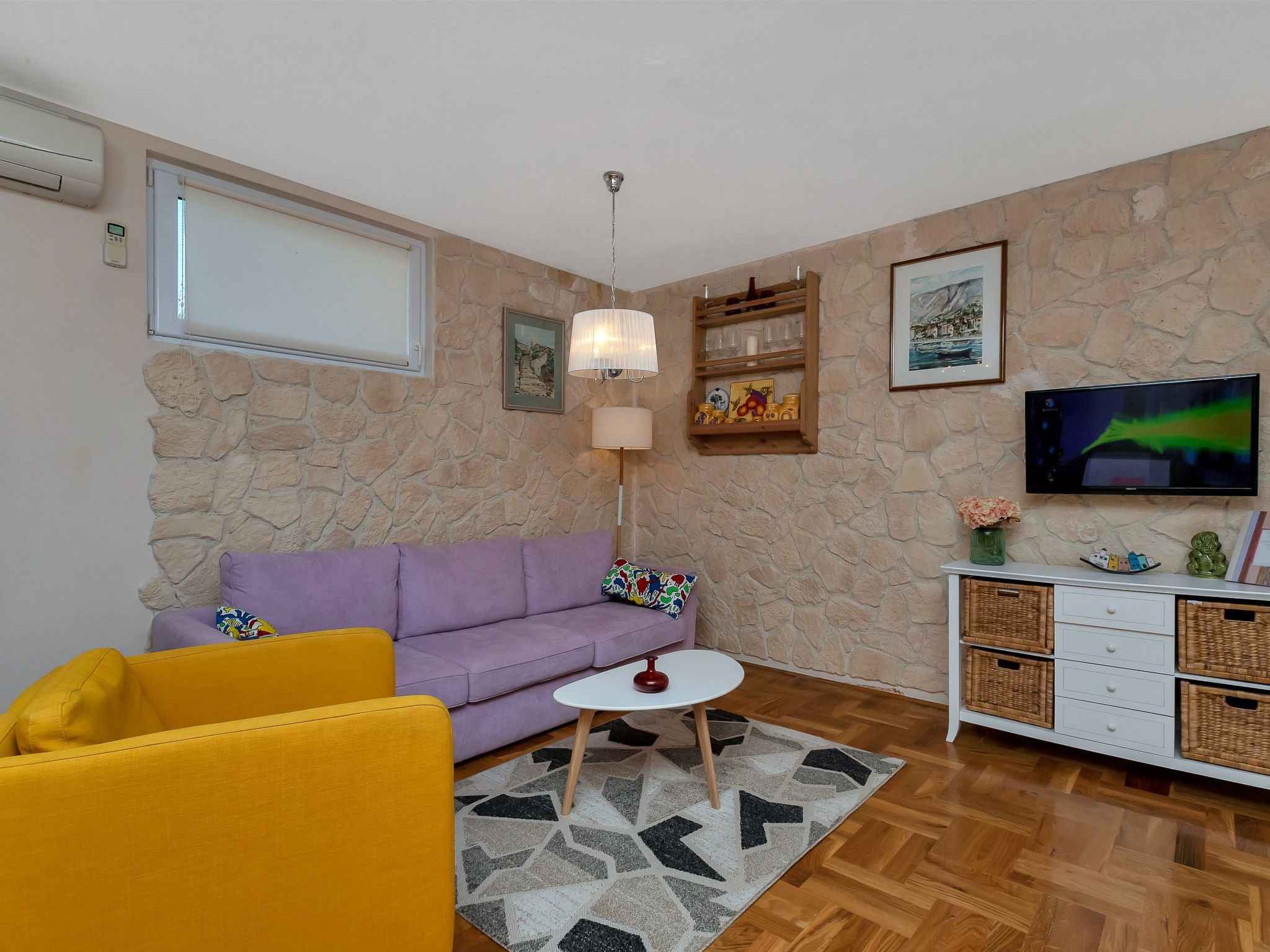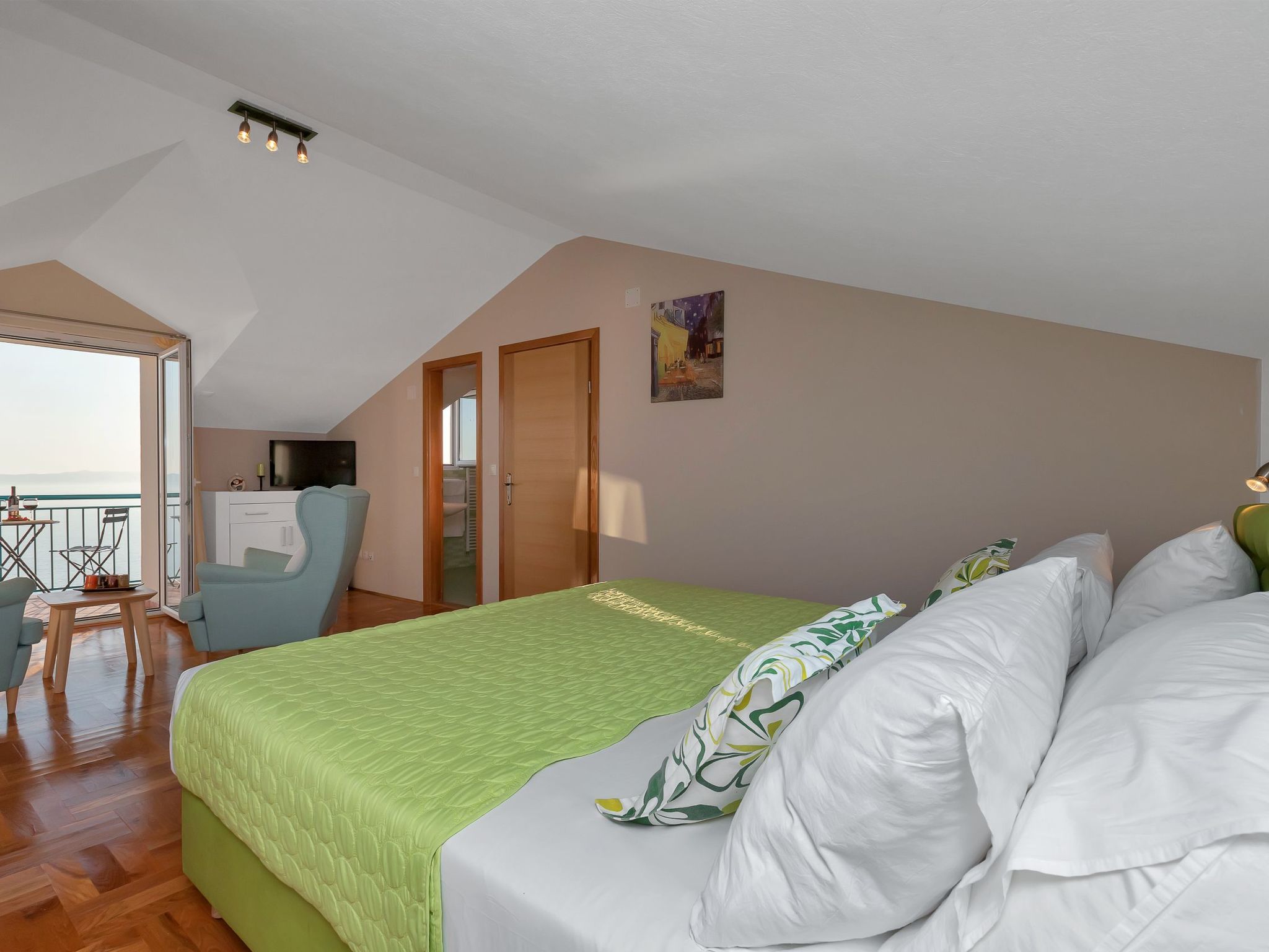 This beautiful villa is in an old village called Podgora and is surrounded by olive groves, vineyards and old stone ruins.The second building provides 40m² of living space and its ground floor has a similar layout to that of the first building. It also has a modern living and dining room, a fully-equipped kitchen and a laundry room with a toilet and a washing machine. The first floor has a bedroom with a double bed, its own bathroom and a balcony with a sea view. The second floor has another bedroom with the same specification, with a balcony with a sea view.The villa has a total living space of 130 square metres and is therefore very spacious. The building consists of a ground floor, first floor and second floor. The ground floor has a living room with a sofa, a dining room with a dining table for four people, a fully-equipped kitchen and a laundry room with a WC. The first floor has a large double bedroom with a double bed with ensuite, and a large balcony with a sea view. The second floor is a large double bedroom with ensuite, and balcony with seaview.The villa is brand new, air-conditioned and has all modern furniture. The stairs are made of Croatian oak. The villa is especially suitable for families and couples who would like to enjoy a beautiful holiday in a little village and near beaches and tourist amenities. Here you can really enjoy peace and quiet. The view of the Adriatic Sea is simply fabulous.