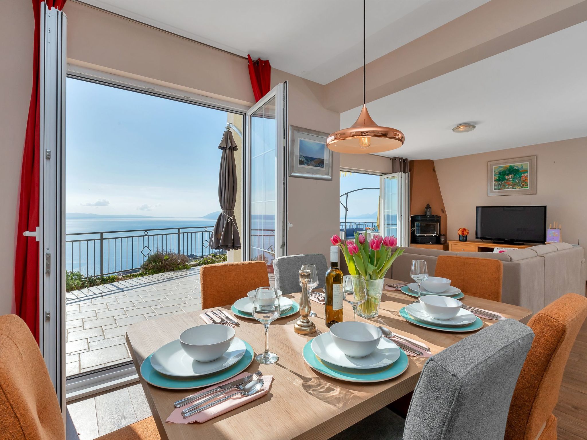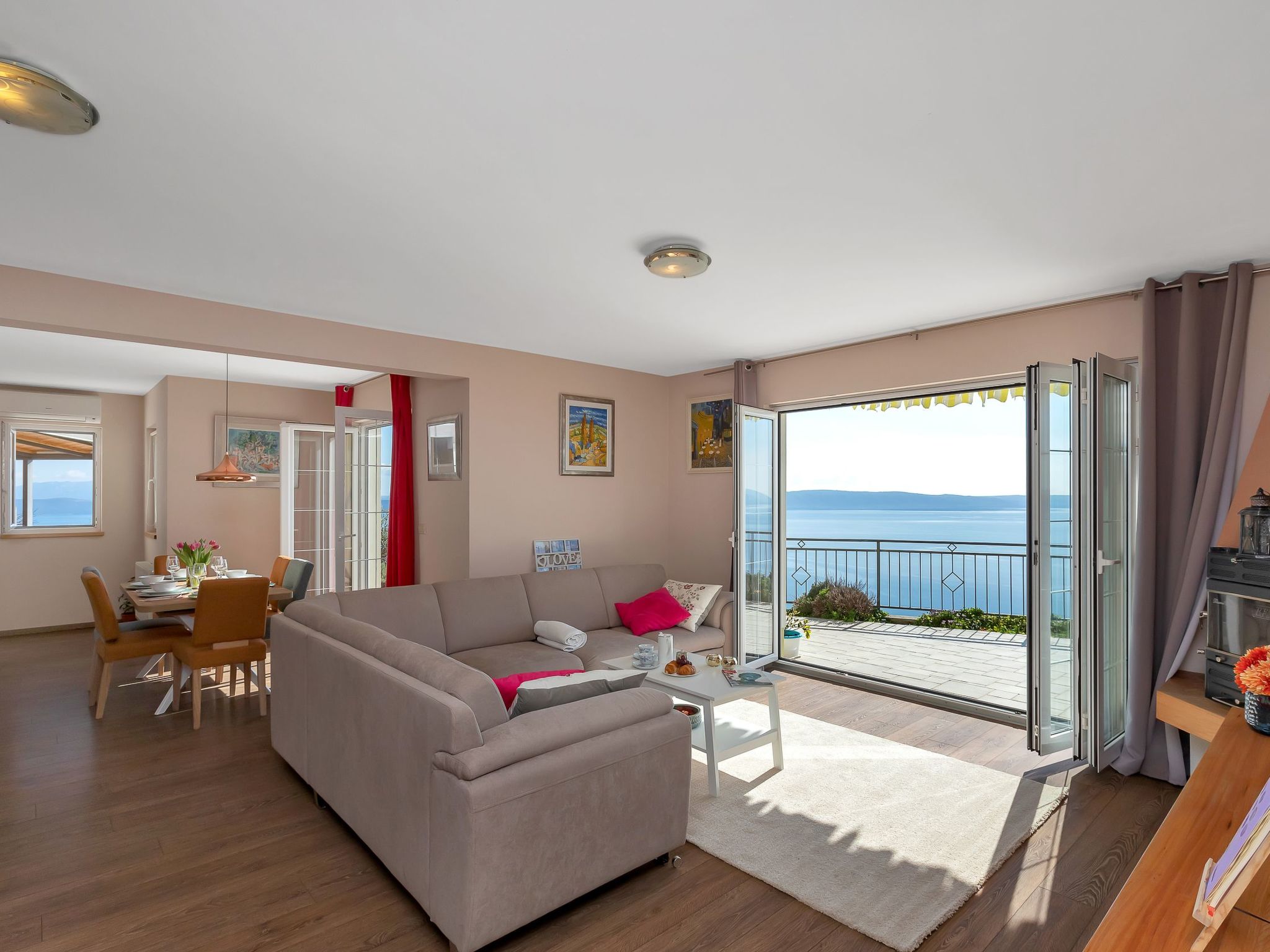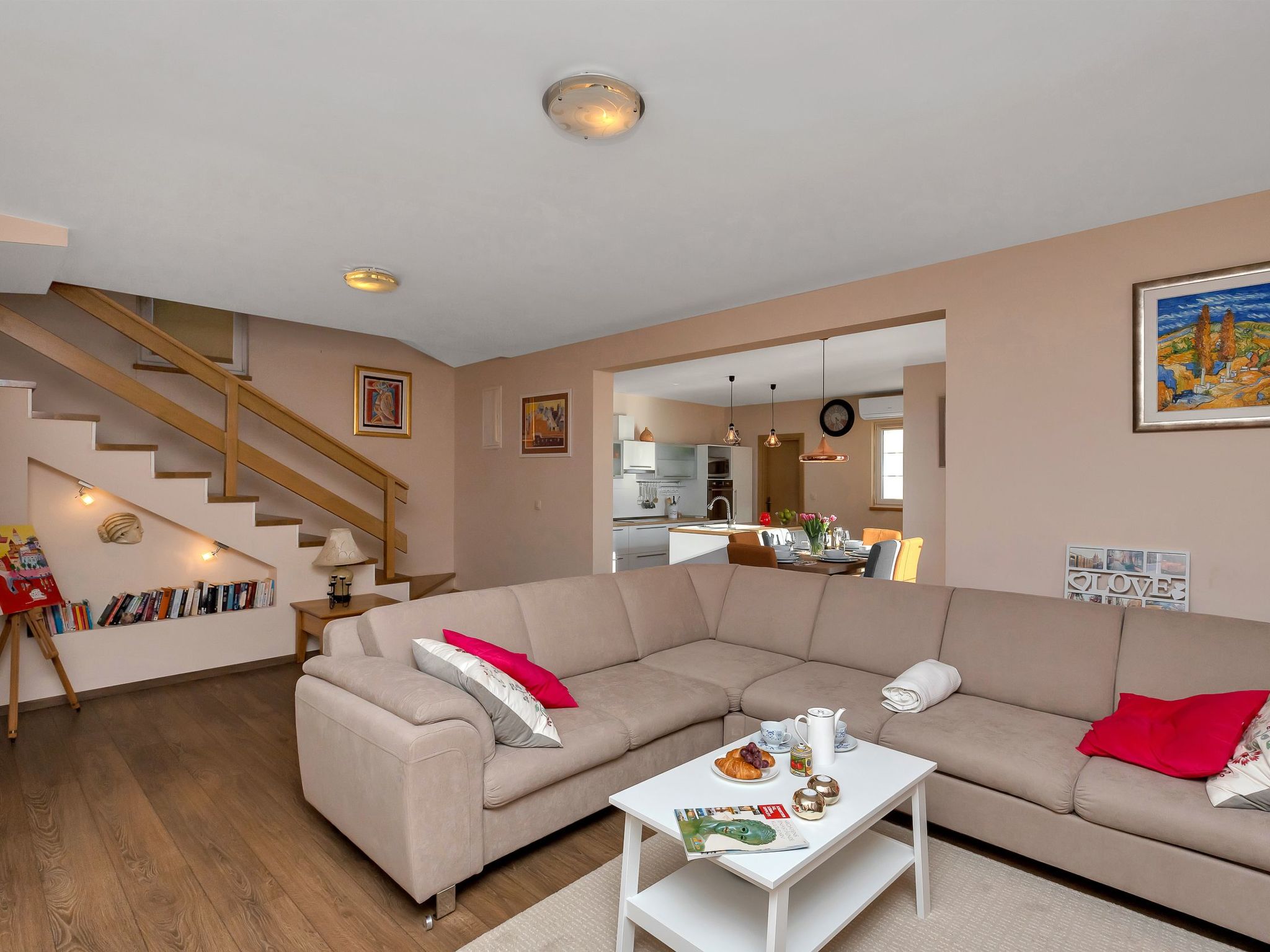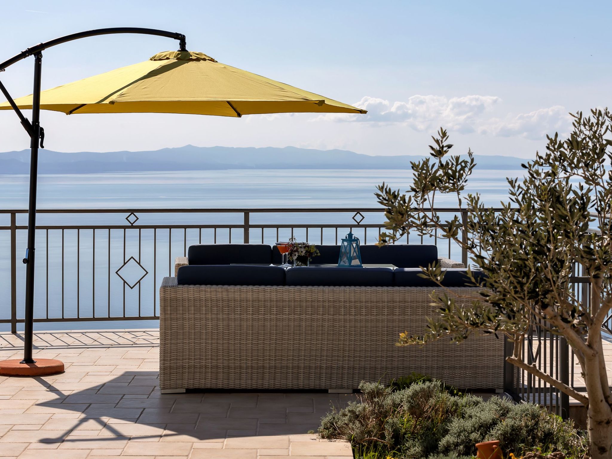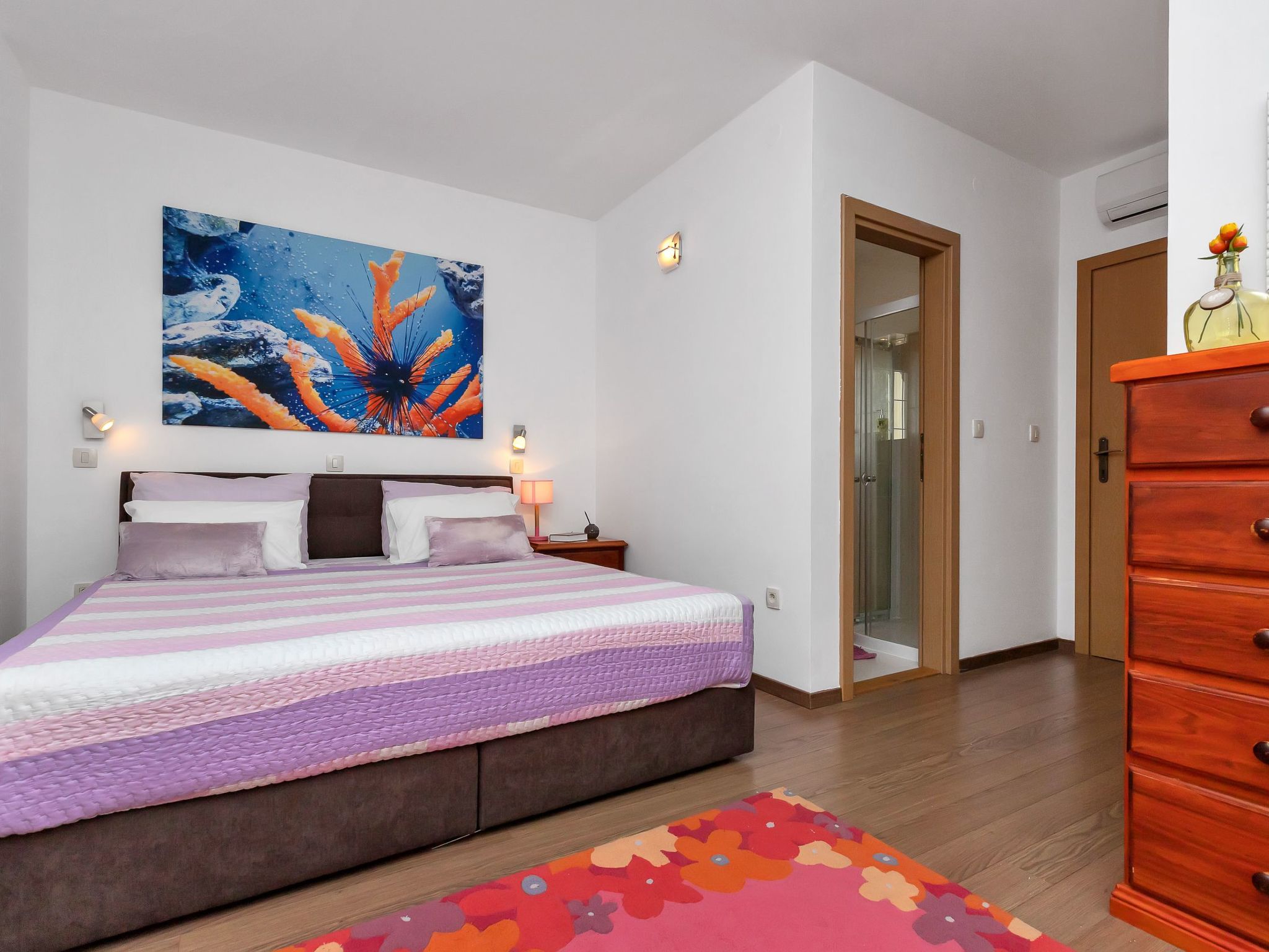 This beautiful villa is in an old village called Podgora and is surrounded by olive groves, vineyards and old stone ruins. Outside there are a big terrace with a table and chairs for six people, a roofed summer kitchen with a gas grill and sink, and as a highlight the 30m² infinity pool. There are four sun loungers. Three private parking spaces are available. The villa with 220m² of living space is very spacious and consists of three floors. On the ground floor there is a big living room with a dining area and an open, fully-equipped kitchen. The living room has a modern and comfortable corner sofa for six people and a big plasma TV. The dining space has a table and six chairs. The fully-equipped kitchen has a hob, oven, sink, microwave, fridge-freezer with an ice-making machine and water dispenser. There is also a dishwasher. On the first and second floors there are the bedrooms with a double bed each, each with its own bathroom and a balcony with a sea view. The beaches are only around two kilometres away. Restaurants, shops, bars, a pharmacy and other amenities are all within four minutes by car. The islands of Hvar and Brac are just short boat ride away. It is two hours by boat to Dubrovnik and just an hour to Split.The villa is brand new, air-conditioned and has all modern furniture. The villa is especially suitable for families and couples who would like to treat themselves to a beautiful holiday in a little village and near beaches and tourist amenities. Here you can enjoy true peace and quiet. The view of the Adriatic Sea is simply wonderful.
